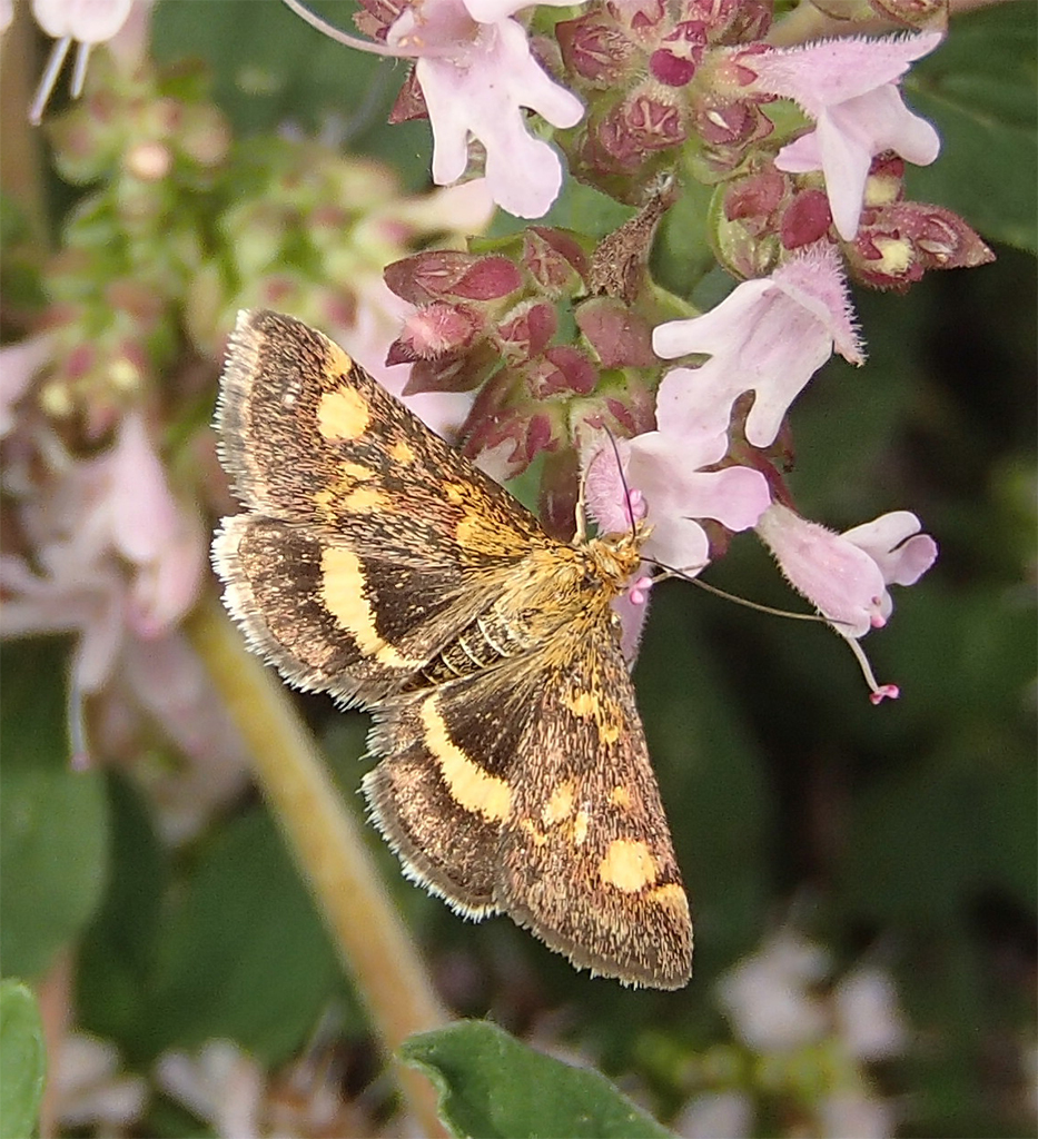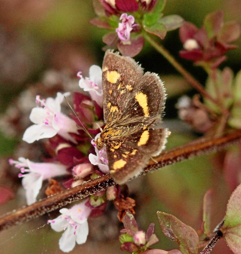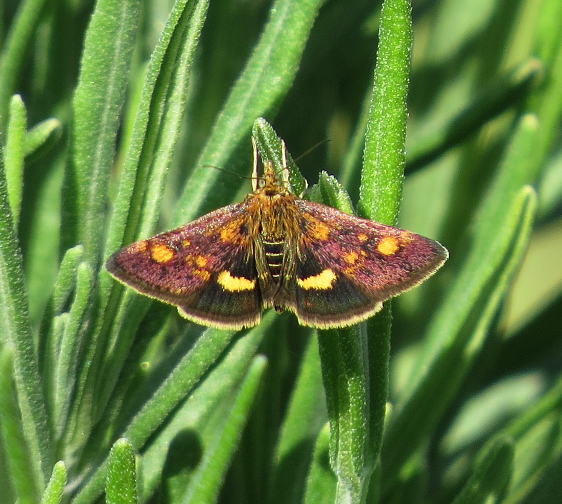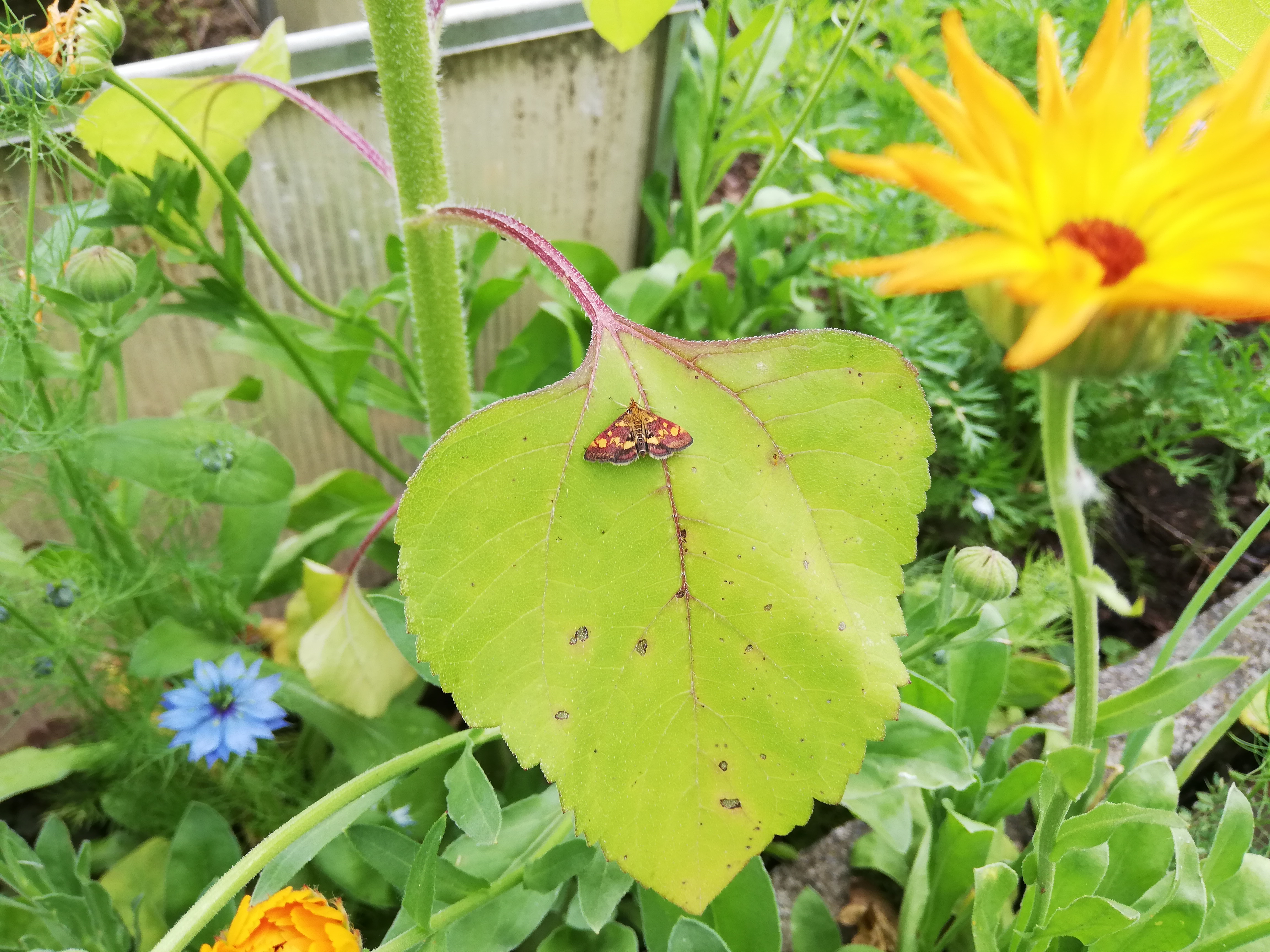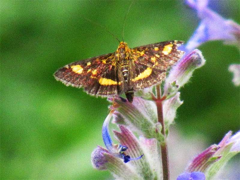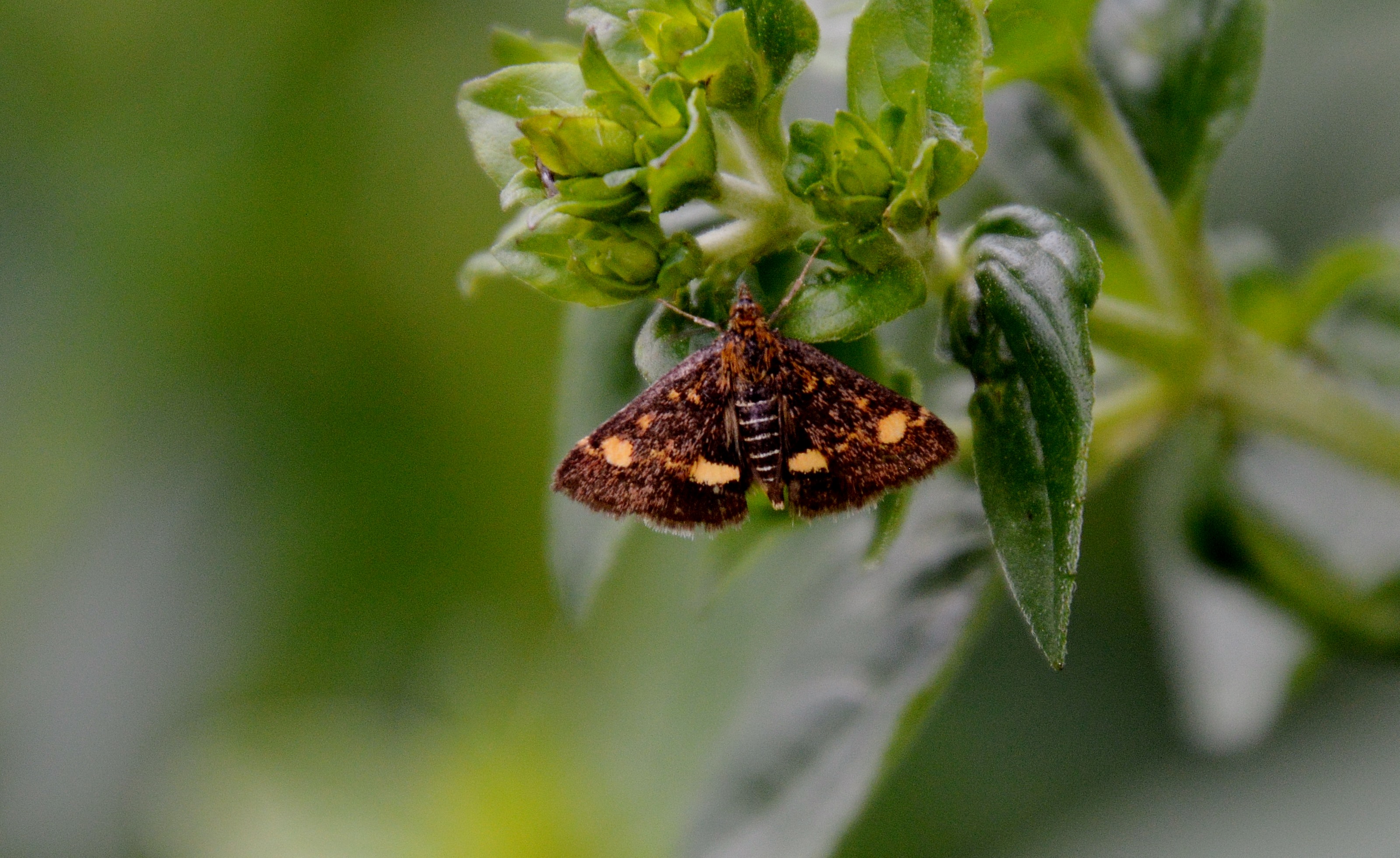 Pyrausta aurata, in Hoyerswerda, Klein Neida, Tagfund, Garten, Mitte Juli 2017