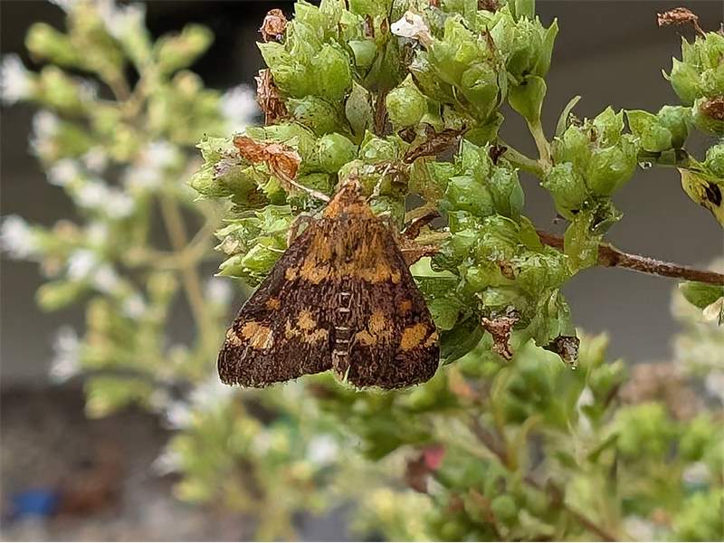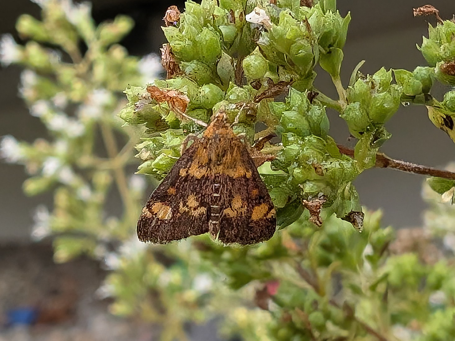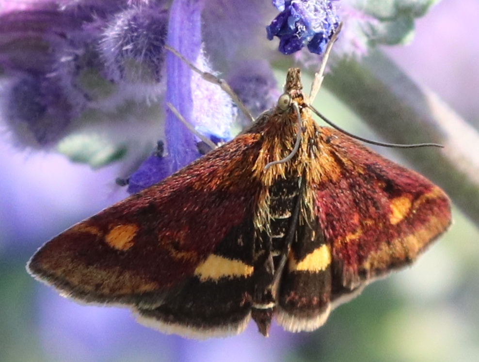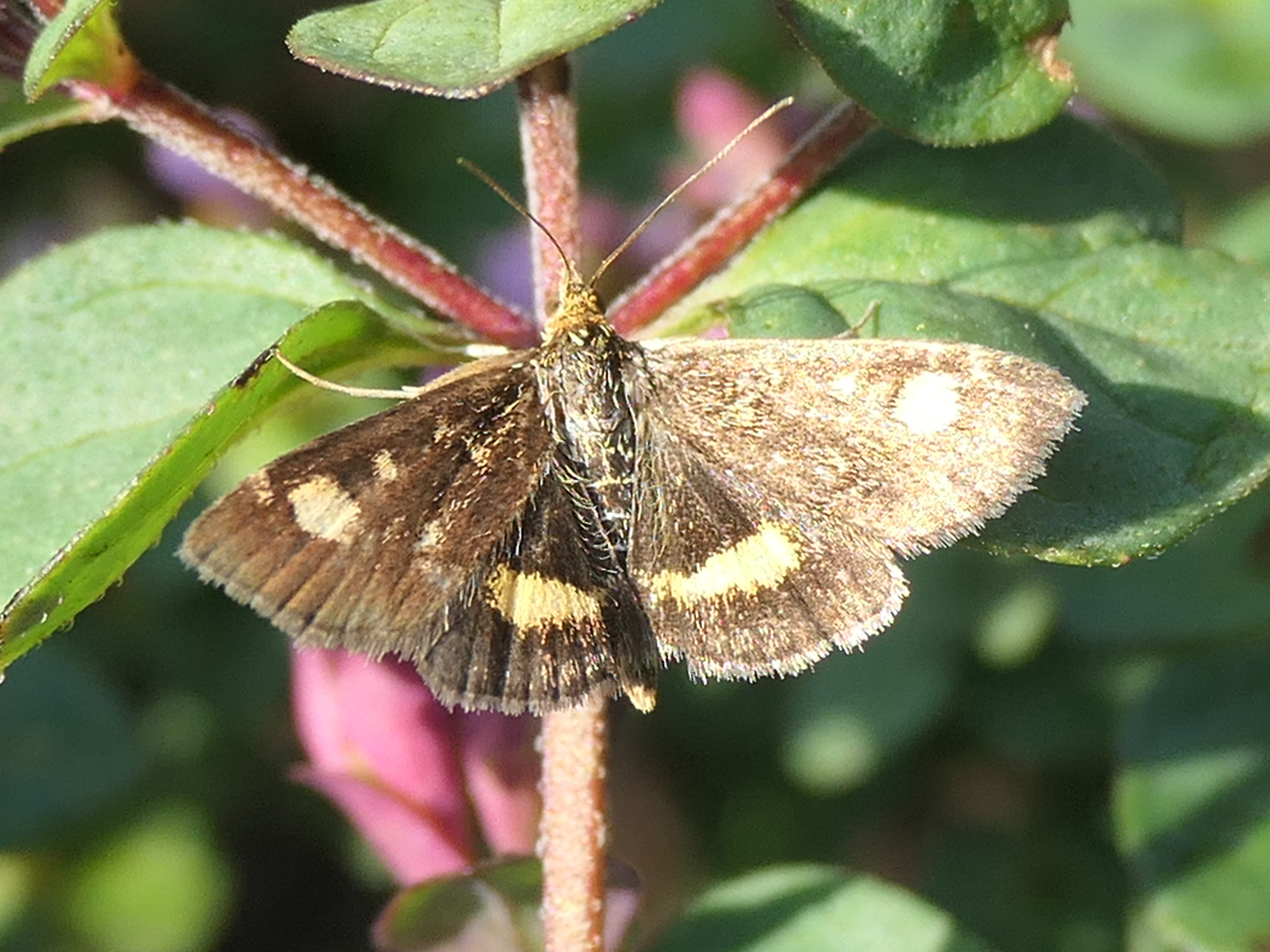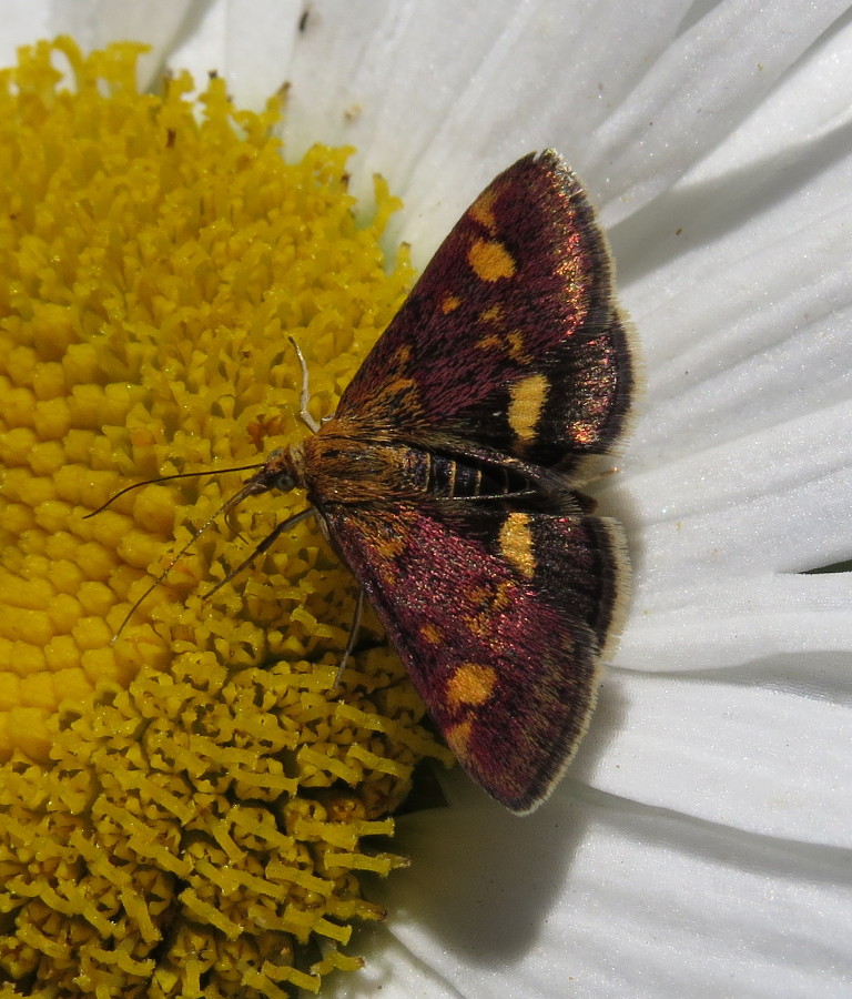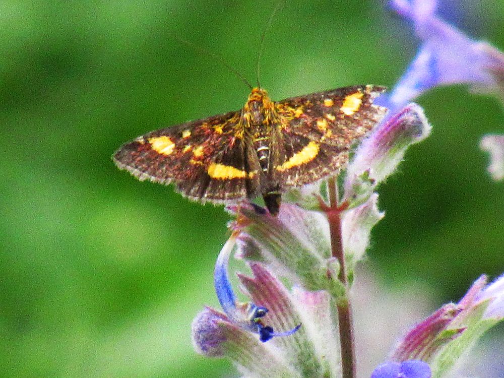 Pyrausta aurata, in Hoyerswerda, Klein Neida, Tagfund, Garten, Mitte Juli 2017