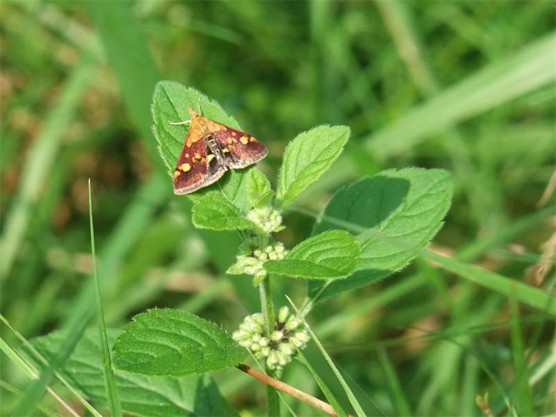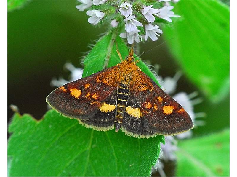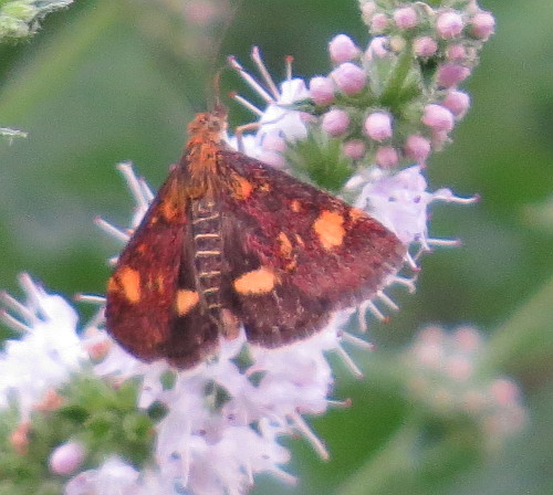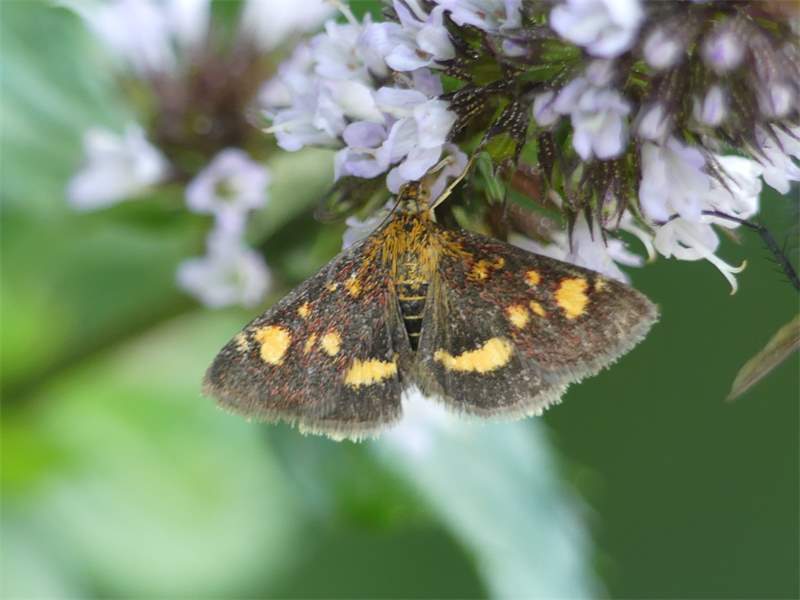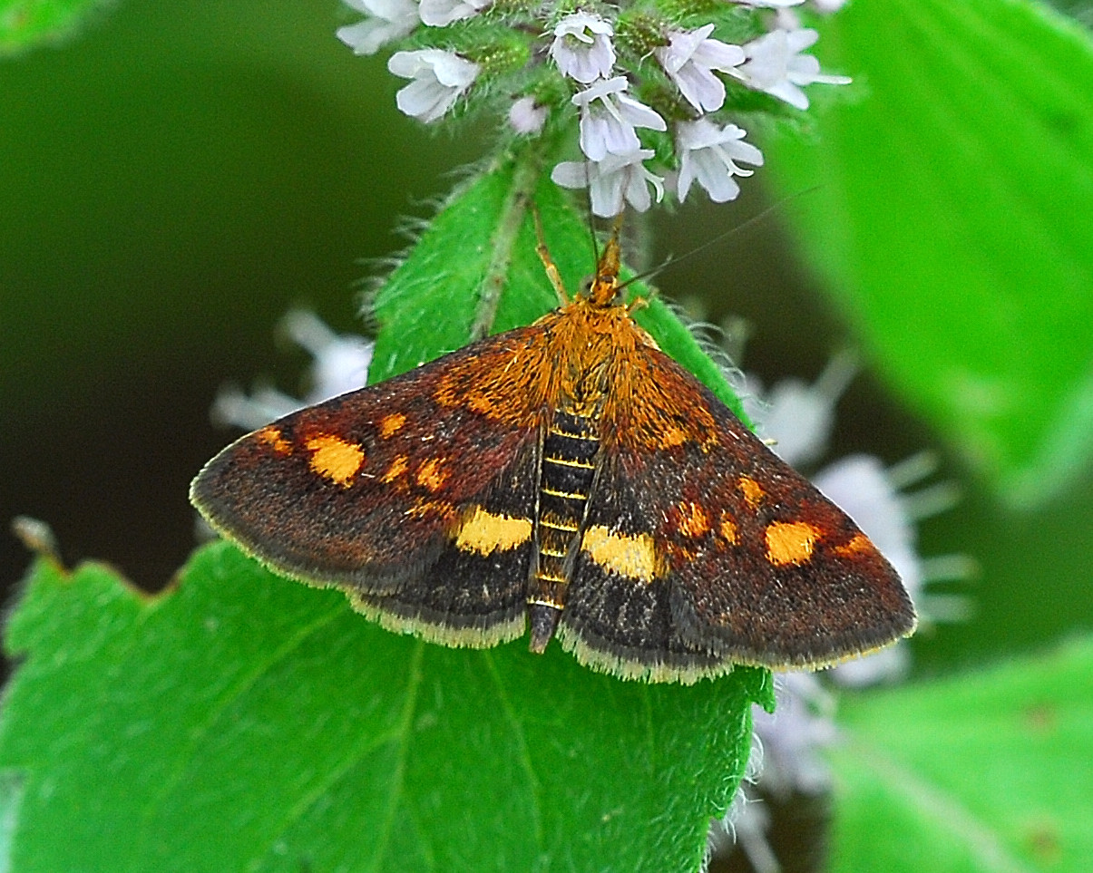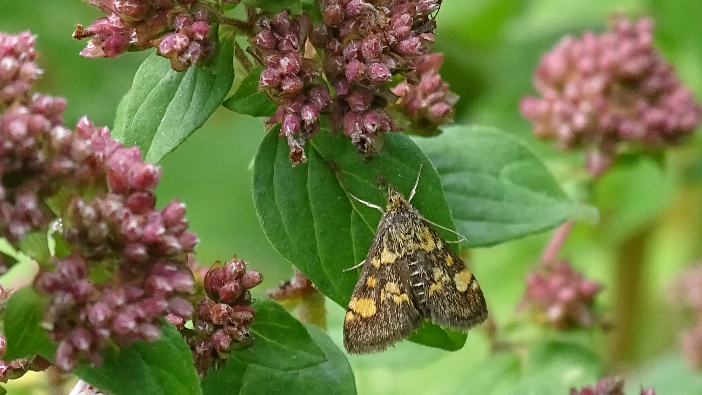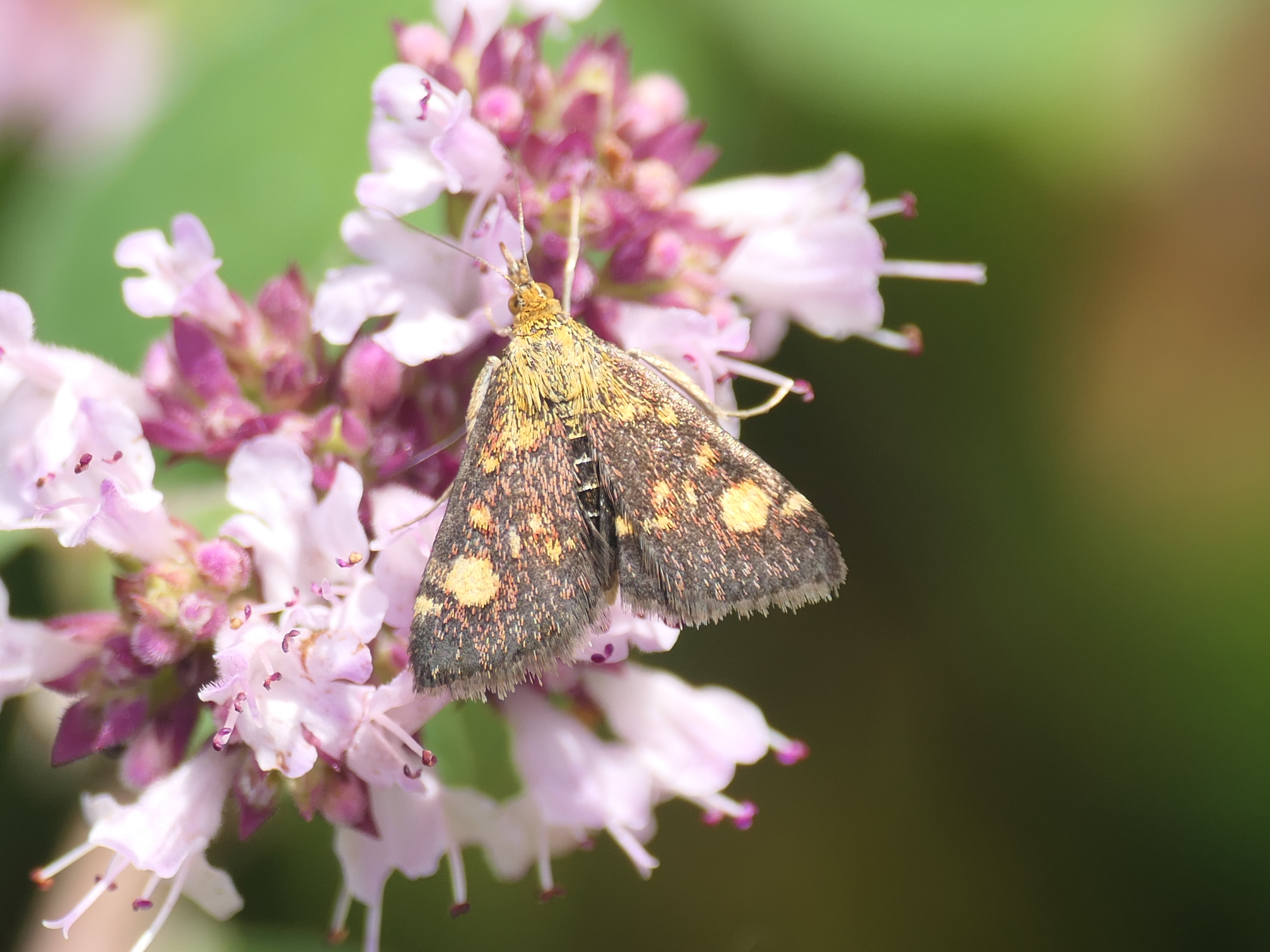 Niederwürschnitz, 20.08.2020 Pyrausta aurata (SCOPOLI, 1763) - Goldzünsler im Hausgarten an Minze