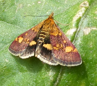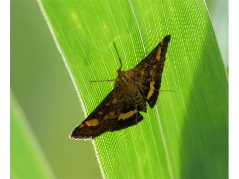 Pyrausta aurata im Juni 2 106 in Delitzsch in der Uferzone des Lobers