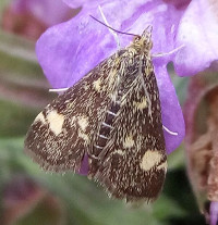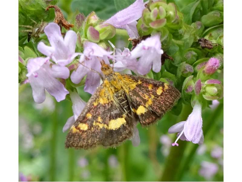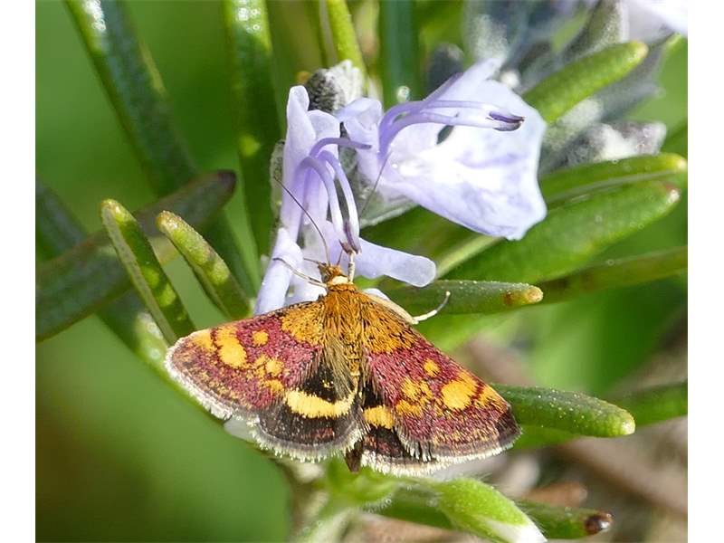 Pyrausta aurata Ende April 2019 in Mecklenburg auf Salbei