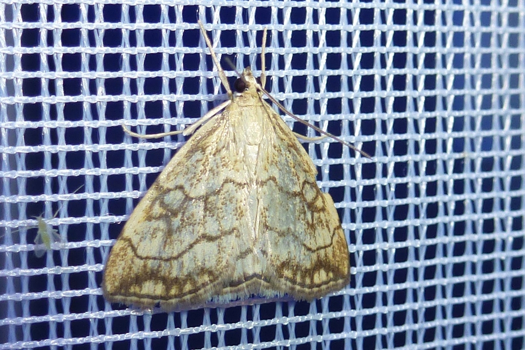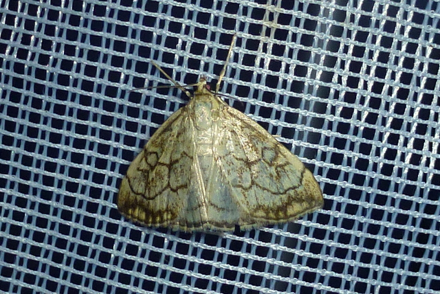 Kleiner Kohlzünsler im August 2015, Nachts bei Kunstlicht, Radeberg