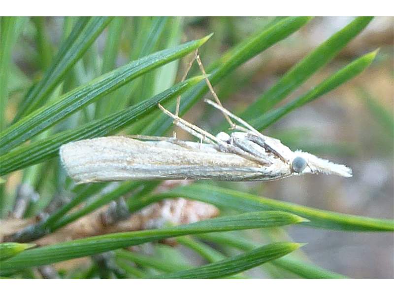 Beleg von Agriphila tristella, lockerer Kiefernaufwuchs bei Commerau, Mitte August 1996