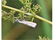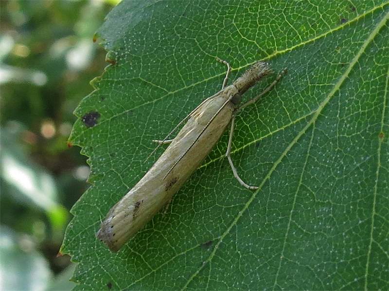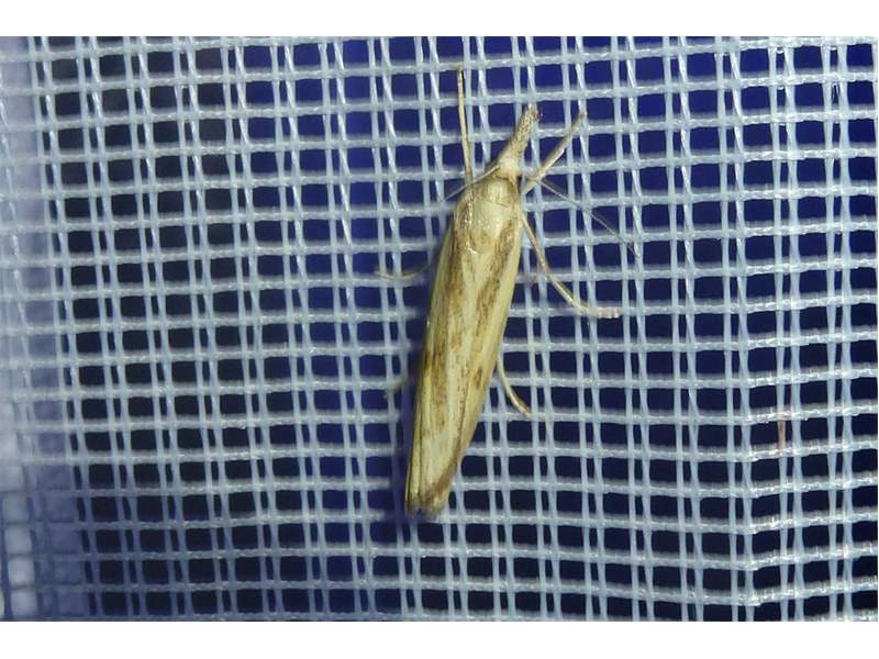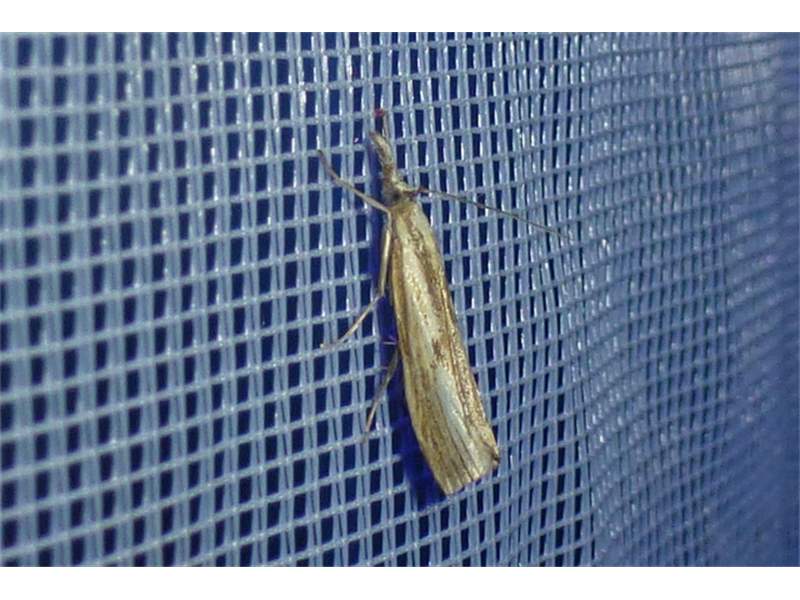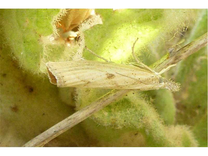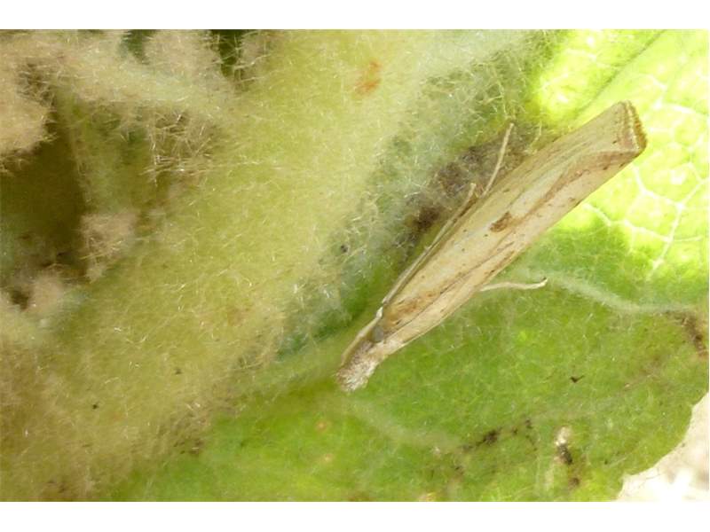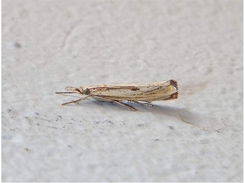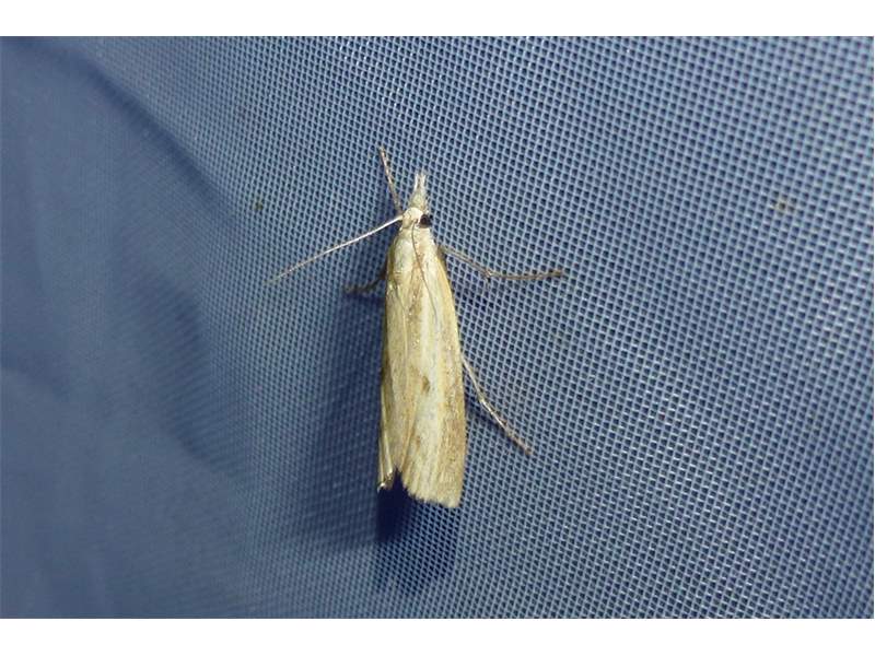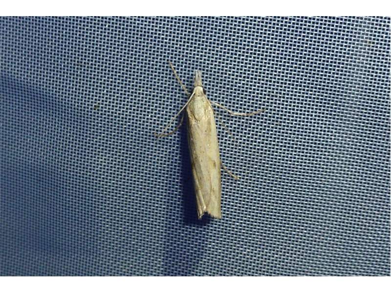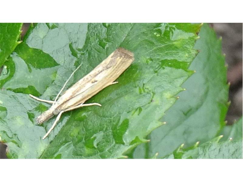 Agriphila inquinatella, o.dt.N., Chemnitz Planitzwiese-Zeisigwald, 23.8.2018, am Glasfenster (© Lutz Böttger )( Bild vergrößern)
