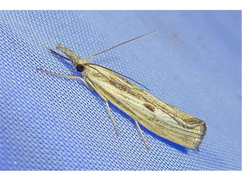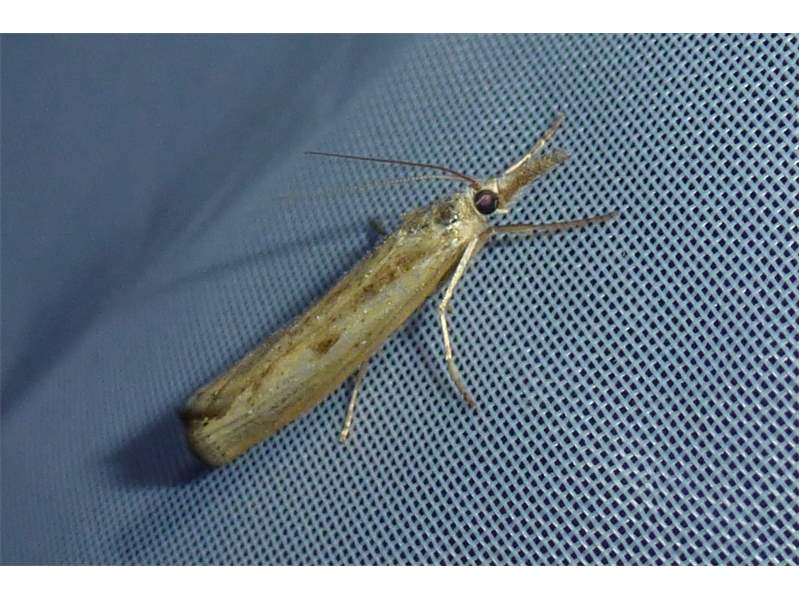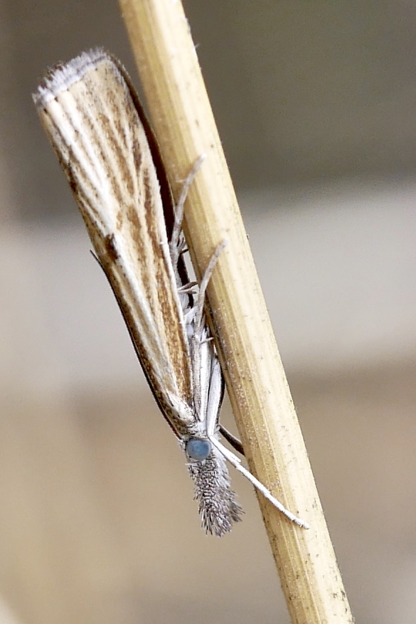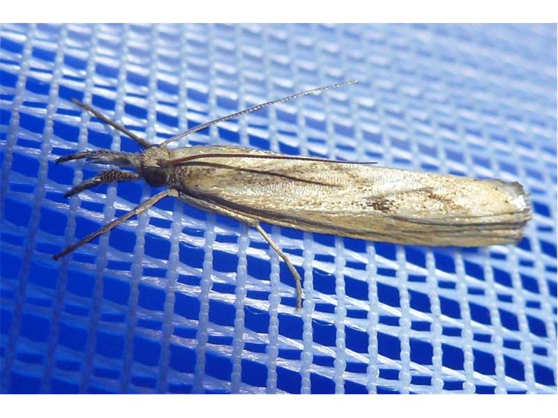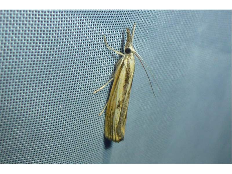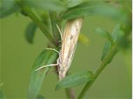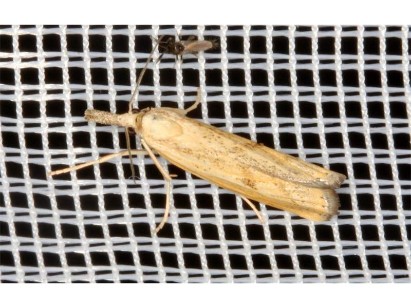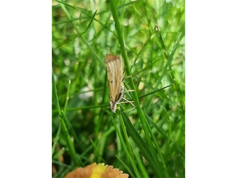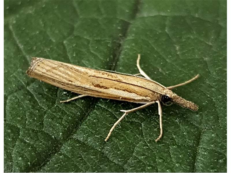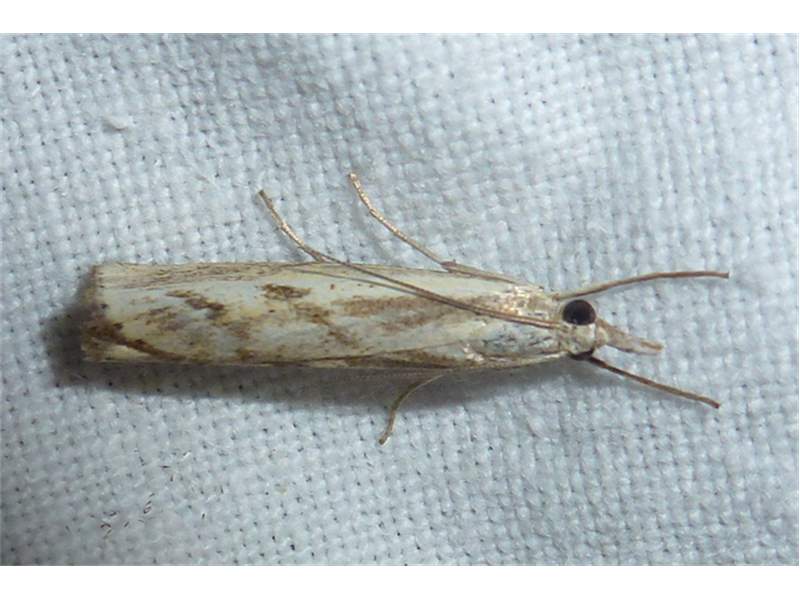 Agriphila inquinatella, o.dt.N., Chemnitz Planitzwiese-Zeisigwald, 23.8.2018, am Glasfenster (© Lutz Böttger )( Bild vergrößern)