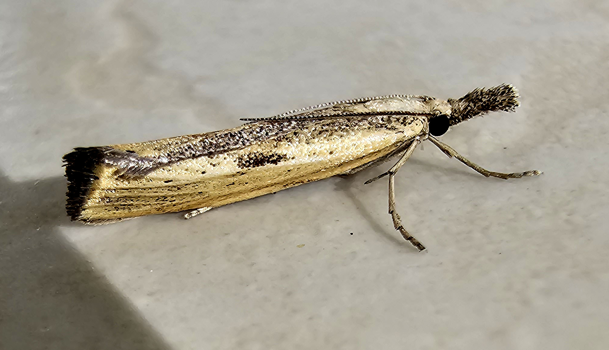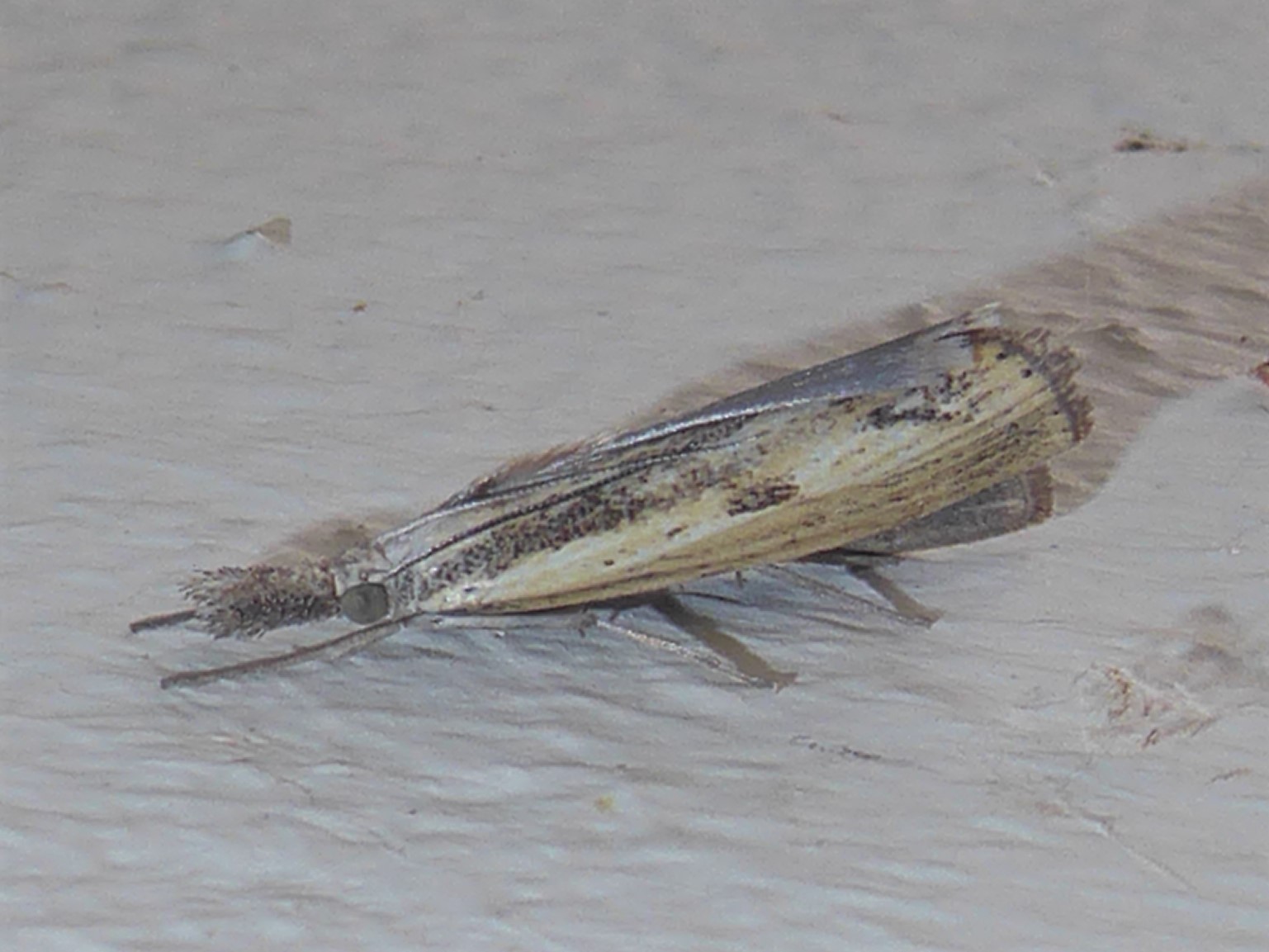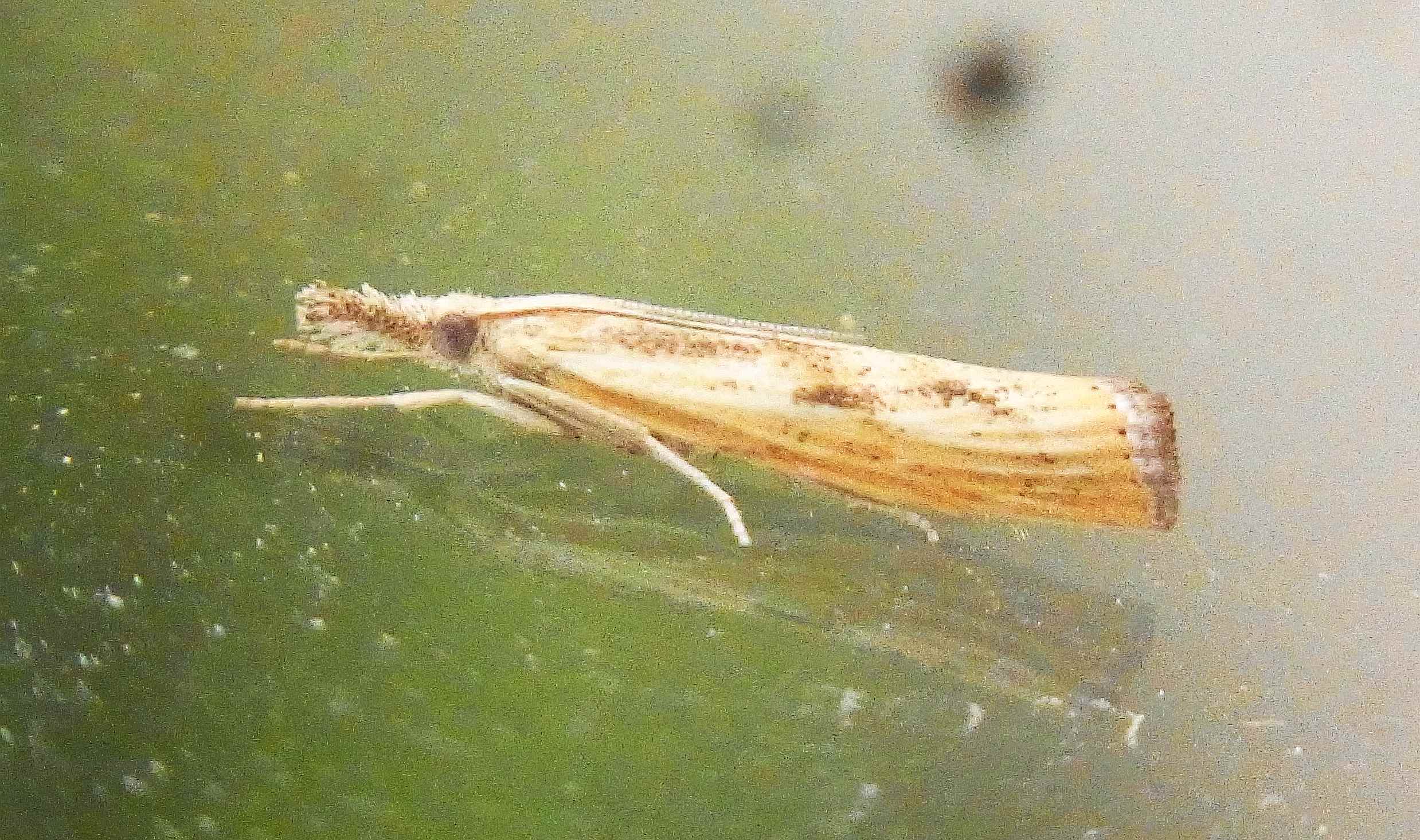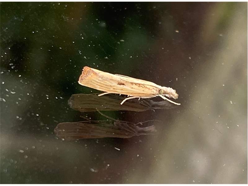 Agriphila inquinatella, o.dt.N., Chemnitz Planitzwiese-Zeisigwald, 23.8.2018, am Glasfenster