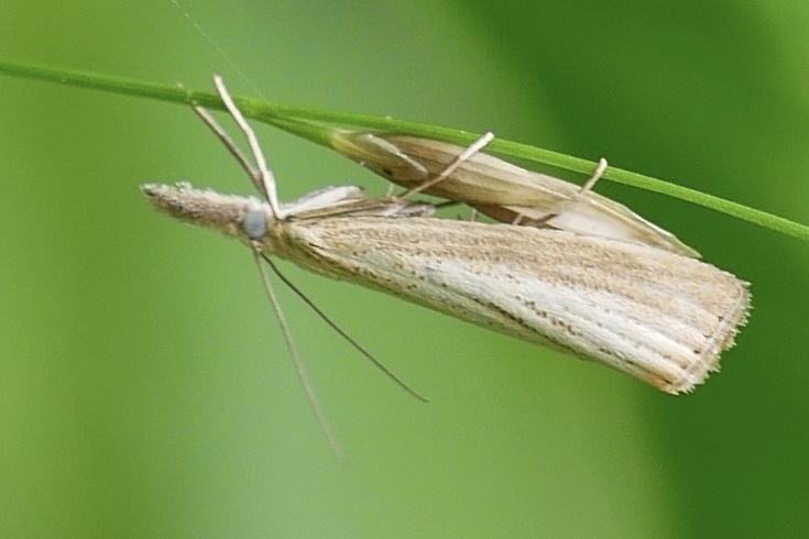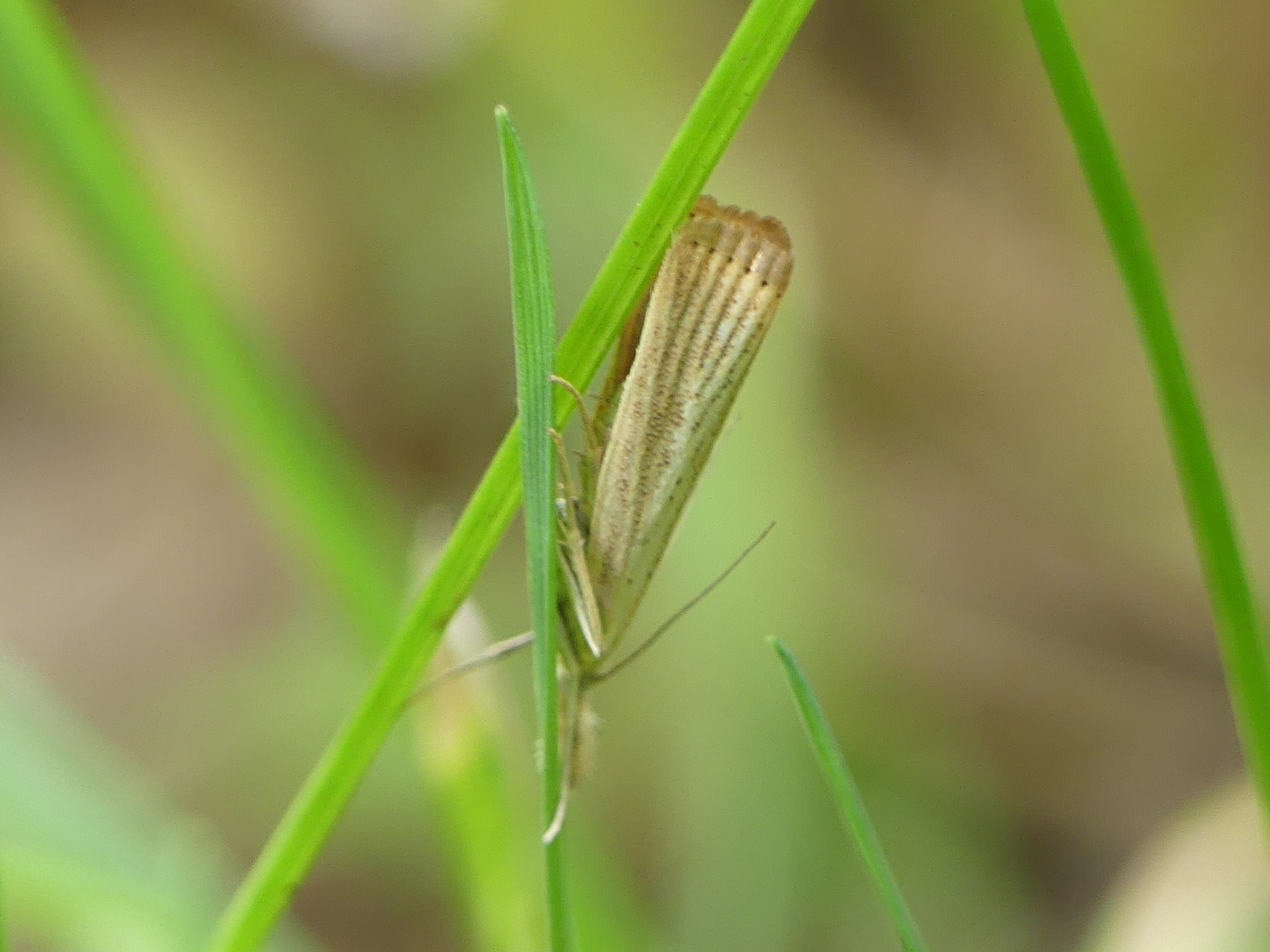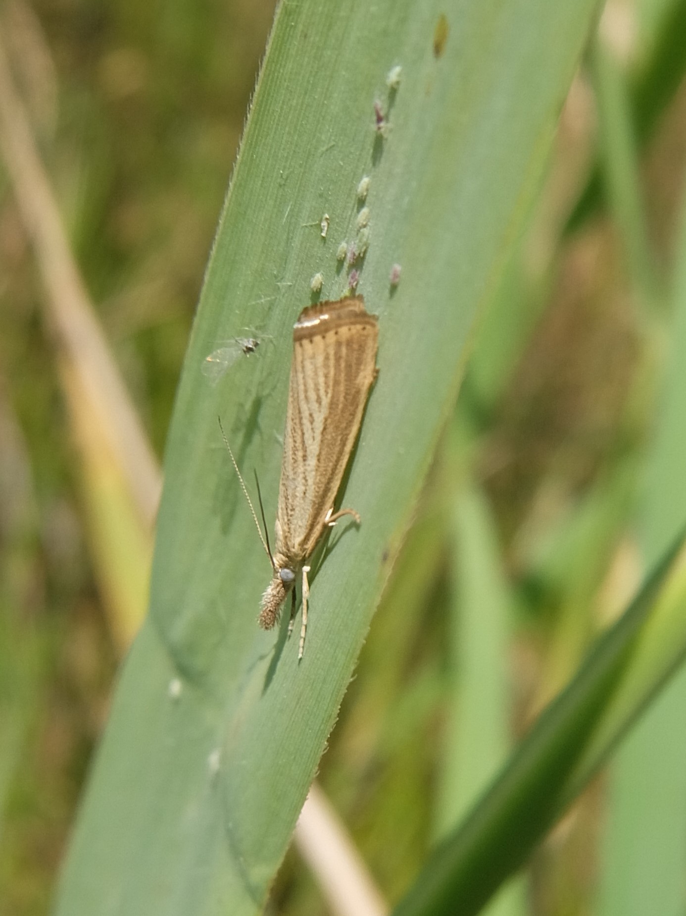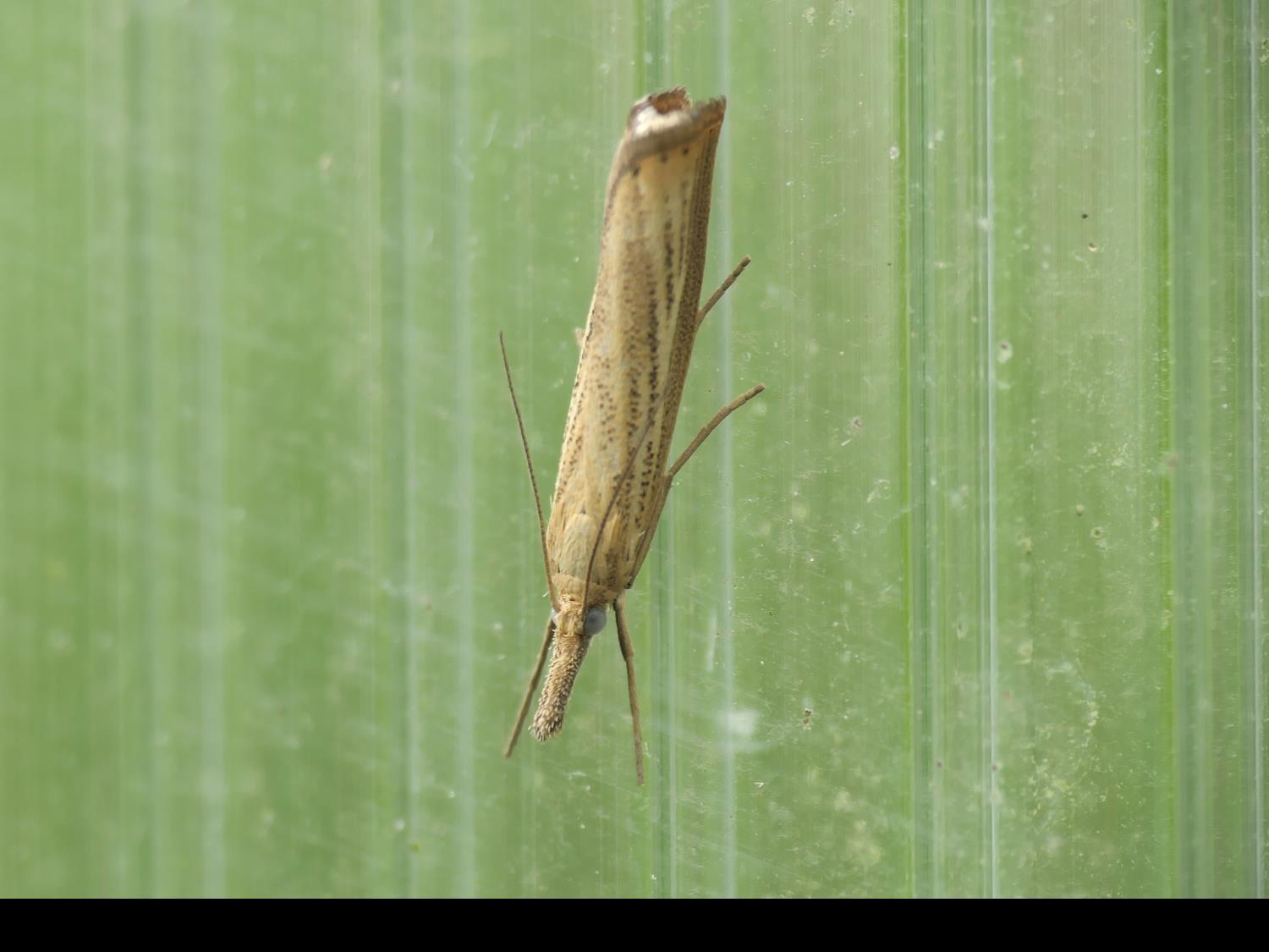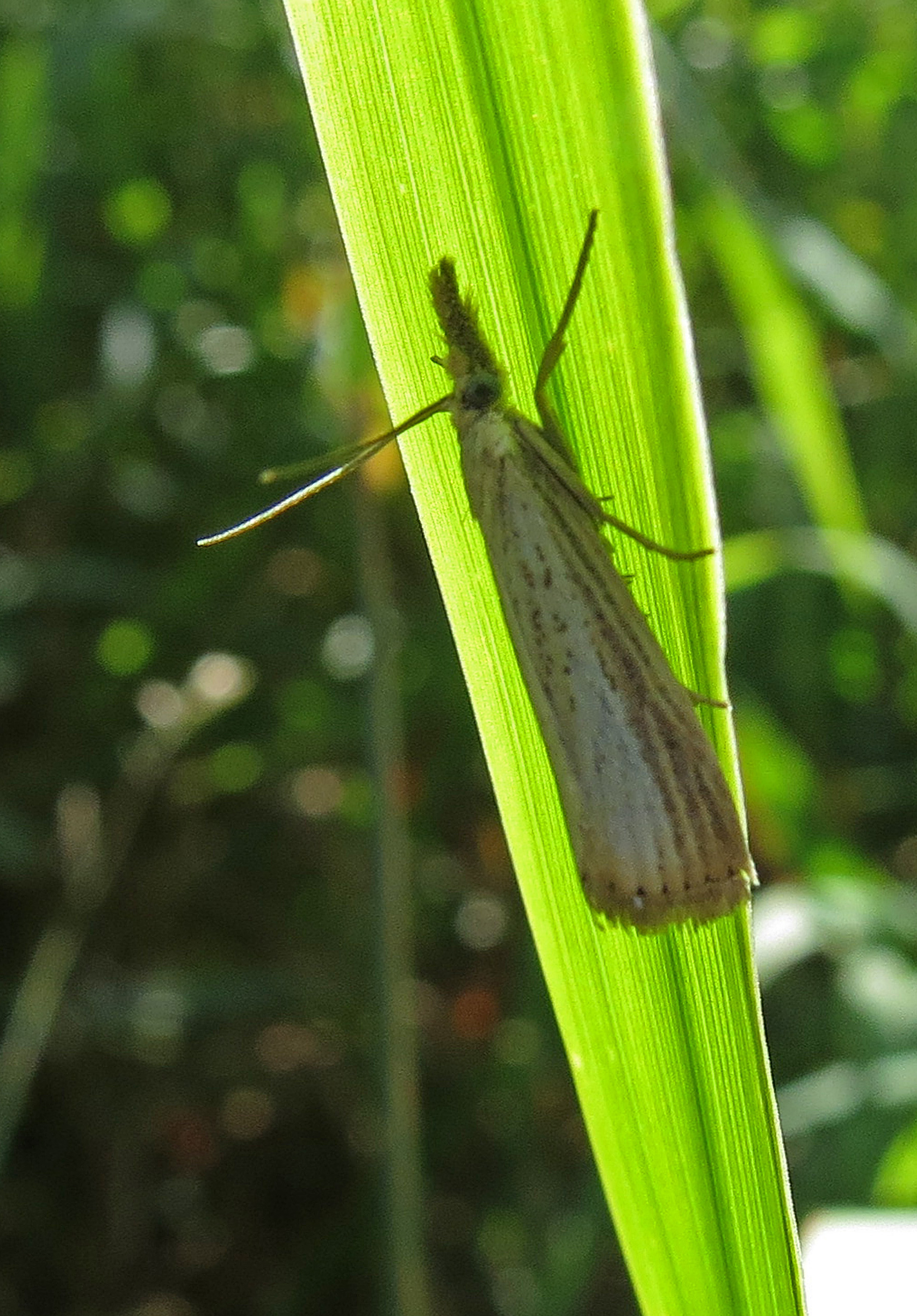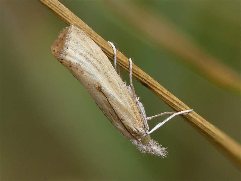 Agriphila straminella (Denis & Schiffermüller, 1775), bei Scheibenberg, auf Schilfblatt, 01.08.2018