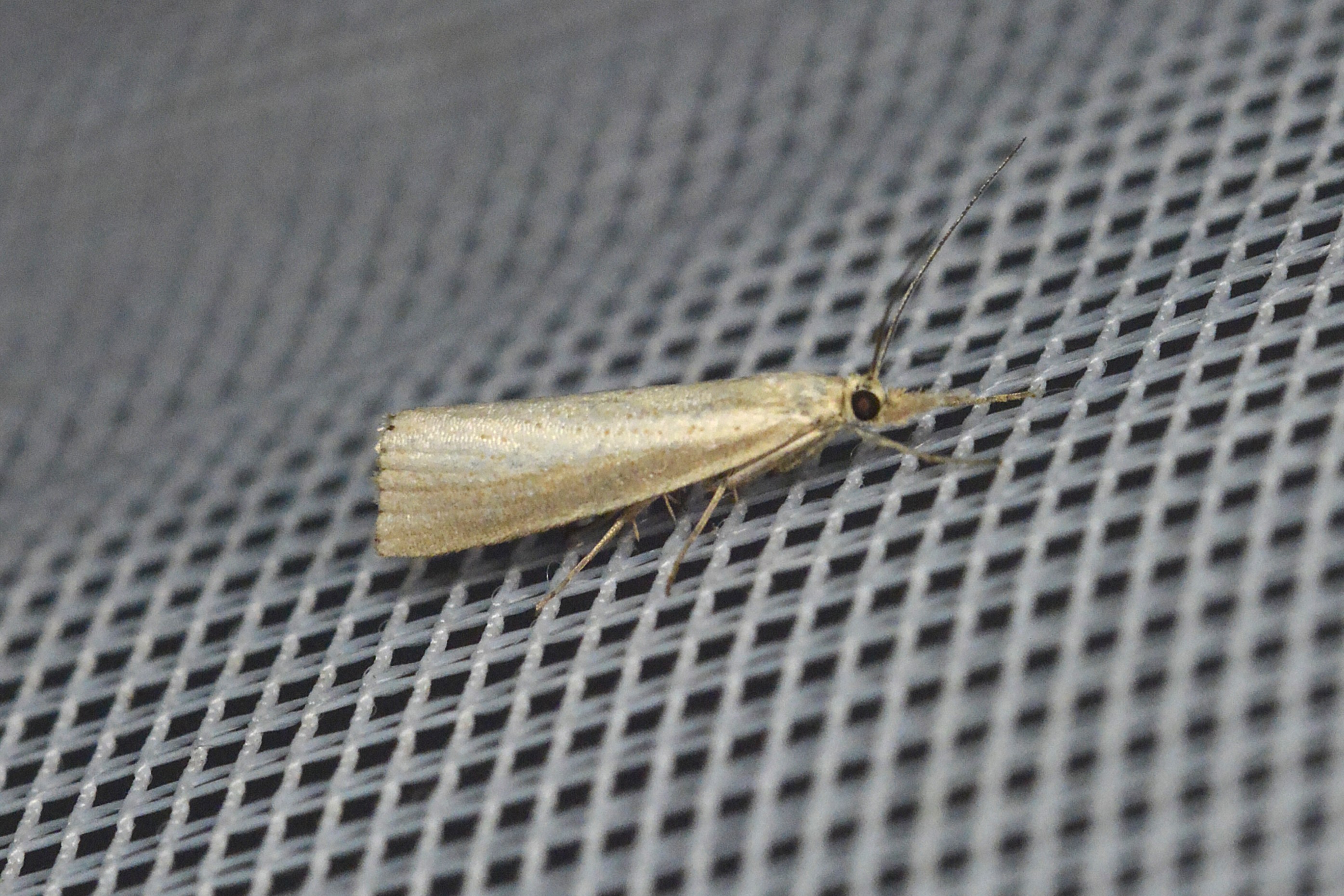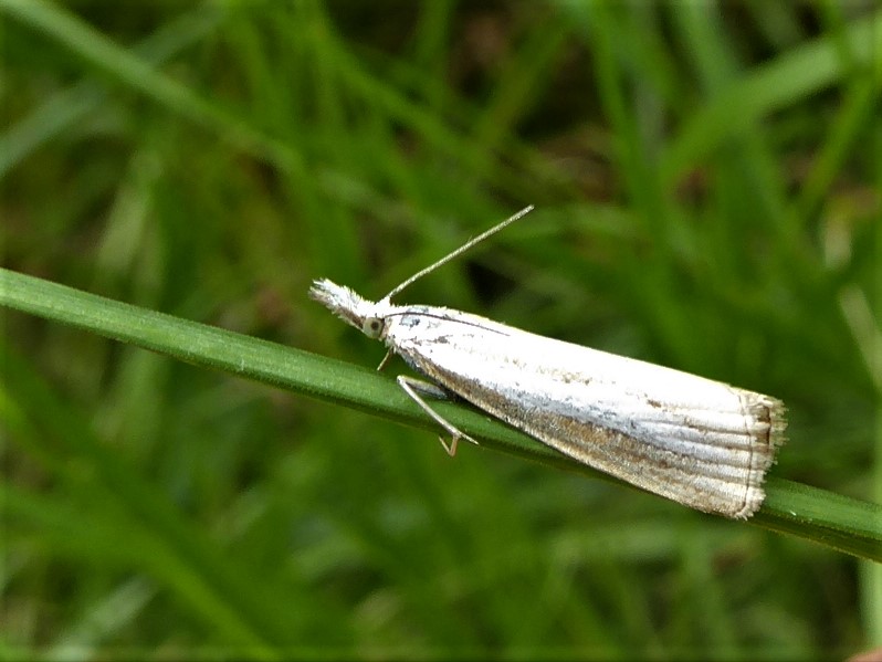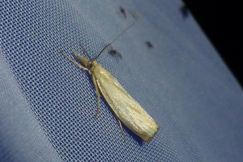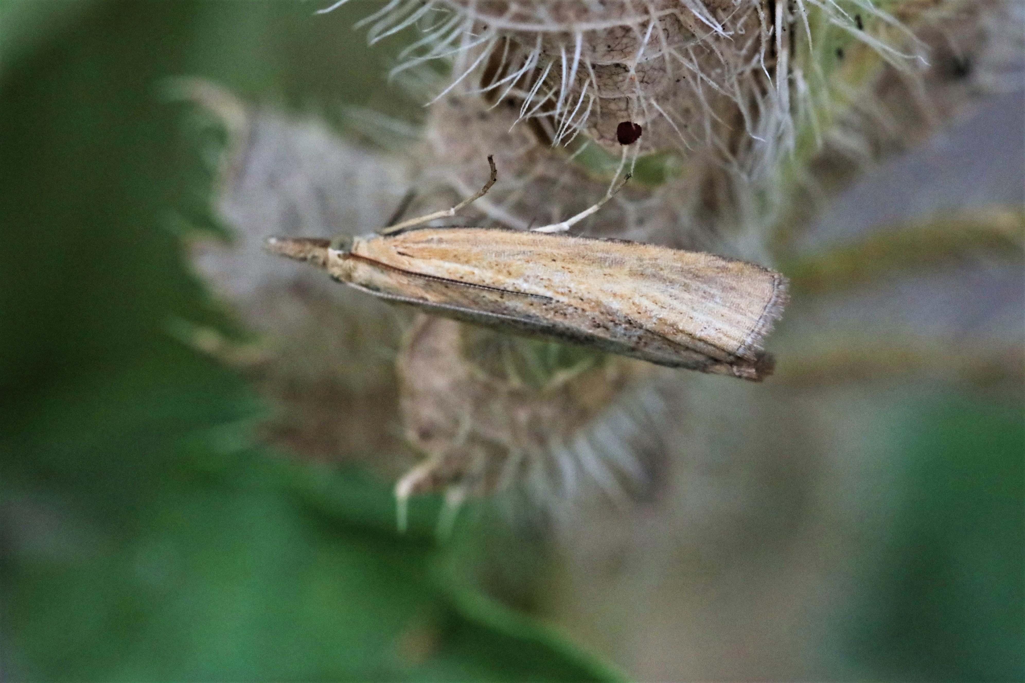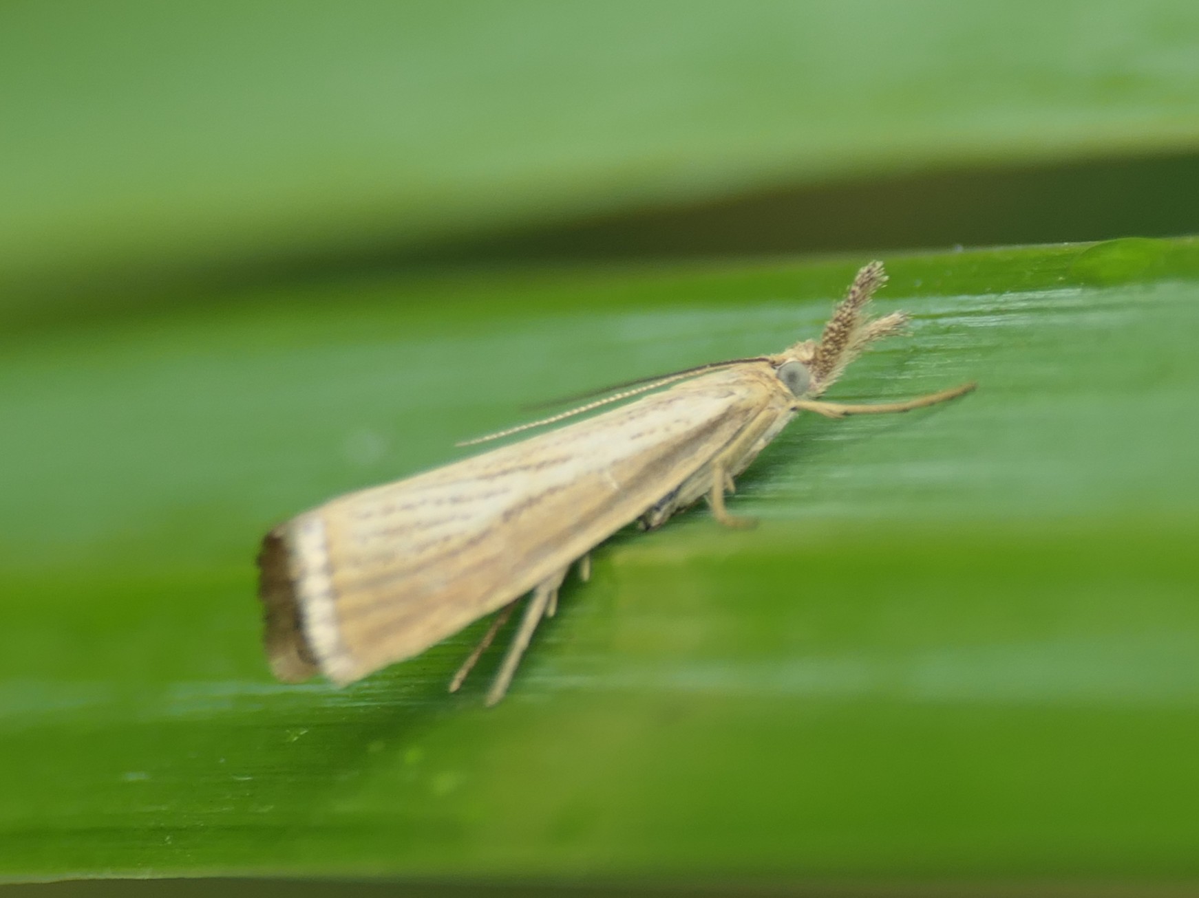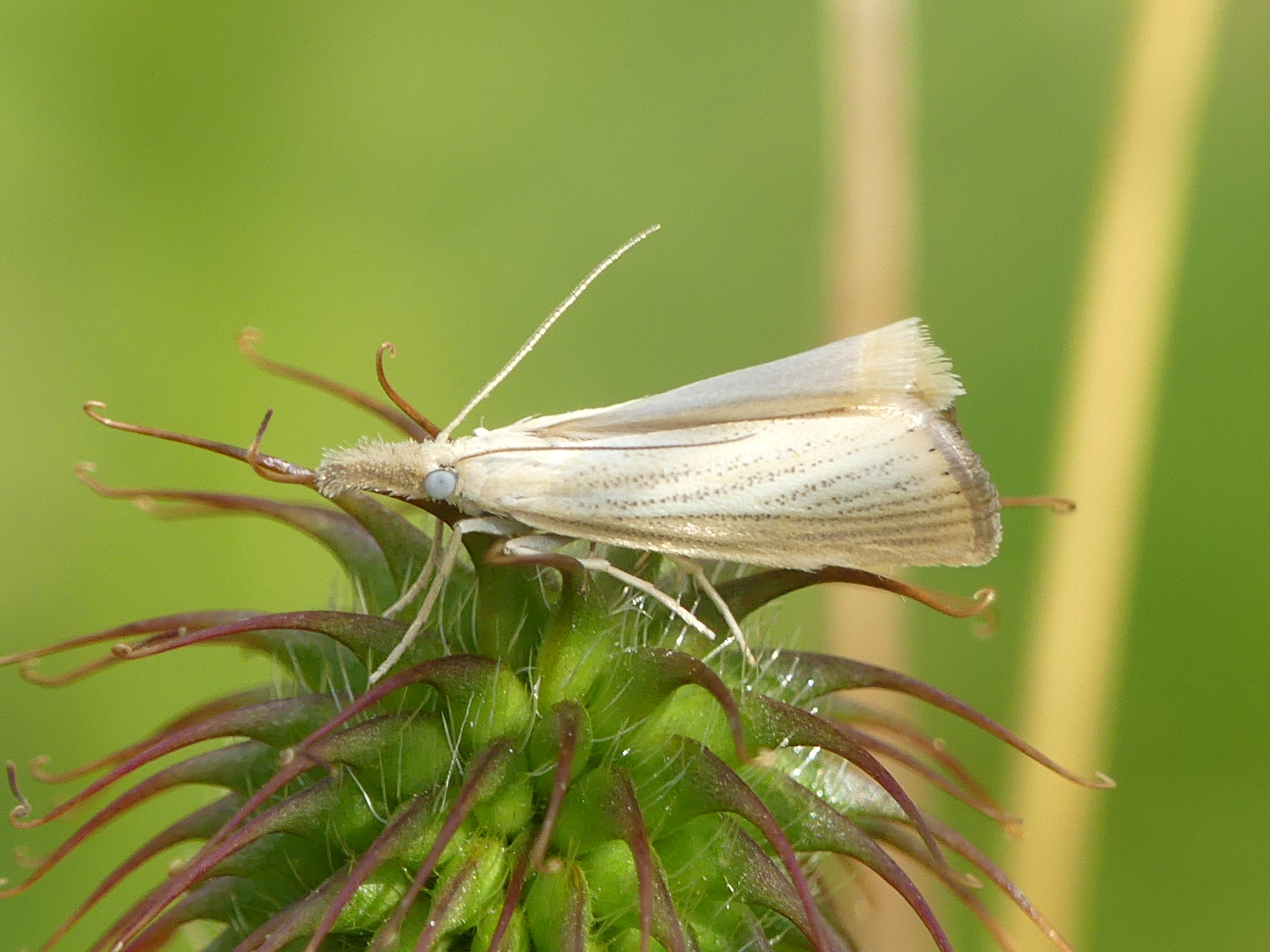 Agriphila straminella (Denis & Schiffermüller, 1775), bei Scheibenberg, auf Schilfblatt, 01.08.2018