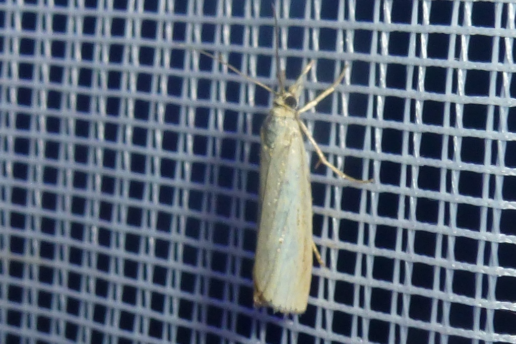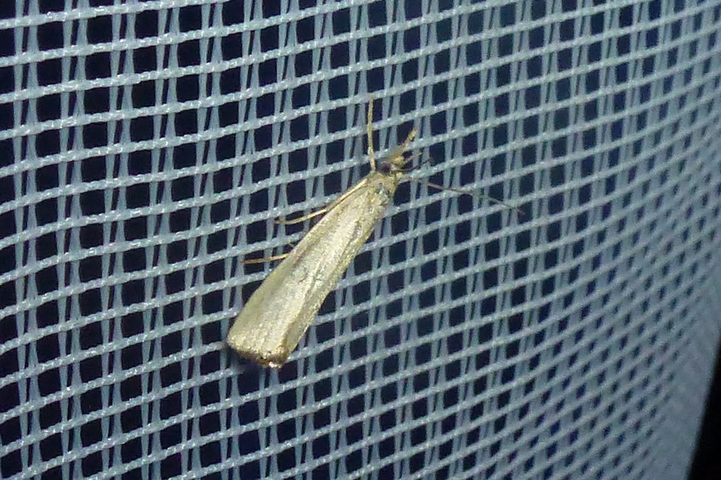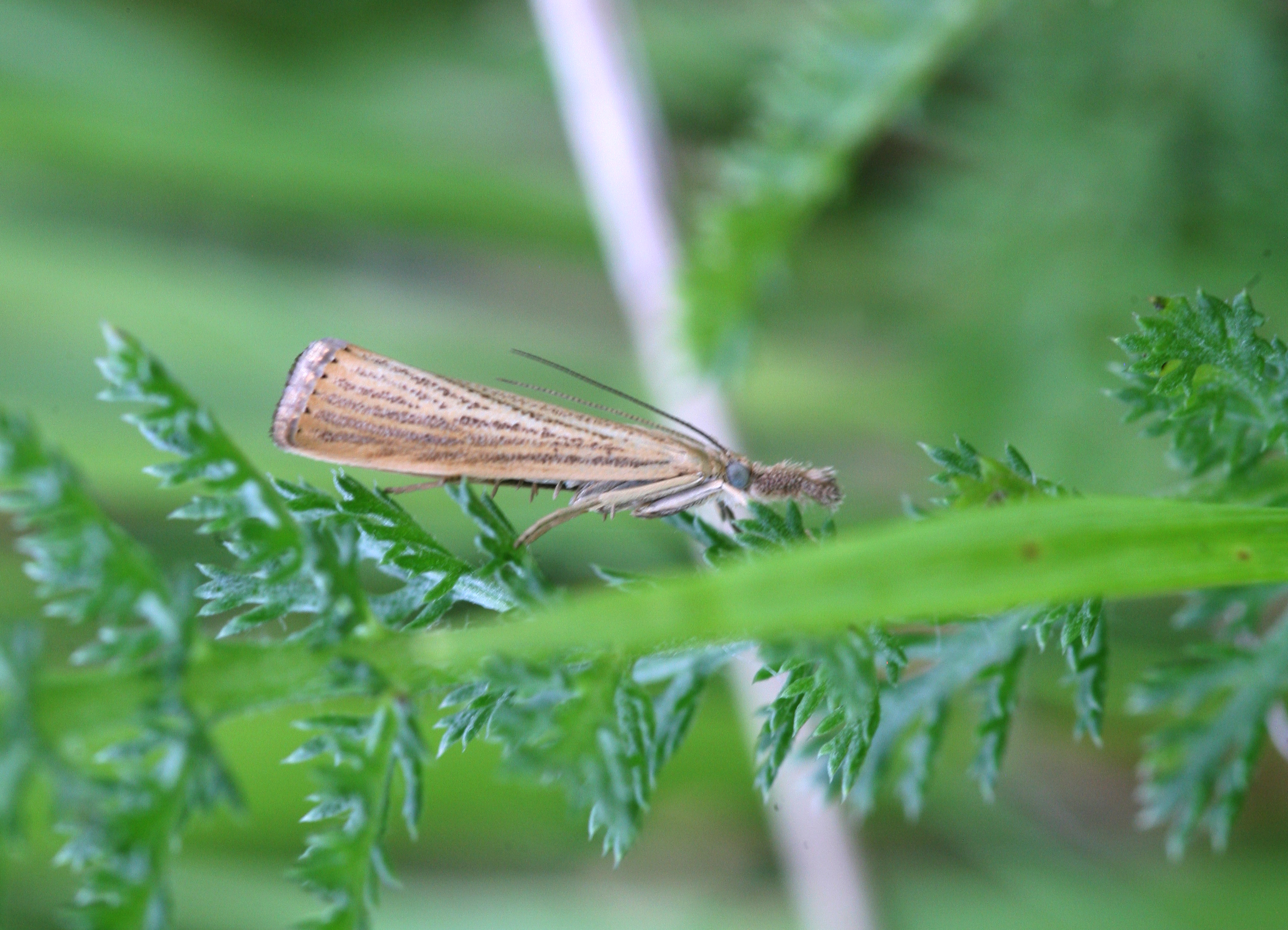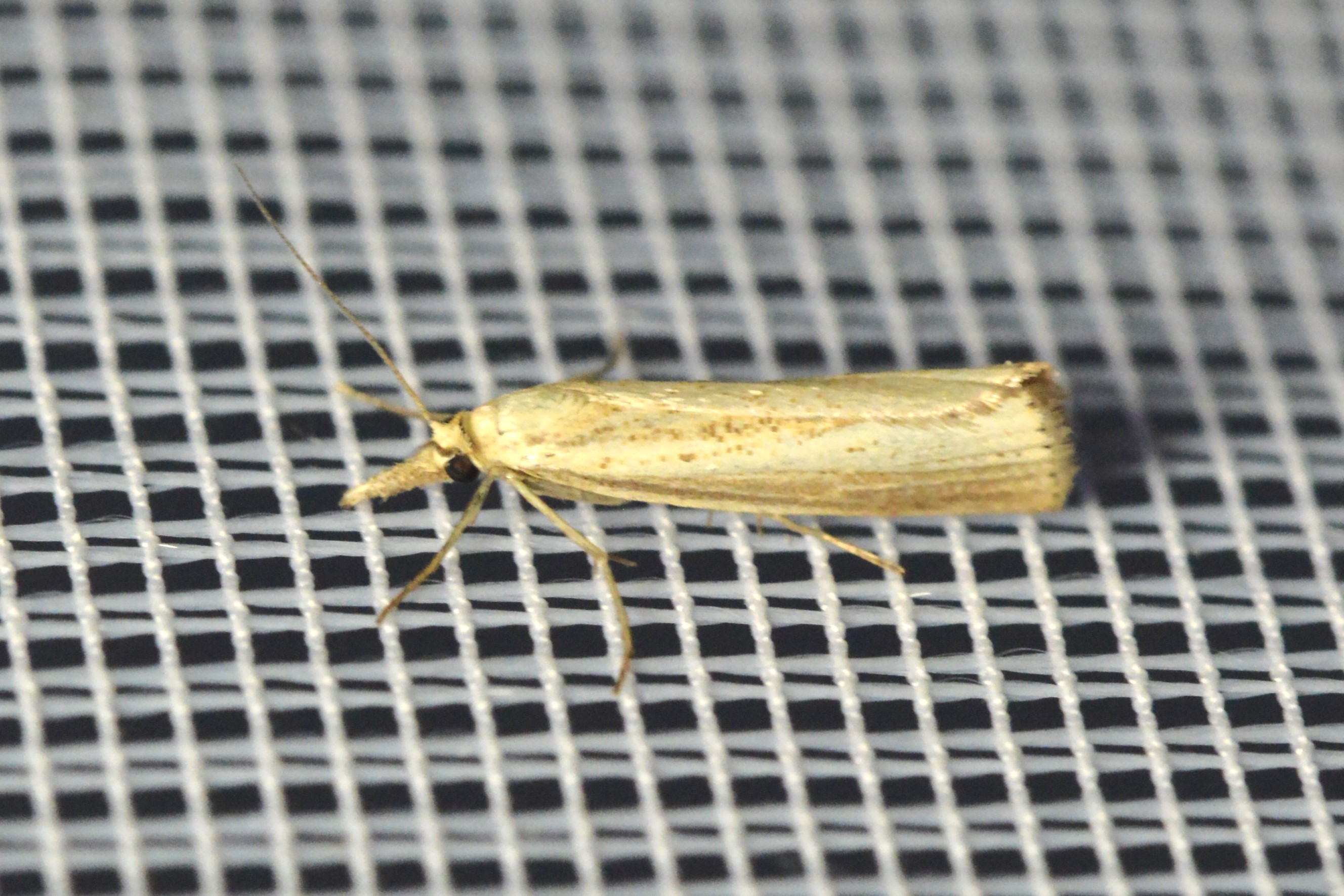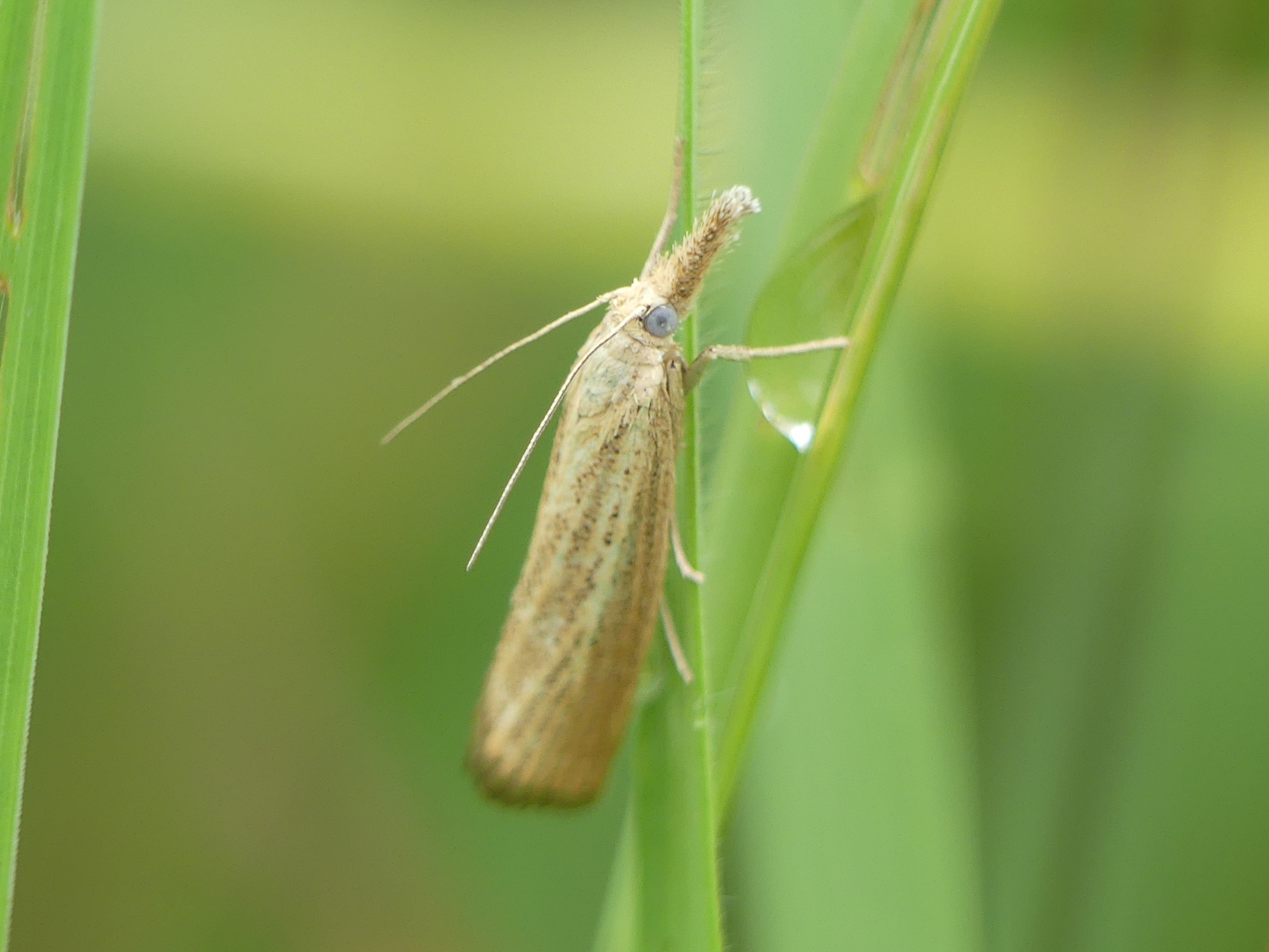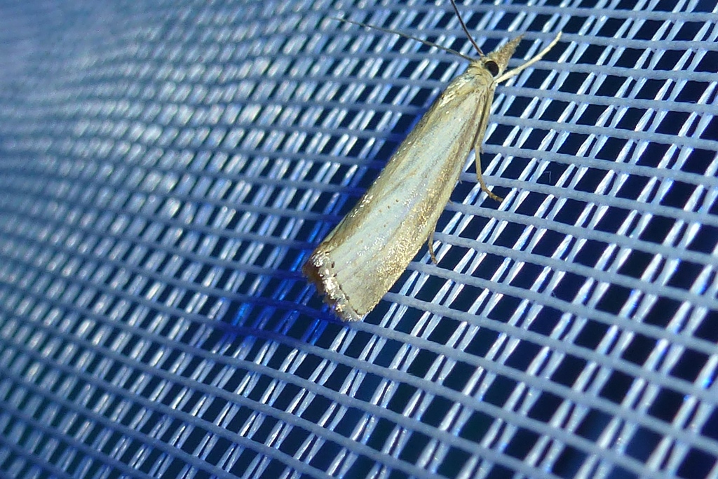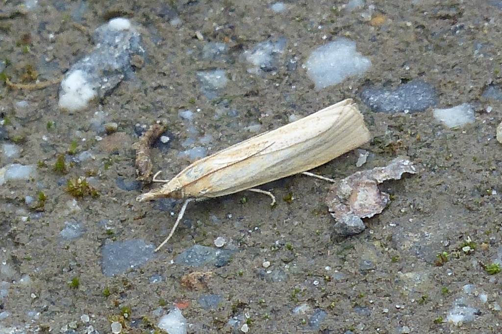 Agriphila straminella (Denis & Schiffermüller, 1775), bei Scheibenberg, auf Schilfblatt, 01.08.2018