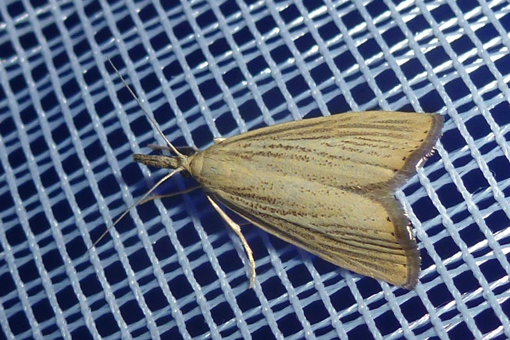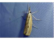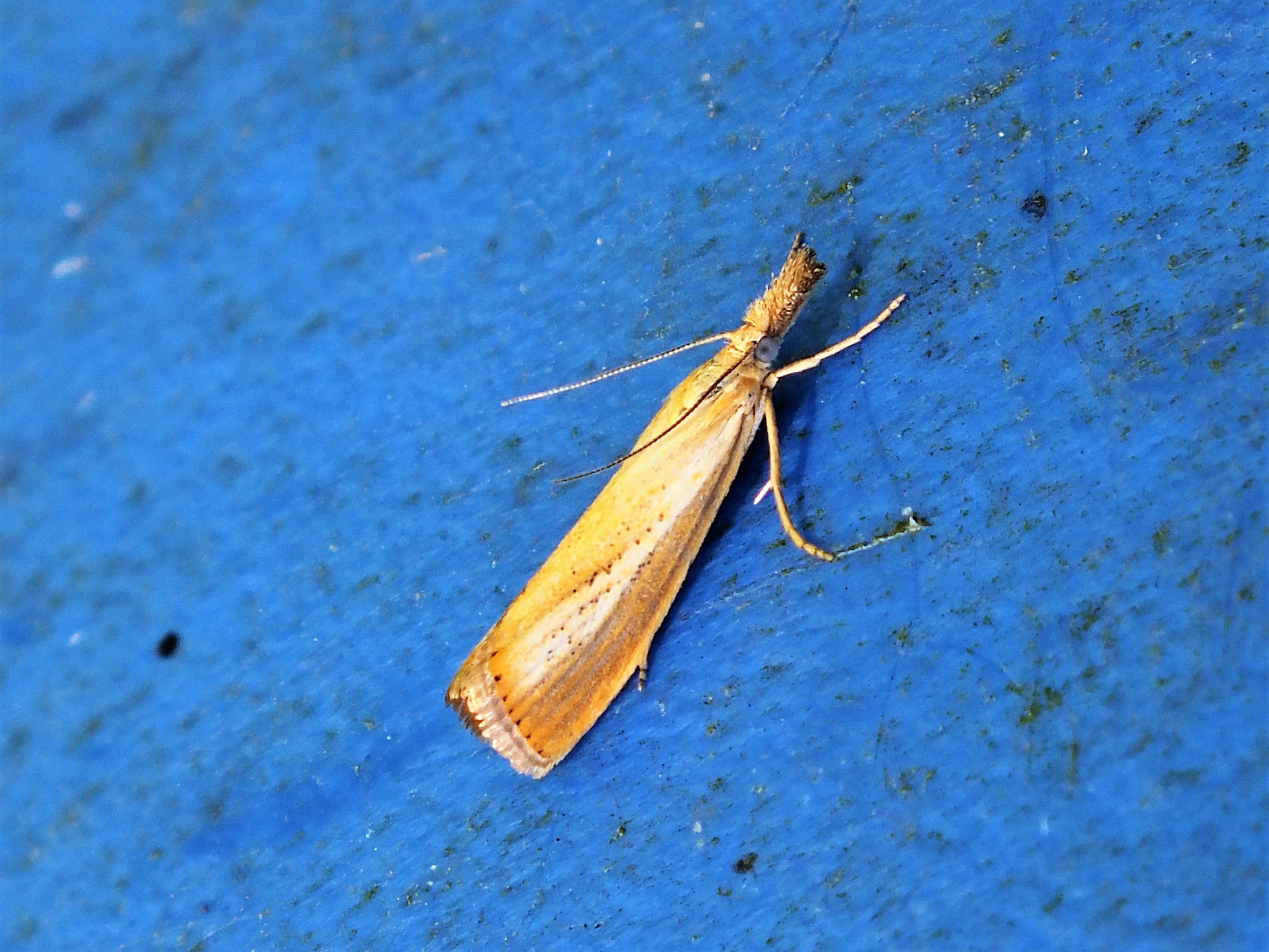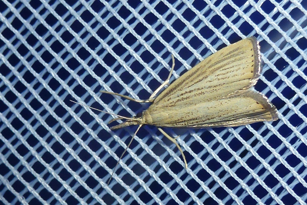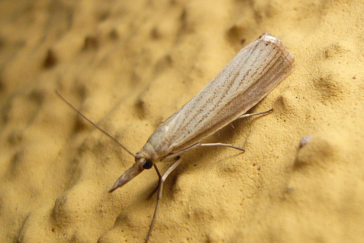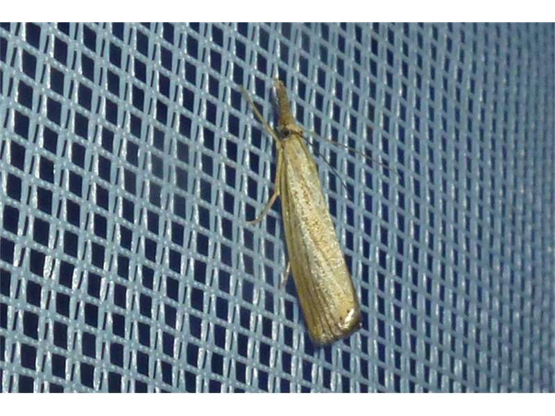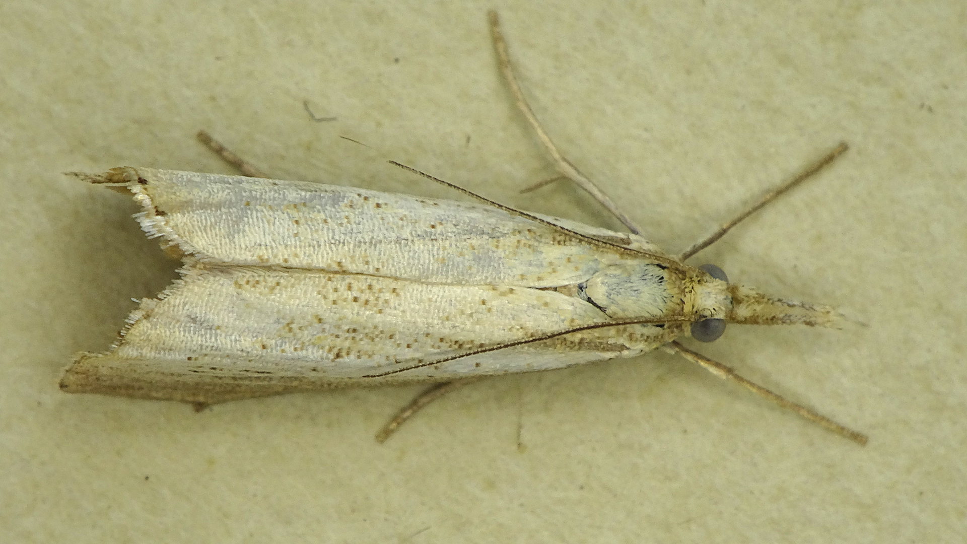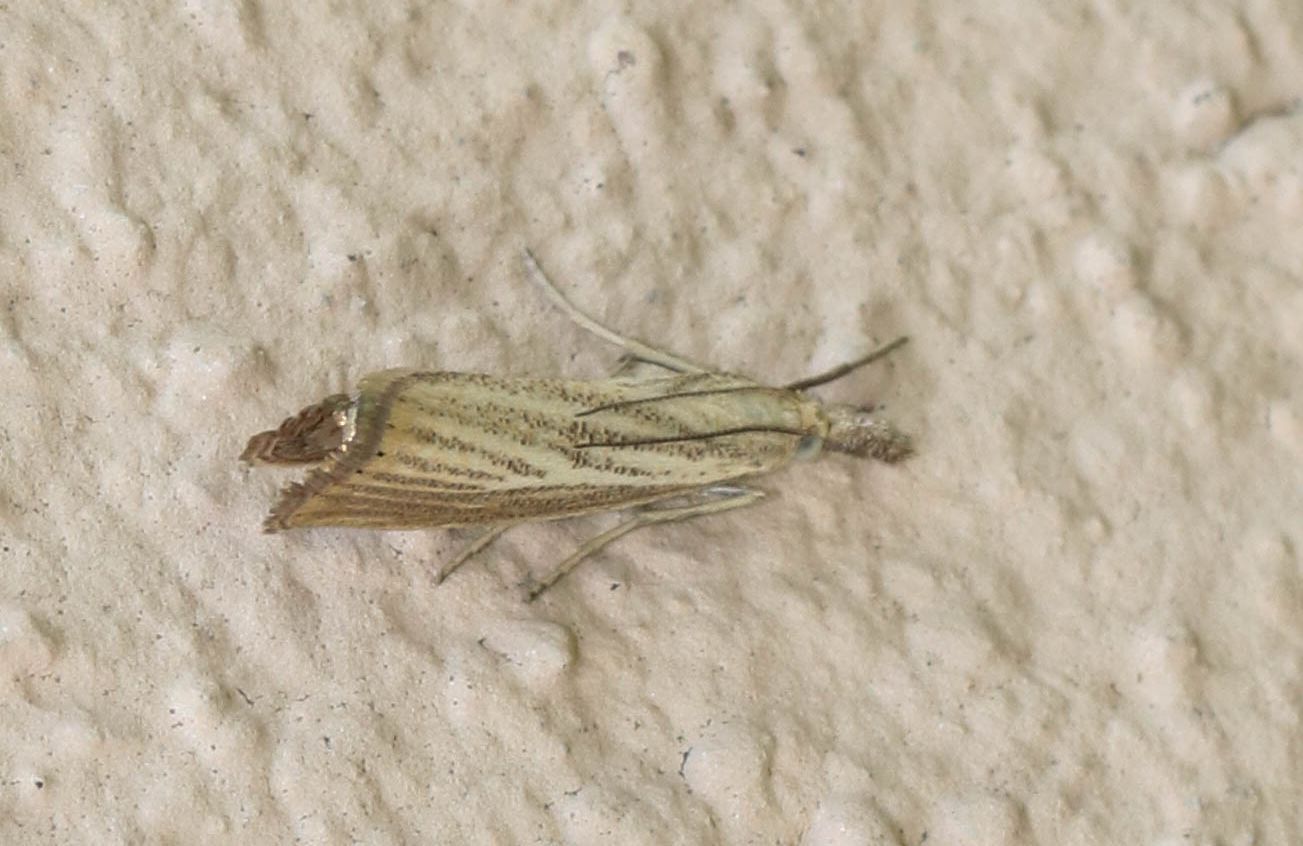 Agriphila straminella (Denis & Schiffermüller, 1775), bei Scheibenberg, auf Schilfblatt, 01.08.2018