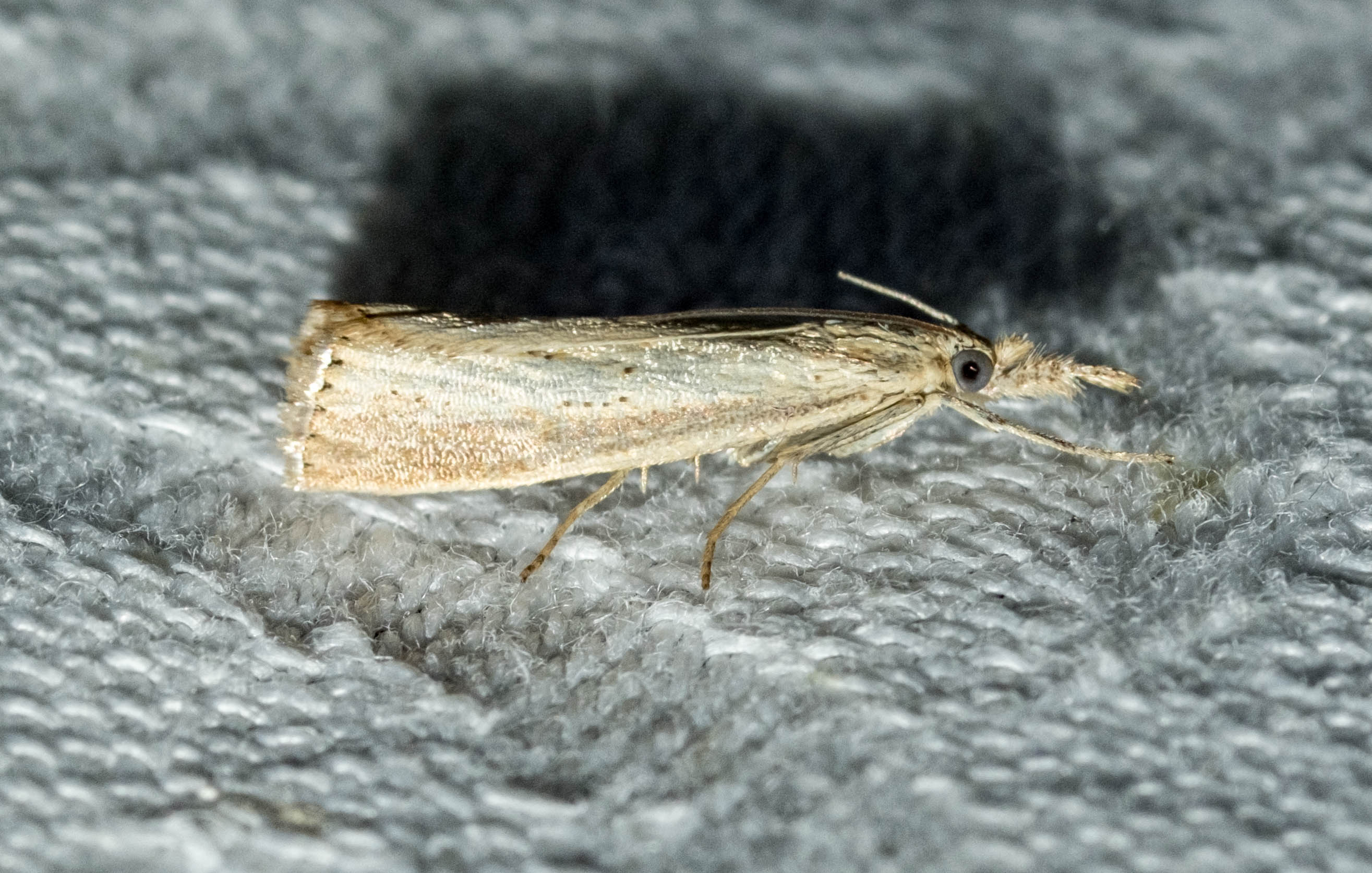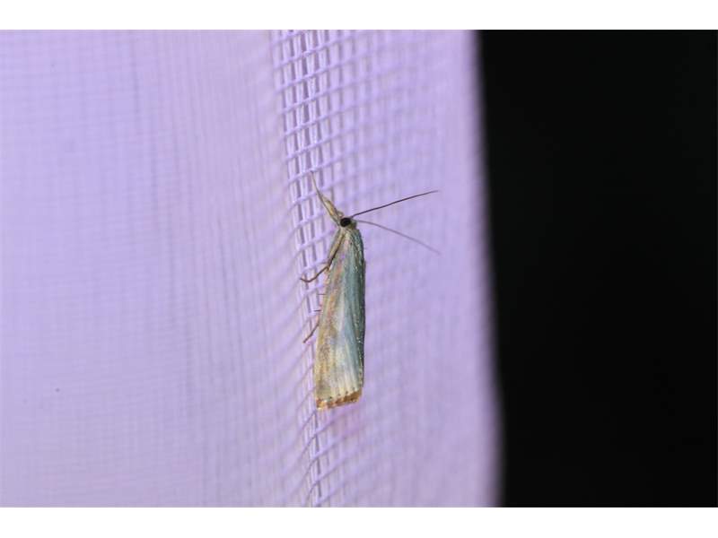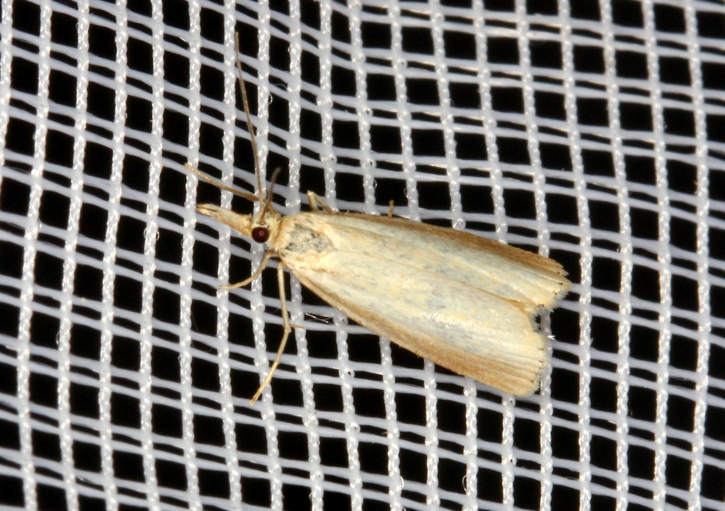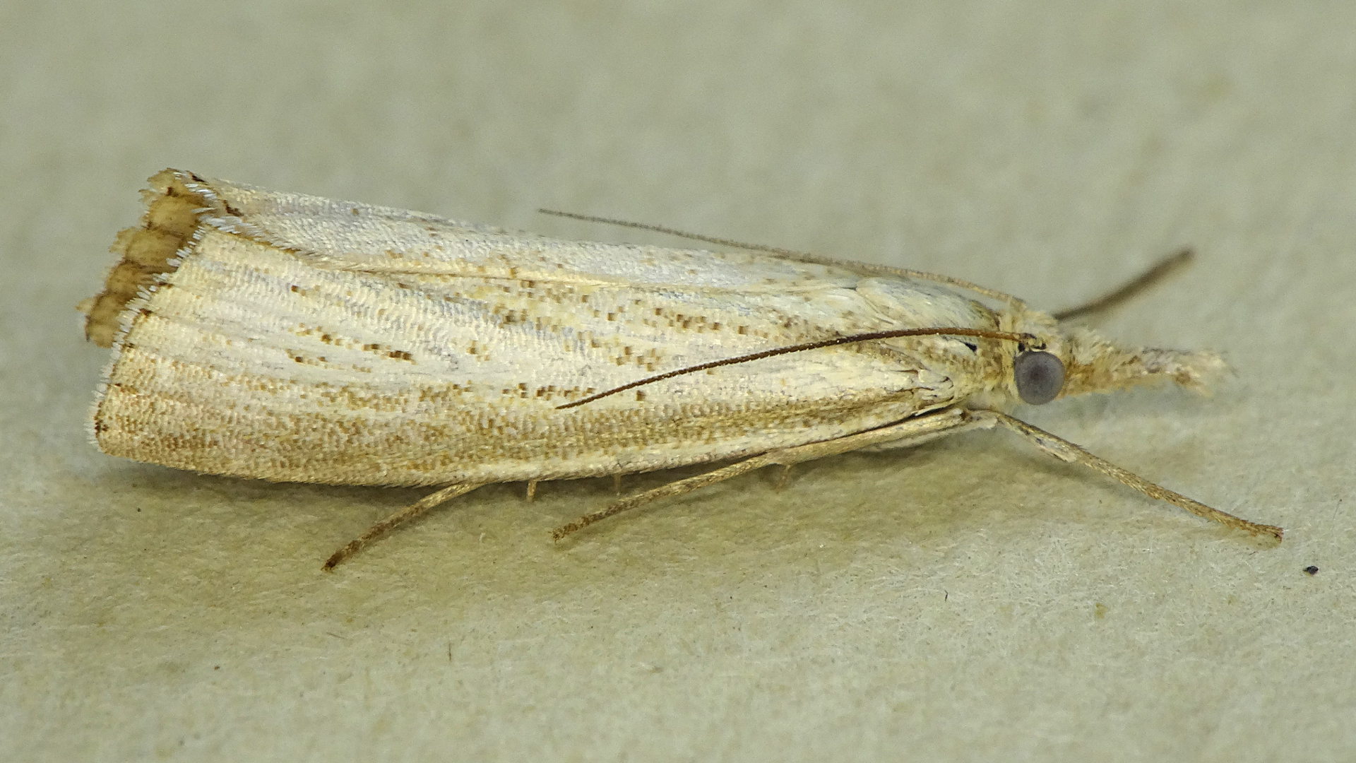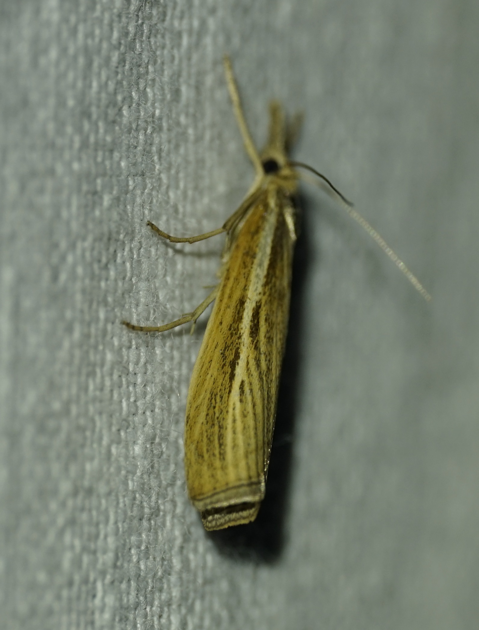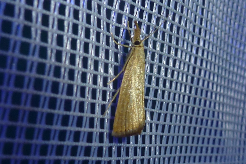 Agriphila straminella (Denis & Schiffermüller, 1775), bei Scheibenberg, auf Schilfblatt, 01.08.2018