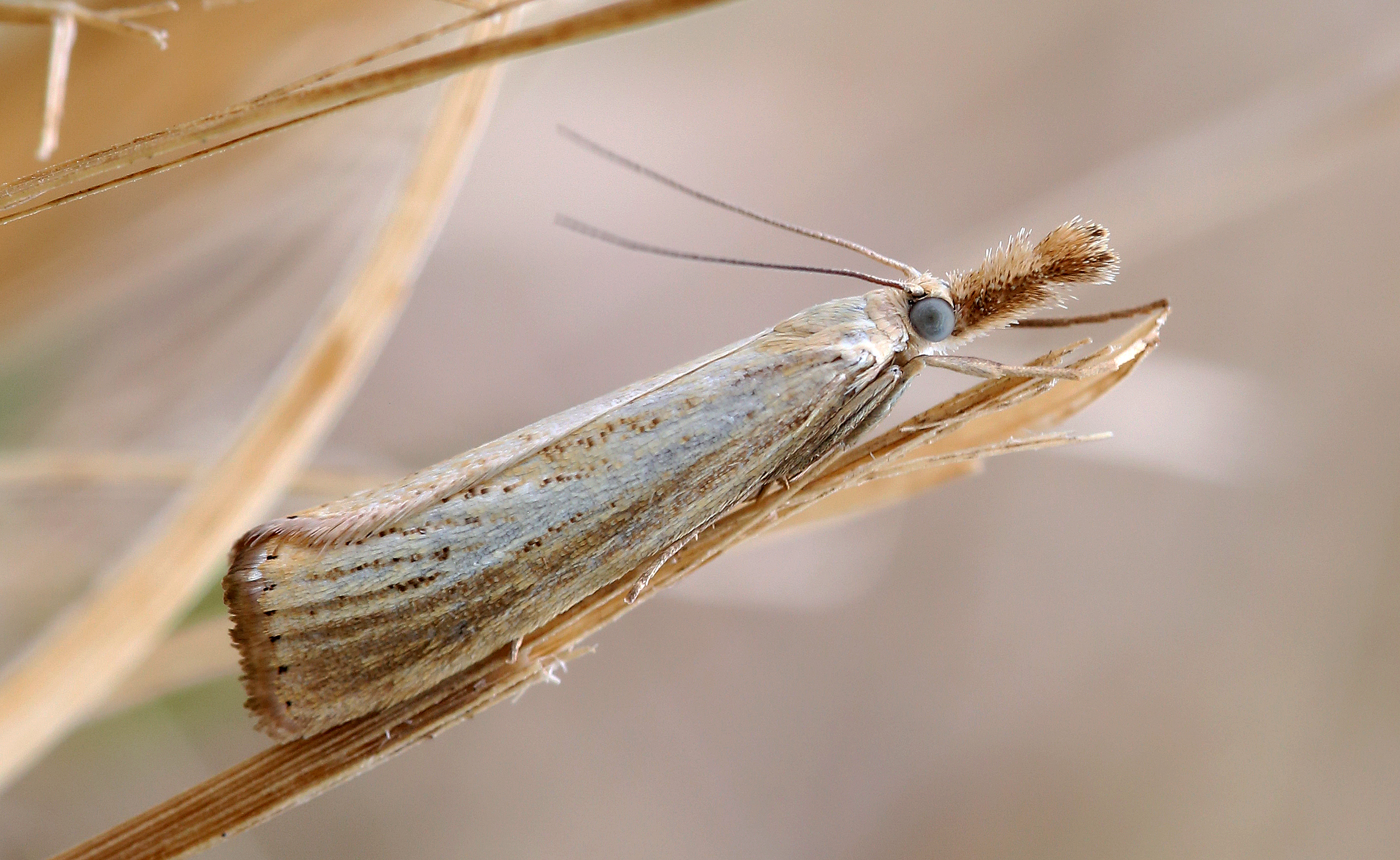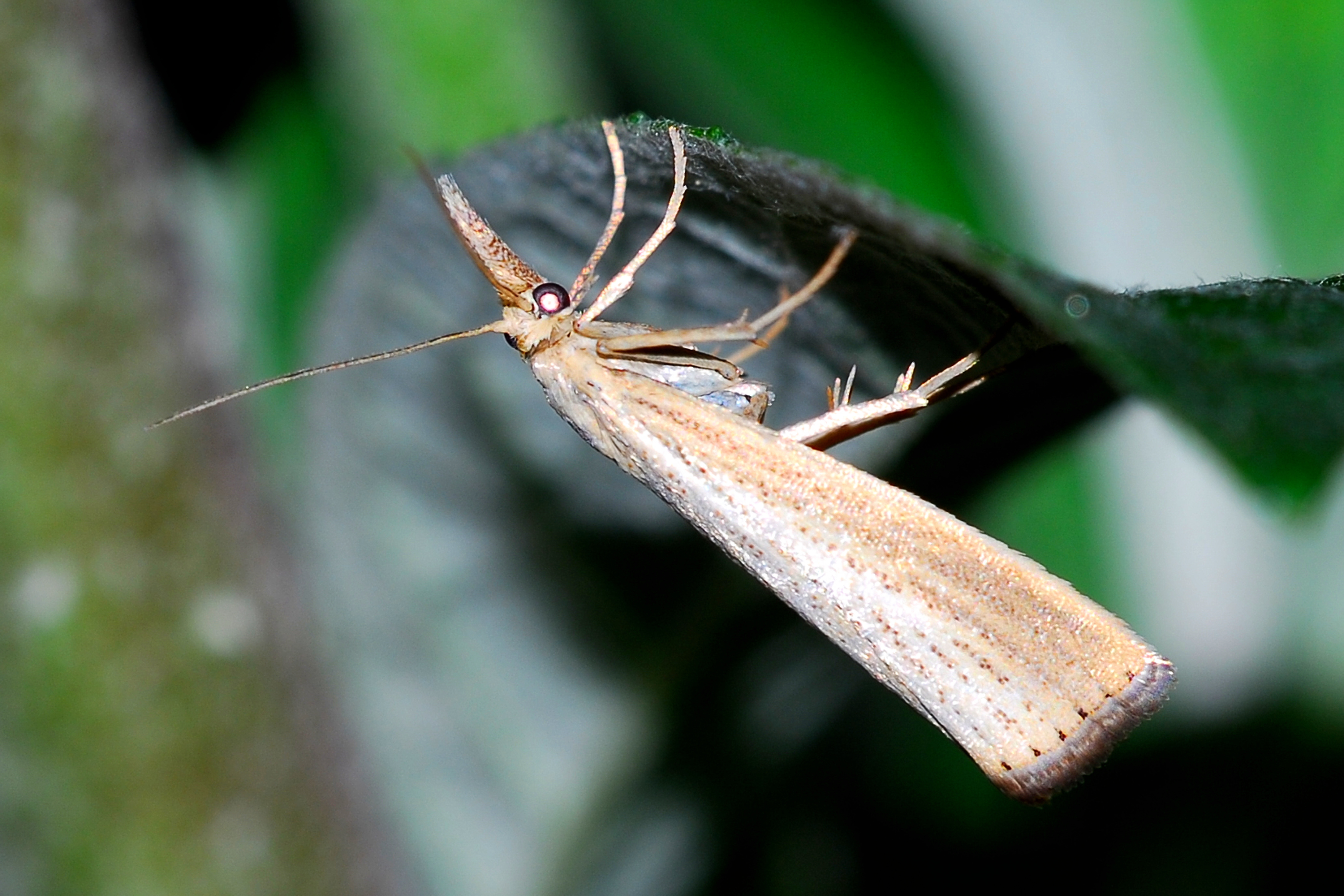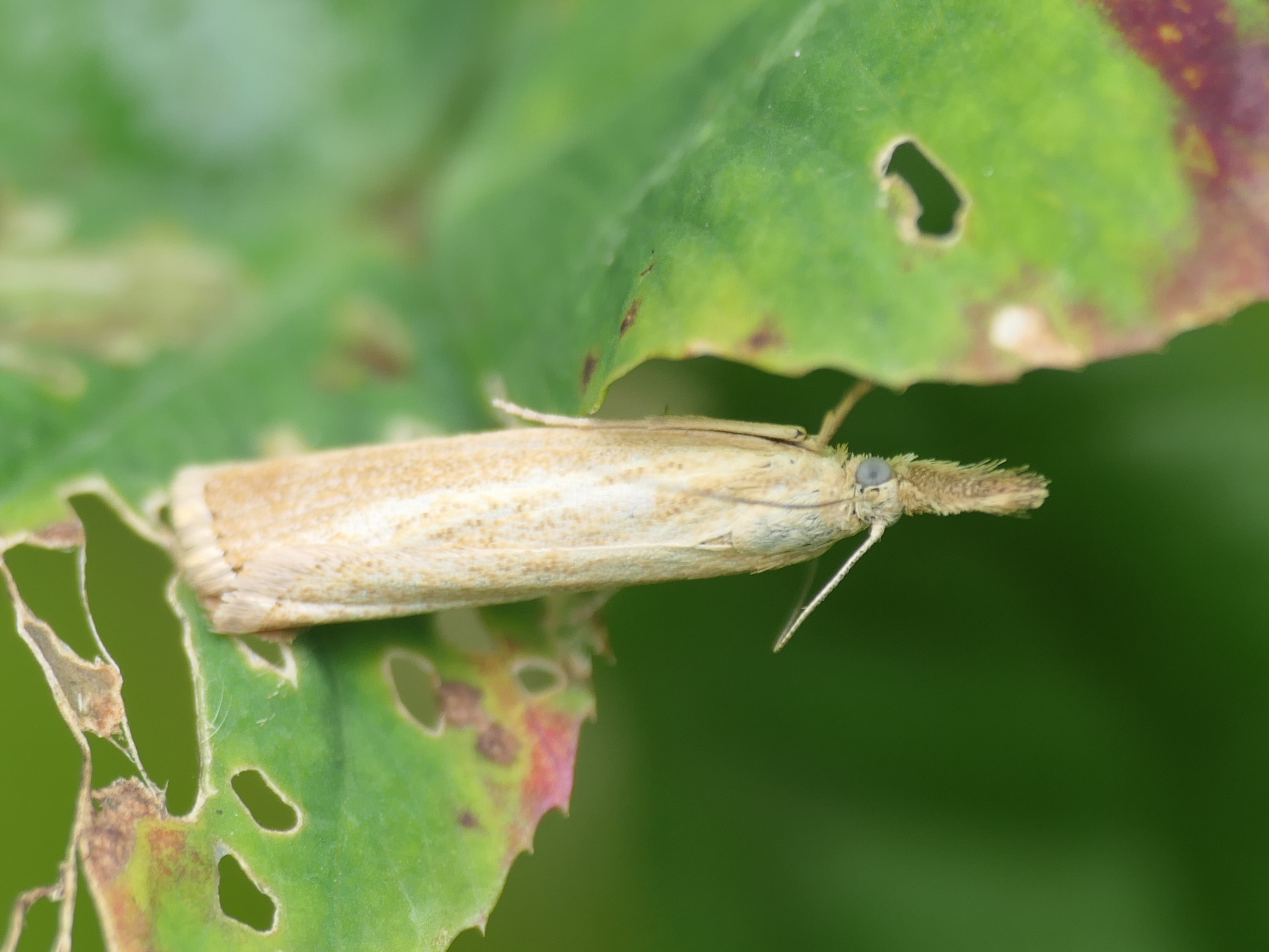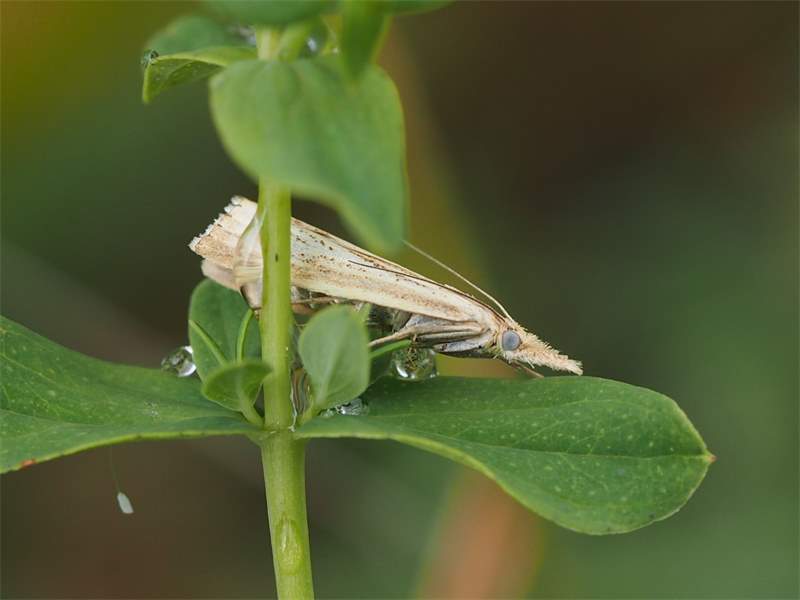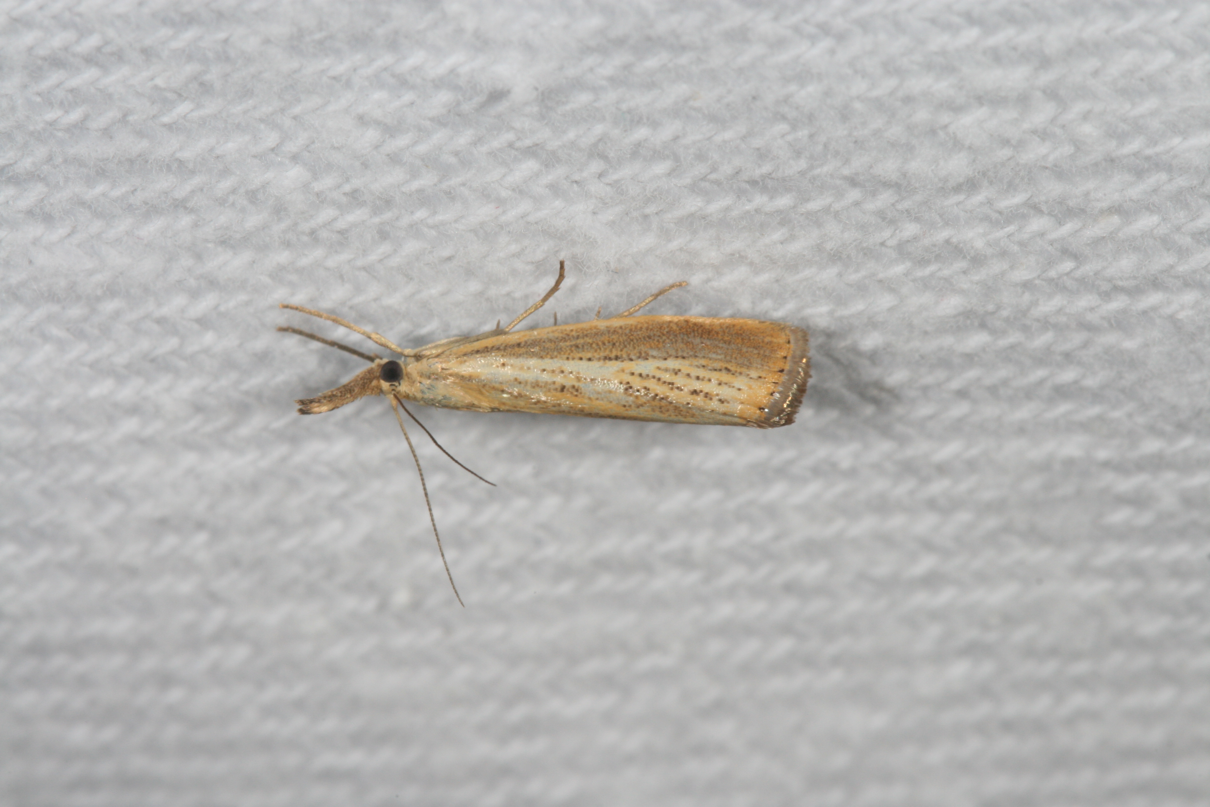 Agriphila straminella (Denis & Schiffermüller, 1775), bei Scheibenberg, auf Schilfblatt, 01.08.2018