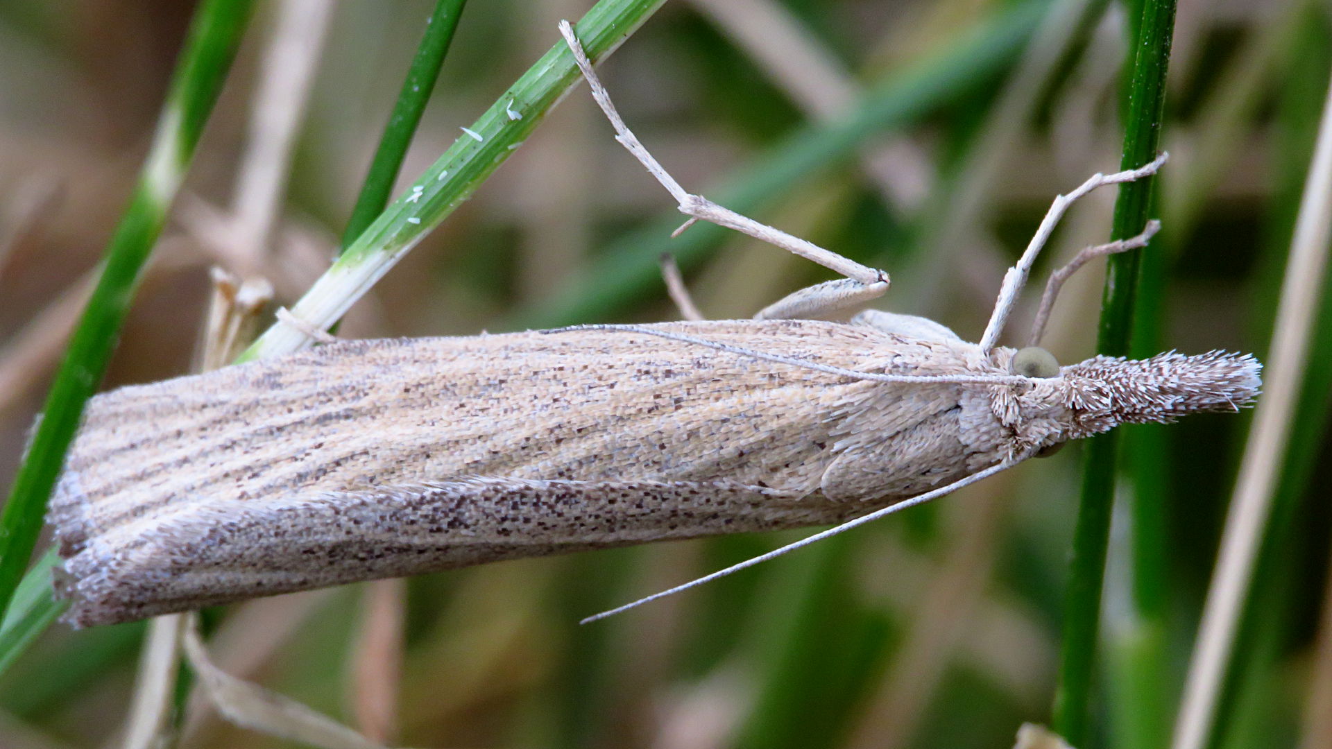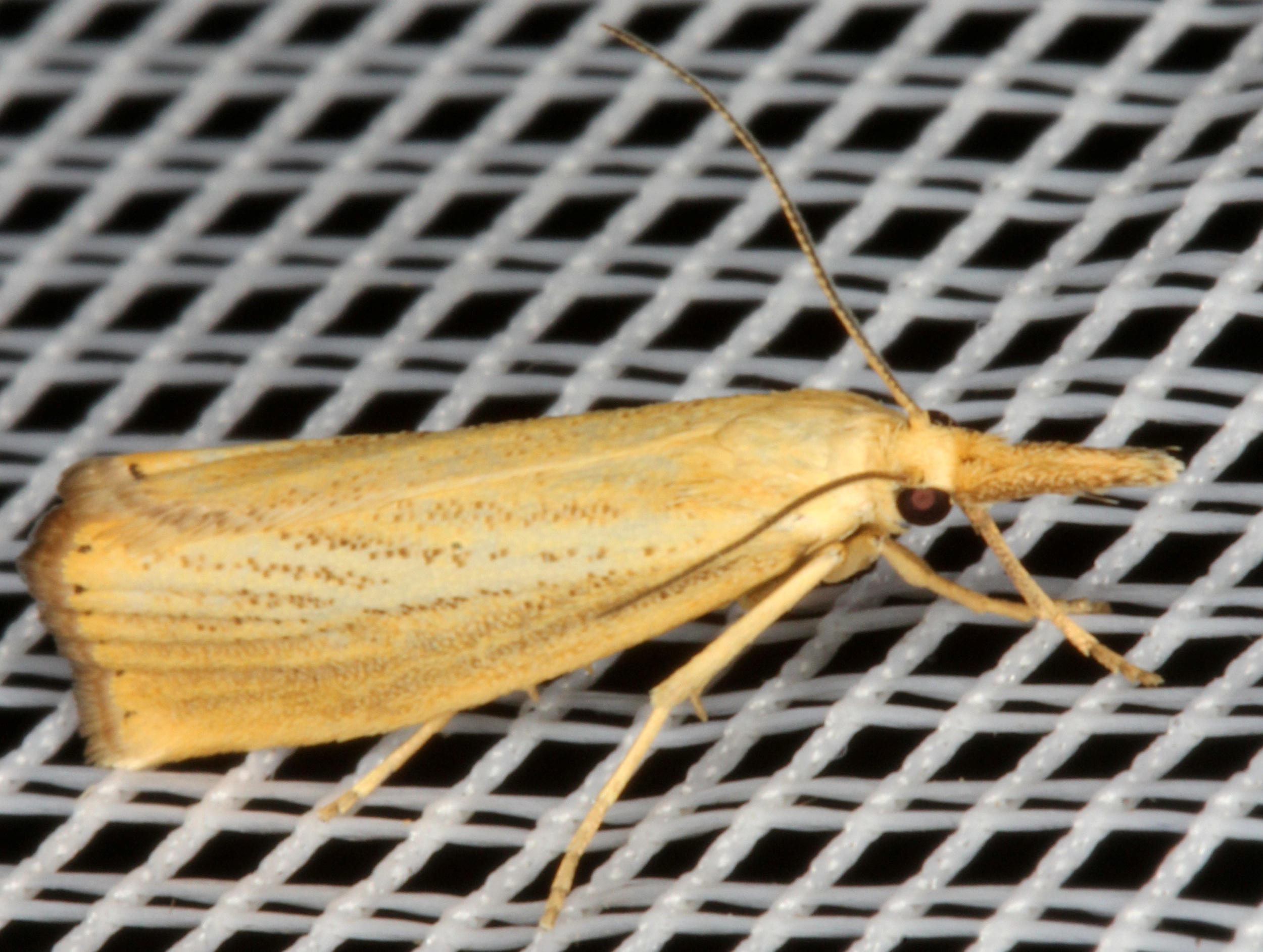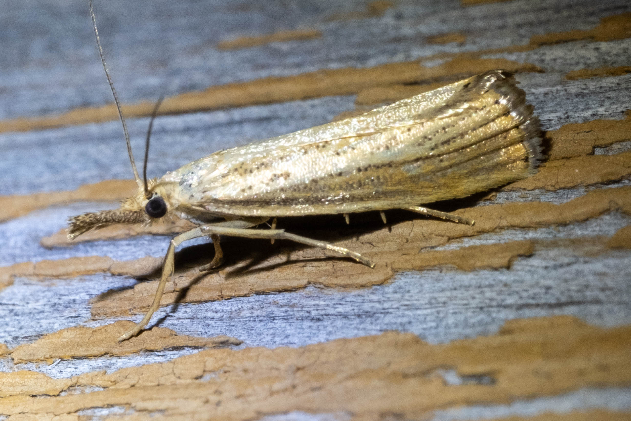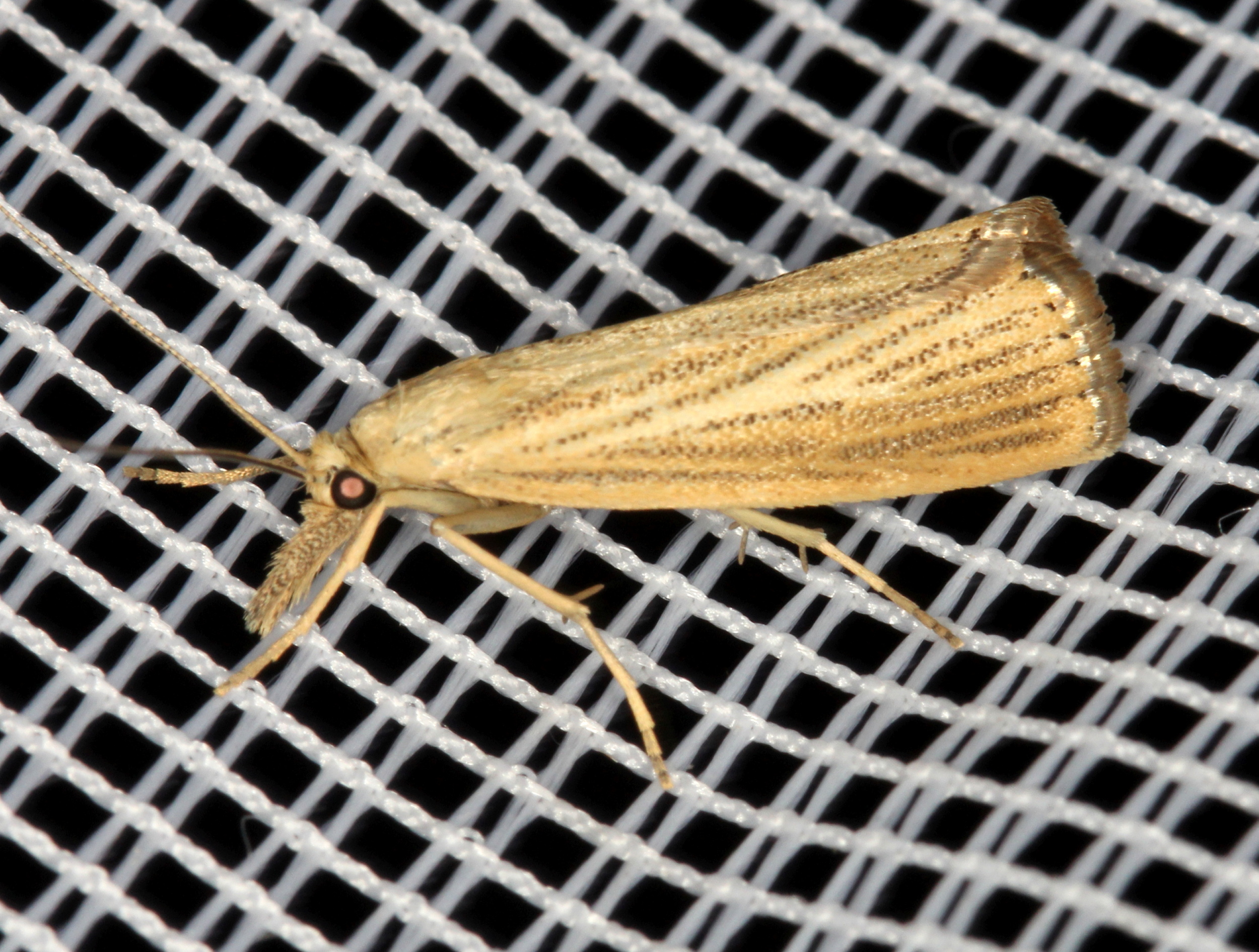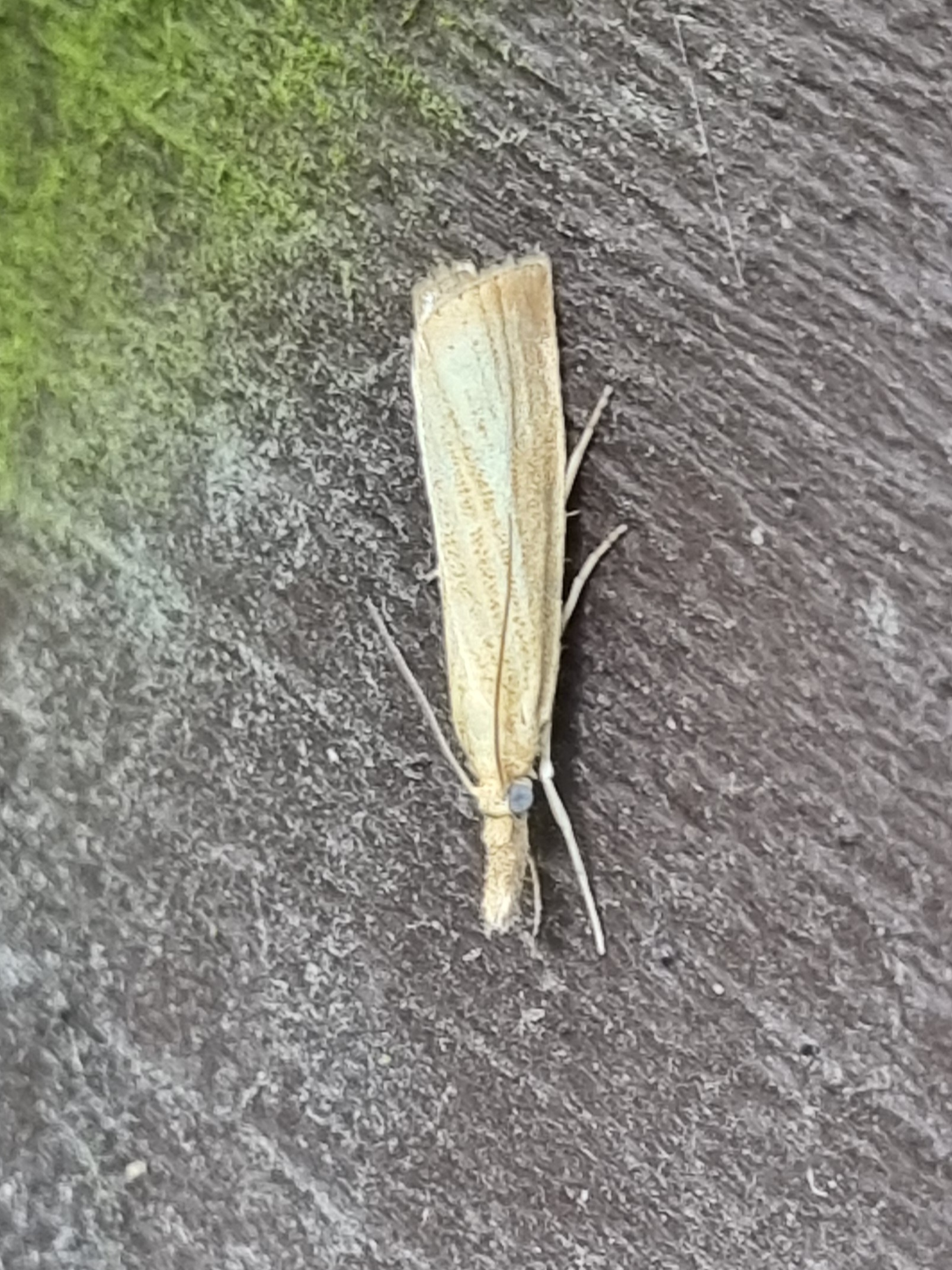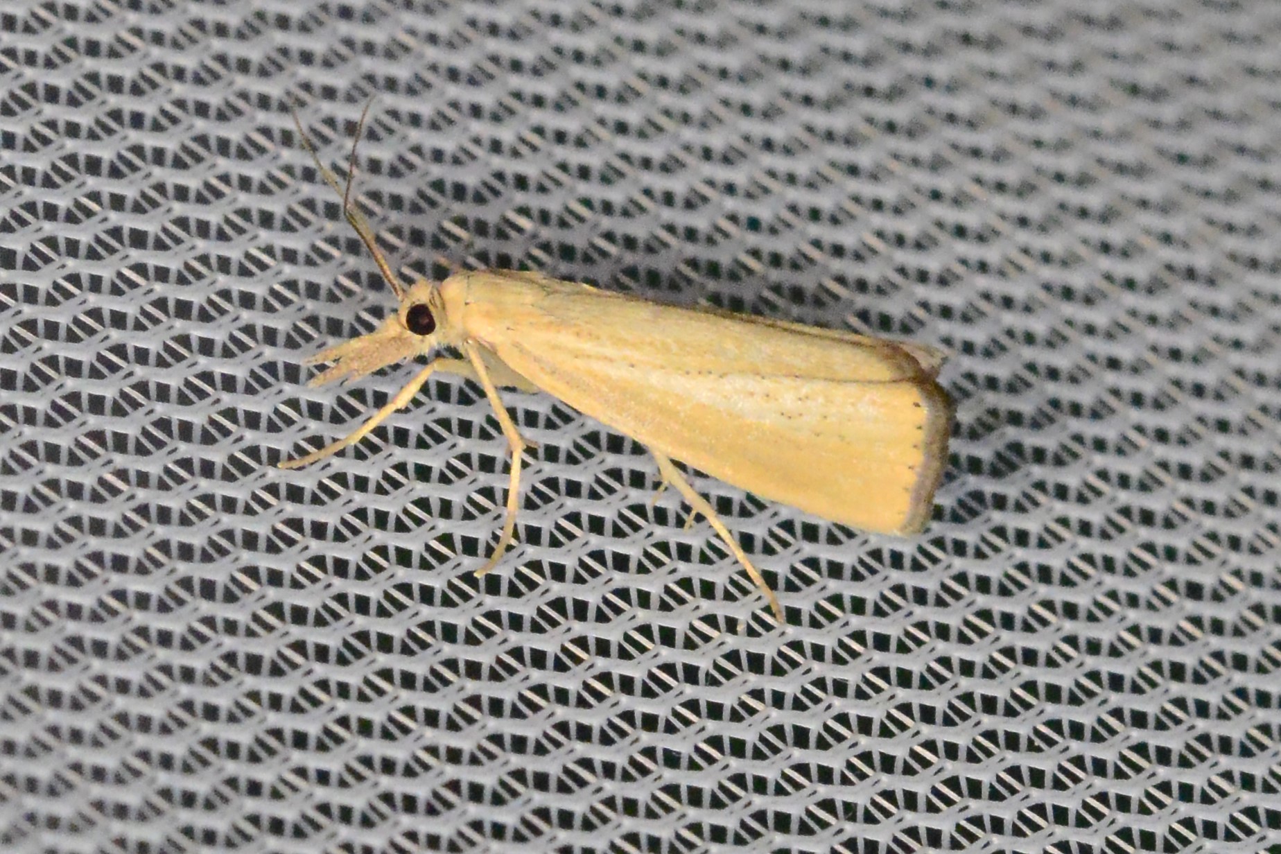 Agriphila straminella (Denis & Schiffermüller, 1775), bei Scheibenberg, auf Schilfblatt, 01.08.2018