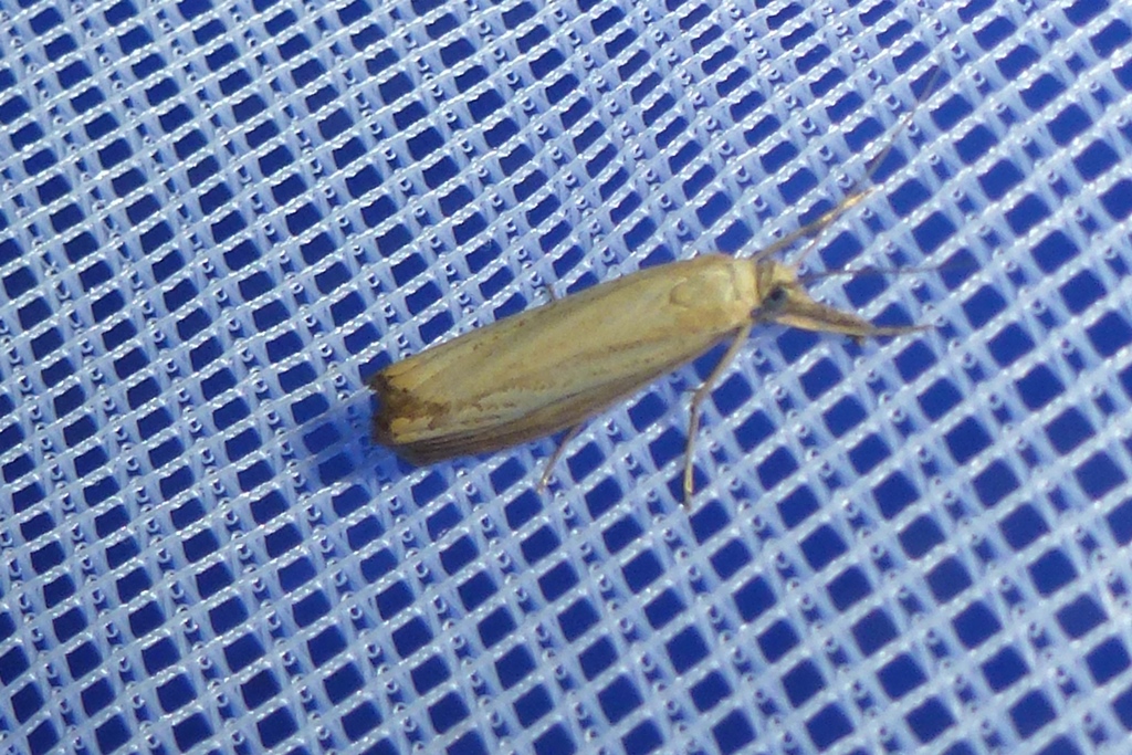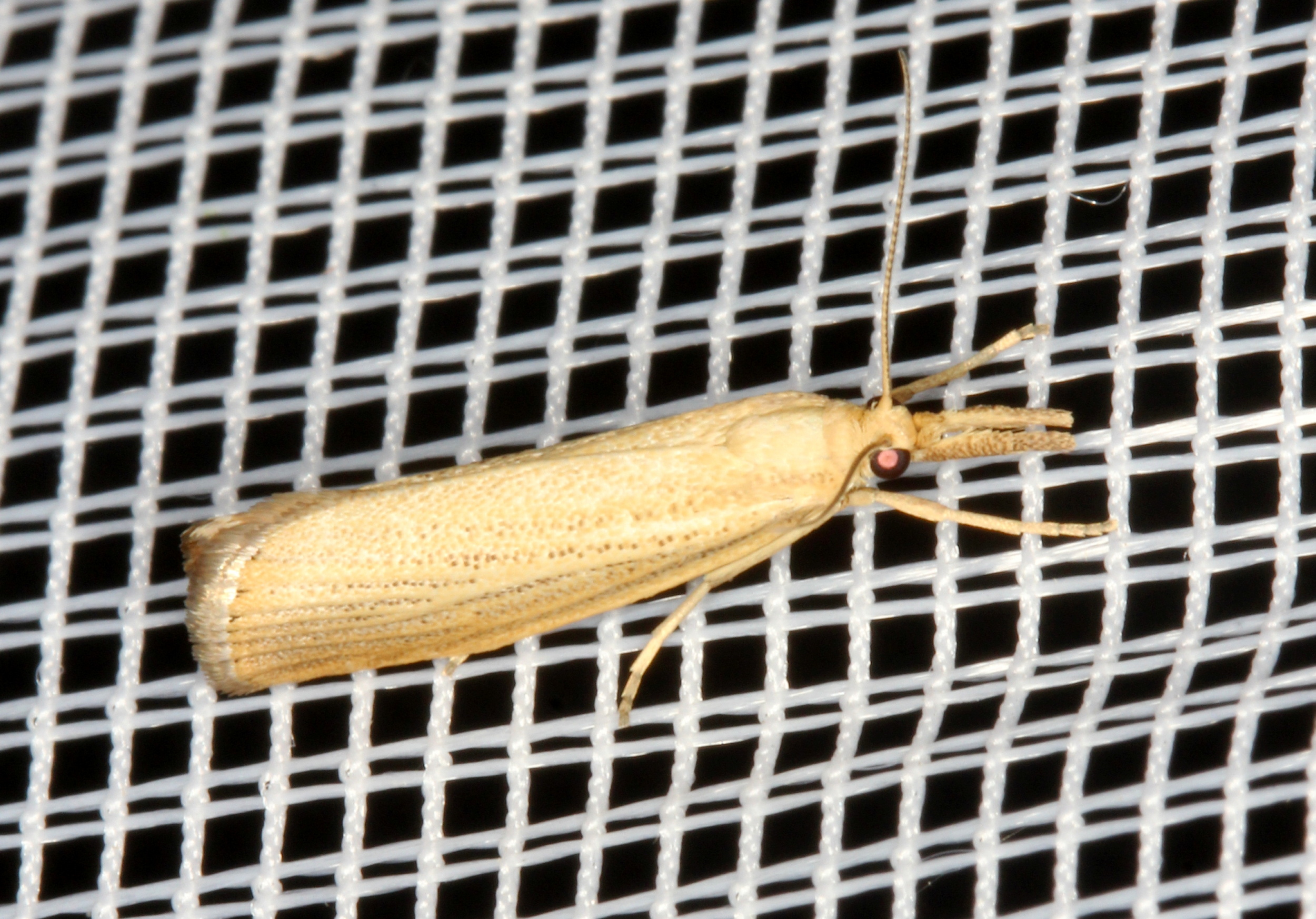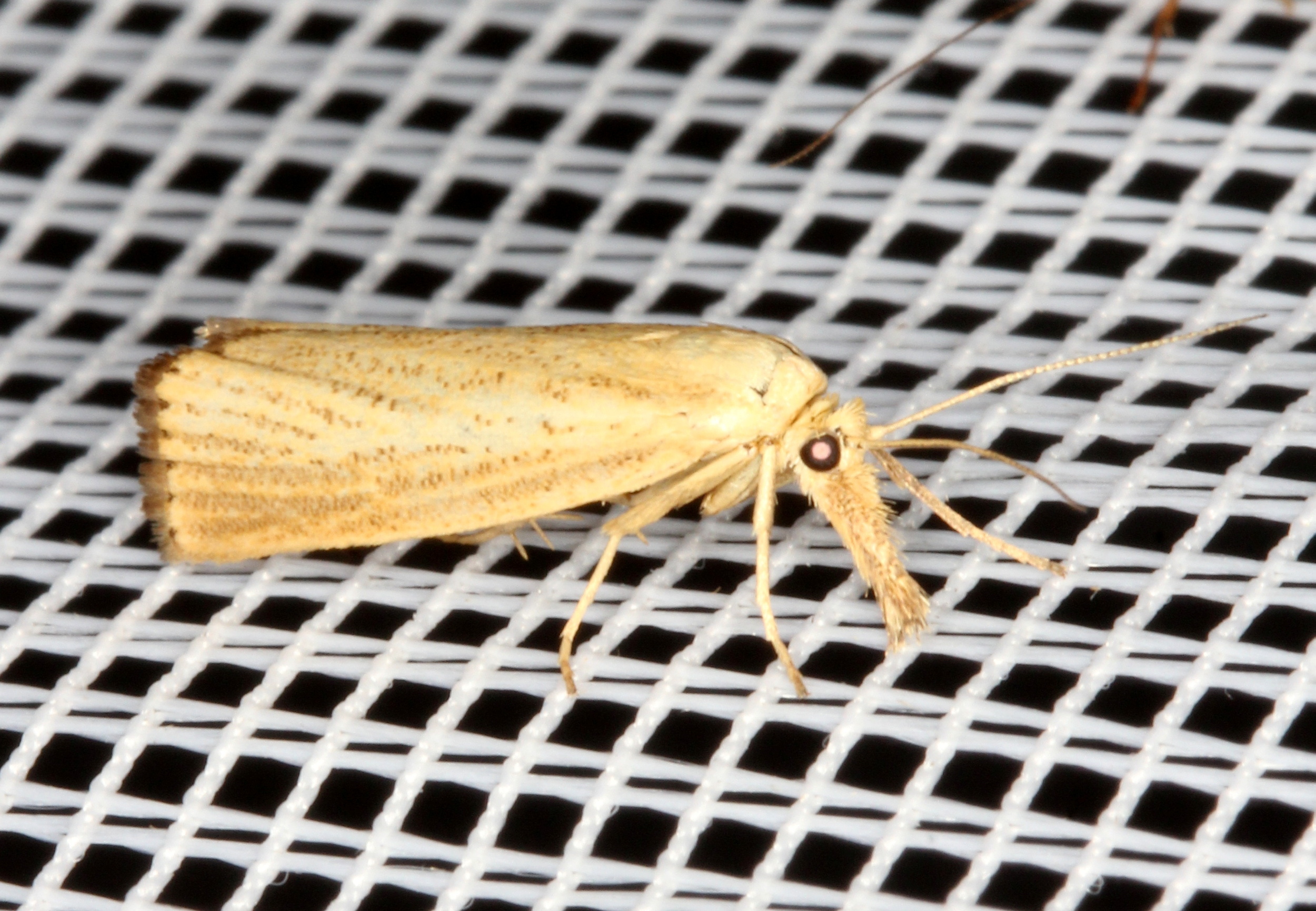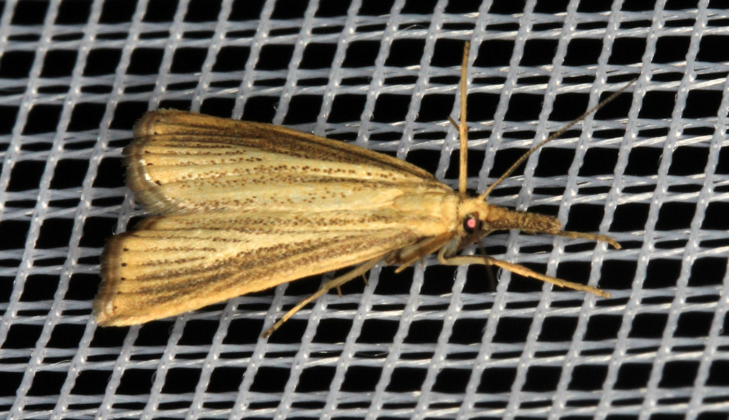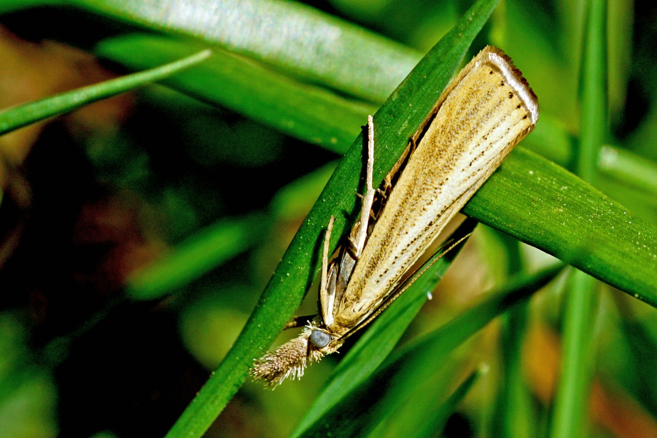 Agriphila straminella (Denis & Schiffermüller, 1775), bei Scheibenberg, auf Schilfblatt, 01.08.2018