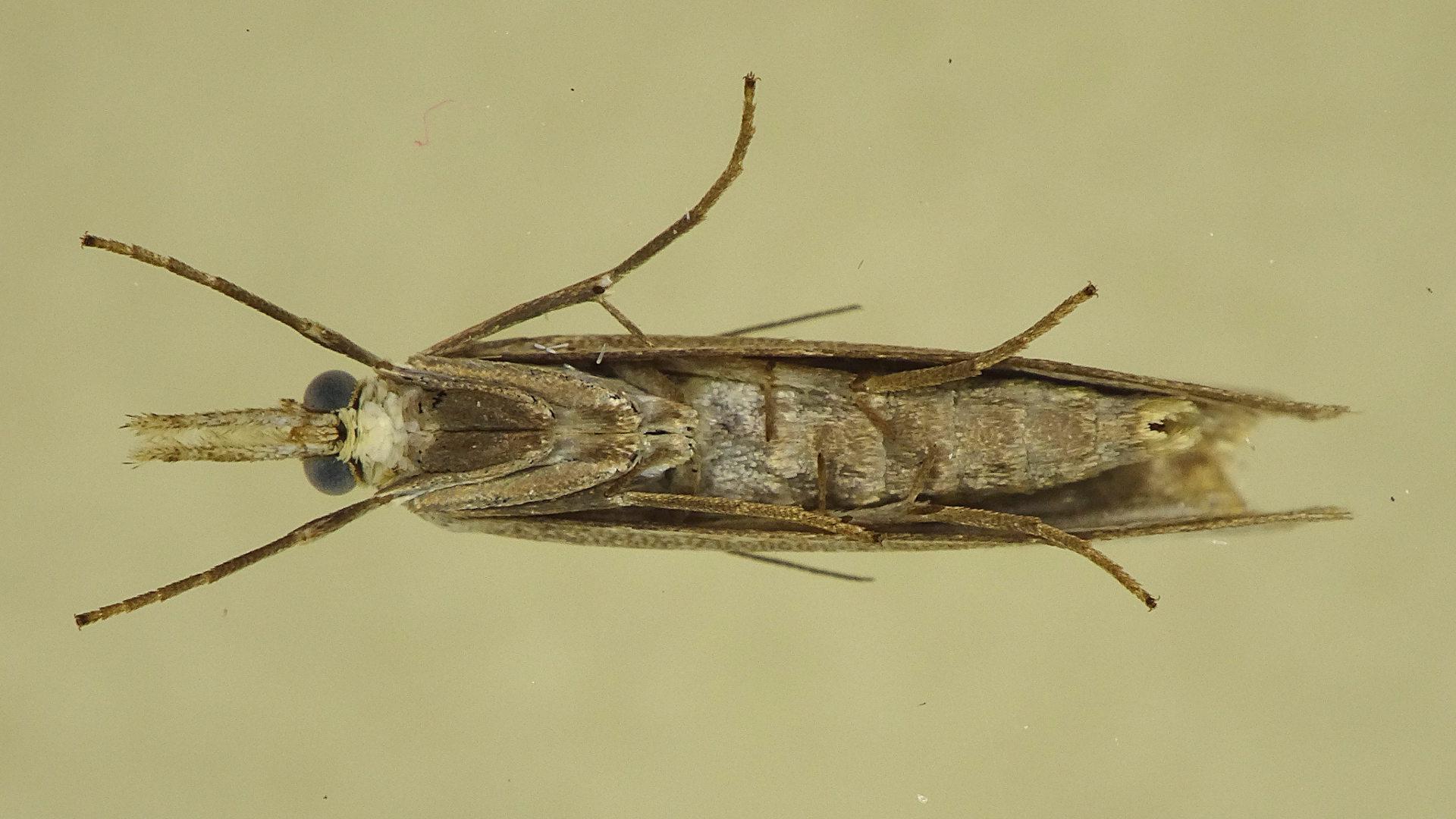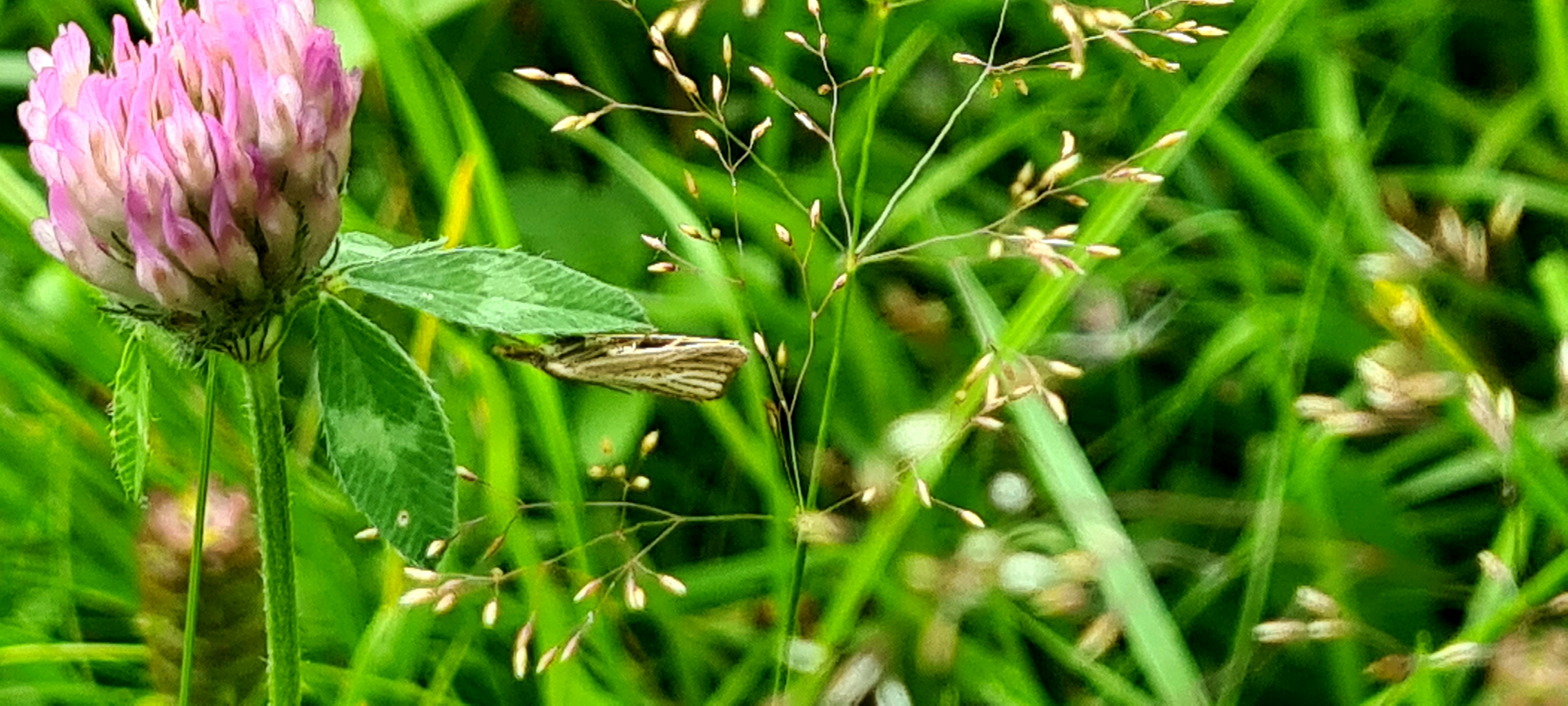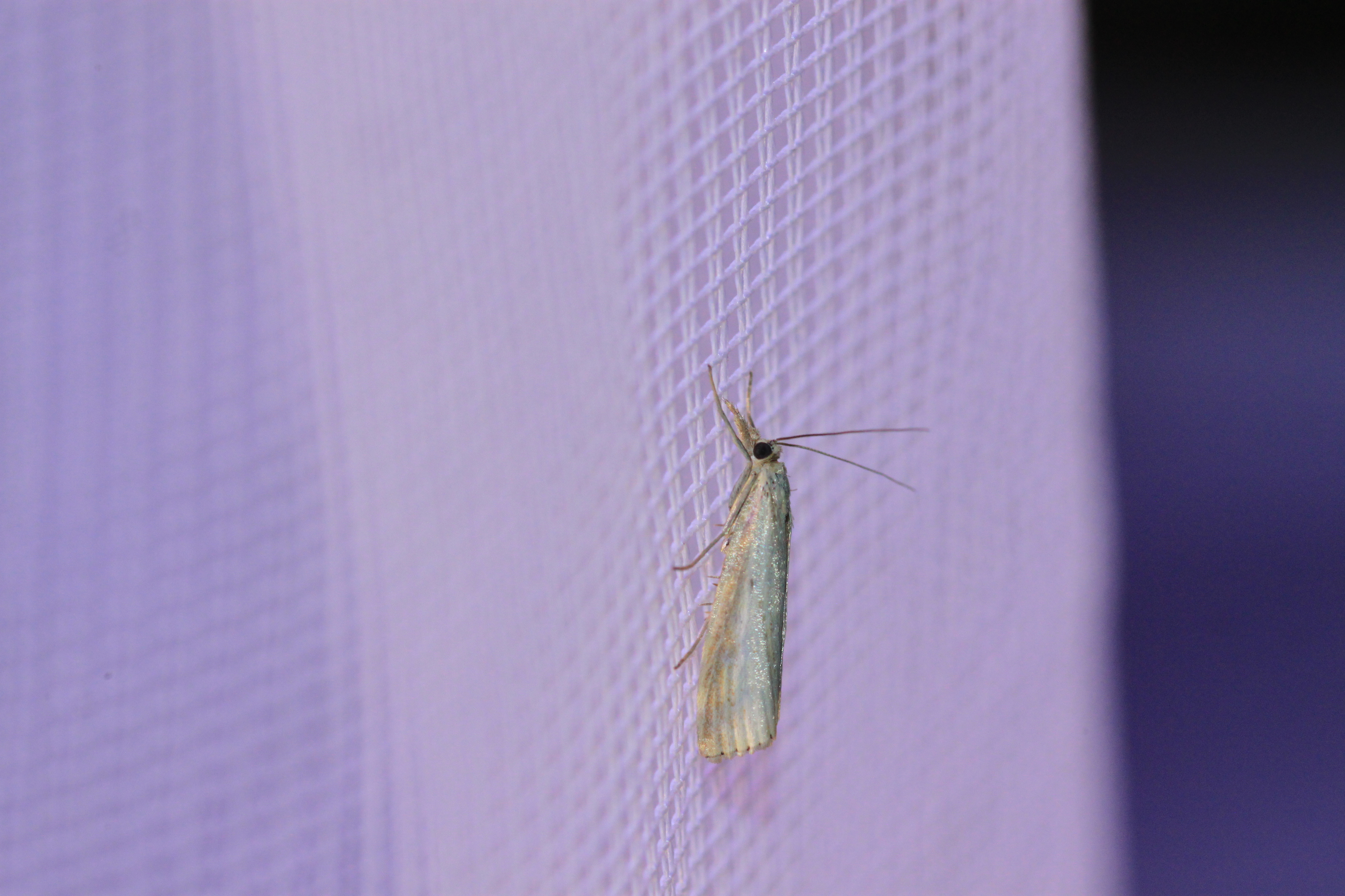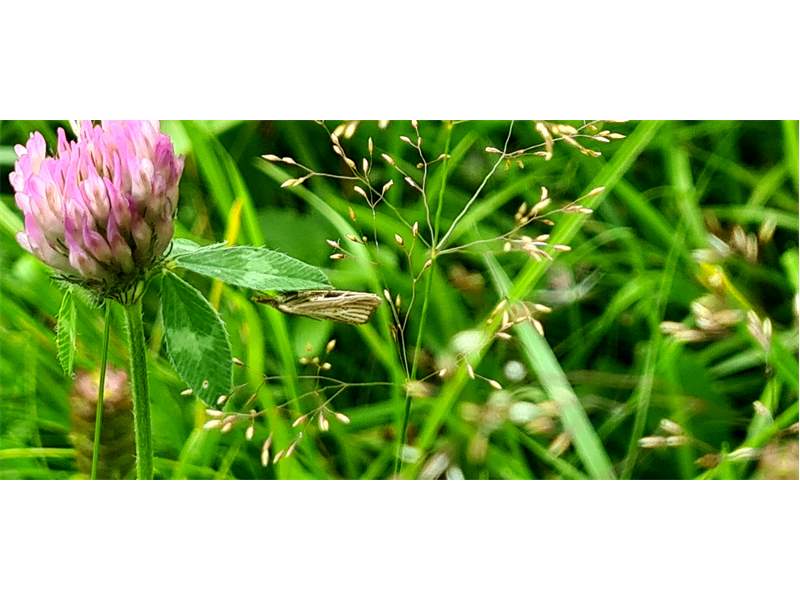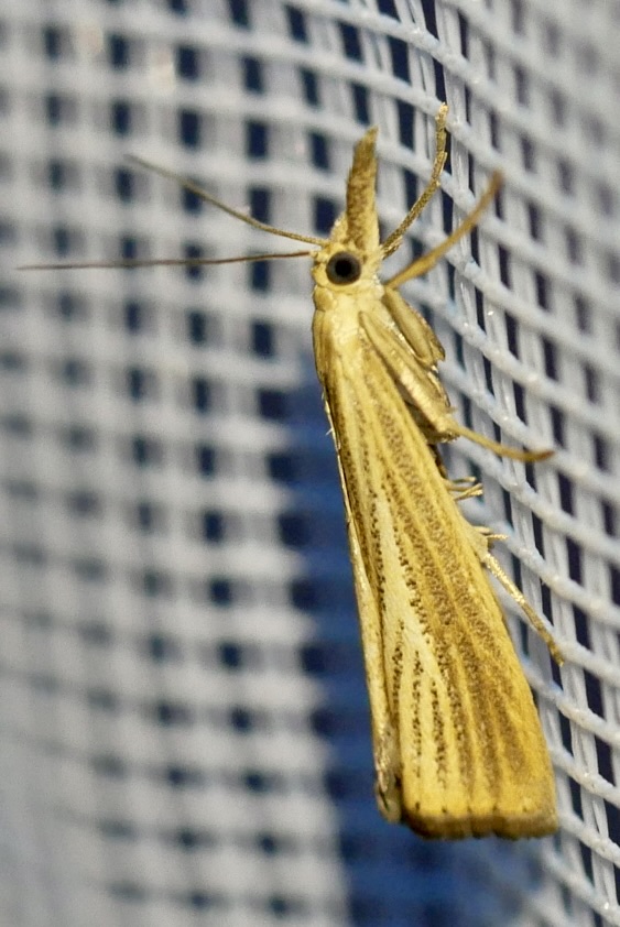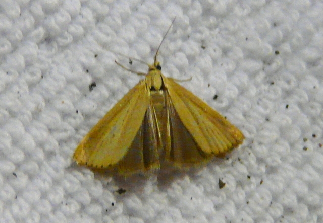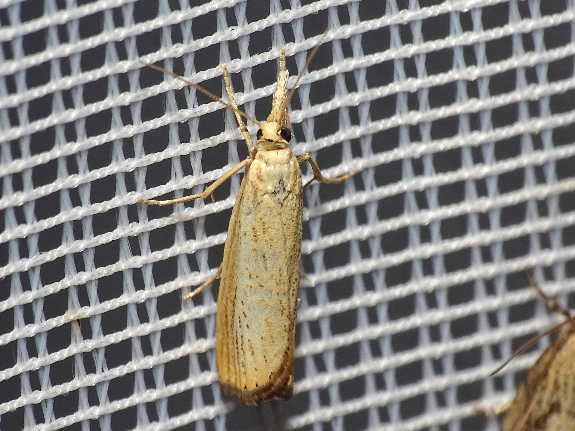 Agriphila straminella (Denis & Schiffermüller, 1775), bei Scheibenberg, auf Schilfblatt, 01.08.2018