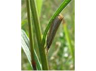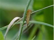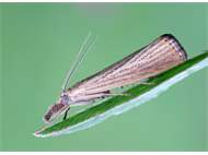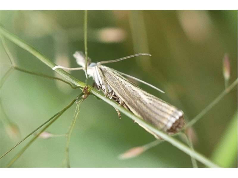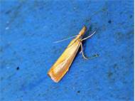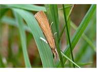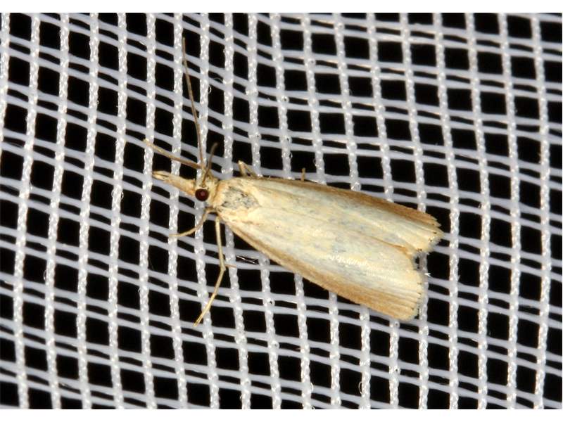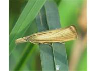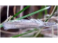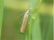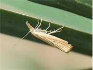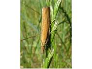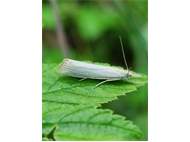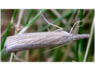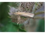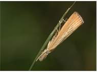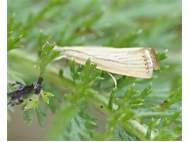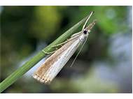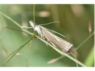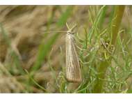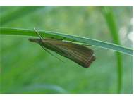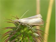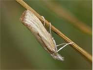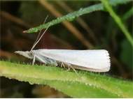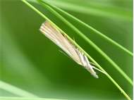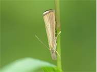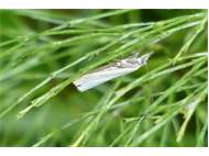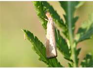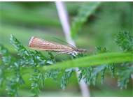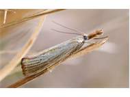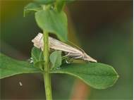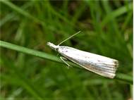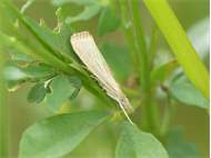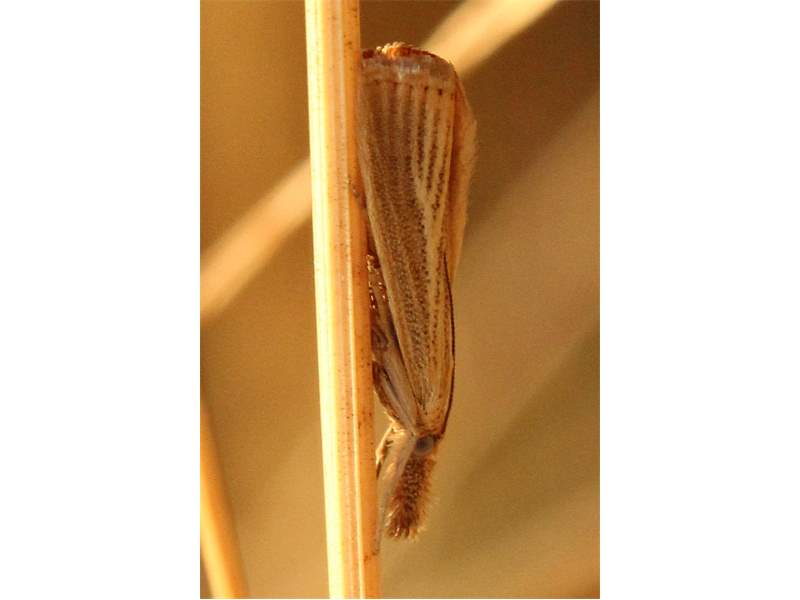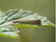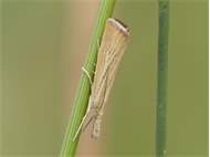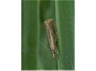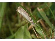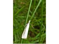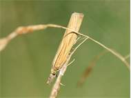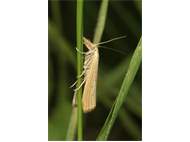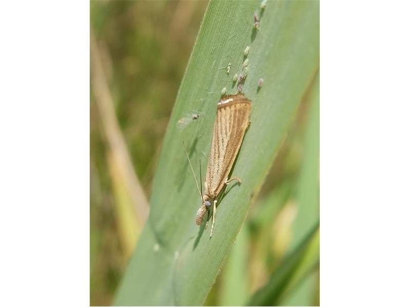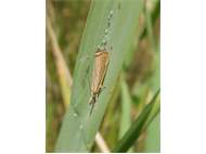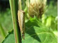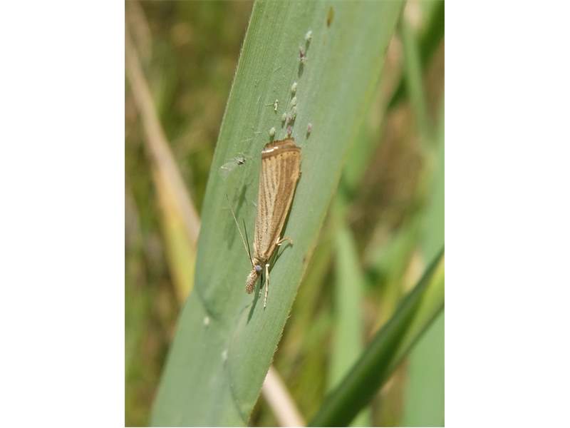 Agriphila straminella (Denis & Schiffermüller, 1775), bei Scheibenberg, auf Schilfblatt, 01.08.2018 (© Wolfgang Dietrich)( Bild vergrößern)