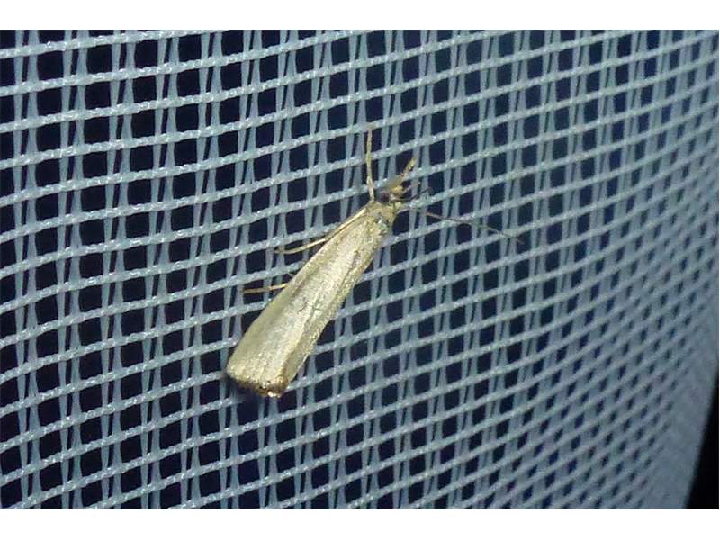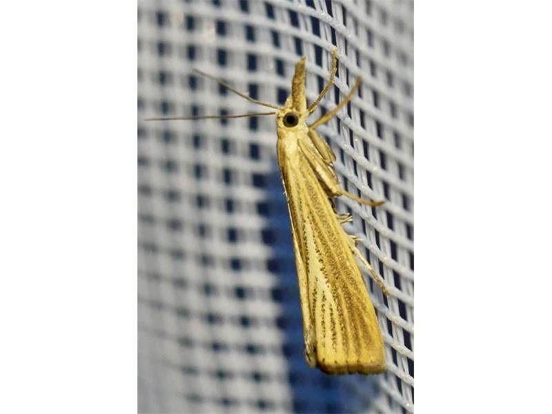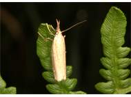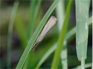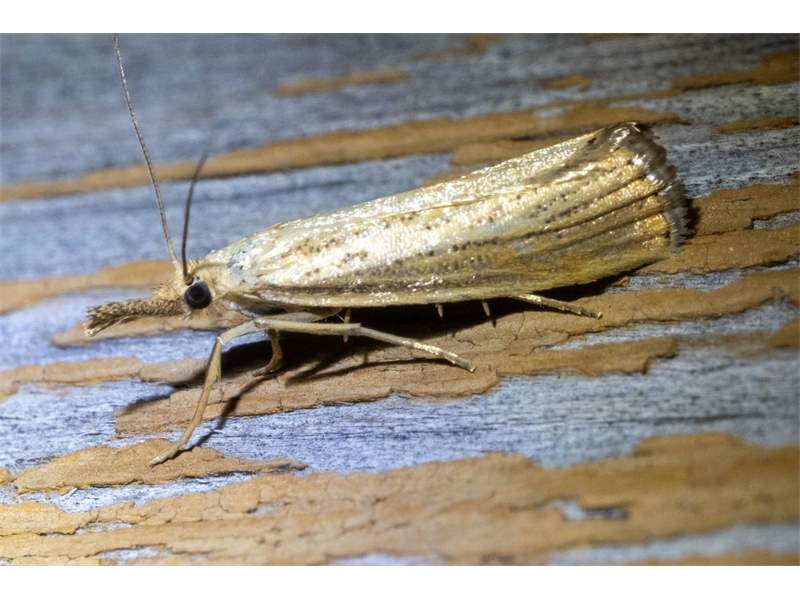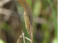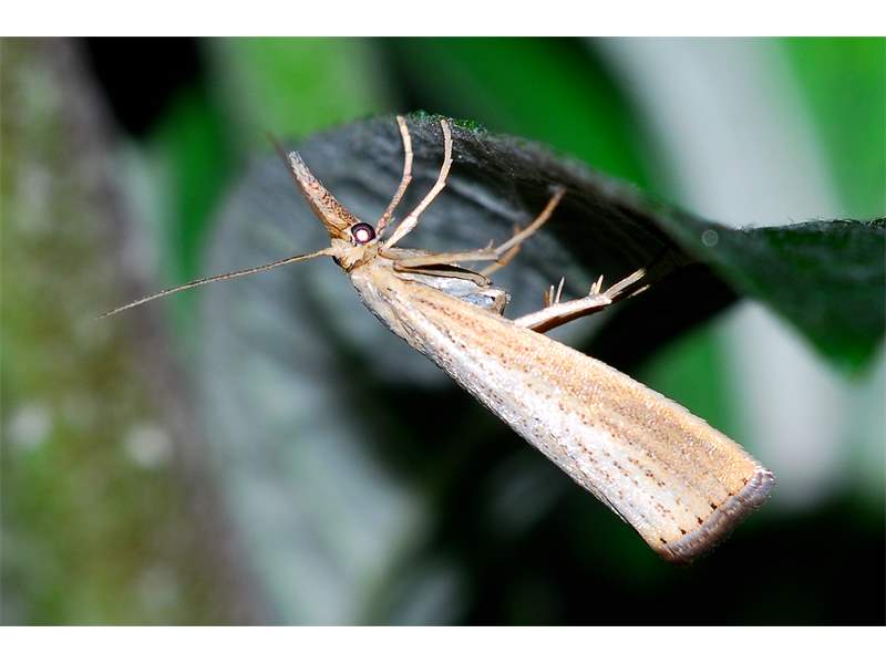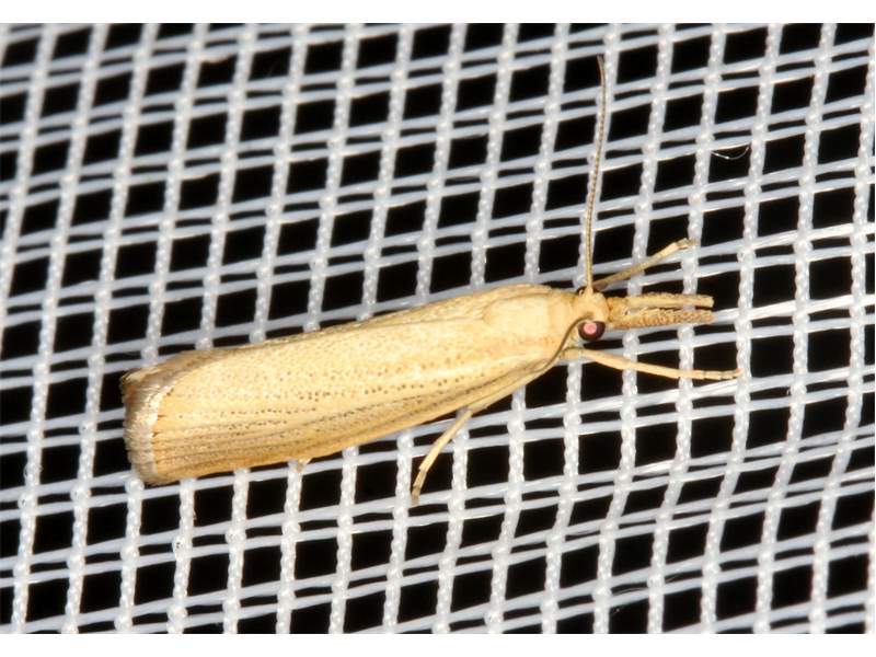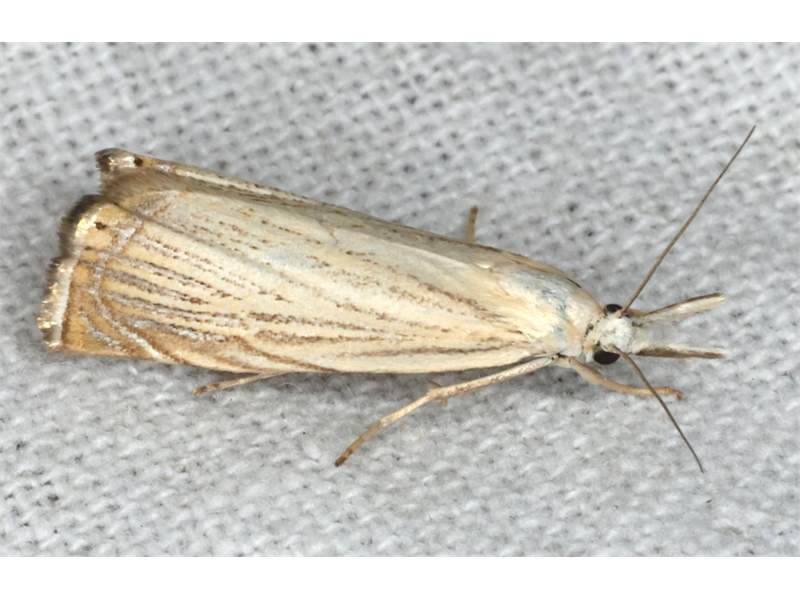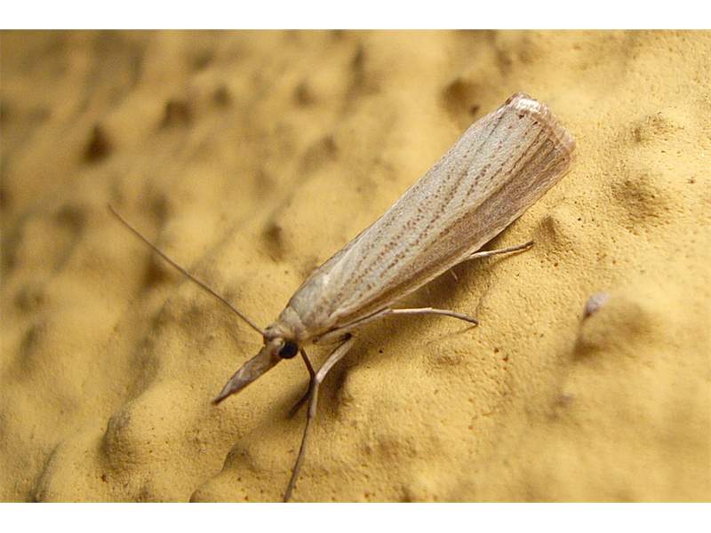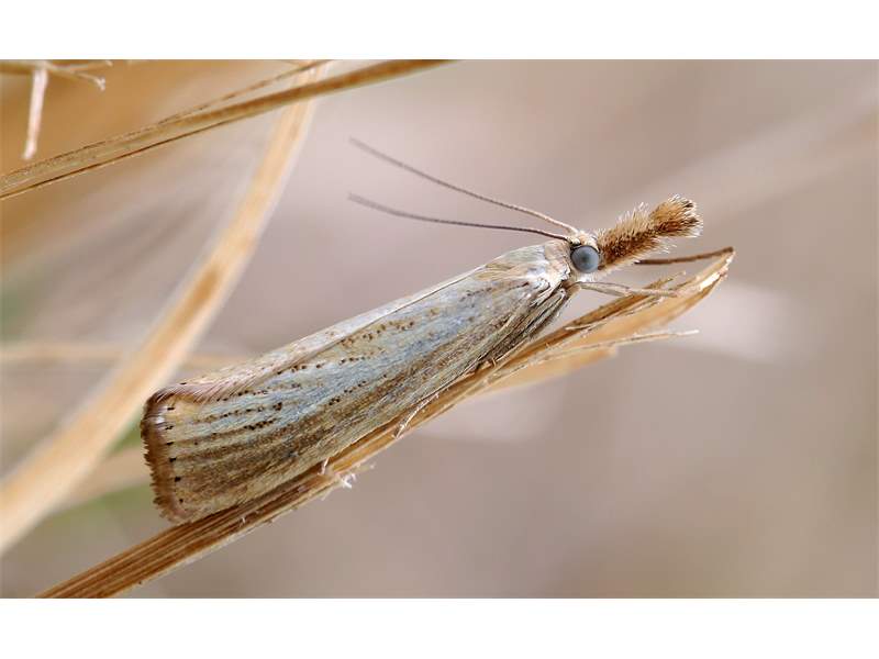 Agriphila straminella (Denis & Schiffermüller, 1775), bei Scheibenberg, auf Schilfblatt, 01.08.2018 (© Wolfgang Dietrich)( Bild vergrößern)