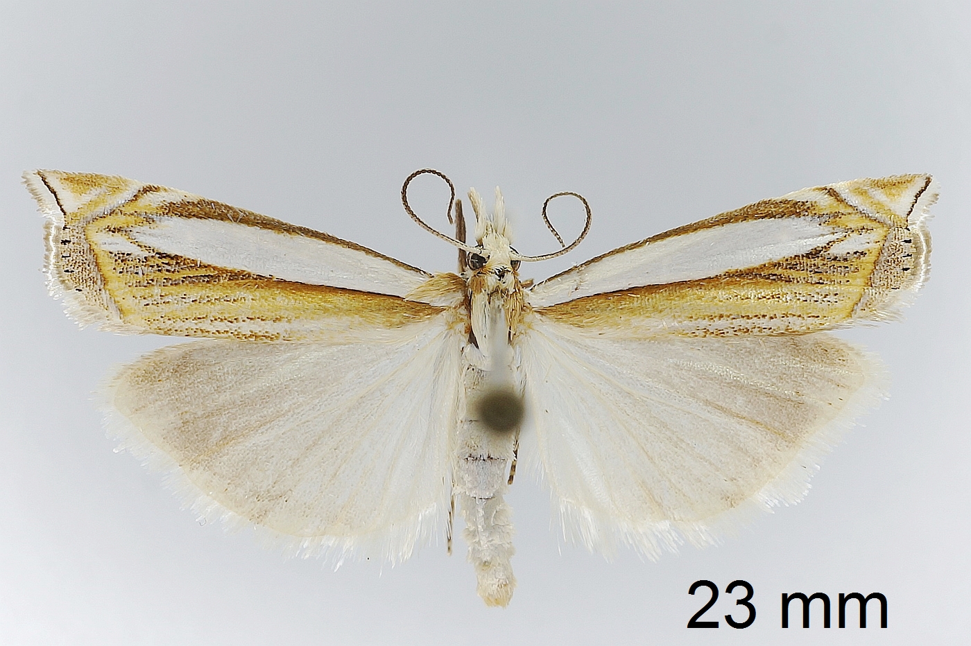 Beleg von Crambus pascuella, eingeholt am 20. Juni 2005 in der Umgebung von Dubring (© Friedmar Graf)( Bild vergrößern)