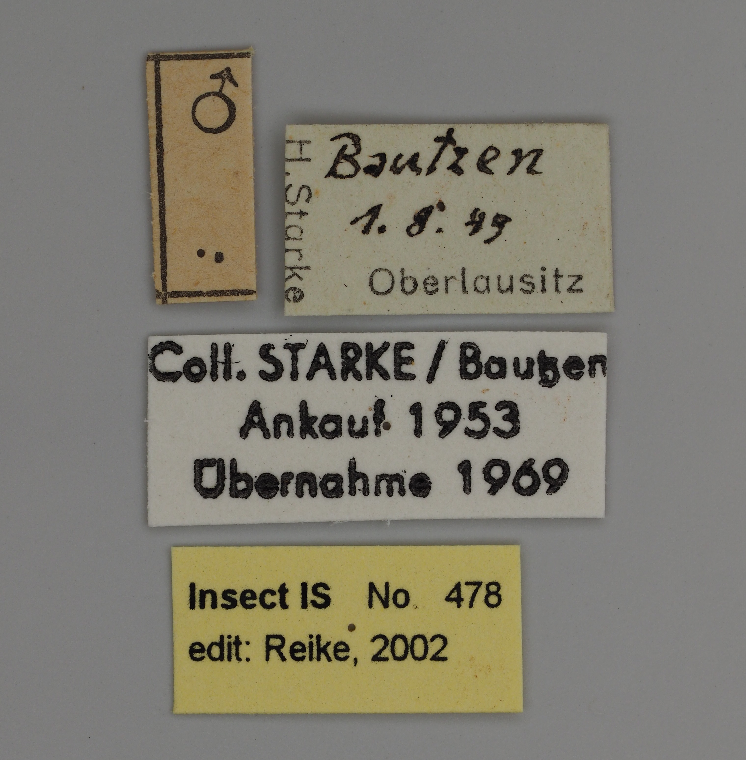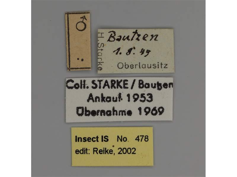 Etiketten des Belegexemplars von Crambus silvella vom 1. August 1949 aus Bautzen. Sammlung Hermann Starke, Senckenberg Museum für Tierkunde Dresden.