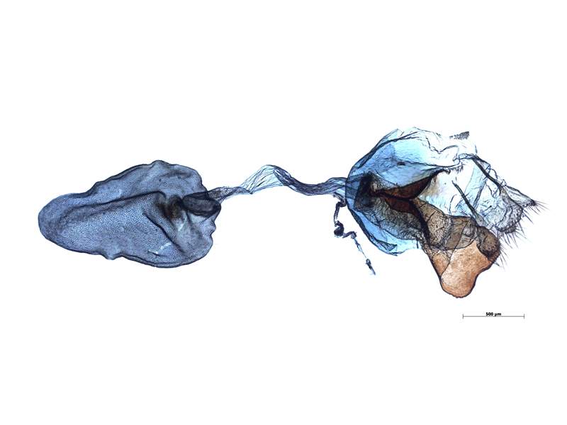 Weibliches Genital von Crambus silvella (Bayern, Allgäu, Oberstdorf, 28.vii.1917, E. Möbius). Prep. no. 335 Anne Ludwig (Sterigma antevaginalis entfernt). Senckenberg Museum für Tierkunde Dresden (© Anne Ludwig & Matthias Nuß)( Bild vergrößern)