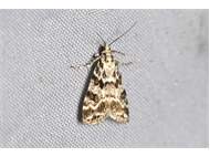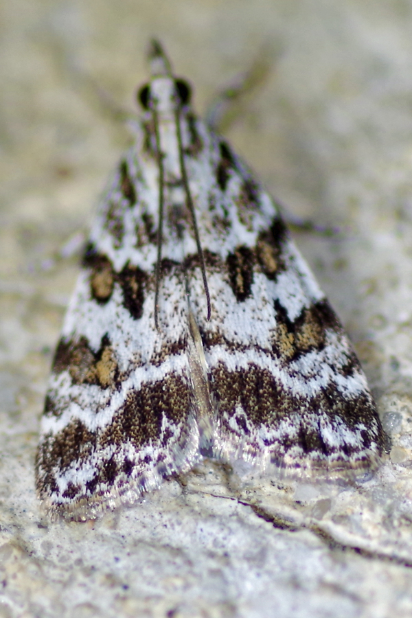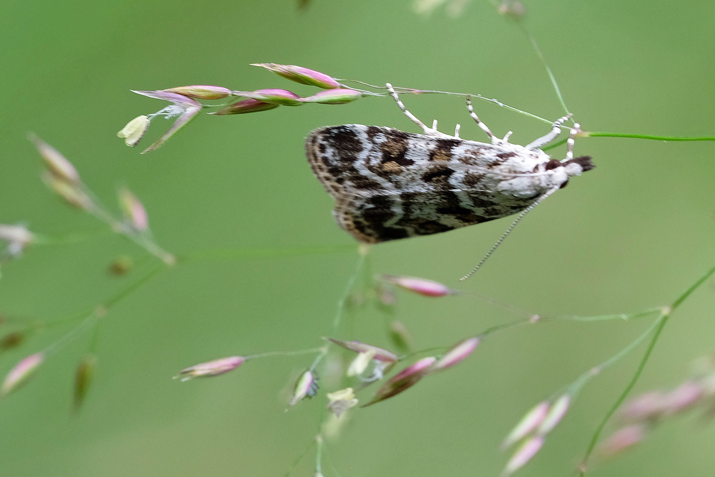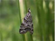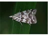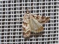 Scoparia pyralella (Denis & Schiffermüller, 1775) Brand-Erbisdorf, Striegistal, Lochmühle, am Licht, Juli 2019, Sommertreffen (© Michael Happ)( Bild vergrößern)