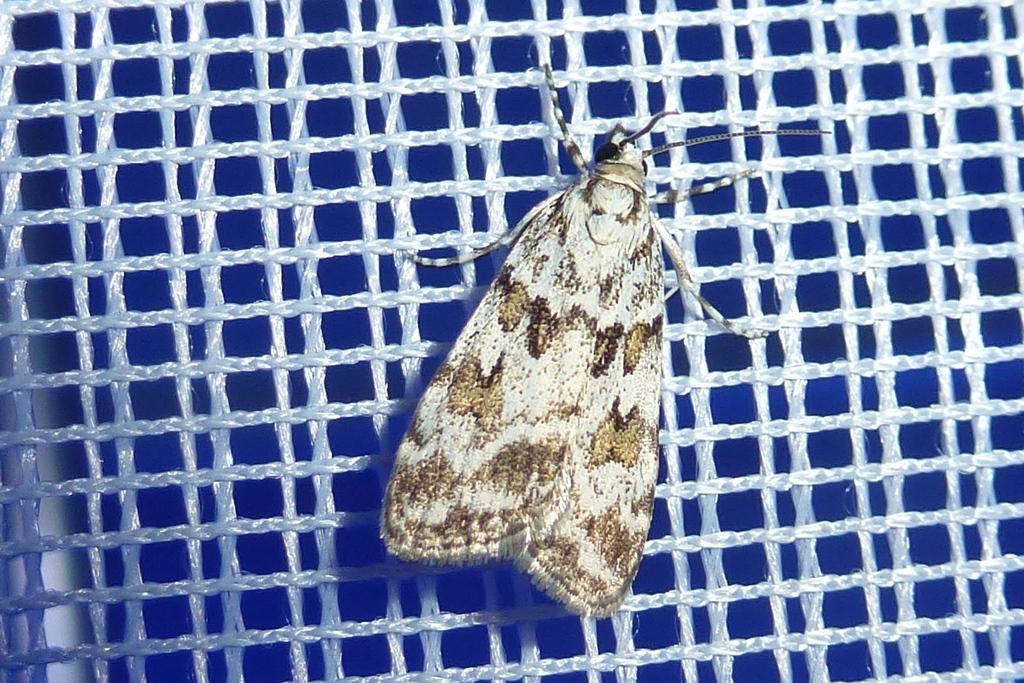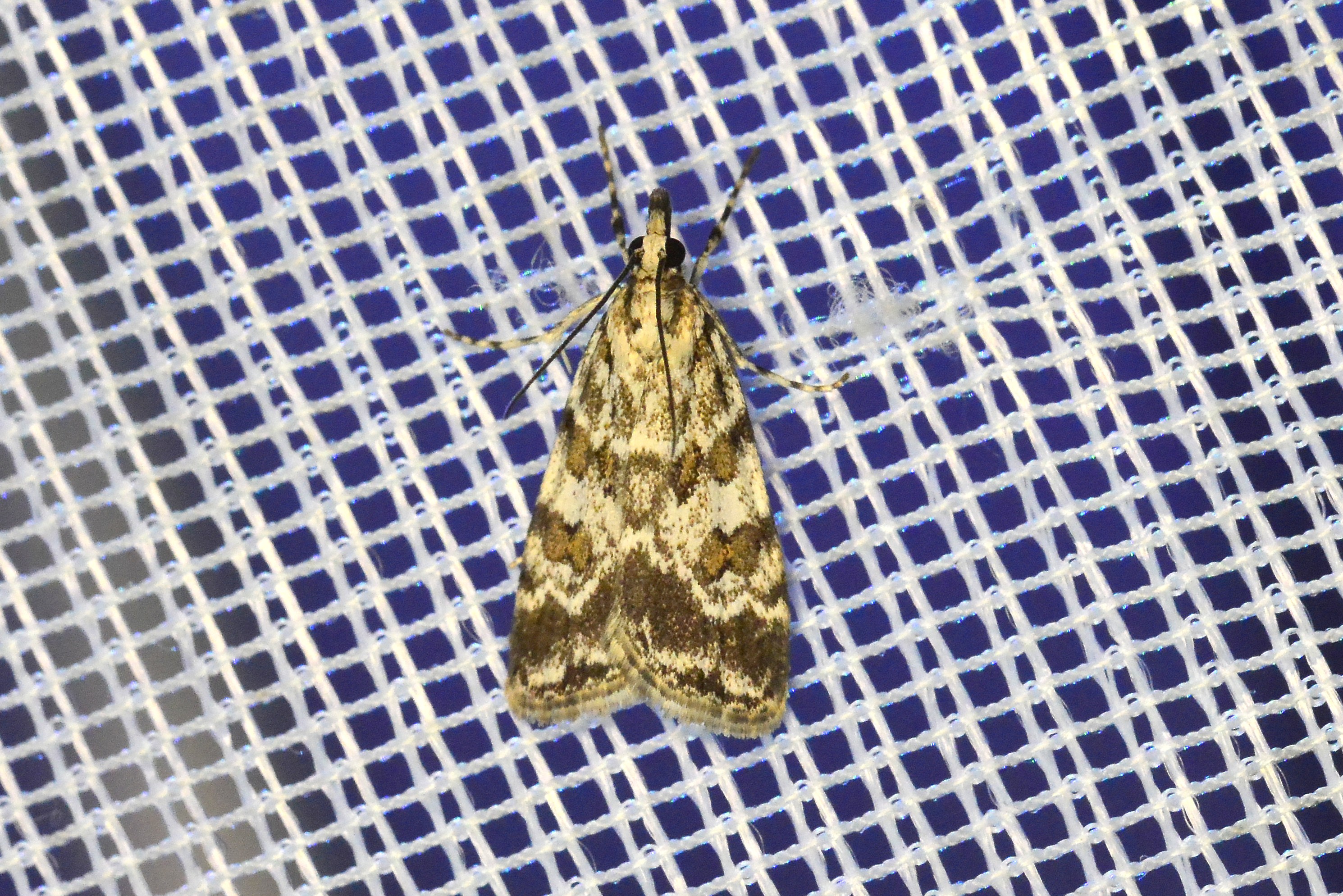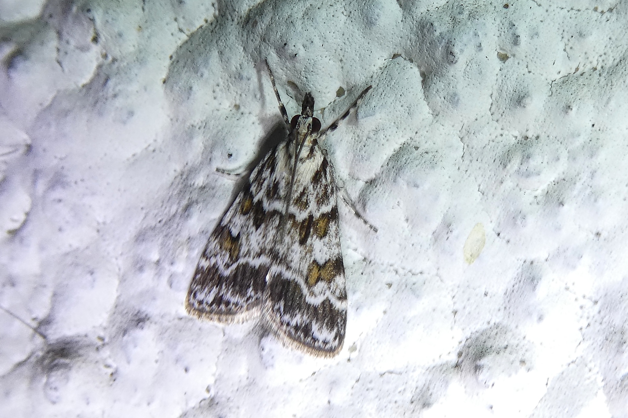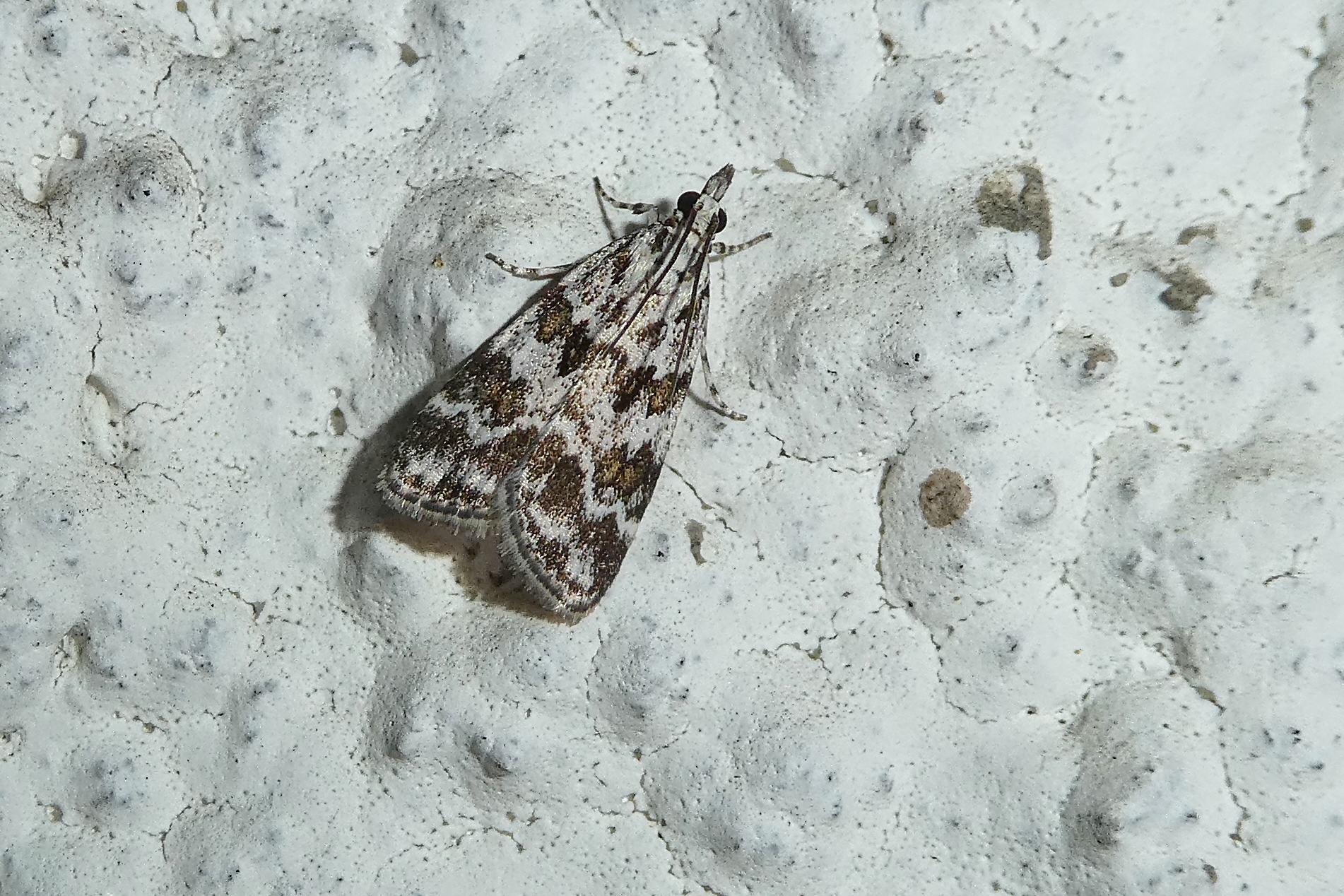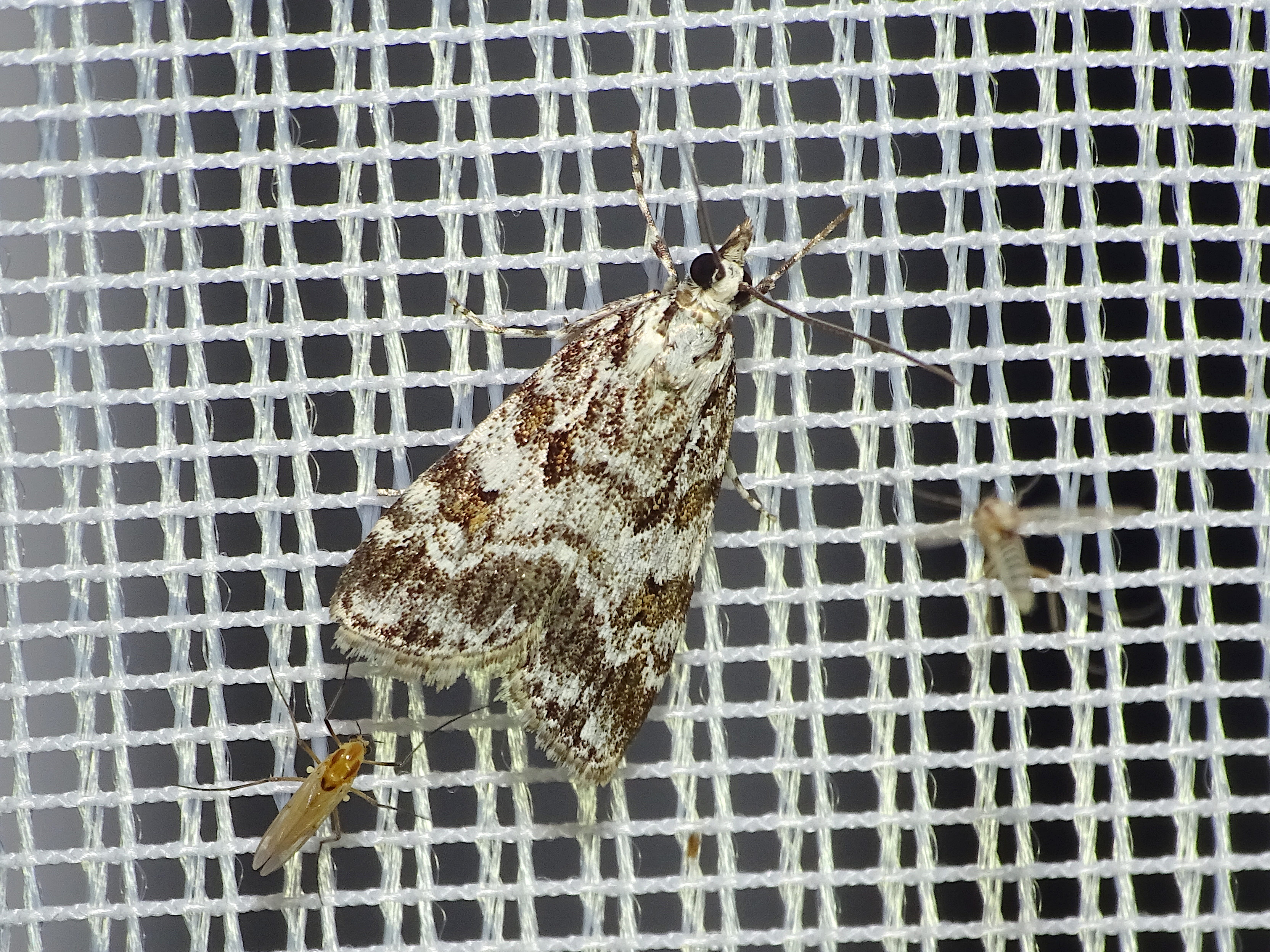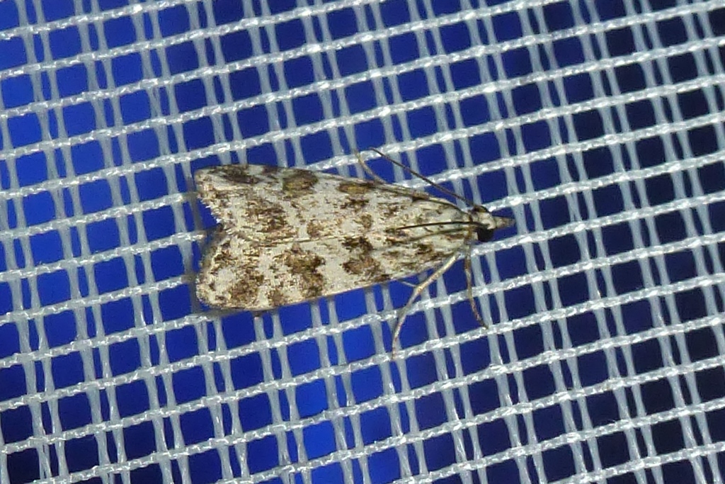 Scoparia pyralella (Denis & Schiffermüller, 1775) Brand-Erbisdorf, Striegistal, Lochmühle, am Licht, Juli 2019, Sommertreffen