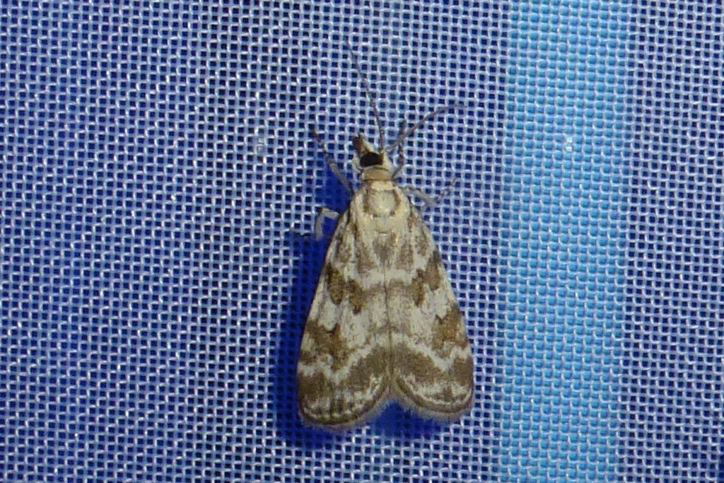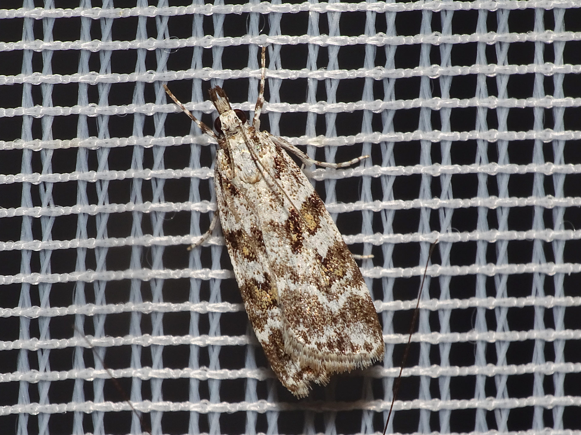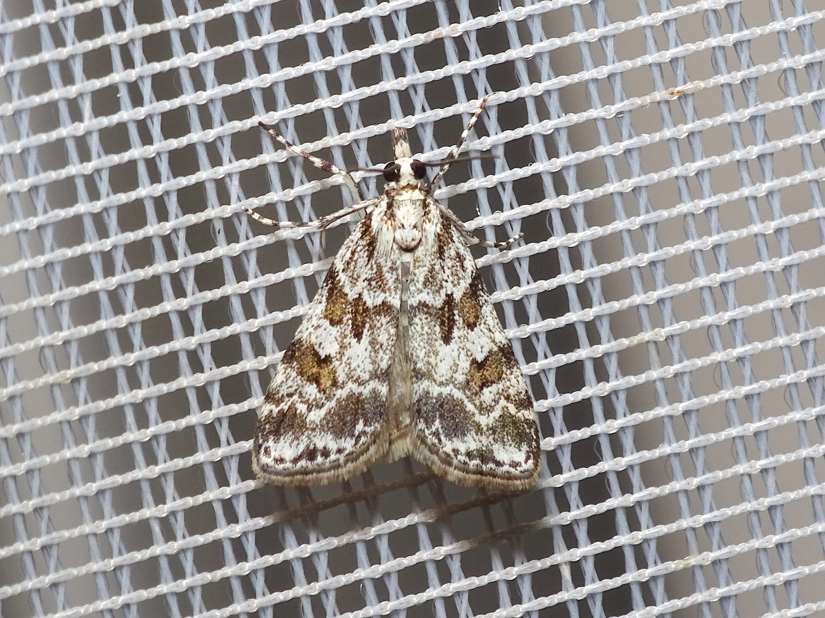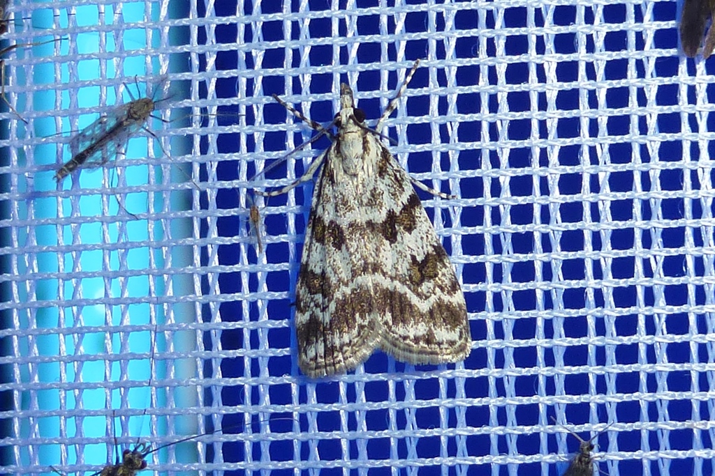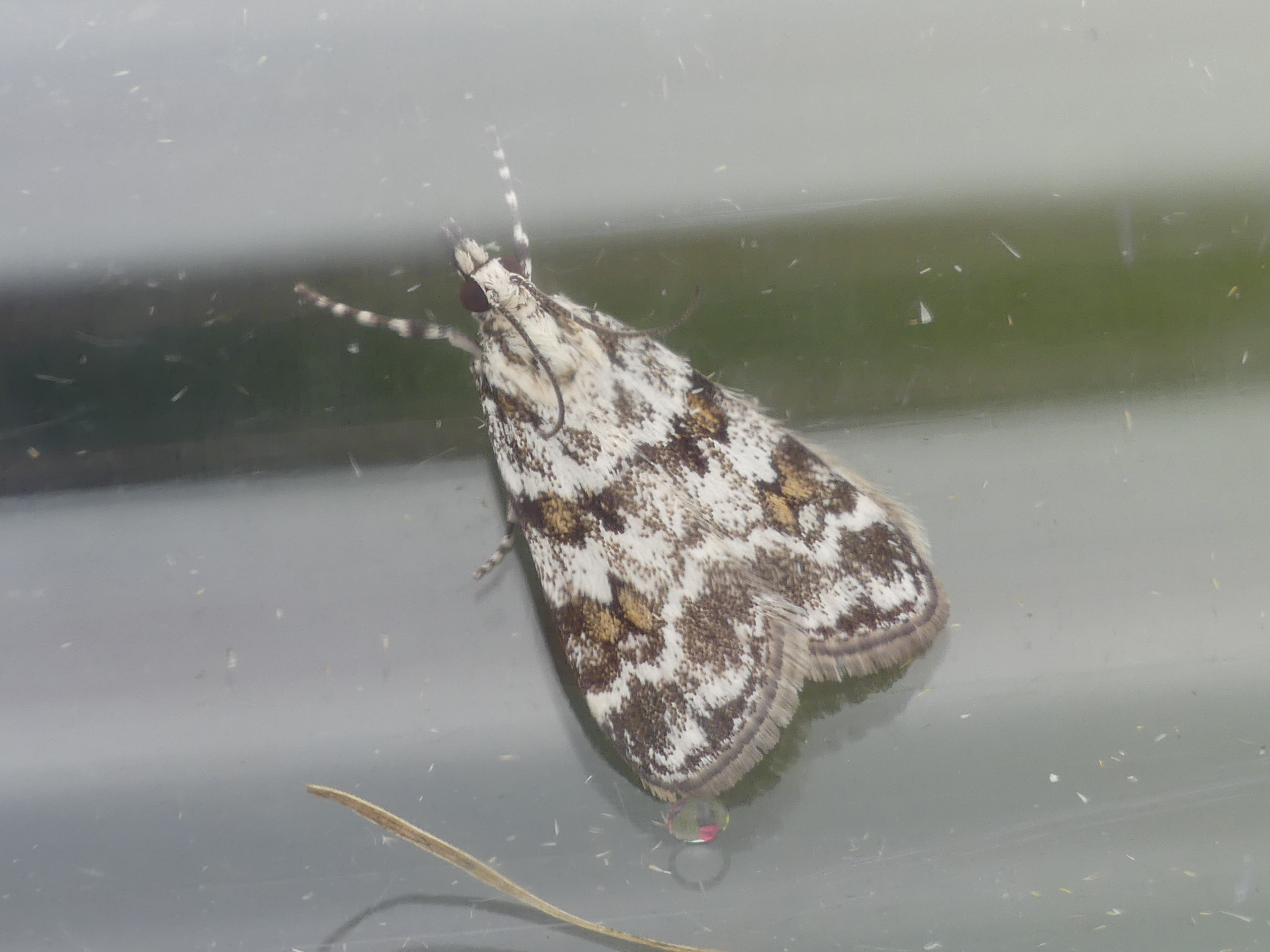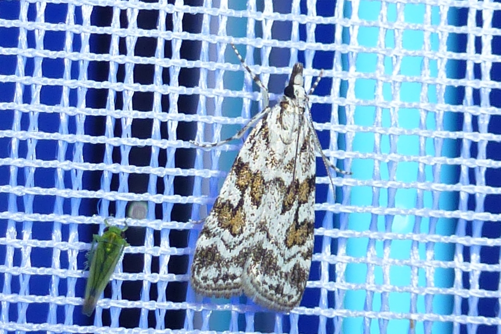 Scoparia pyralella (Denis & Schiffermüller, 1775) Brand-Erbisdorf, Striegistal, Lochmühle, am Licht, Juli 2019, Sommertreffen
