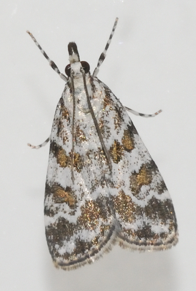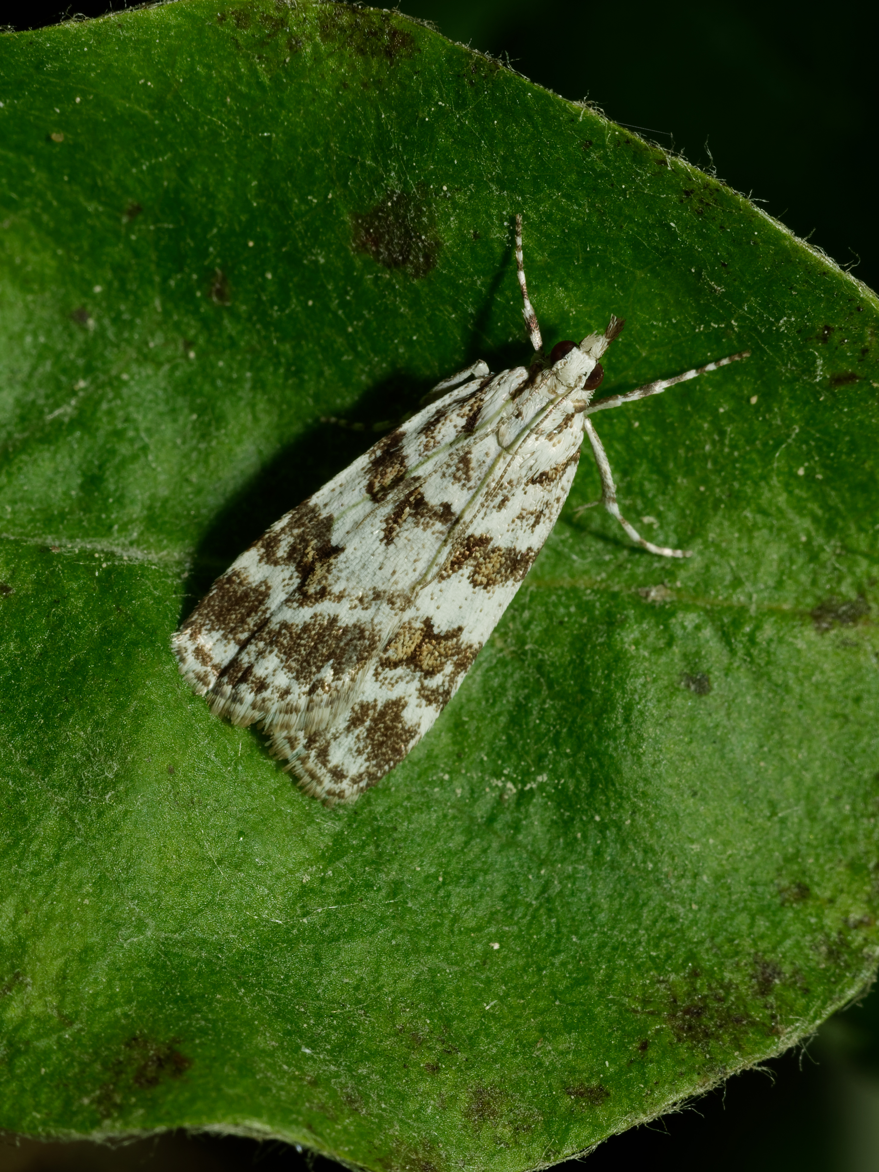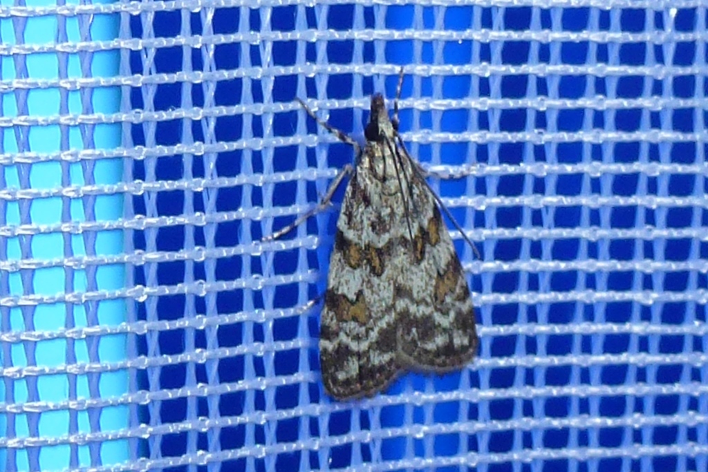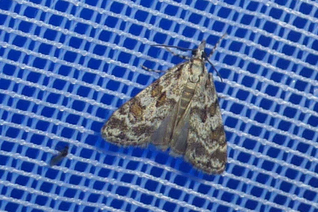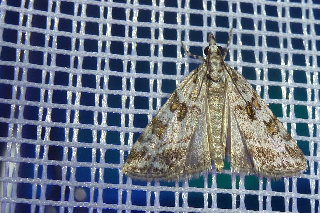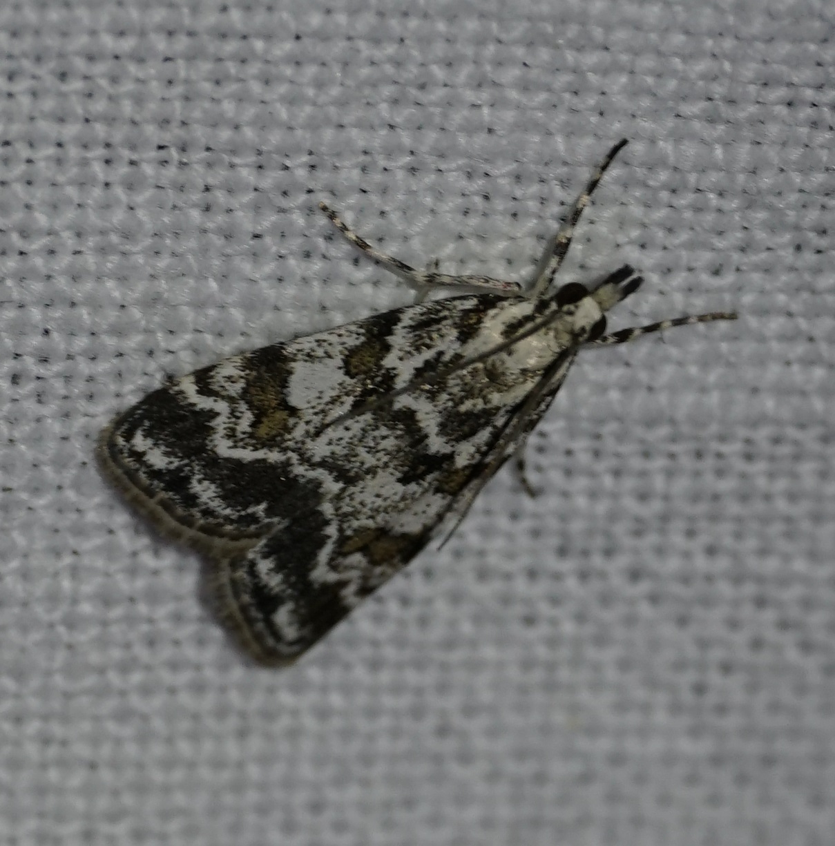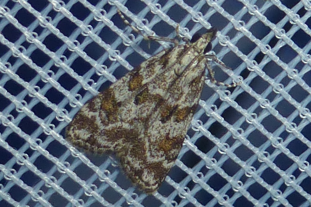 Scoparia pyralella (Denis & Schiffermüller, 1775) Brand-Erbisdorf, Striegistal, Lochmühle, am Licht, Juli 2019, Sommertreffen