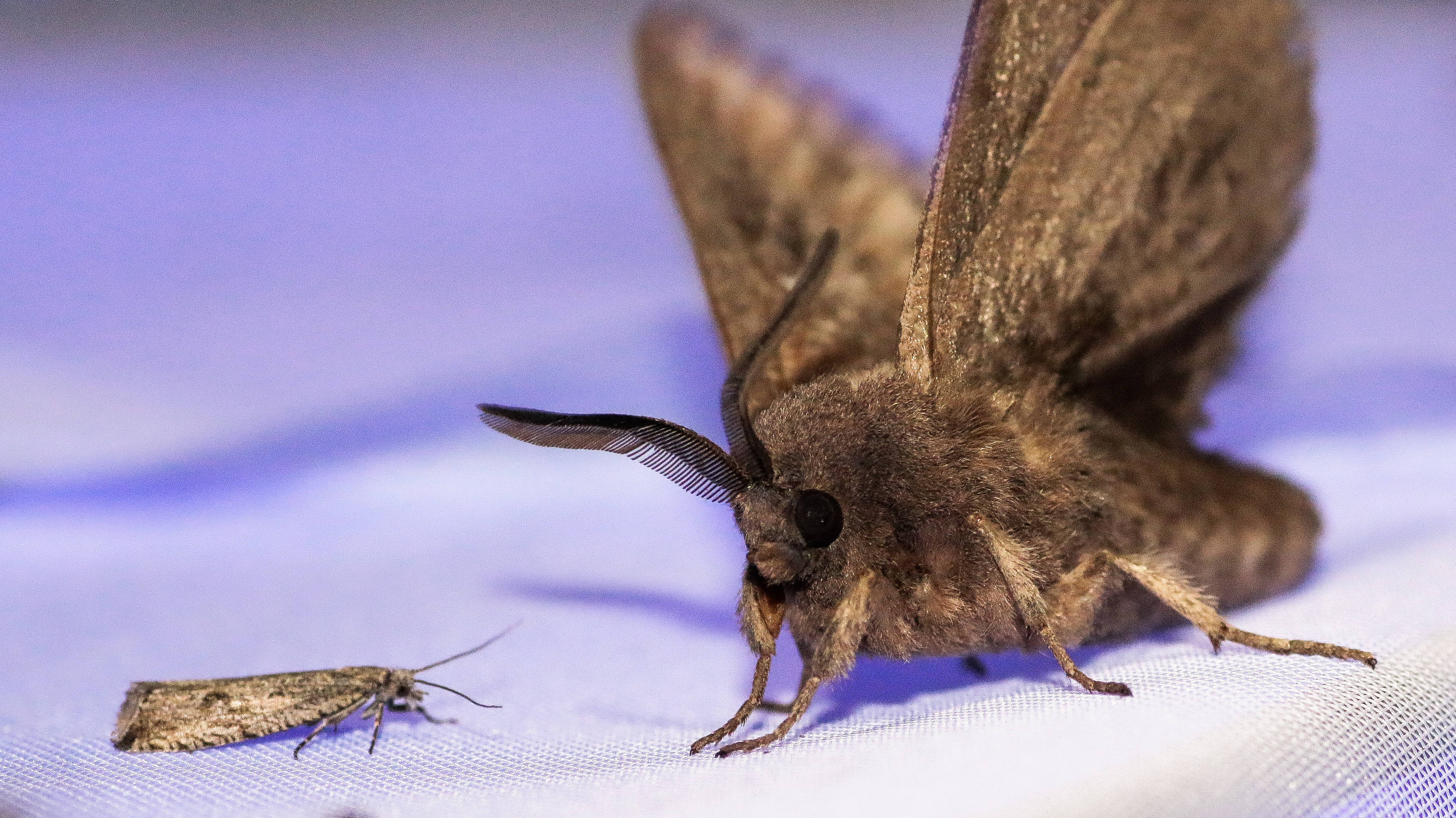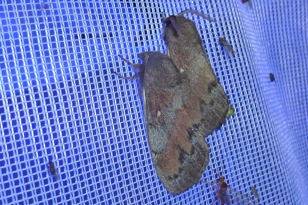 am Licht - links Männchen, rechts Weibchen - Königsbrück-Ruhlander Heiden, Ochsenberg, Kiesgrube am Waldrand bei Gottschdorf, 28. Juli 2022