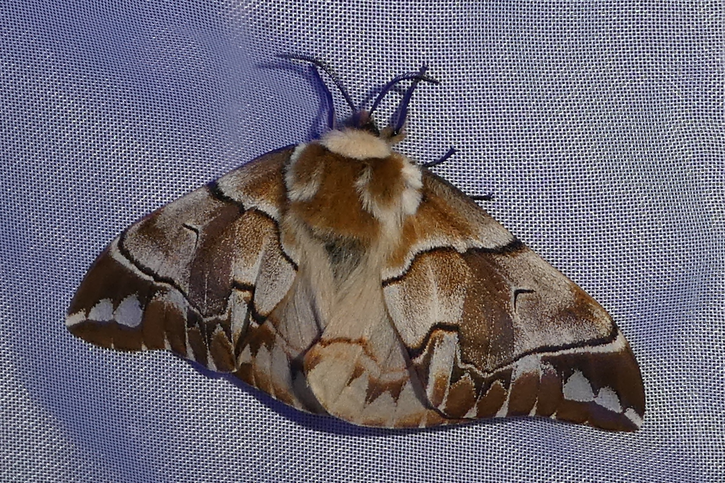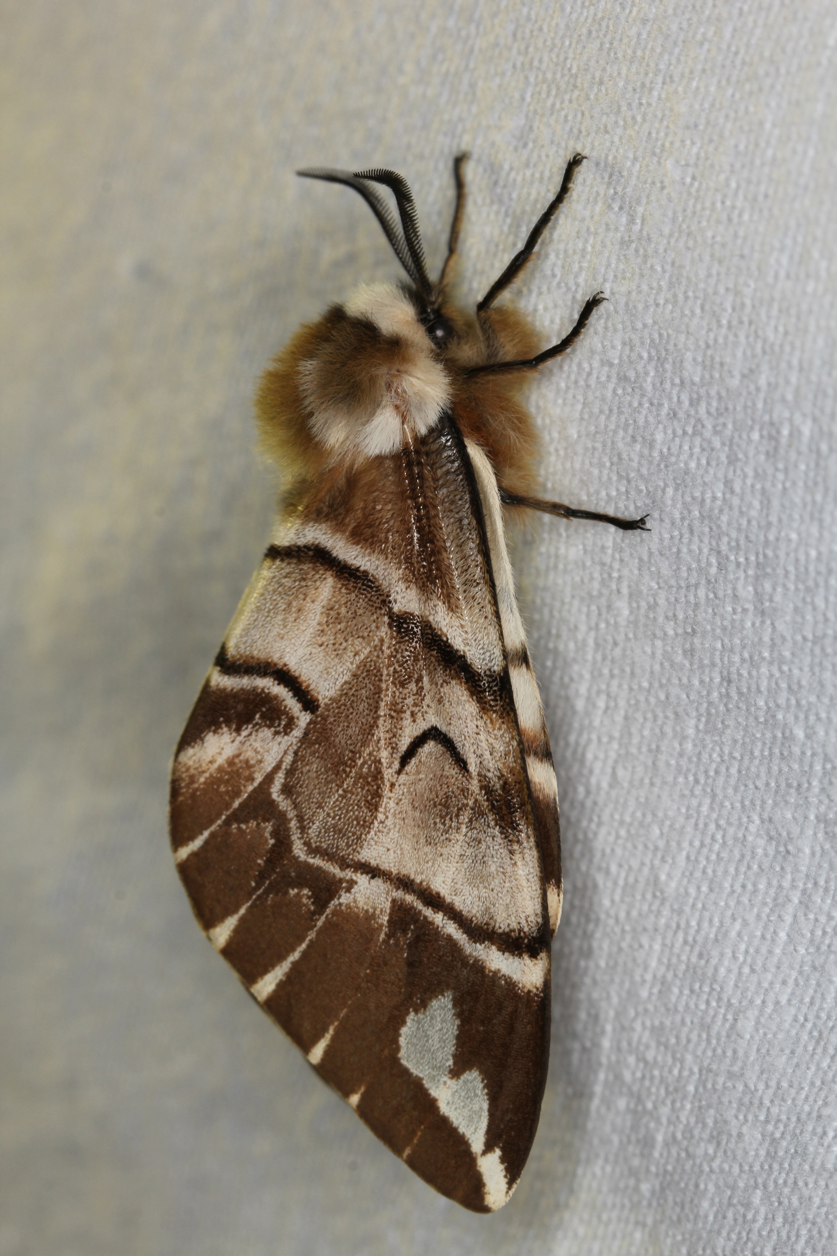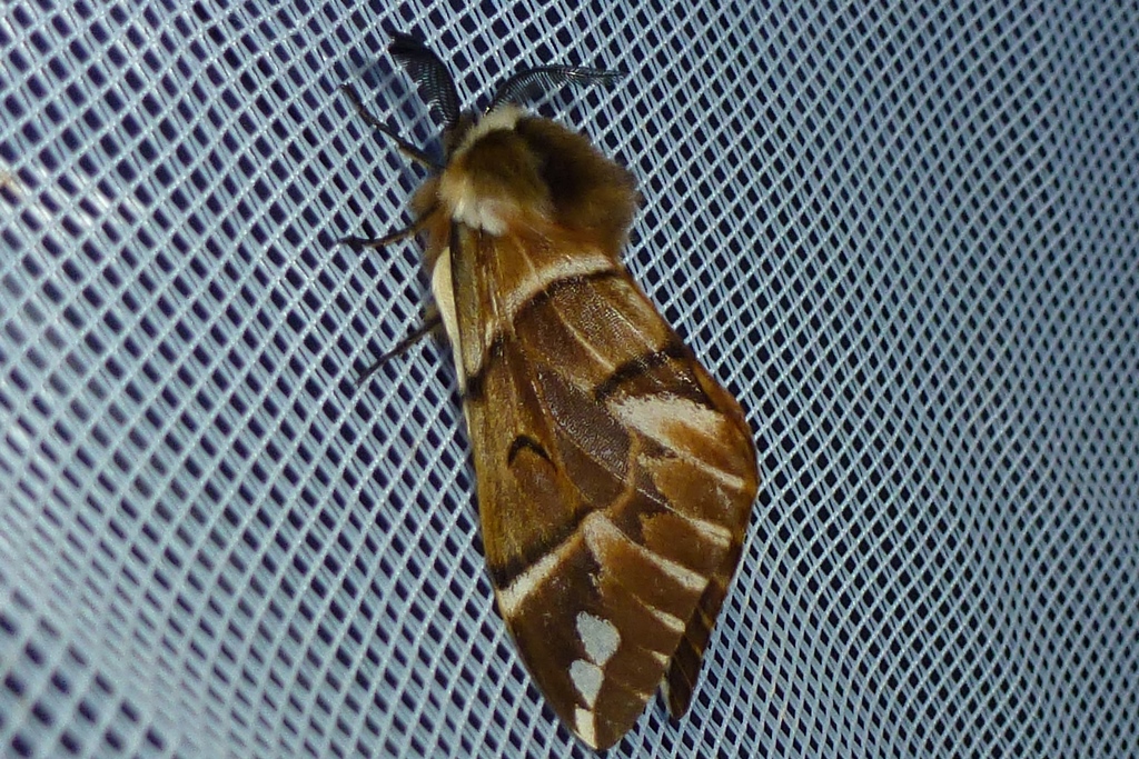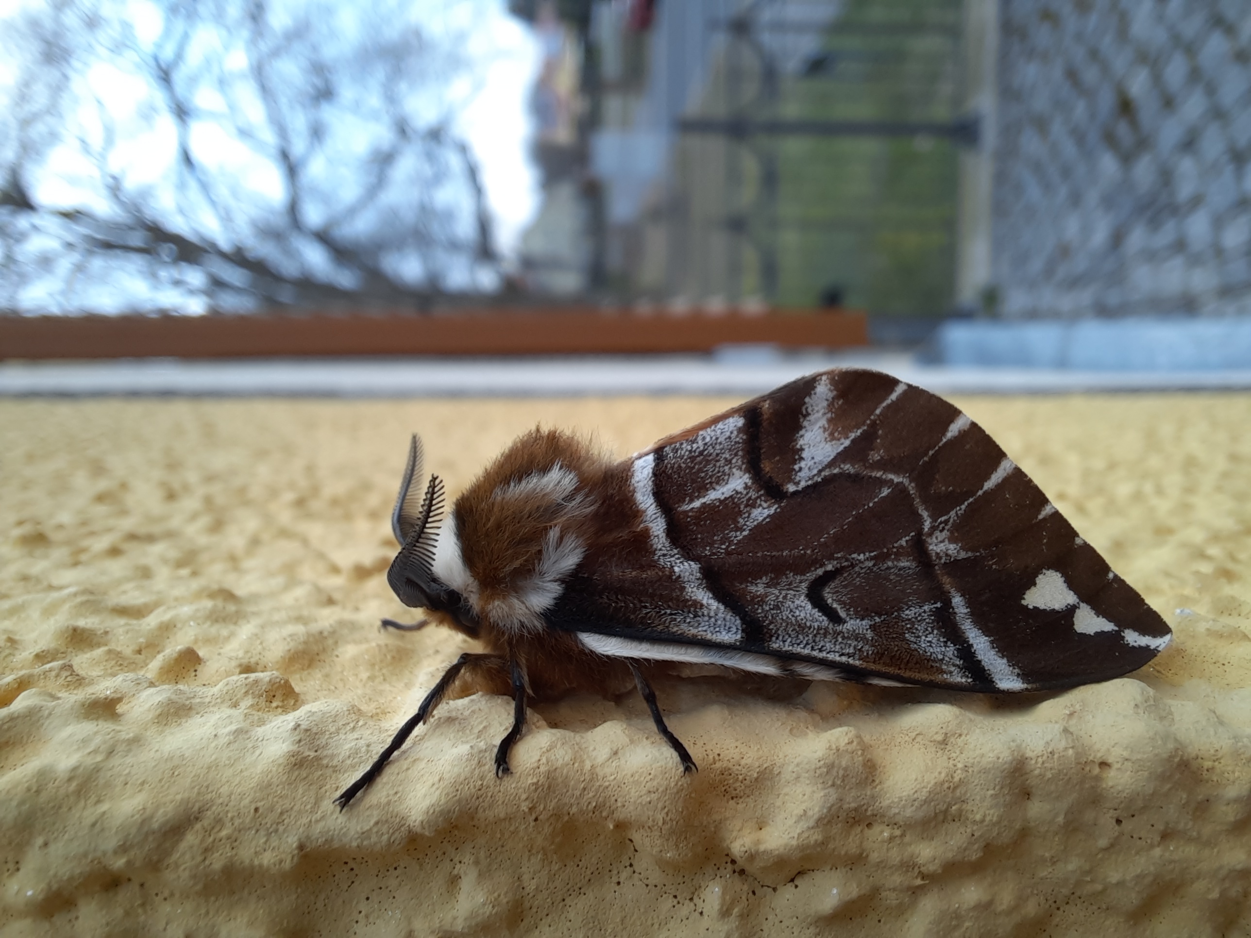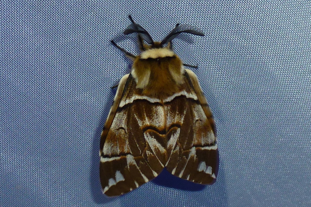 Scheckflügel (Endromis versicolora (Linnaeus, 1758)) Grumbach/Erzgebirge, 02.04.2017 am Licht (ein Weibchen)
