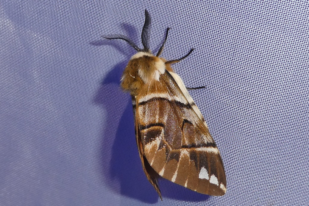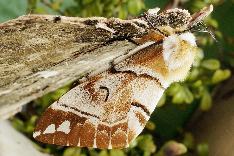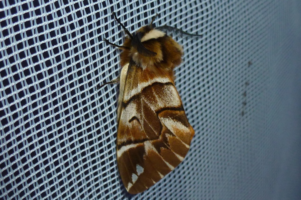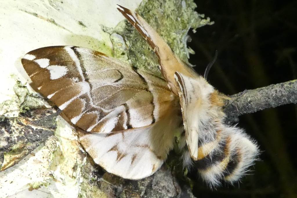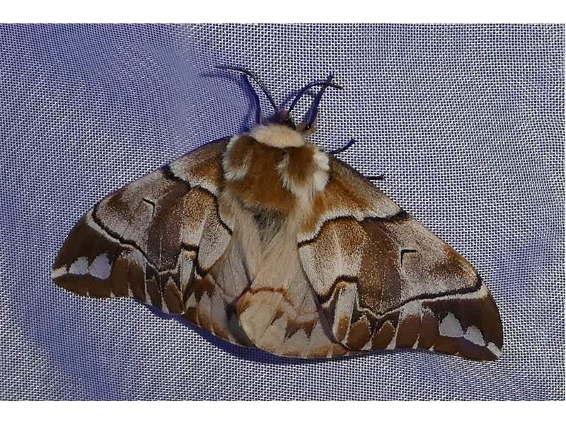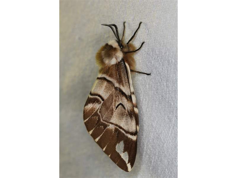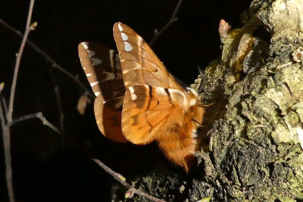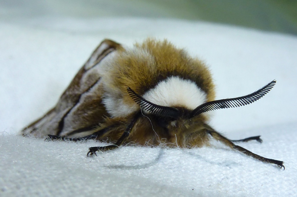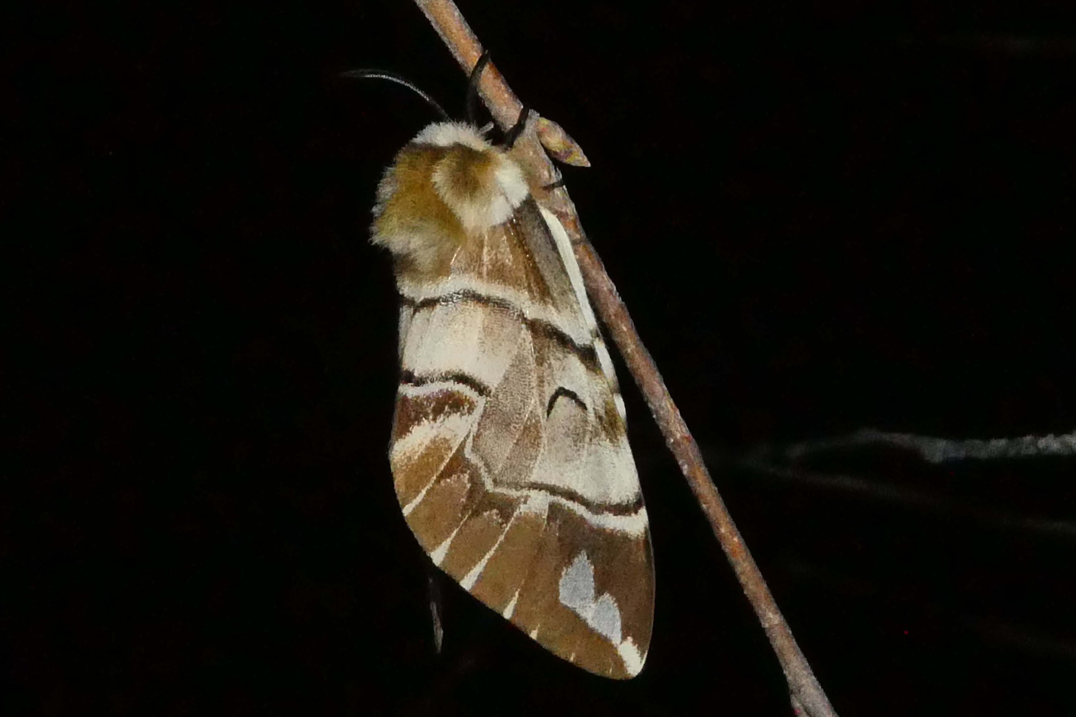 Scheckflügel (Endromis versicolora (Linnaeus, 1758)) Grumbach/Erzgebirge, 02.04.2017 am Licht (ein Weibchen)