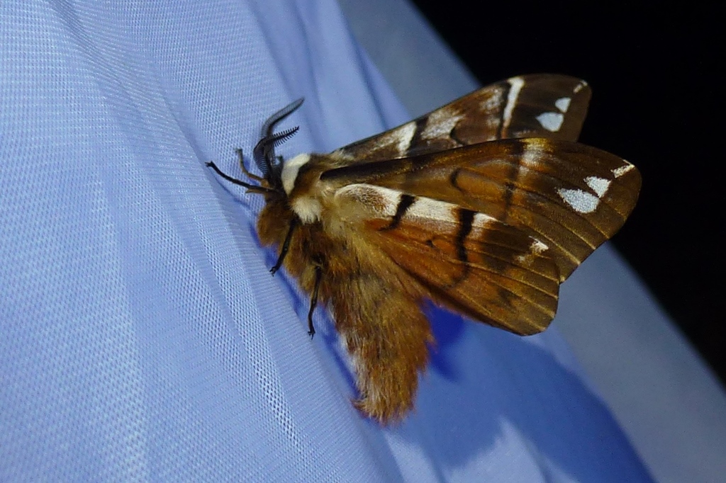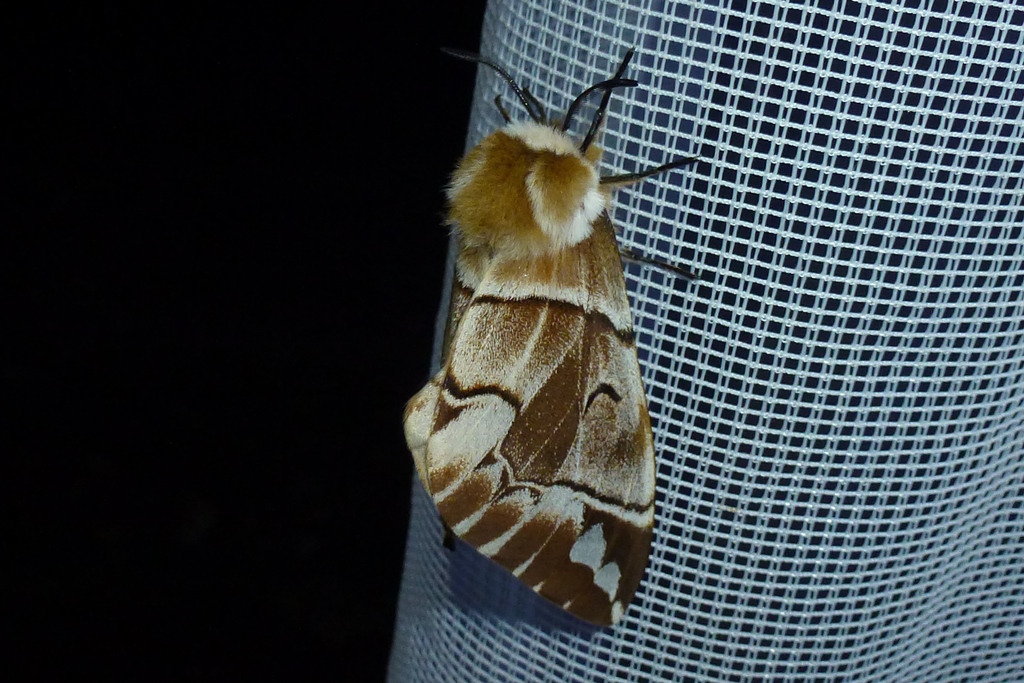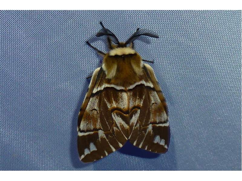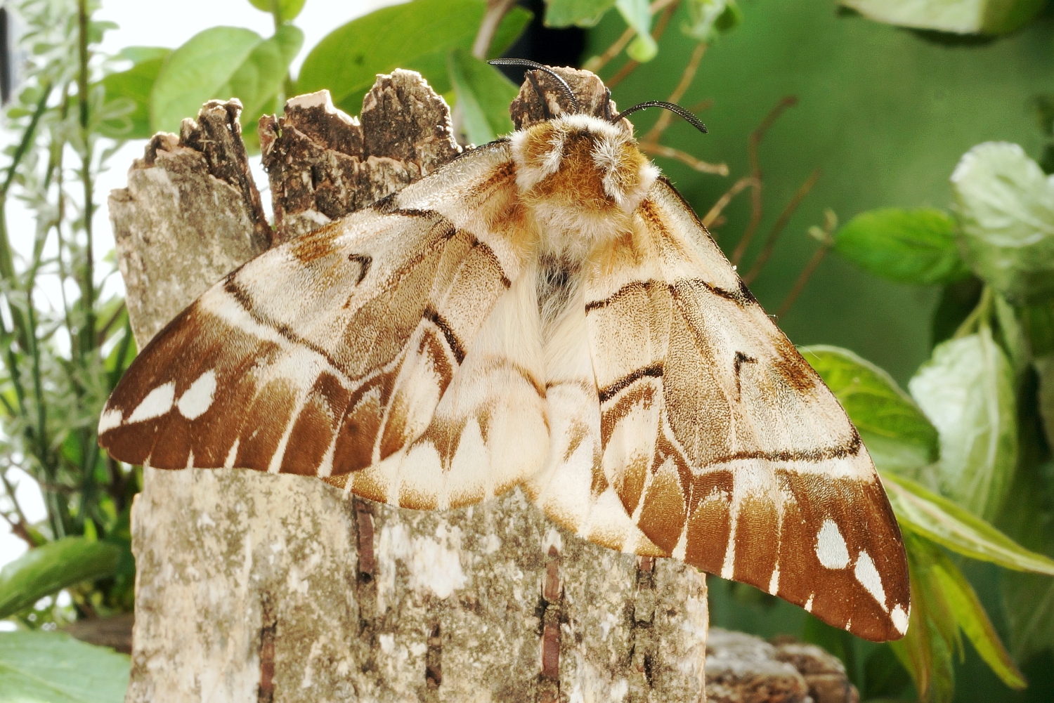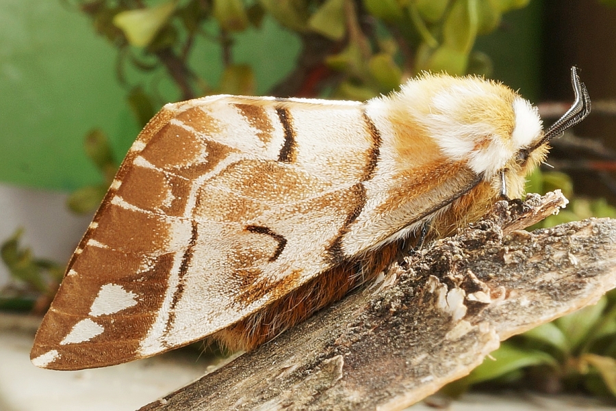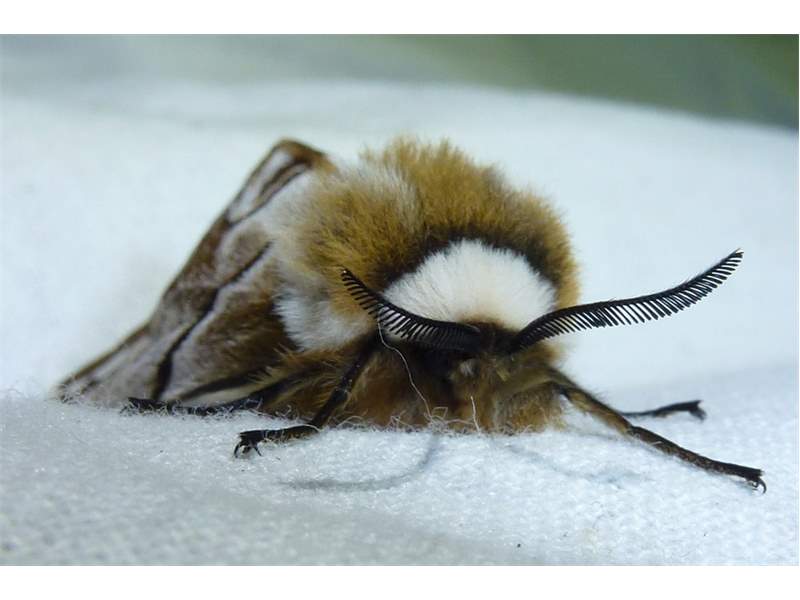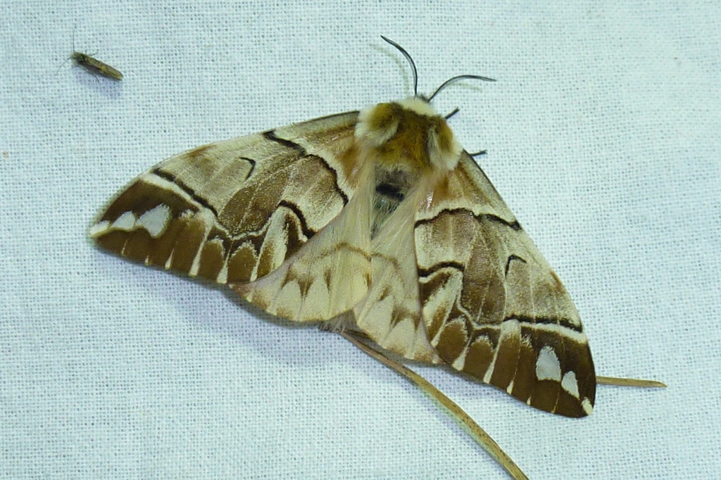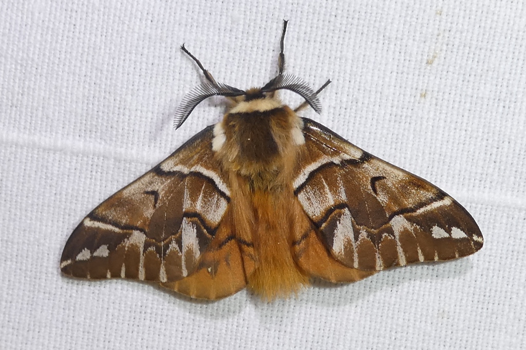 Scheckflügel (Endromis versicolora (Linnaeus, 1758)) Grumbach/Erzgebirge, 02.04.2017 am Licht (ein Weibchen)