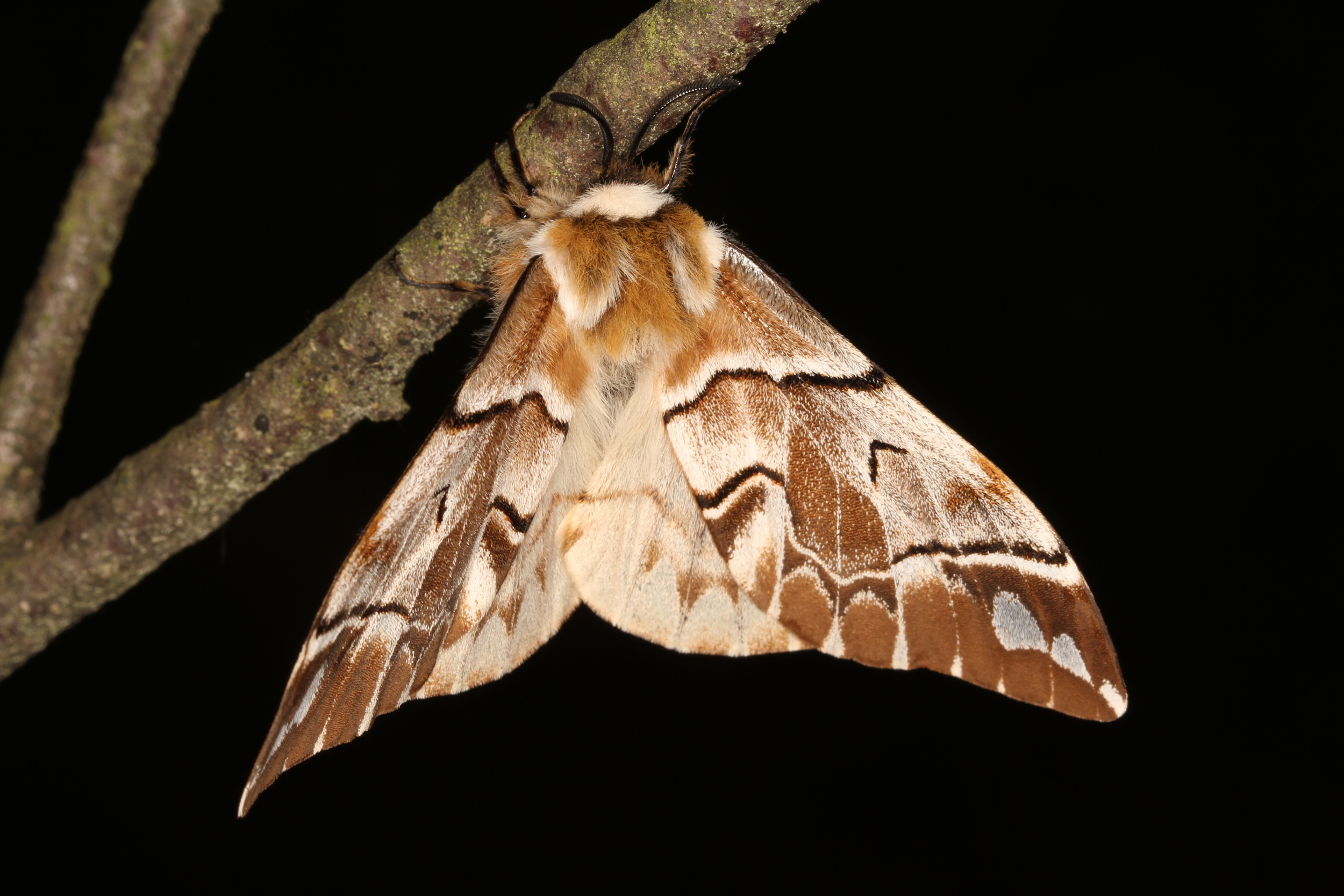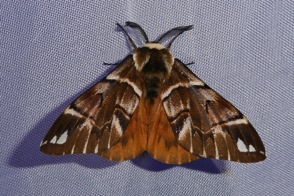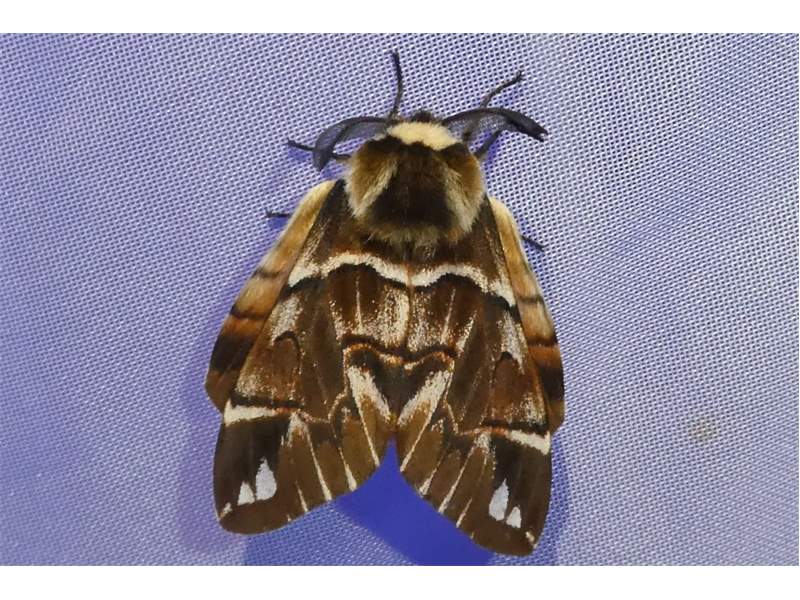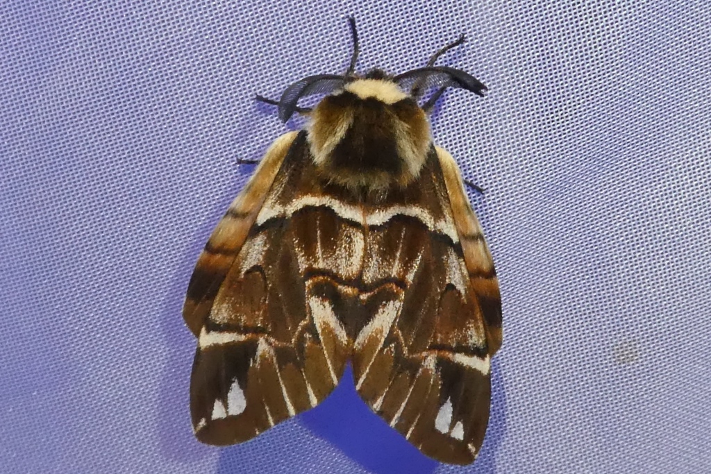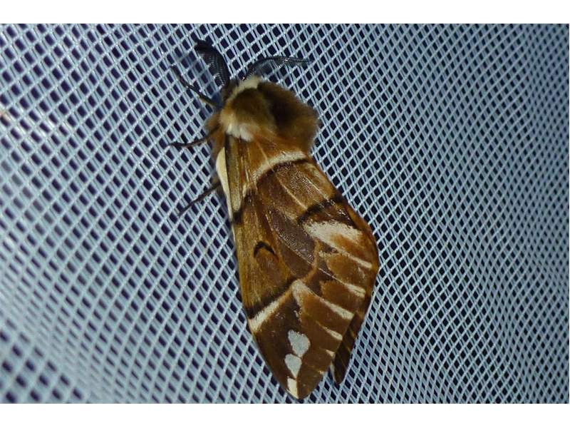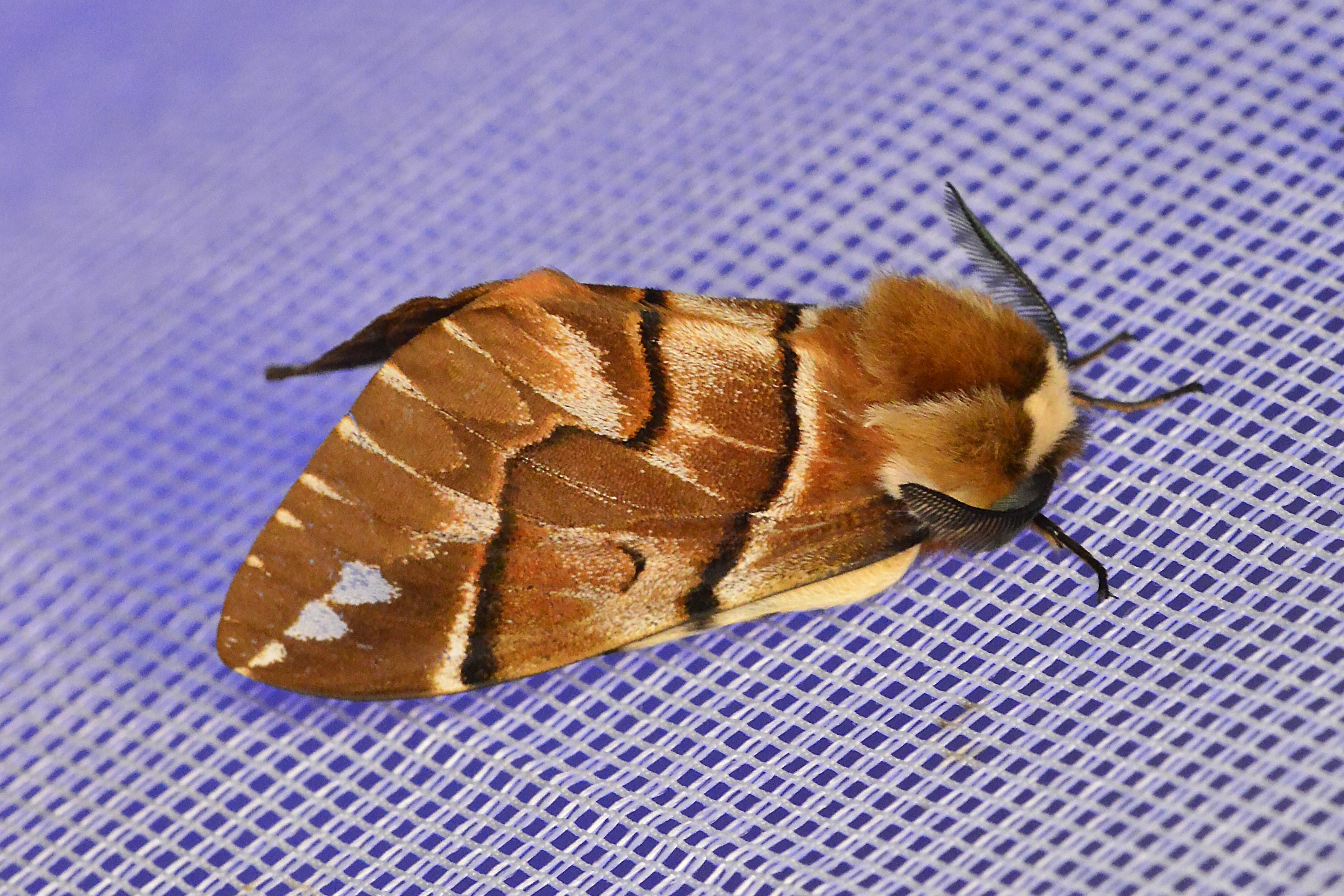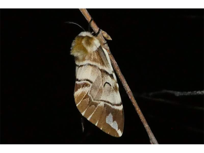 Scheckflügel (Endromis versicolora (Linnaeus, 1758)) Grumbach/Erzgebirge, 02.04.2017 am Licht (ein Weibchen)