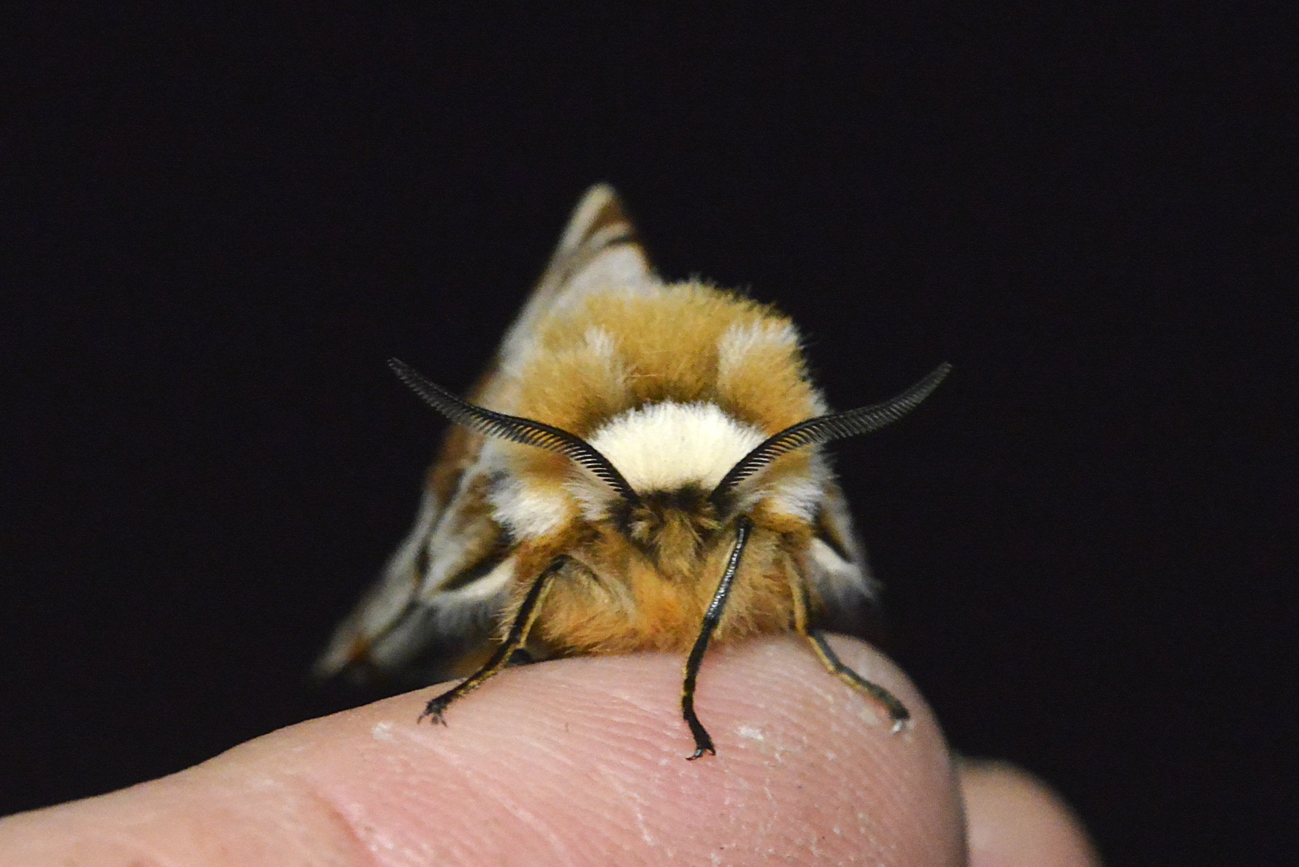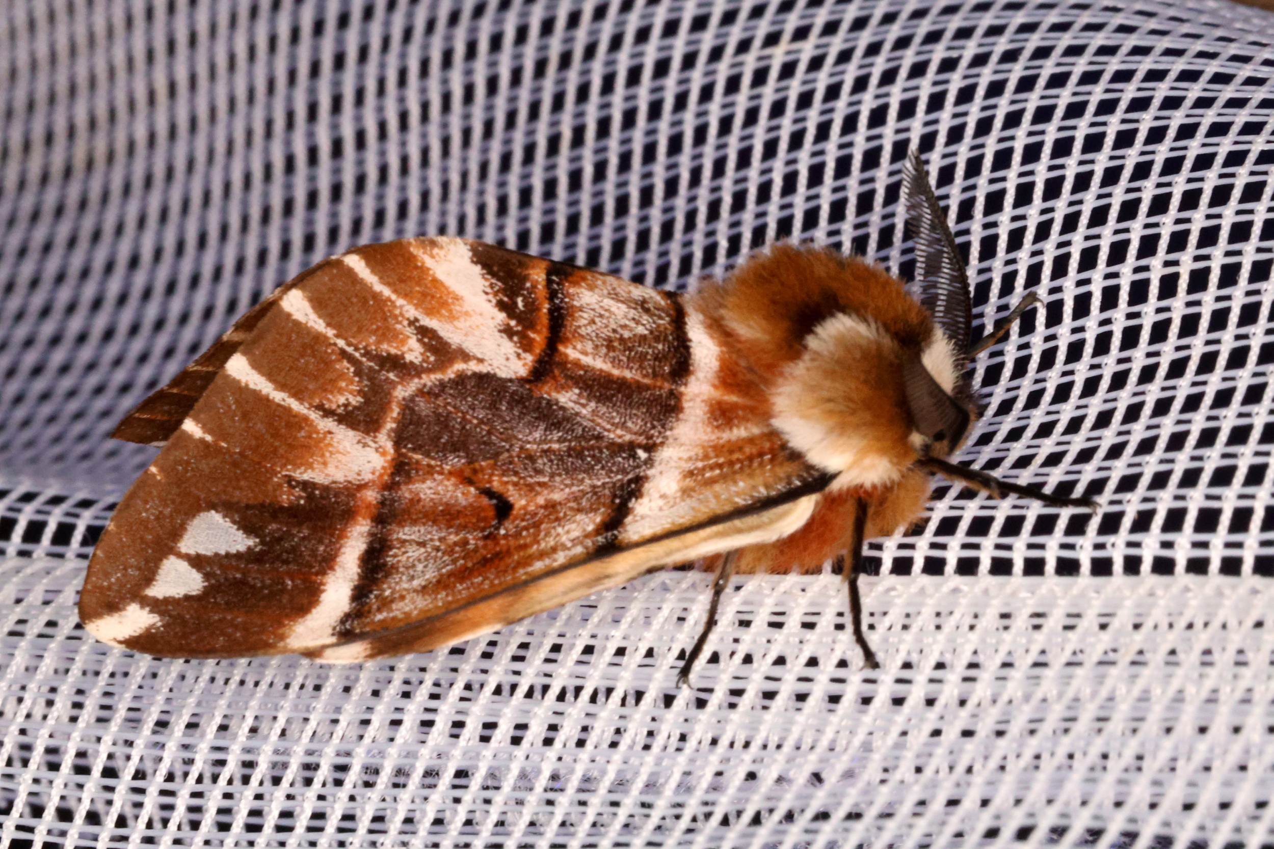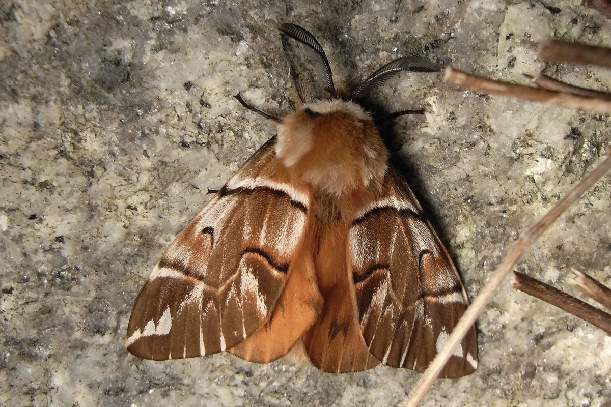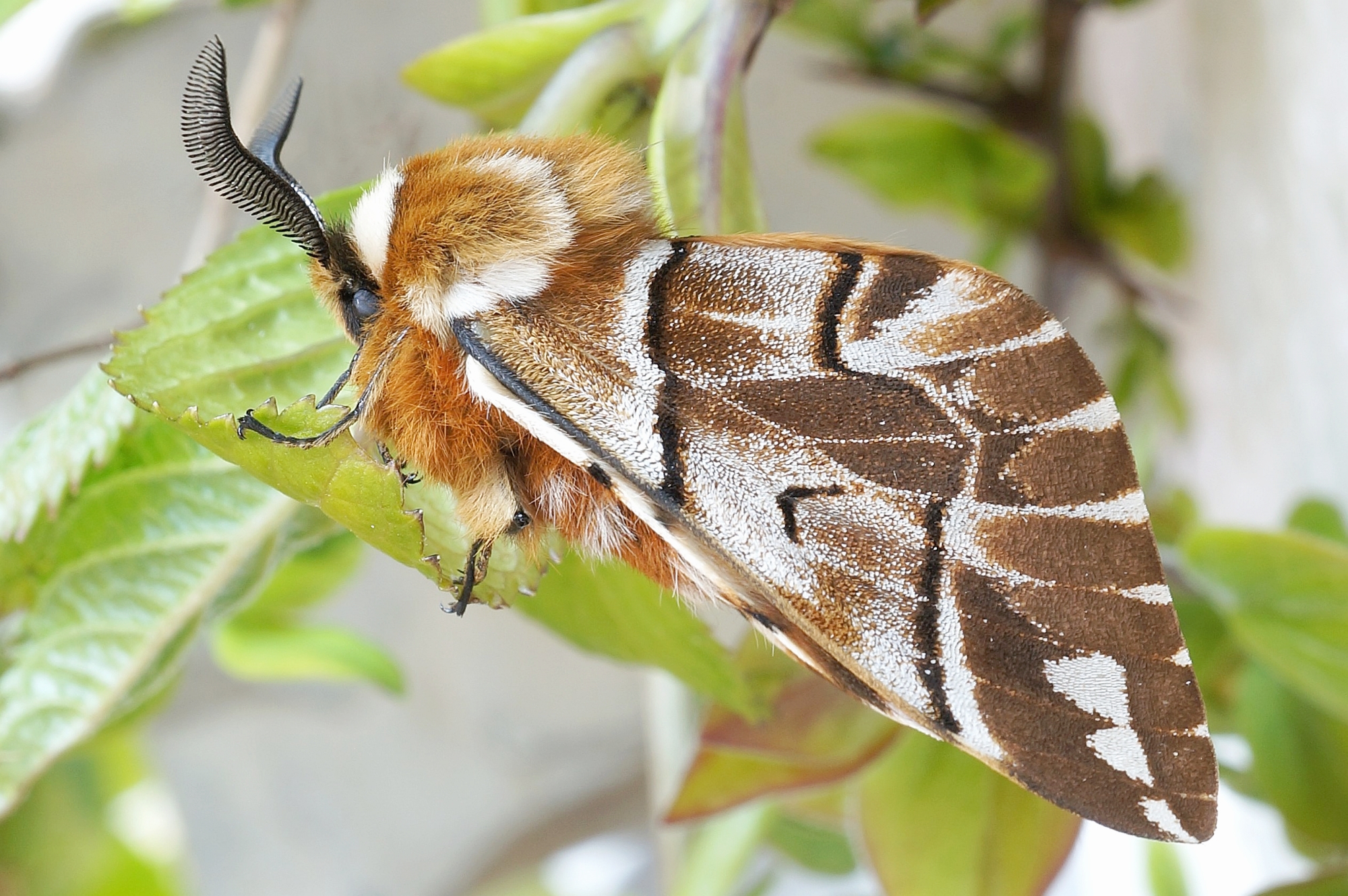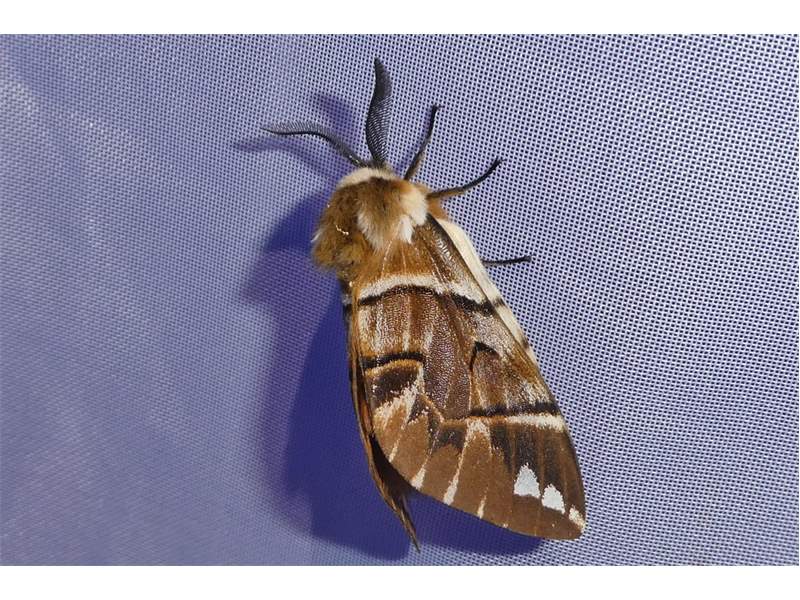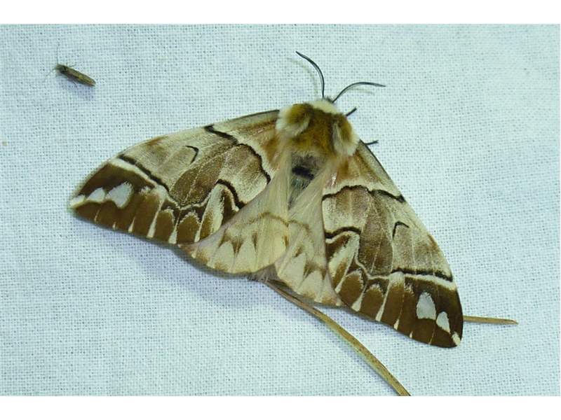 Scheckflügel (Endromis versicolora (Linnaeus, 1758)) Grumbach/Erzgebirge, 02.04.2017 am Licht (ein Weibchen)