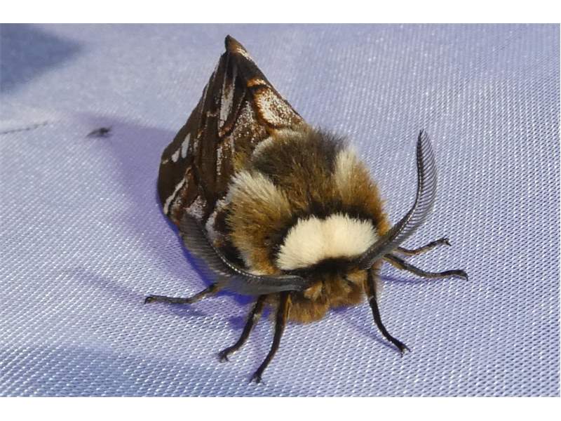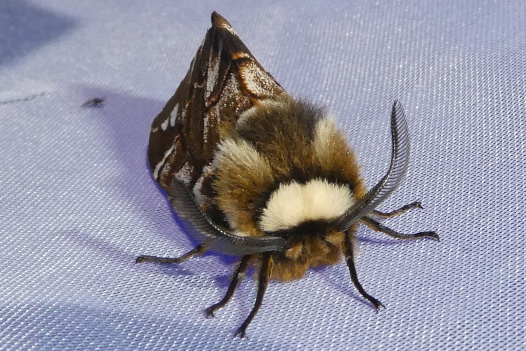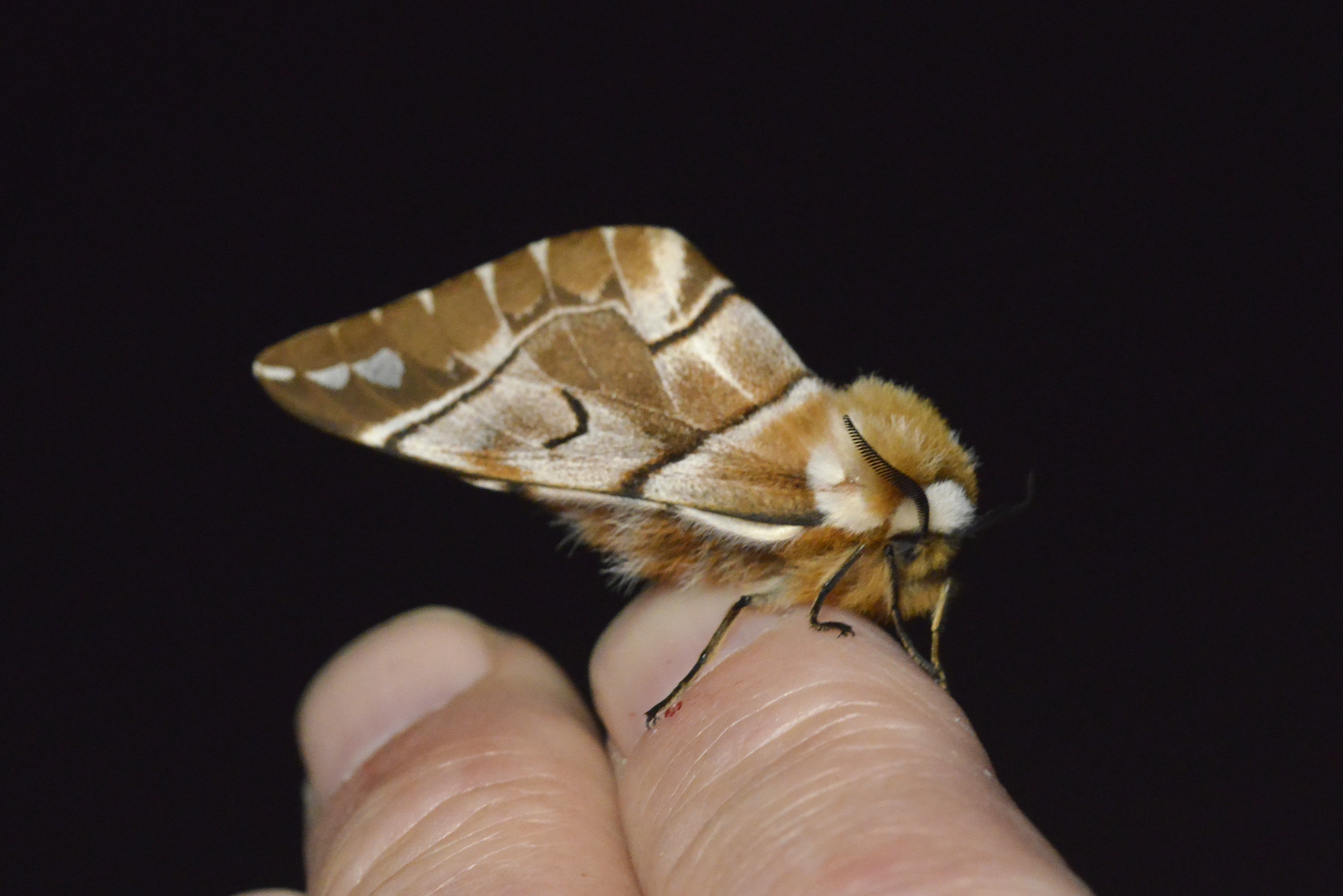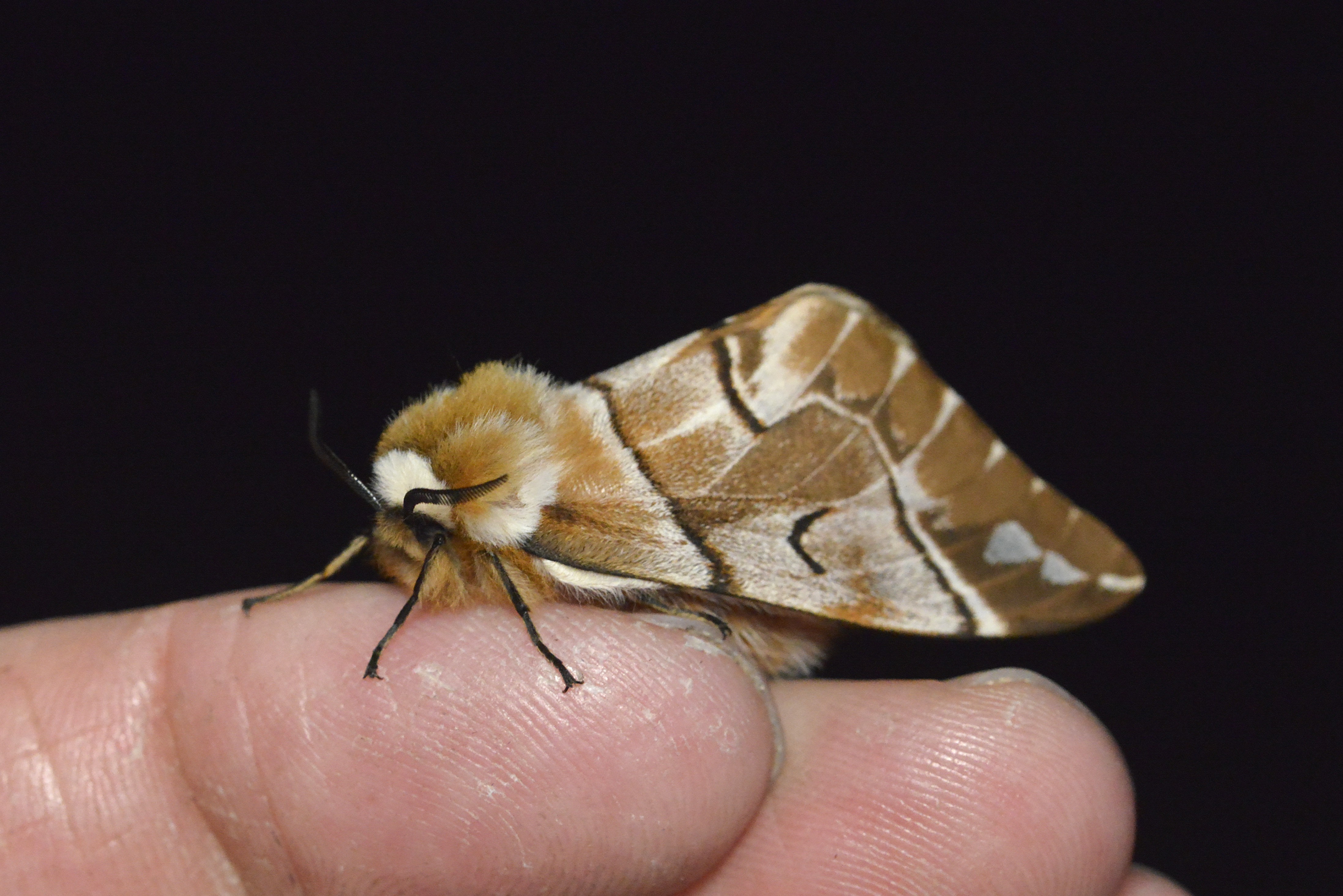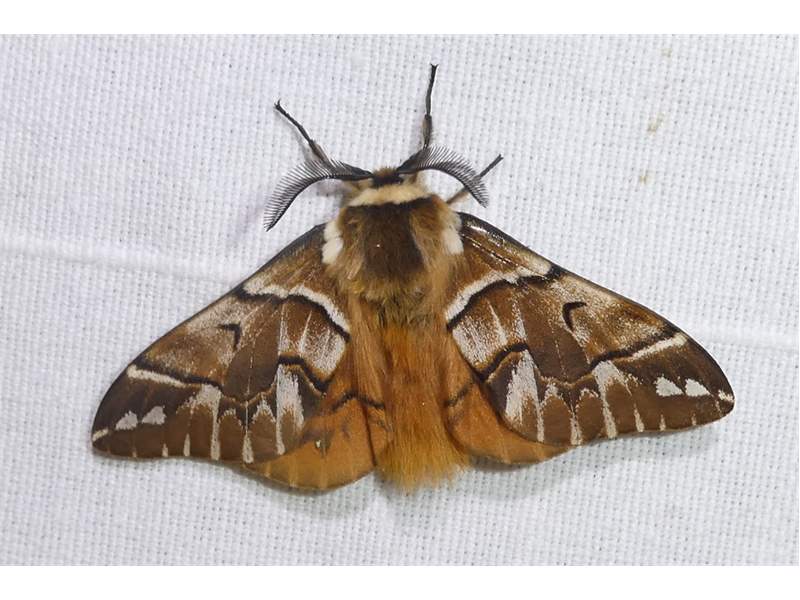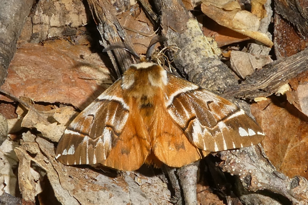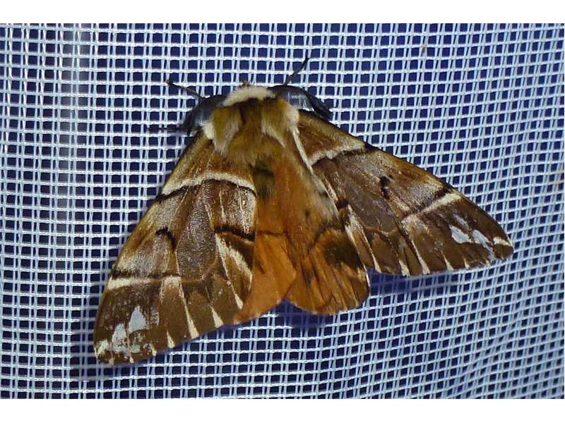 Scheckflügel (Endromis versicolora (Linnaeus, 1758)) Grumbach/Erzgebirge, 02.04.2017 am Licht (ein Weibchen)