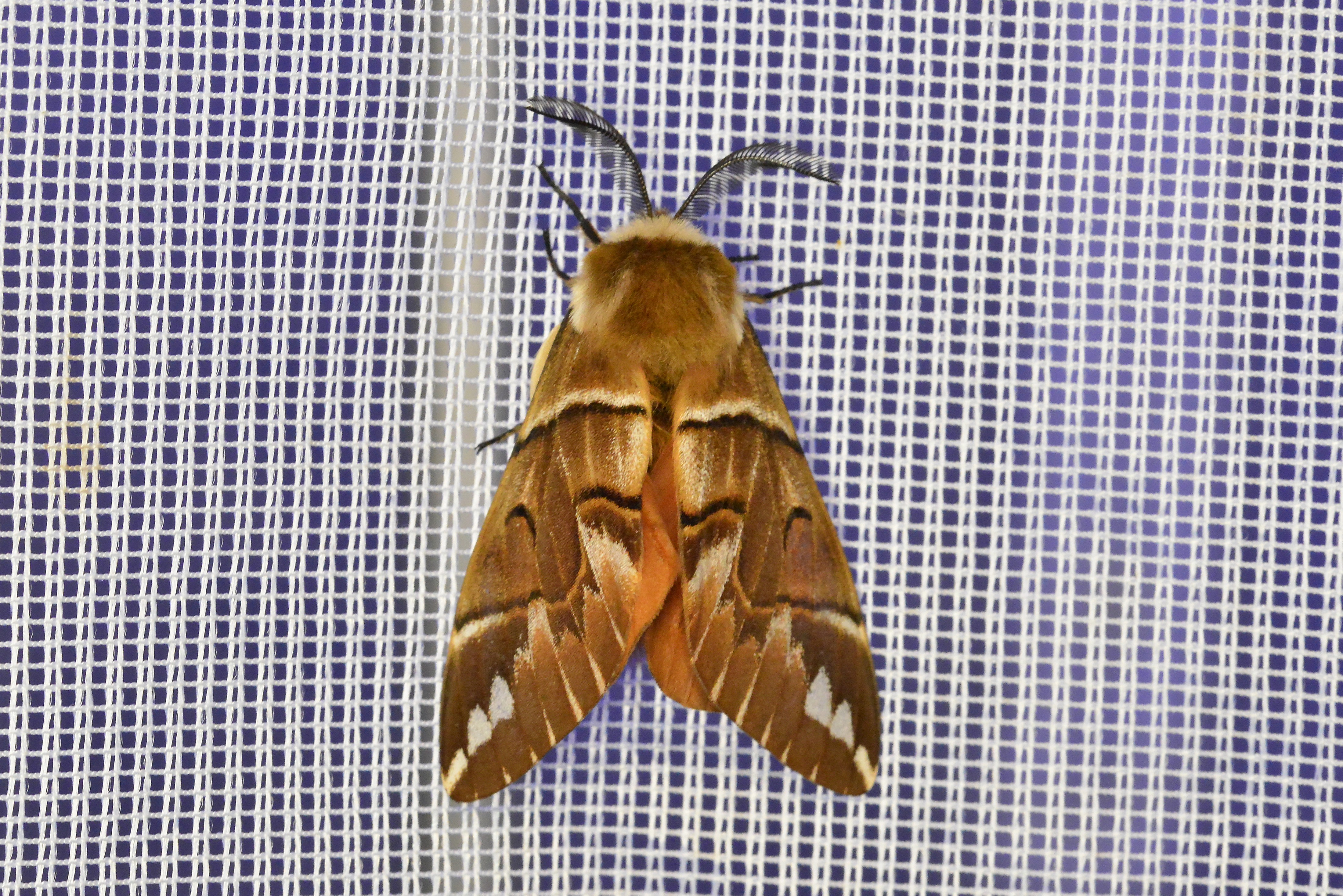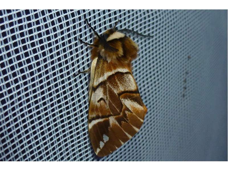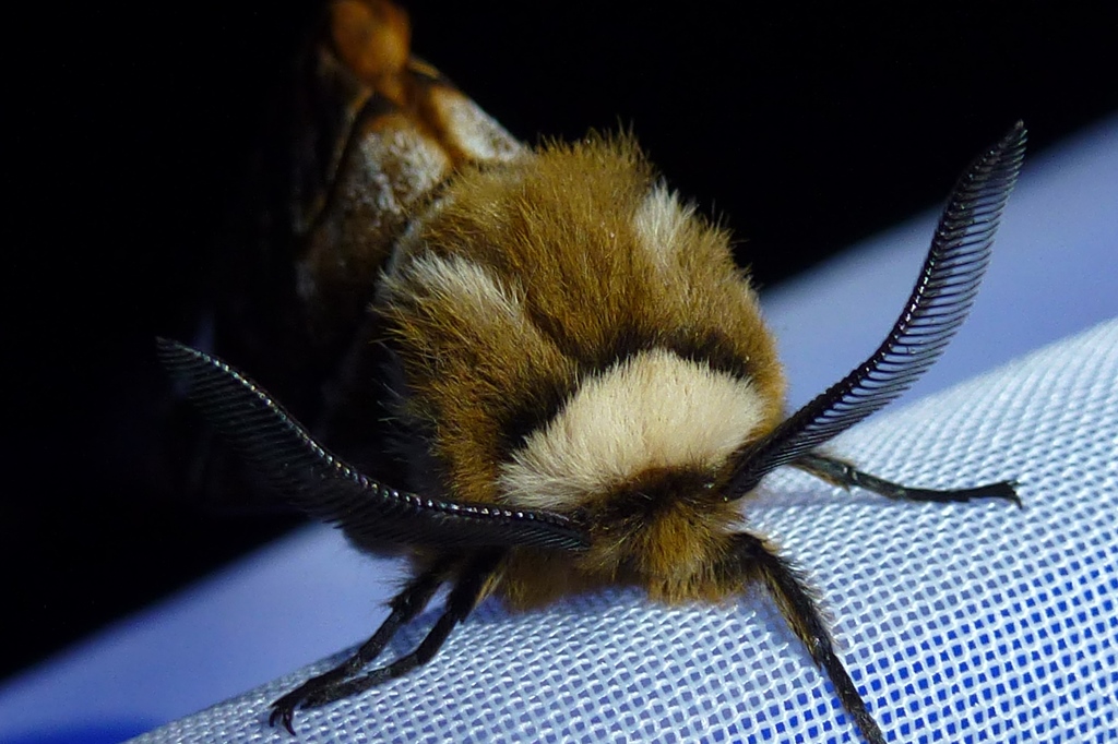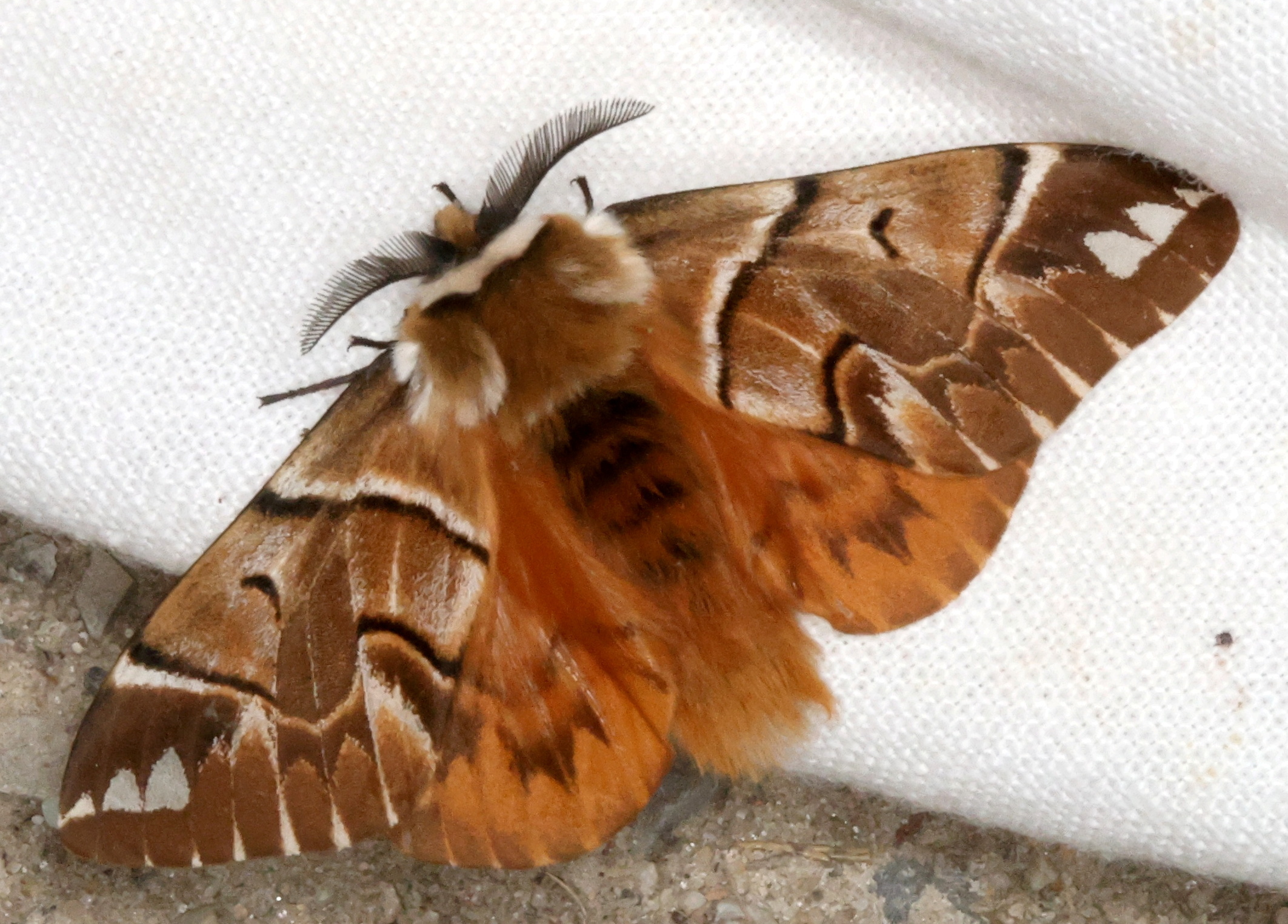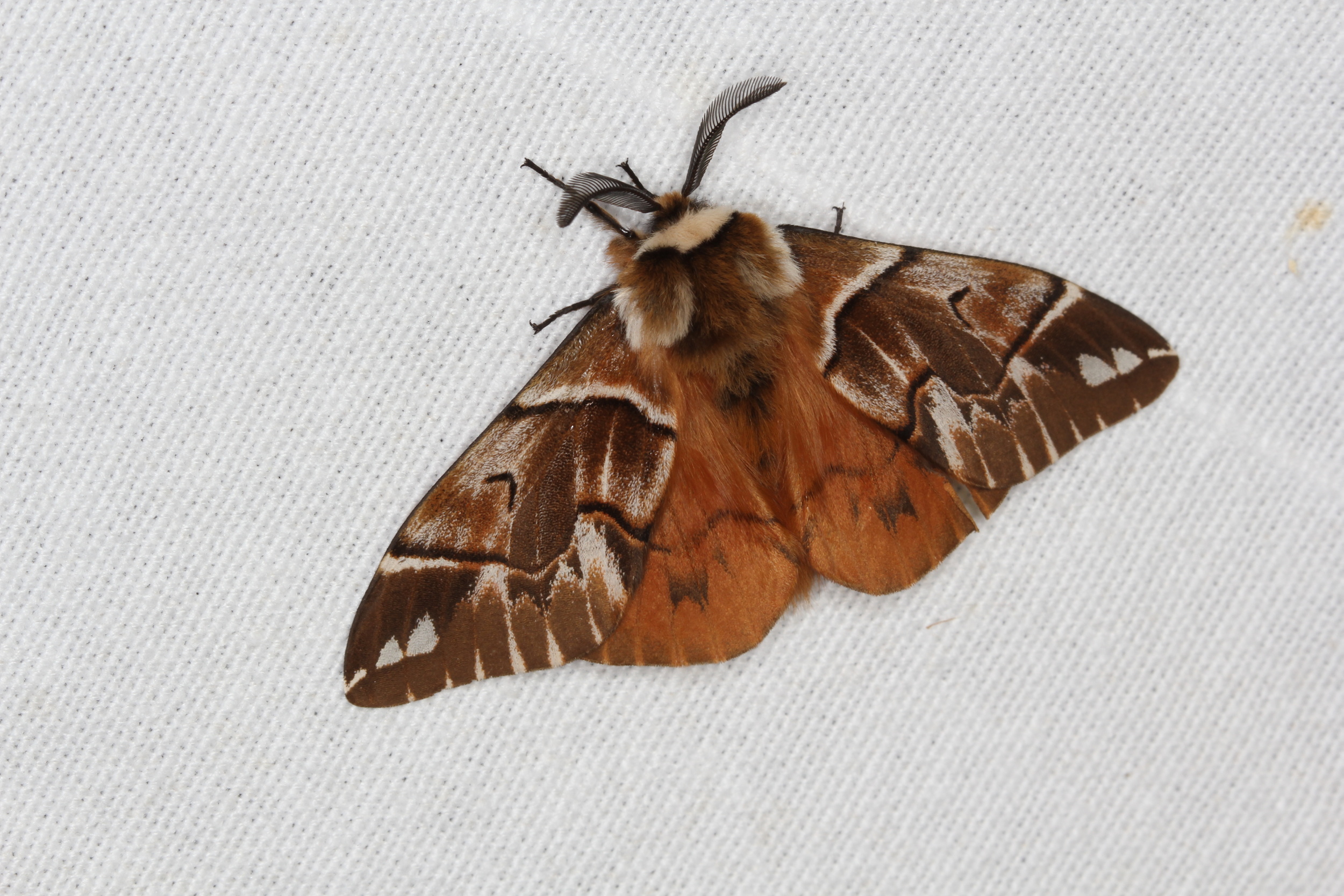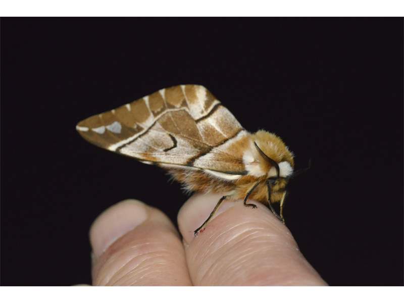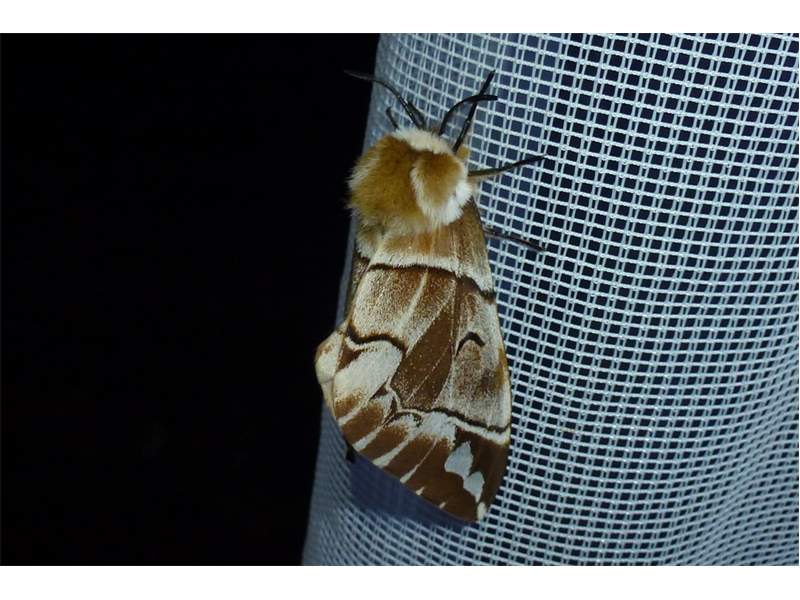 Scheckflügel (Endromis versicolora (Linnaeus, 1758)) Grumbach/Erzgebirge, 02.04.2017 am Licht (ein Weibchen)