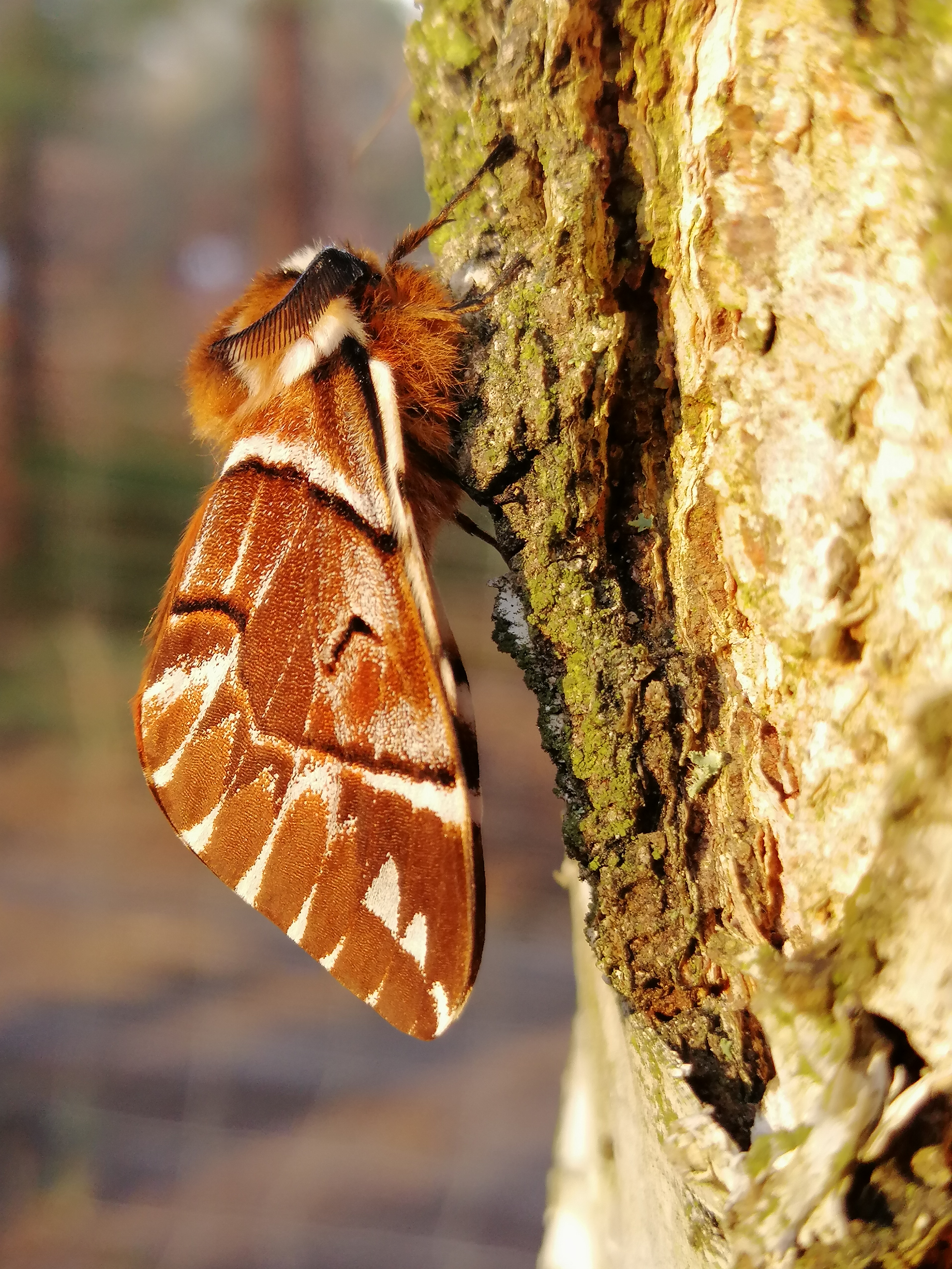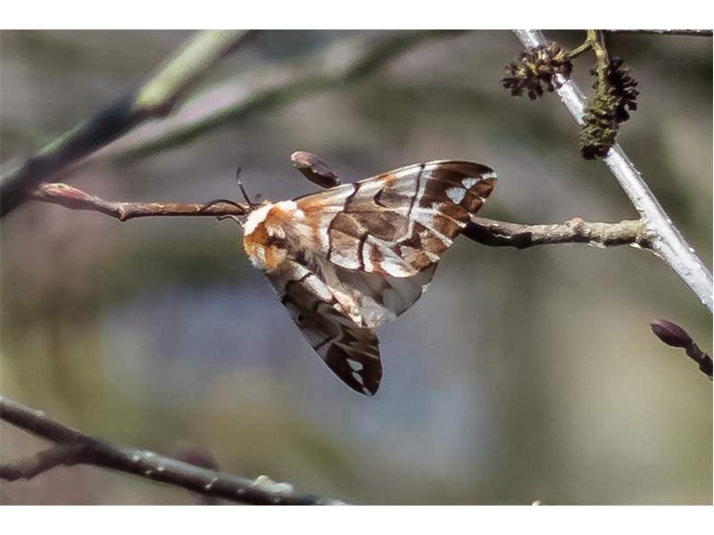 Scheckflügel (Endromis versicolora) vom 9. April 2015 aus der Heide bei Commerau