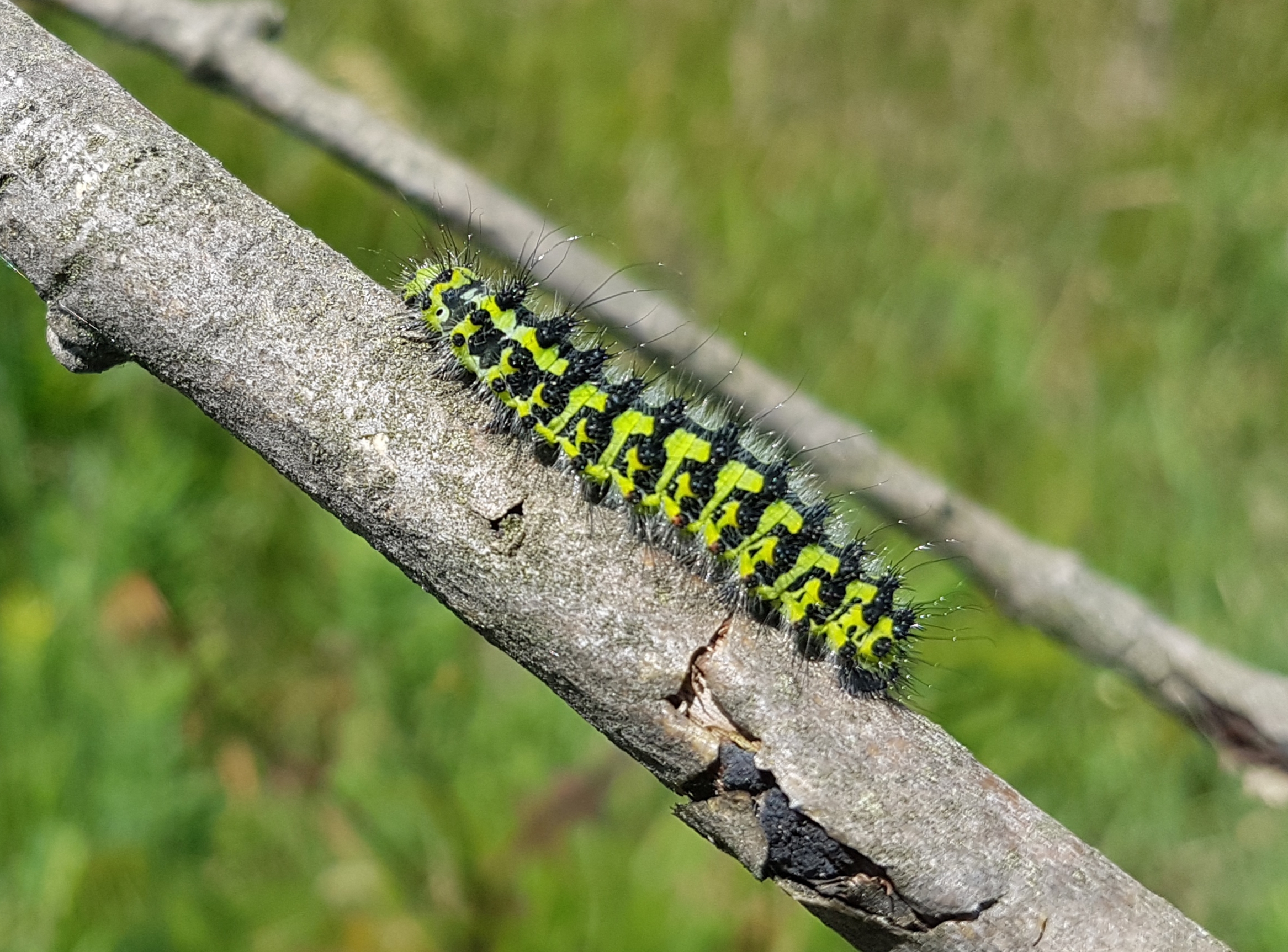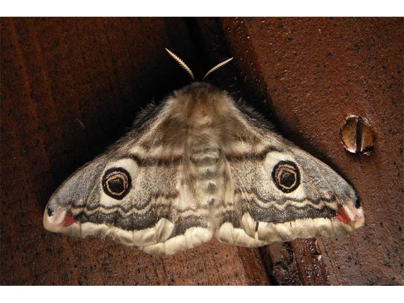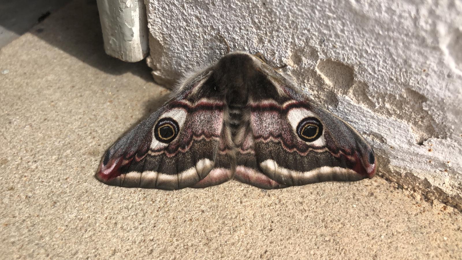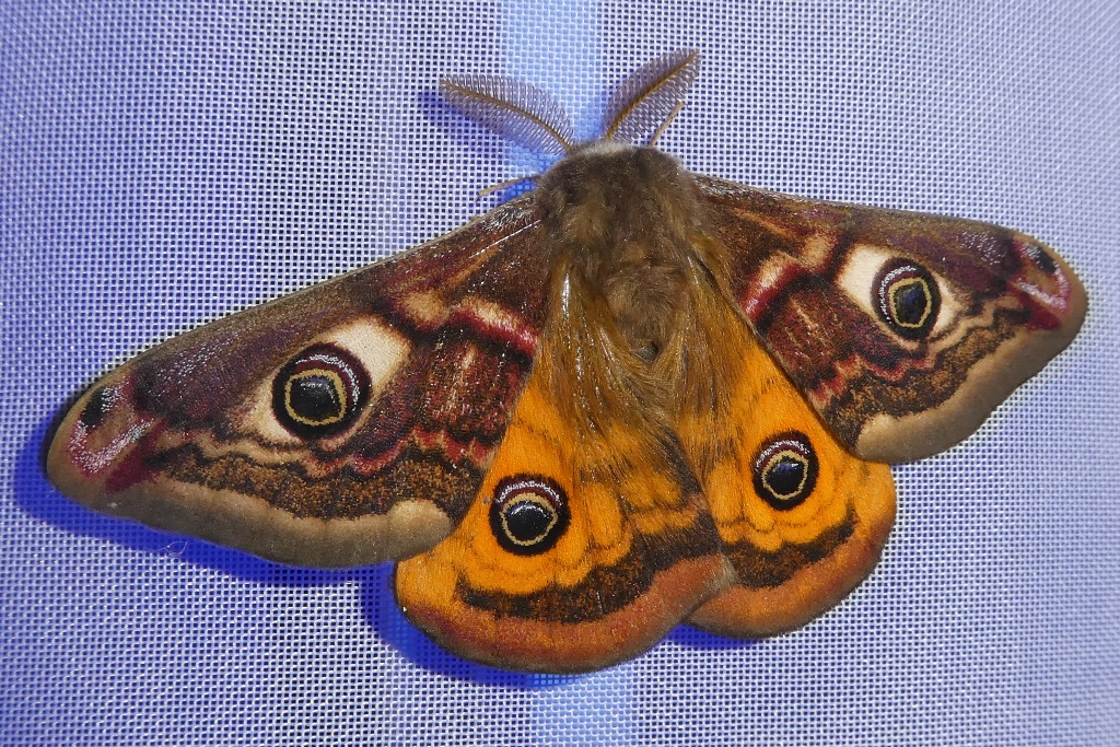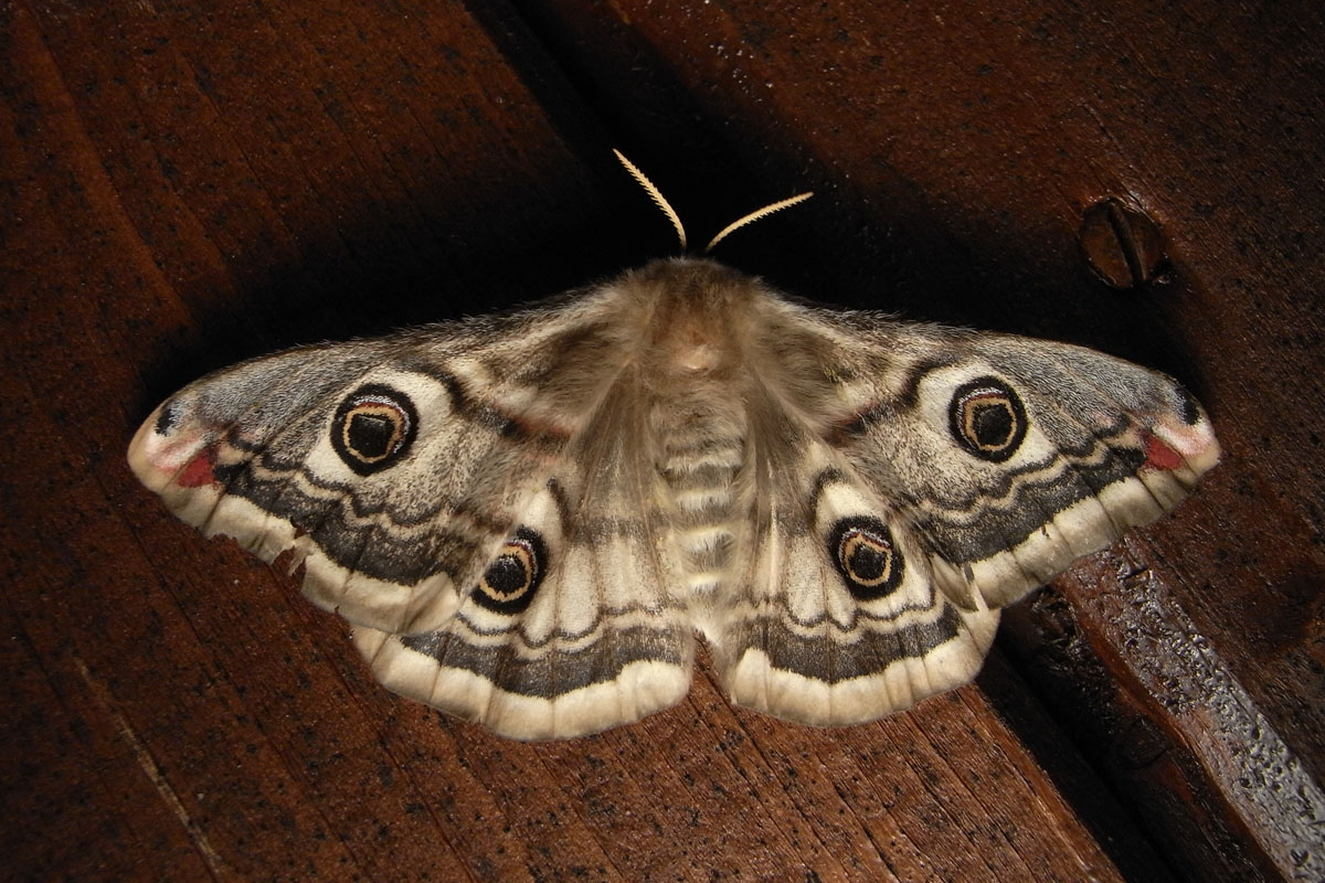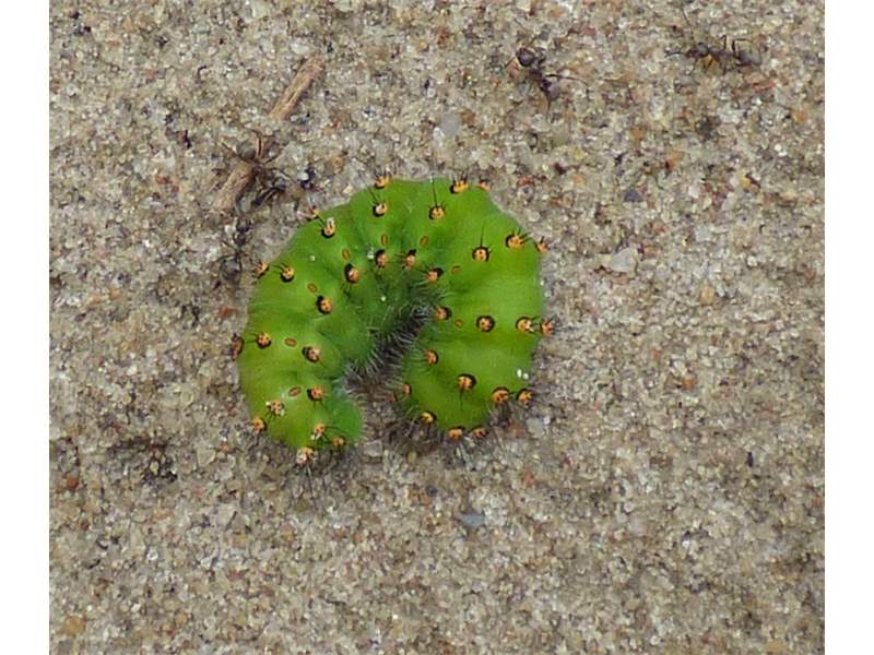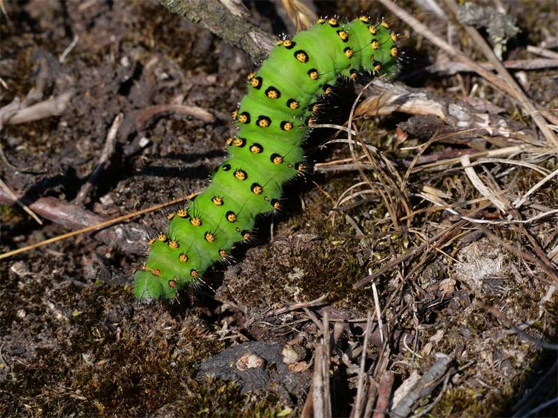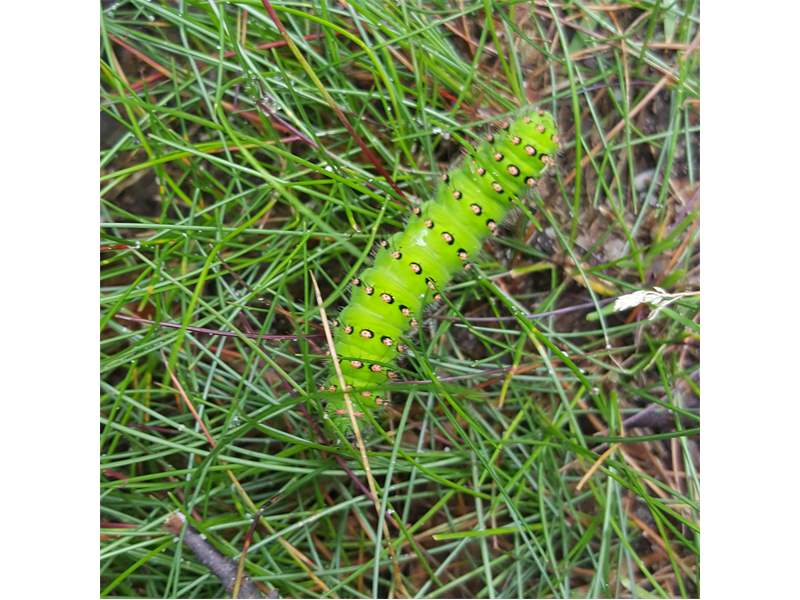 Kleines Nachtpfauenauge (Saturnia pavonia (Linnaeus, 1758)), Tagfund eines Weibchen mit nachfolgender Kopula in Hoyerswerda Klein Neida am 01.Mai 2019. Das Weibchen zufällig entdeckt saß 8 Stunden bis ein Männchen anflog, Kopula über 2,5 Stunden, dann entschwand nach kurzem Nebeneinander das Männchen wieder, das Weibchen folgte etwa eine Stunde später und flog in die Dämmerung.