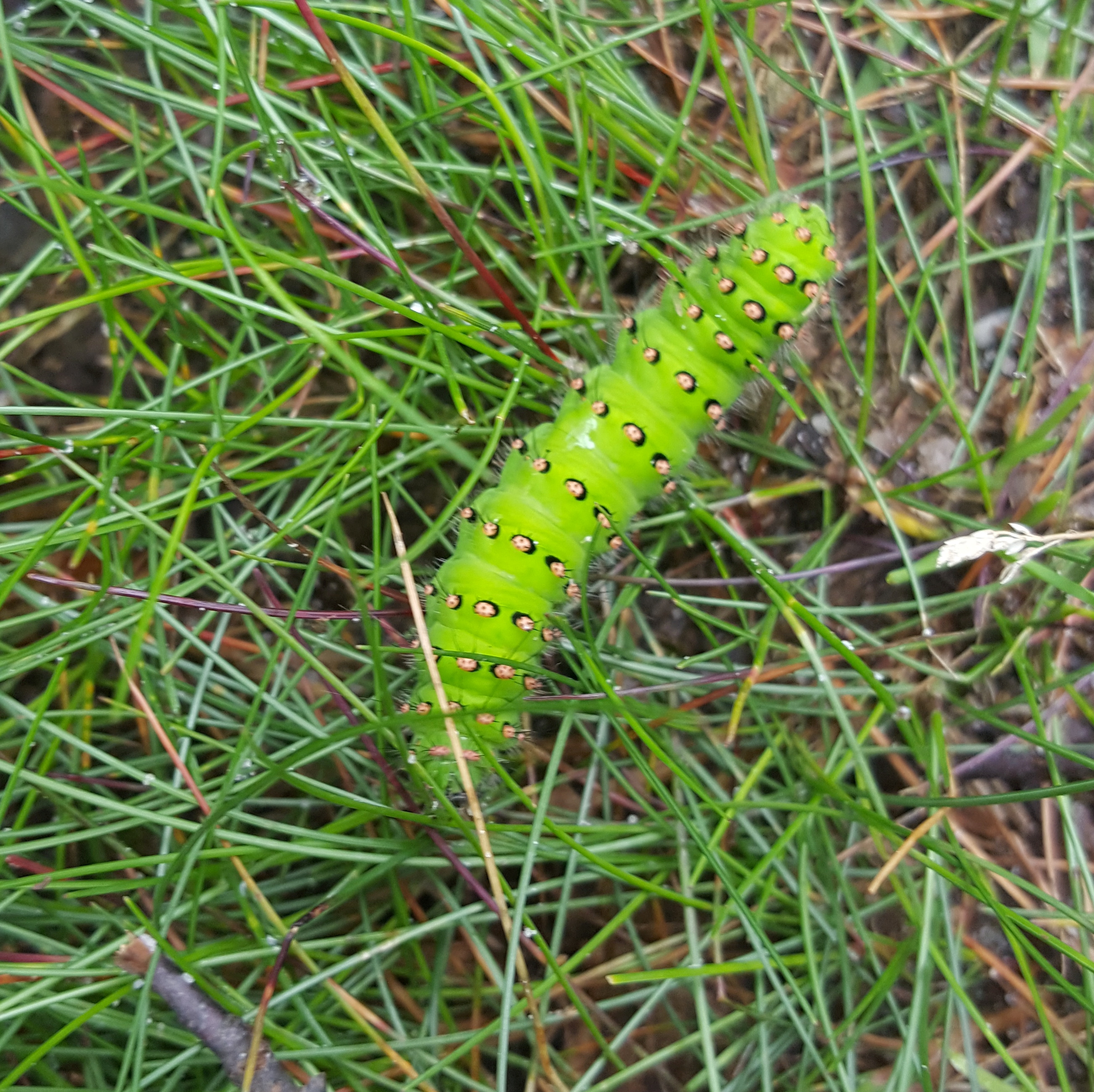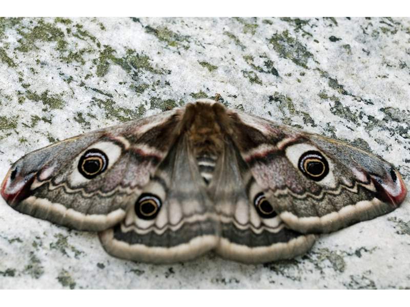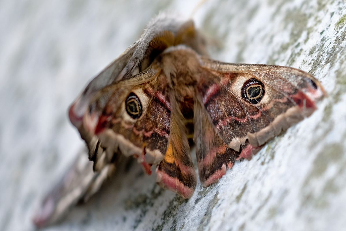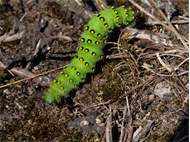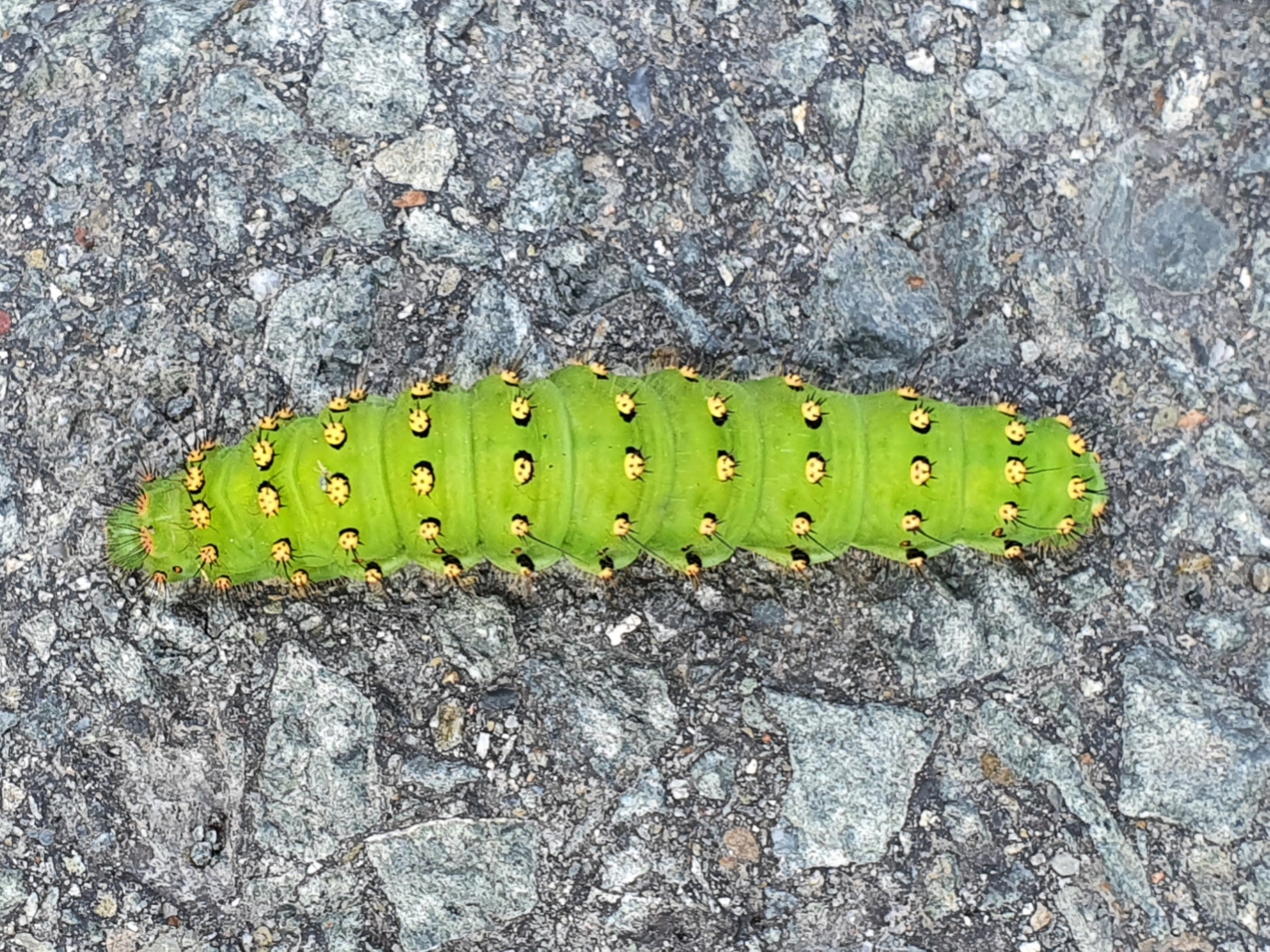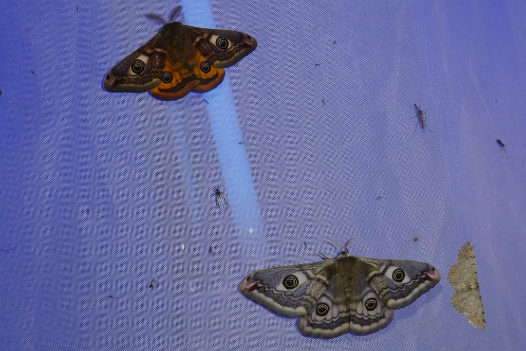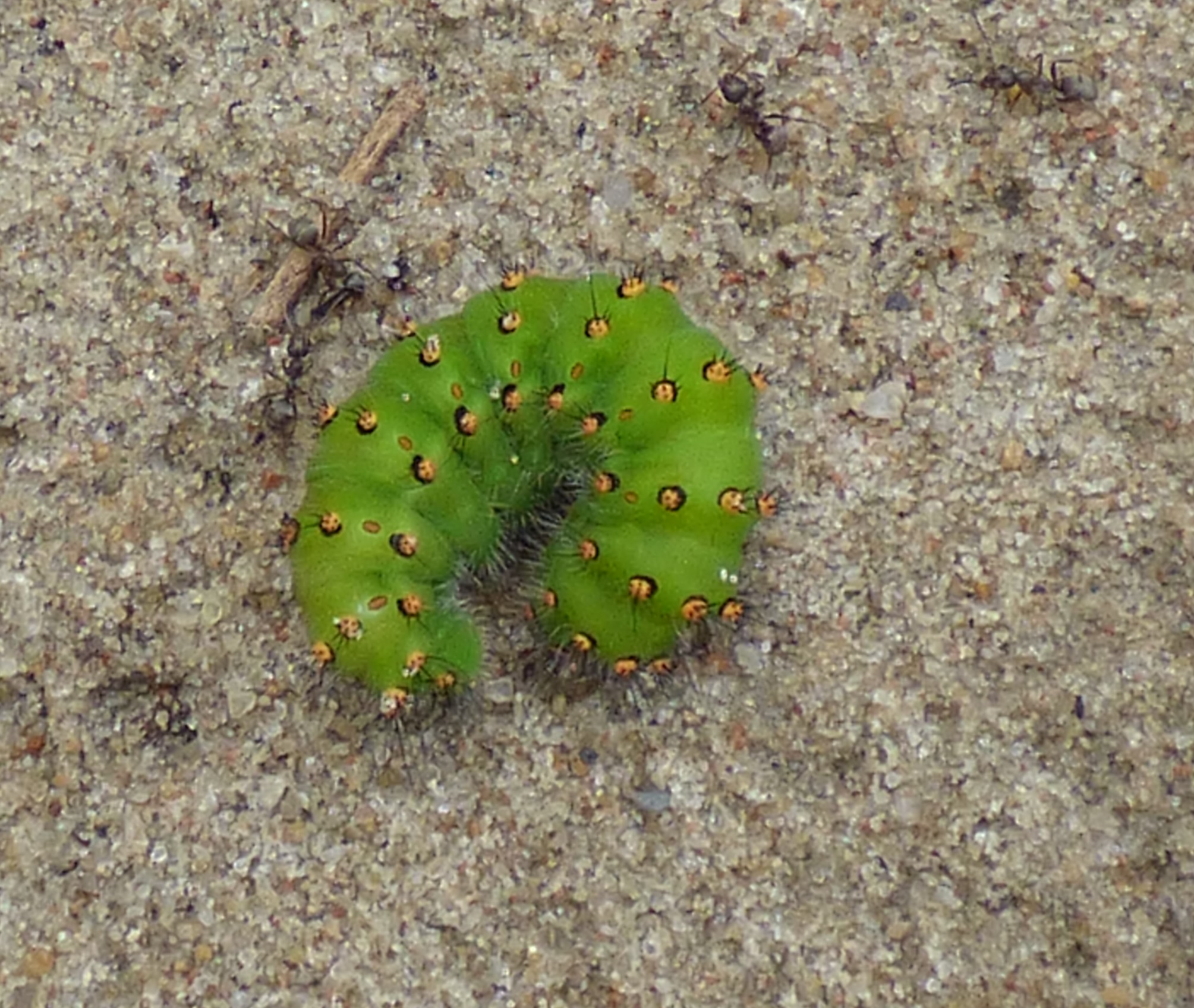 Kleines Nachtpfauenauge (Saturnia pavonia (Linnaeus, 1758)), Tagfund eines Weibchen mit nachfolgender Kopula in Hoyerswerda Klein Neida am 01.Mai 2019. Das Weibchen zufällig entdeckt saß 8 Stunden bis ein Männchen anflog, Kopula über 2,5 Stunden, dann entschwand nach kurzem Nebeneinander das Männchen wieder, das Weibchen folgte etwa eine Stunde später und flog in die Dämmerung.