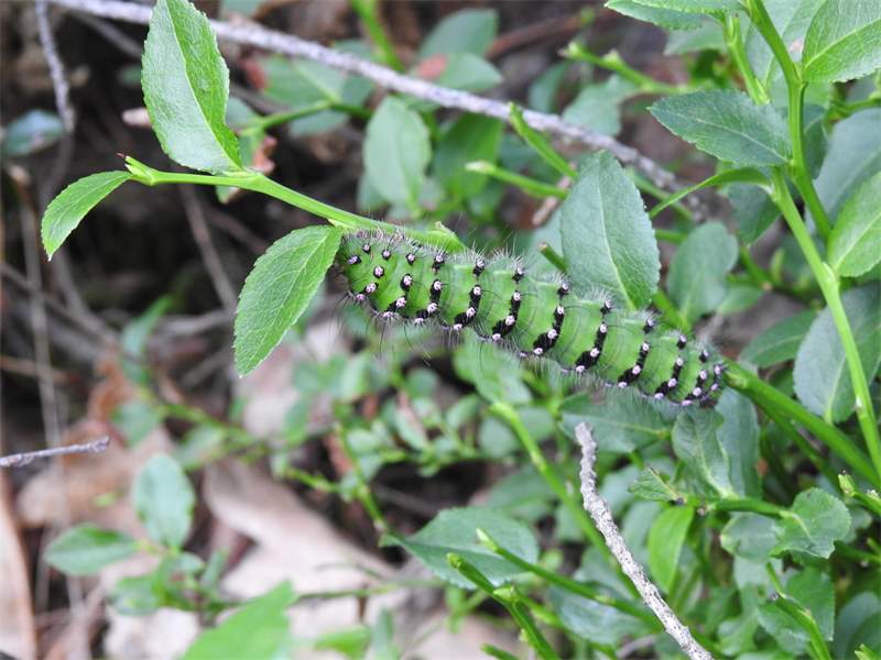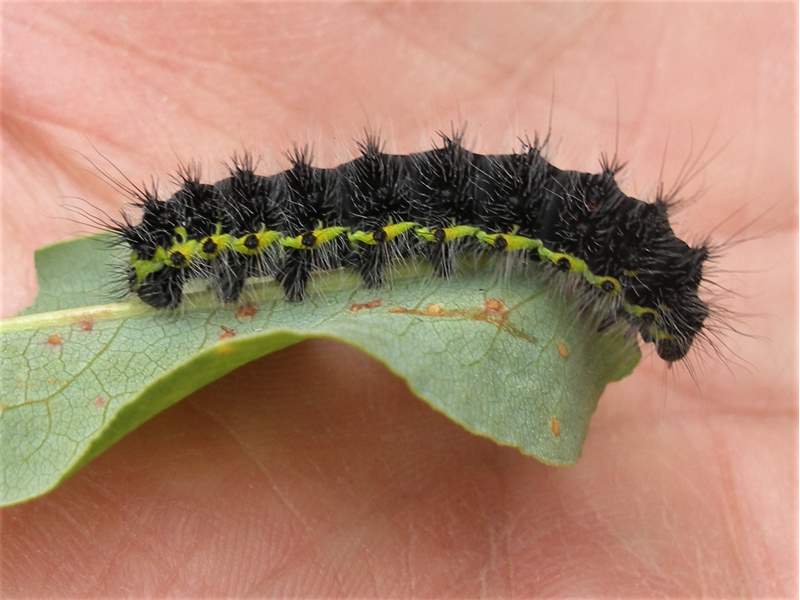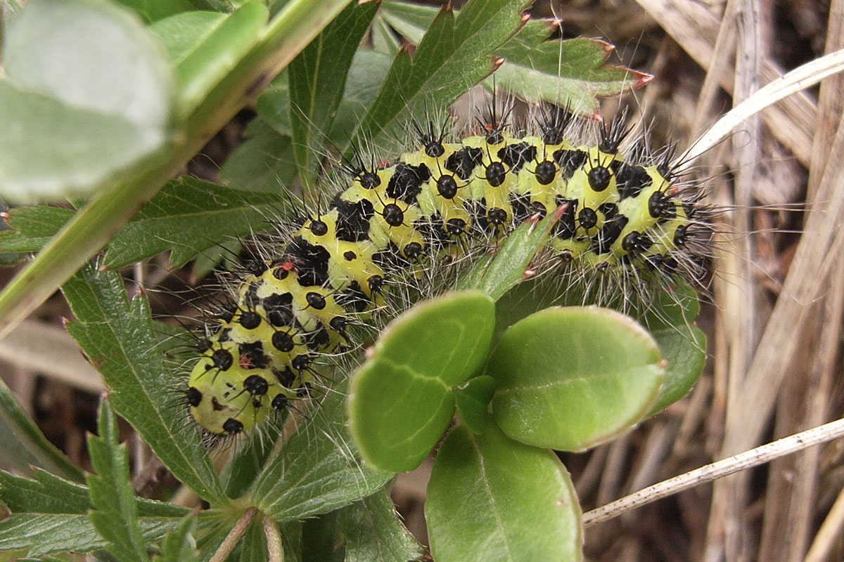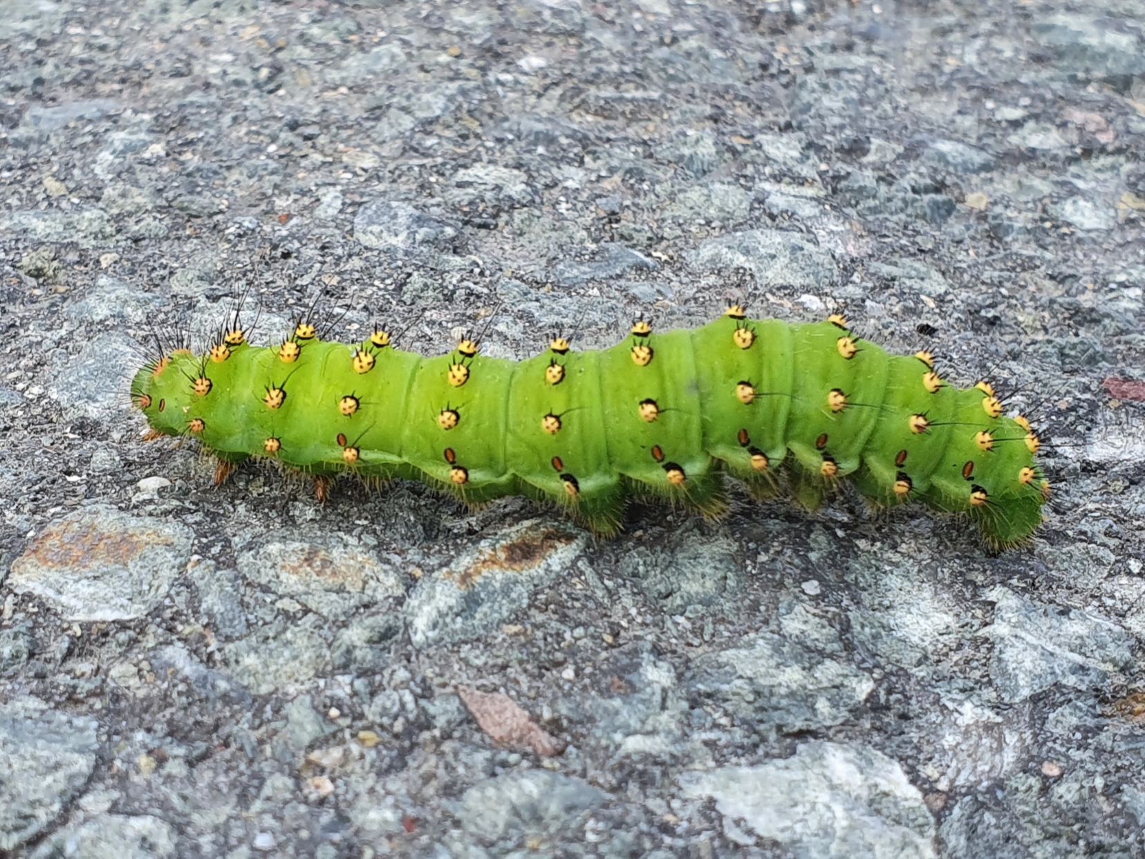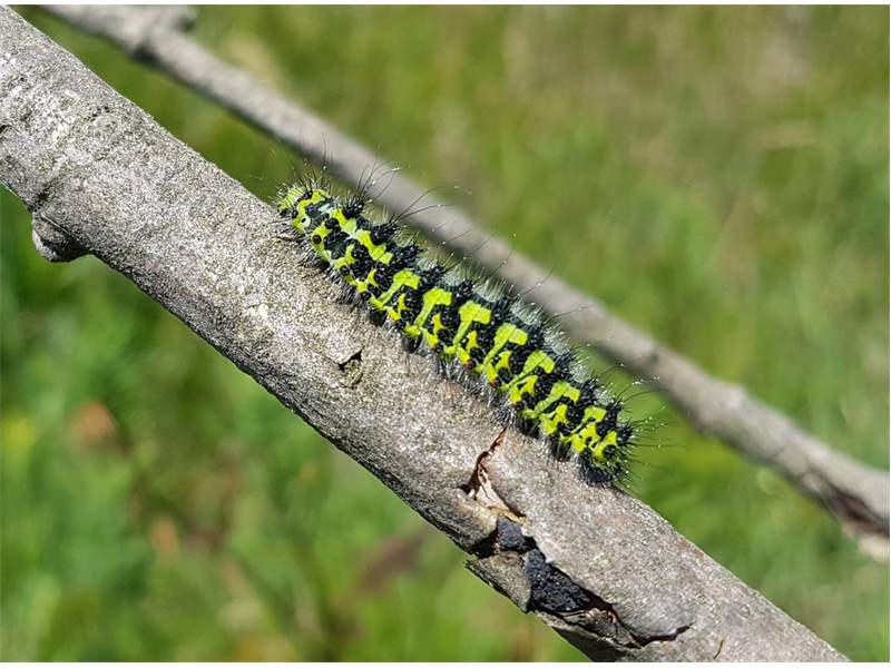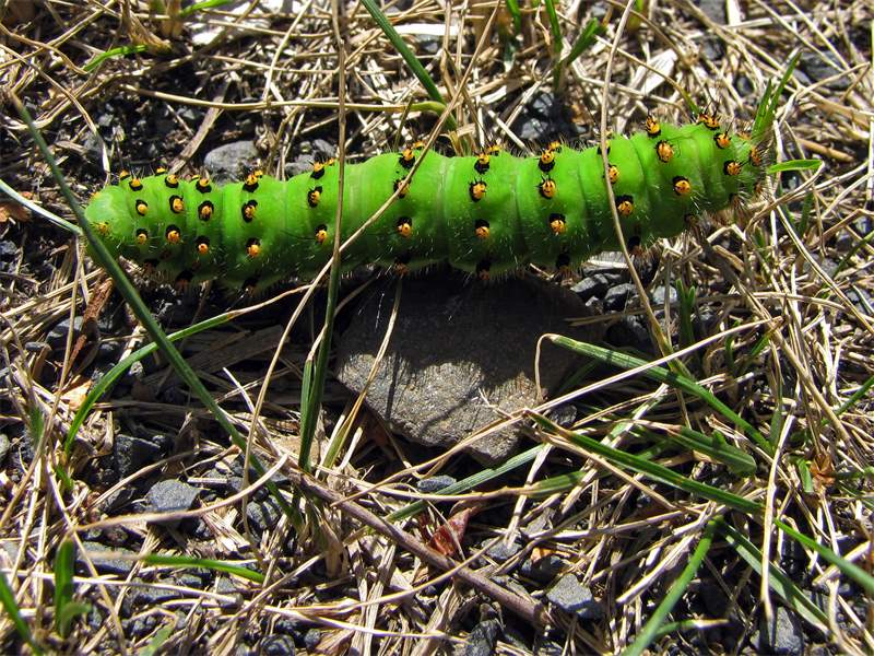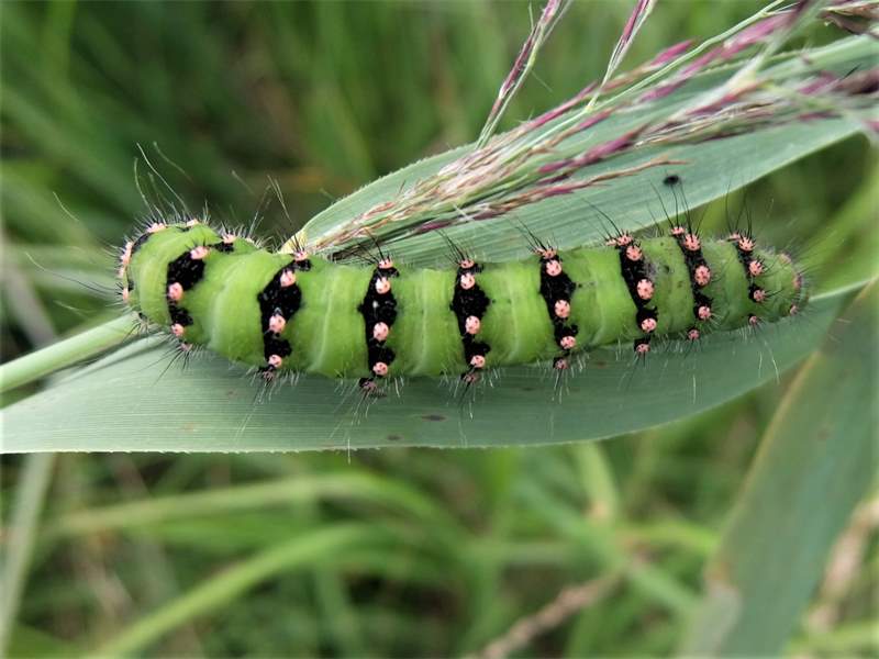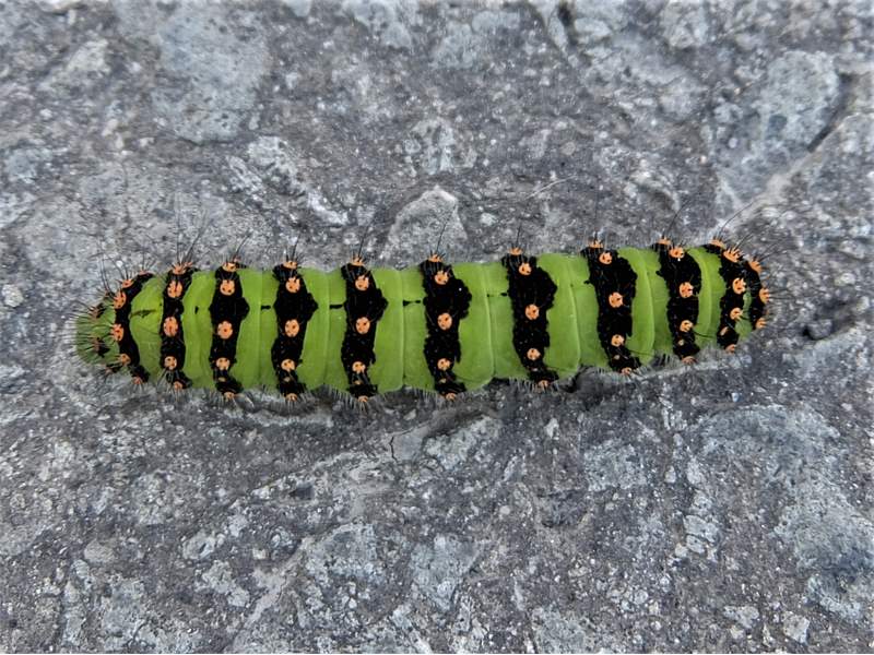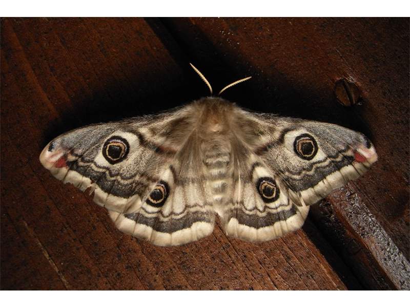 Kleines Nachtpfauenauge (Saturnia pavonia (Linnaeus, 1758)), Tagfund eines Weibchen mit nachfolgender Kopula in Hoyerswerda Klein Neida am 01.Mai 2019. Das Weibchen zufällig entdeckt saß 8 Stunden bis ein Männchen anflog, Kopula über 2,5 Stunden, dann entschwand nach kurzem Nebeneinander das Männchen wieder, das Weibchen folgte etwa eine Stunde später und flog in die Dämmerung.