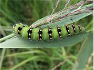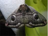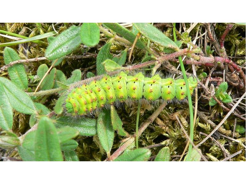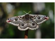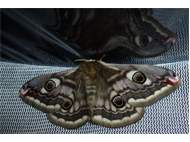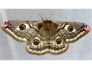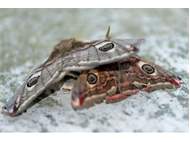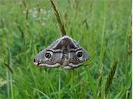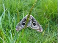 Kleines Nachtpfauenauge (Saturnia pavonia (Linnaeus, 1758)), Tagfund eines Weibchen mit nachfolgender Kopula in Hoyerswerda Klein Neida am 01.Mai 2019. Das Weibchen zufällig entdeckt saß 8 Stunden bis ein Männchen anflog, Kopula über 2,5 Stunden, dann entschwand nach kurzem Nebeneinander das Männchen wieder, das Weibchen folgte etwa eine Stunde später und flog in die Dämmerung. (© Martina Görner)( Bild vergrößern)