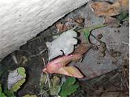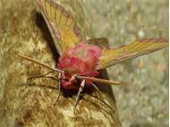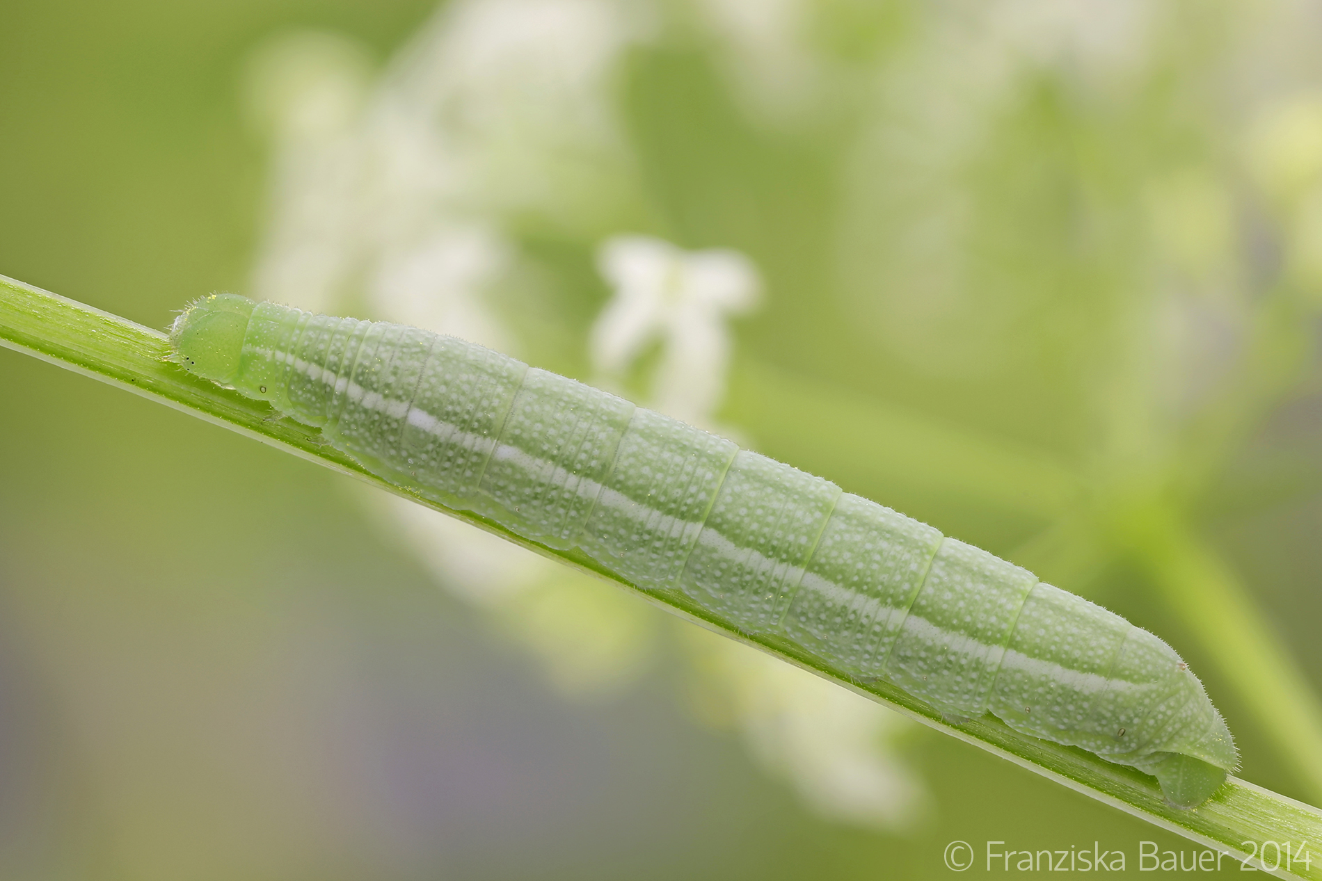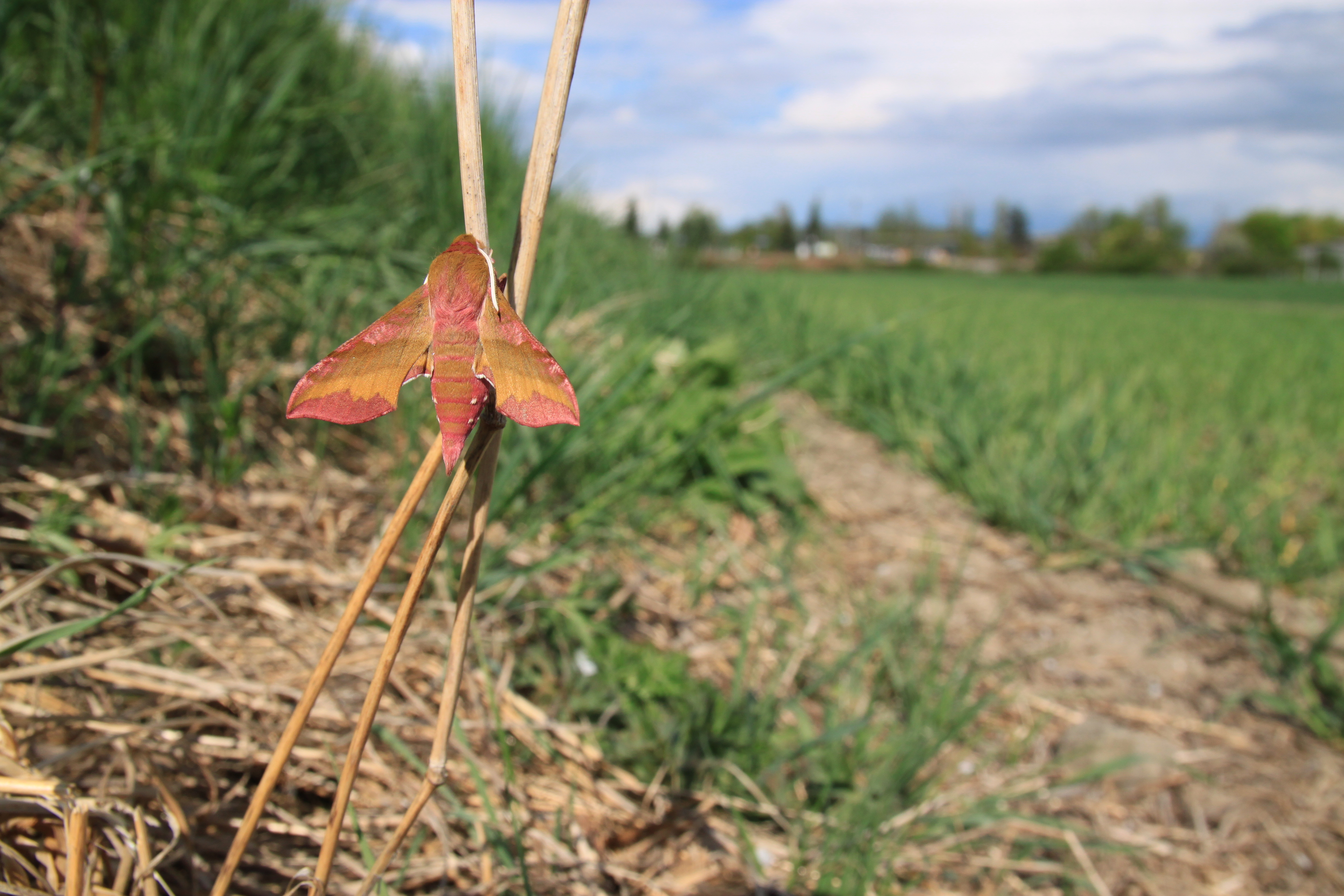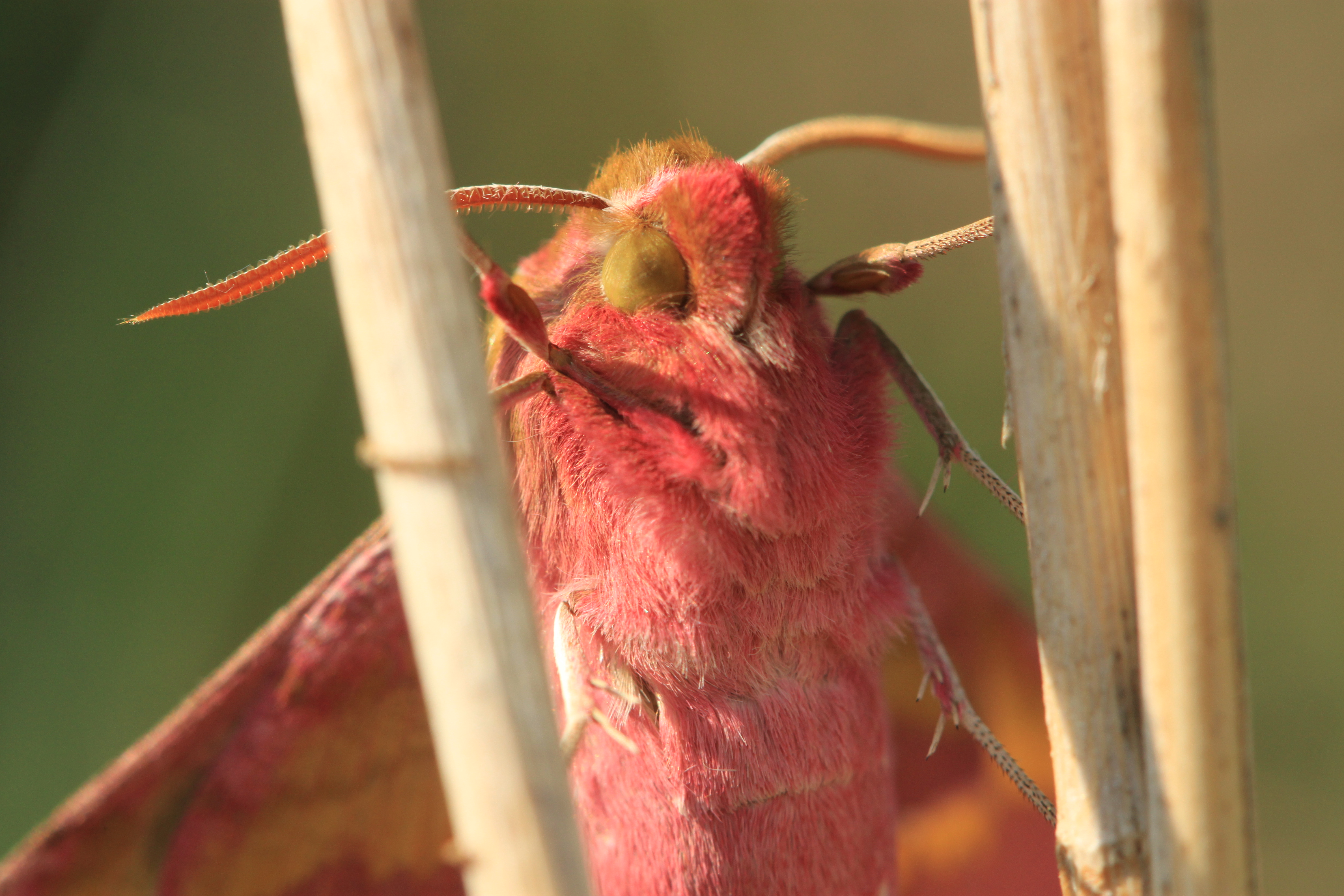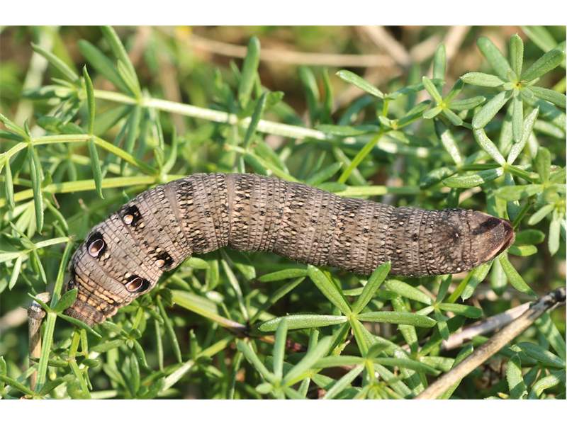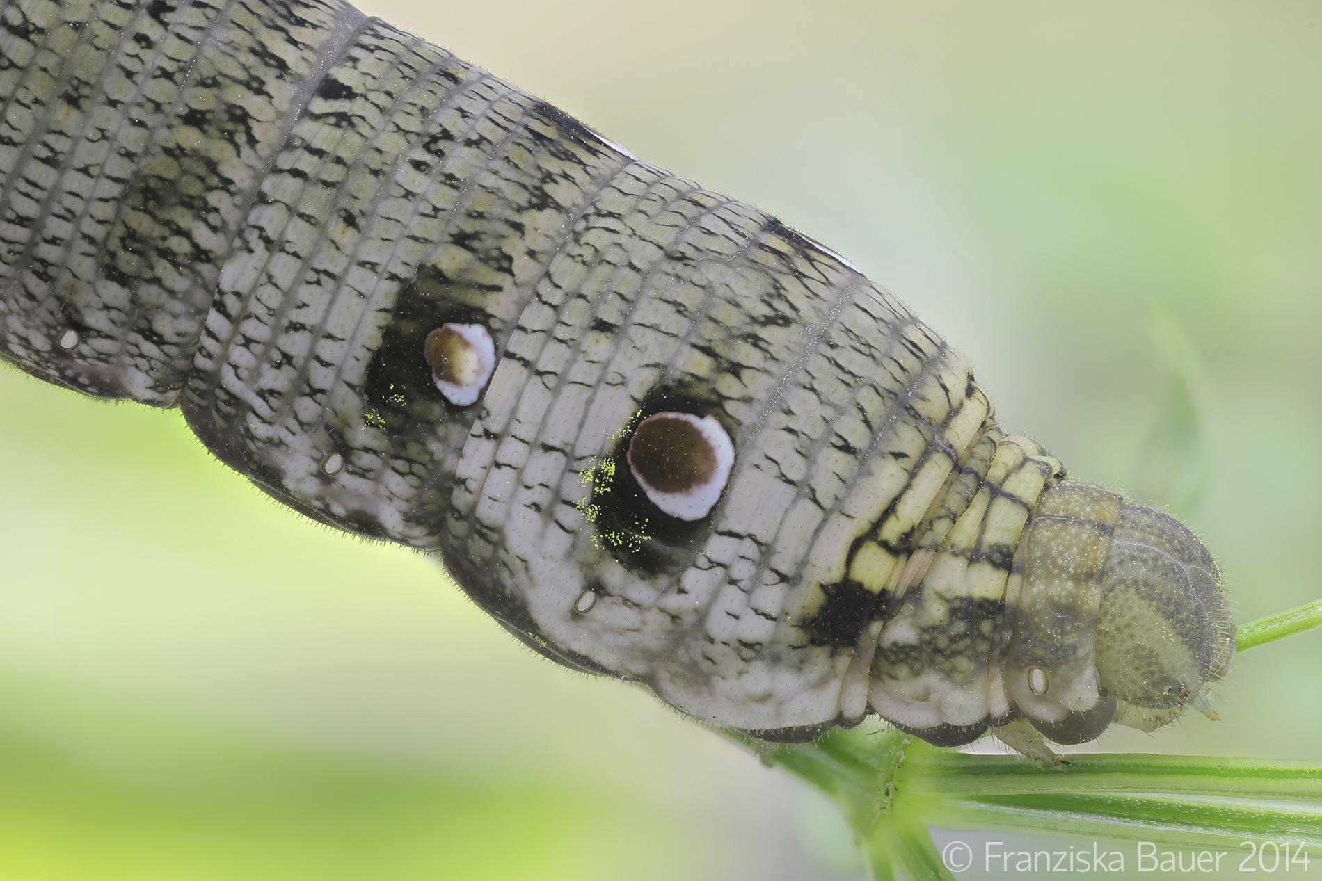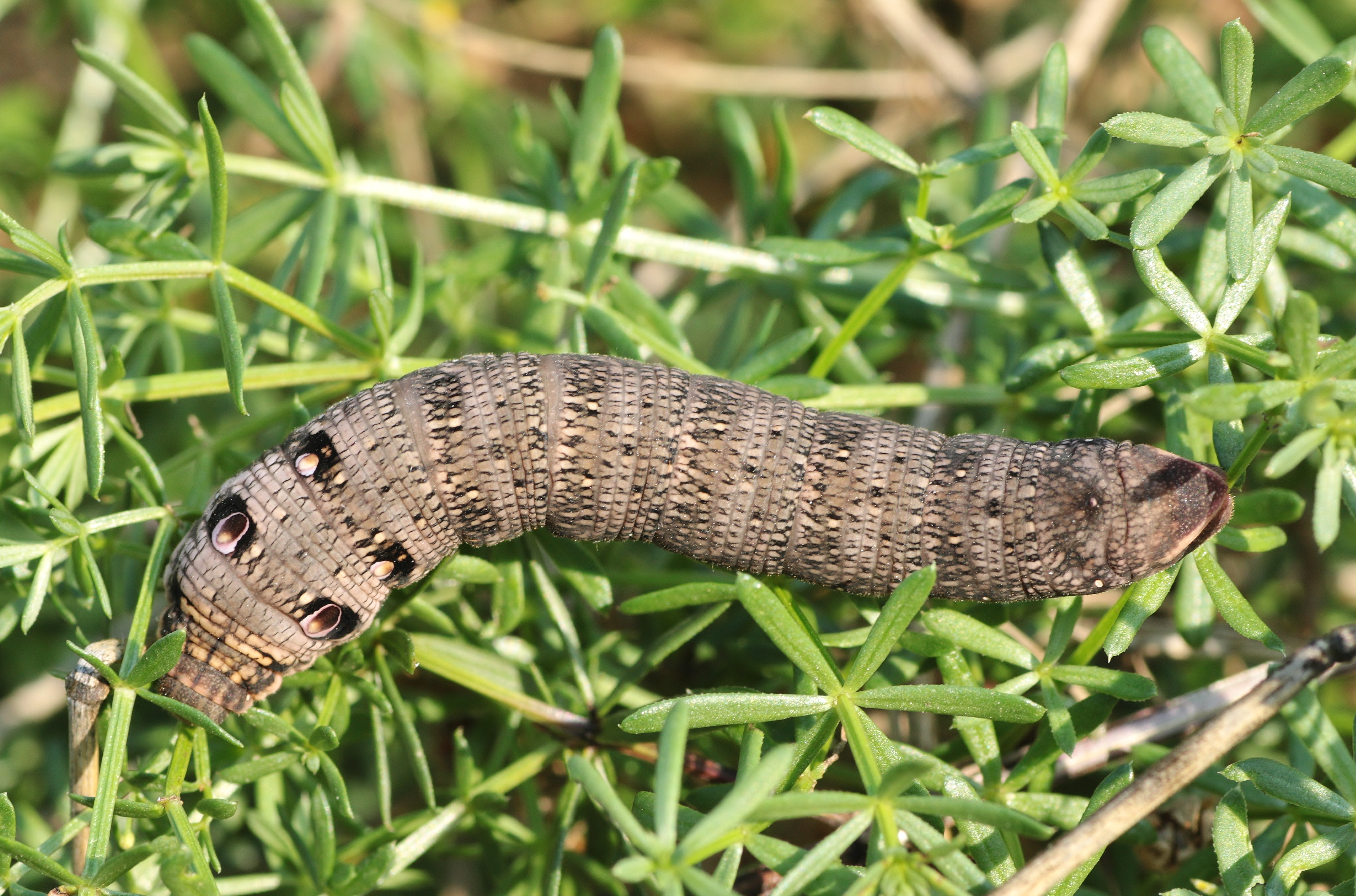 Größenvergleich: D. porcellus (Kleiner Weinschwärmer, unten) und D. elpenor (Mittlerer Weinschwärmer), am Licht - Westlausitz, Pulsnitz, Kahlschlag/Bachtal Hahneflüsschen, 5. Juni 2022