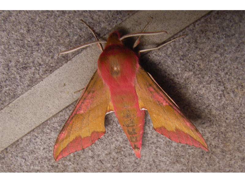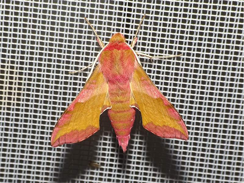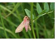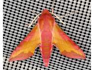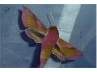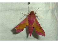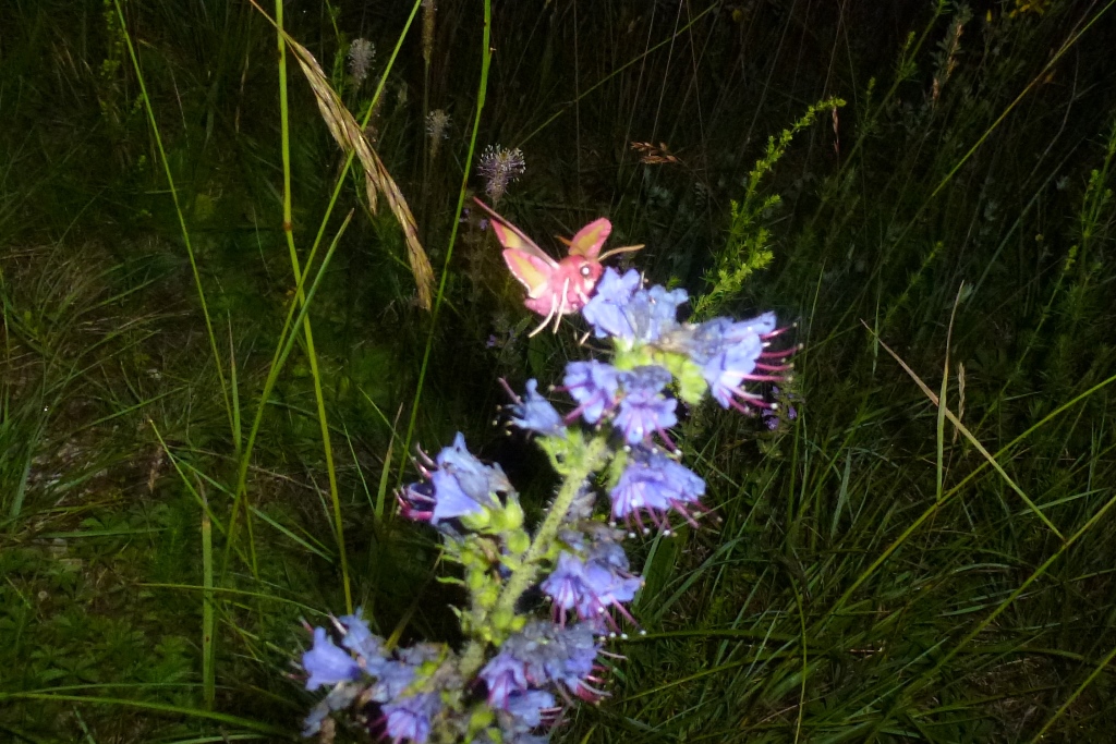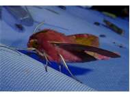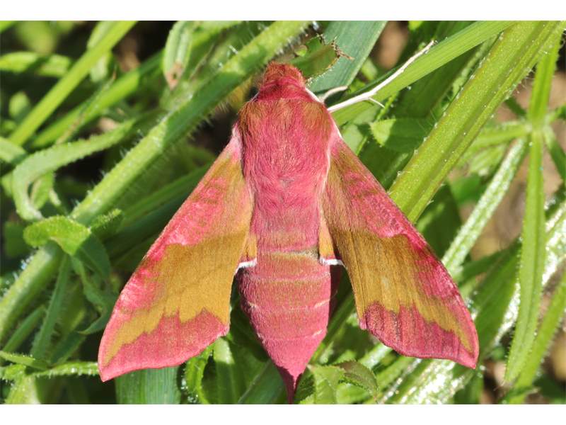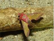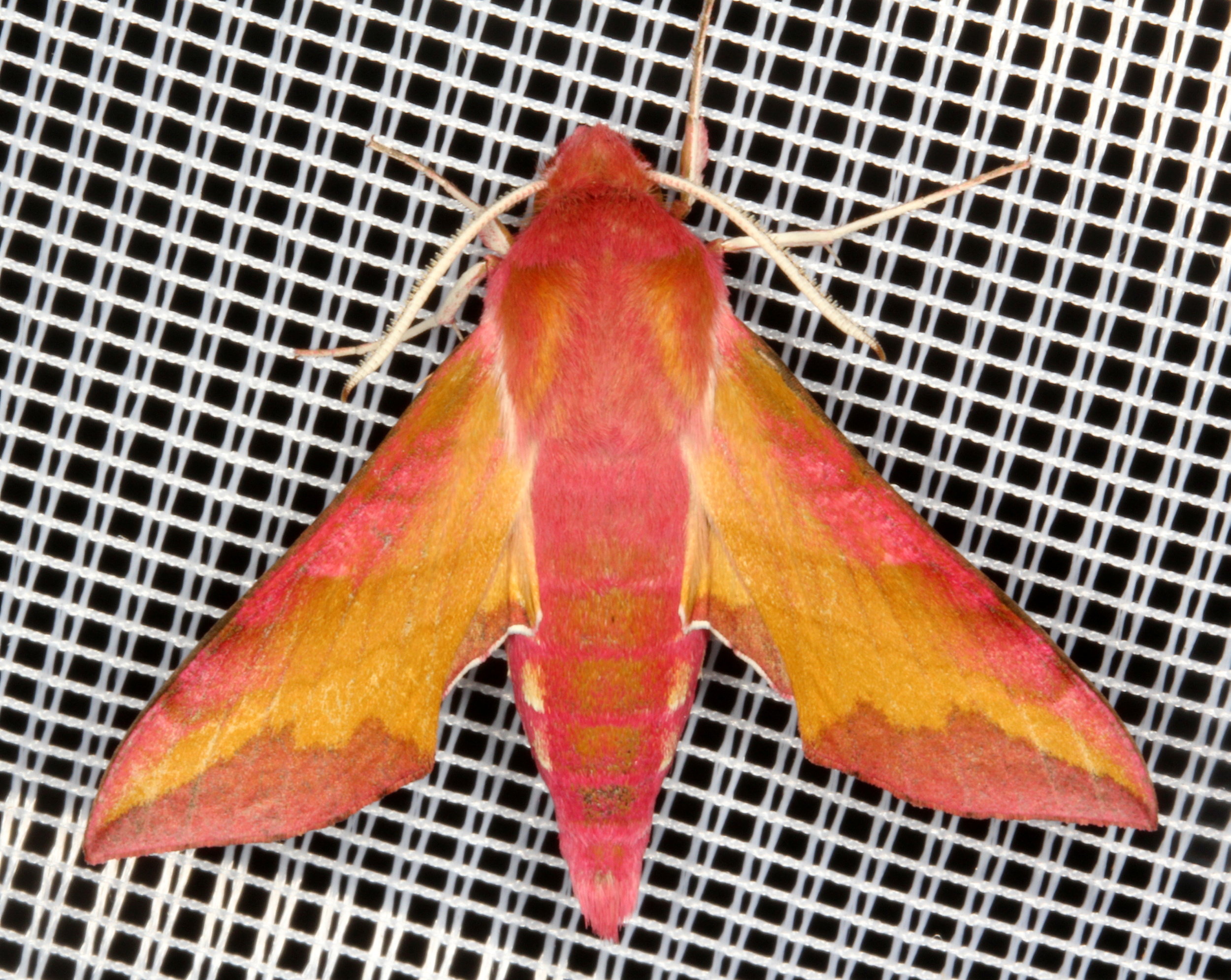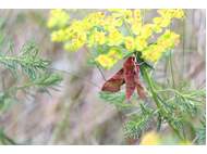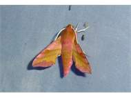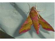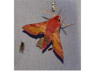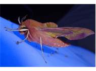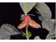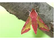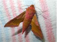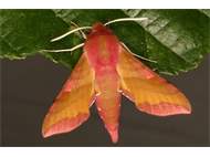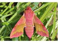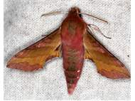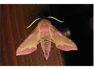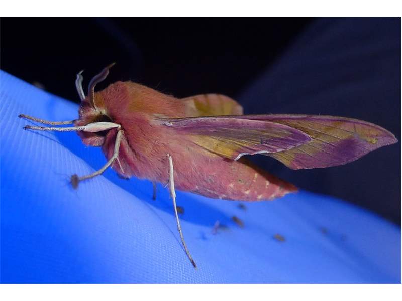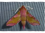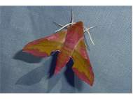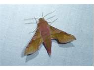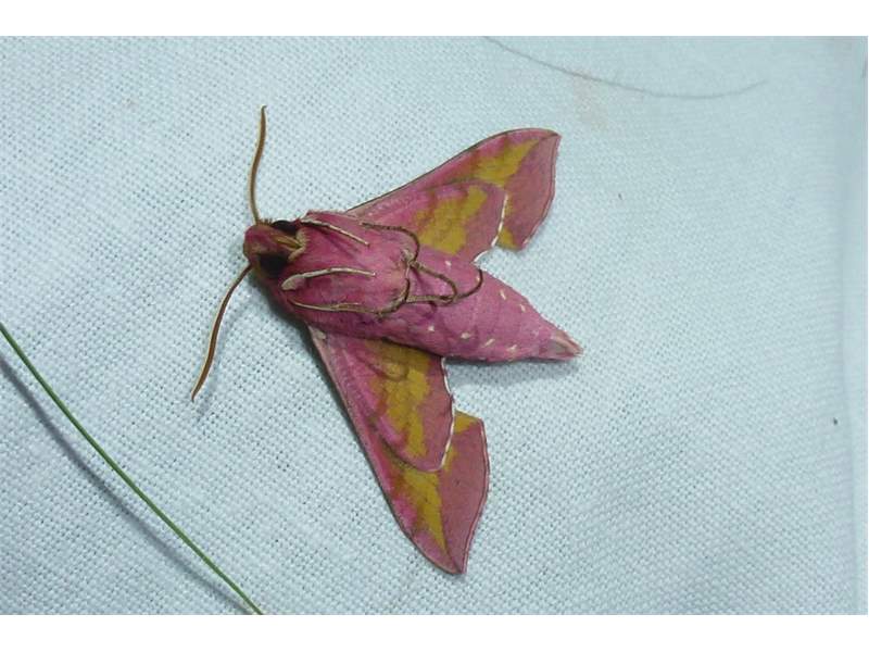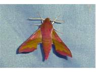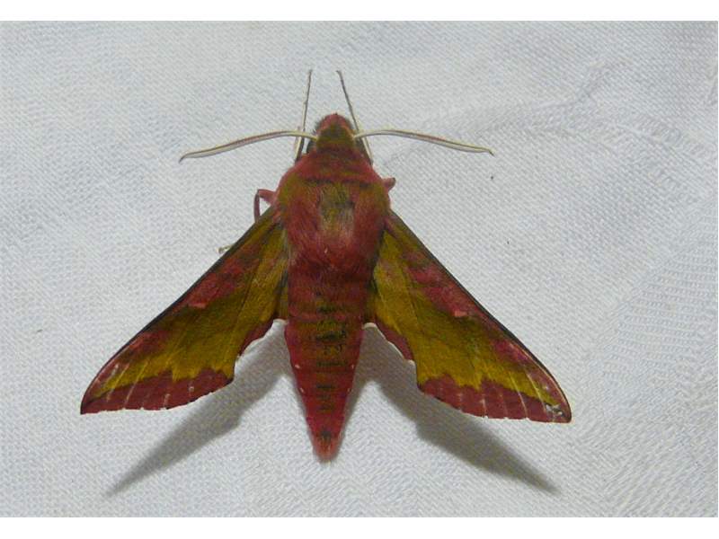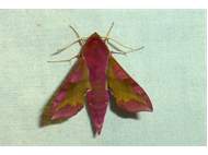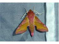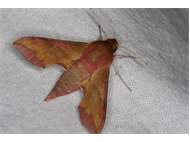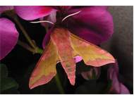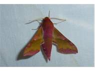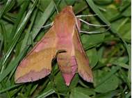 Größenvergleich: D. porcellus (Kleiner Weinschwärmer, unten) und D. elpenor (Mittlerer Weinschwärmer), am Licht - Westlausitz, Pulsnitz, Kahlschlag/Bachtal Hahneflüsschen, 5. Juni 2022 (© Gert Schulze)( Bild vergrößern)