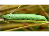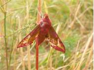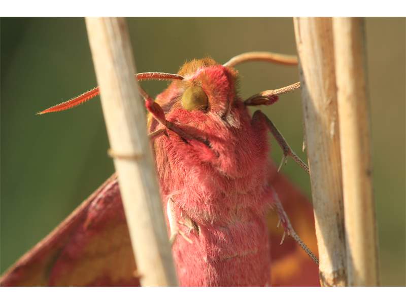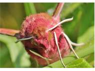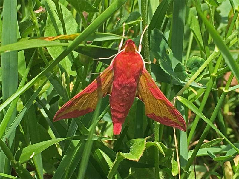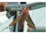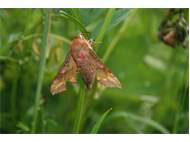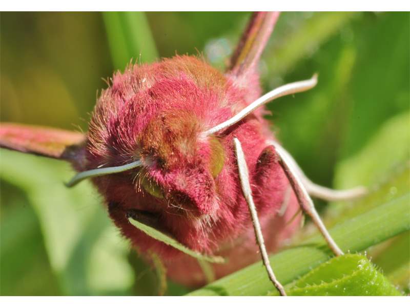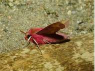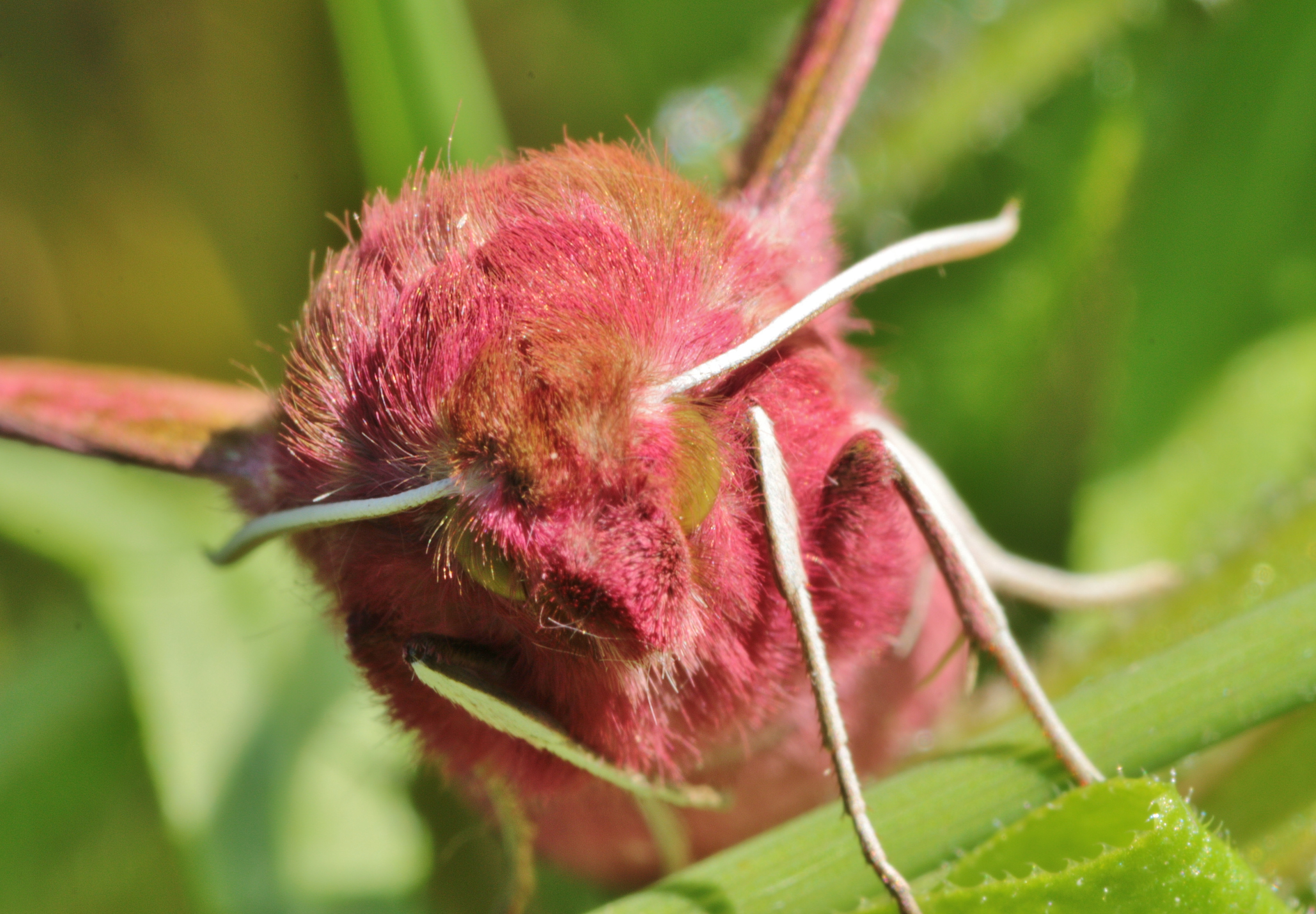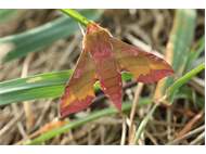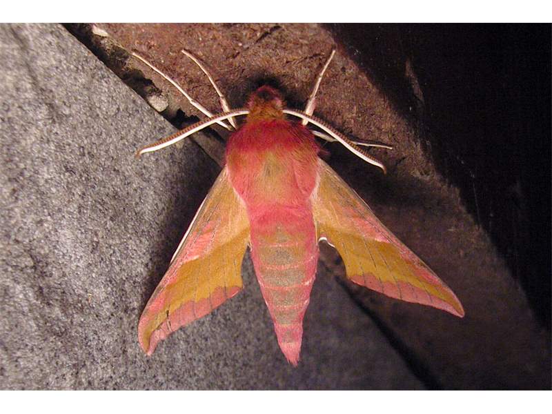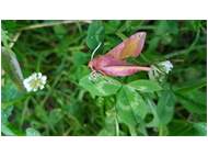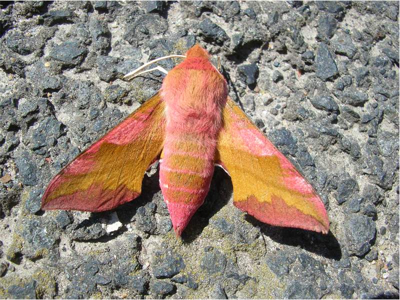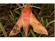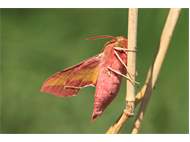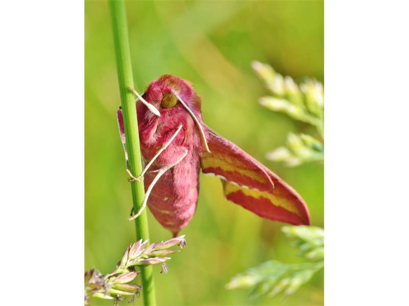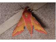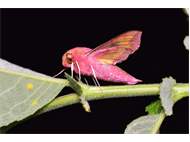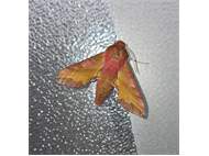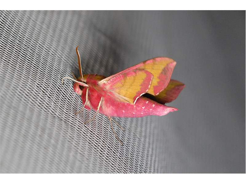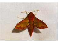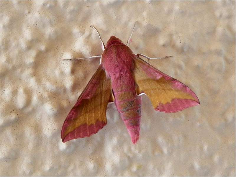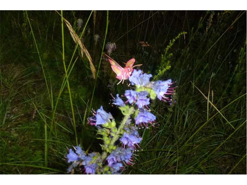 Größenvergleich: D. porcellus (Kleiner Weinschwärmer, unten) und D. elpenor (Mittlerer Weinschwärmer), am Licht - Westlausitz, Pulsnitz, Kahlschlag/Bachtal Hahneflüsschen, 5. Juni 2022 (© Gert Schulze)( Bild vergrößern)