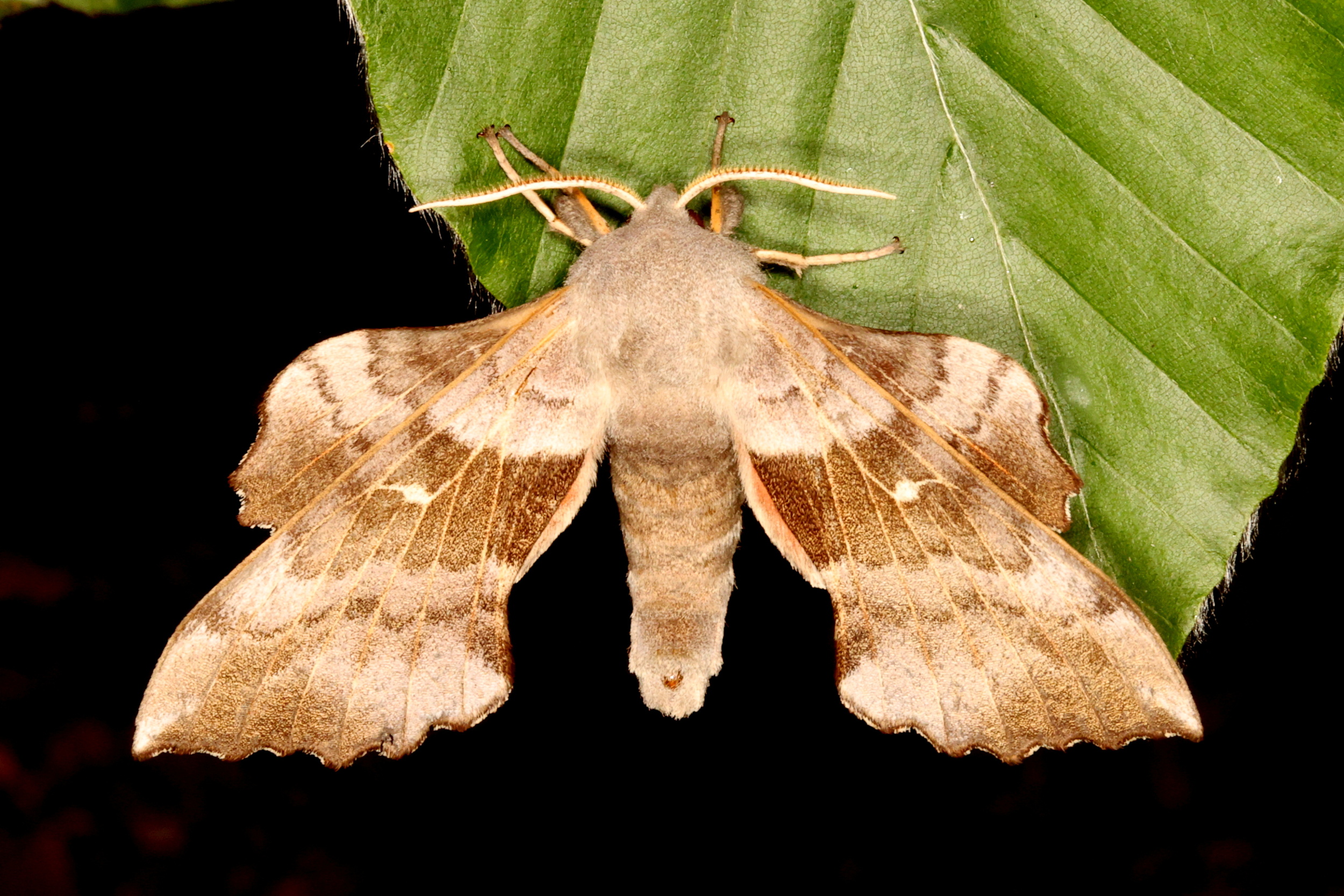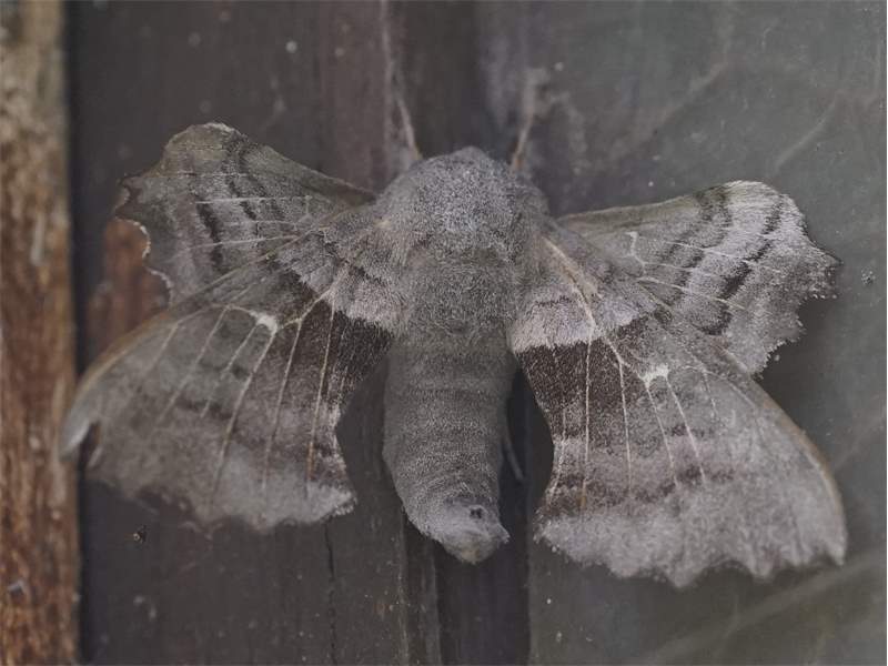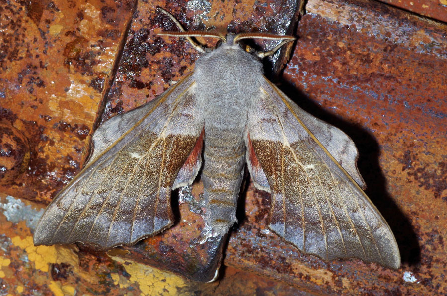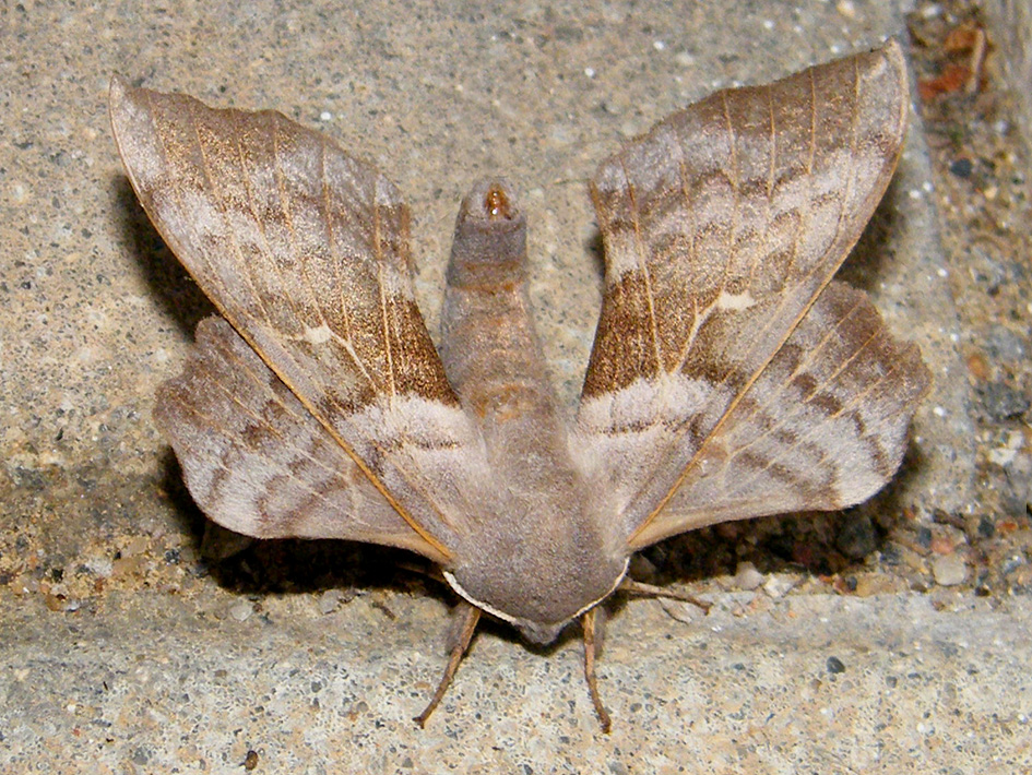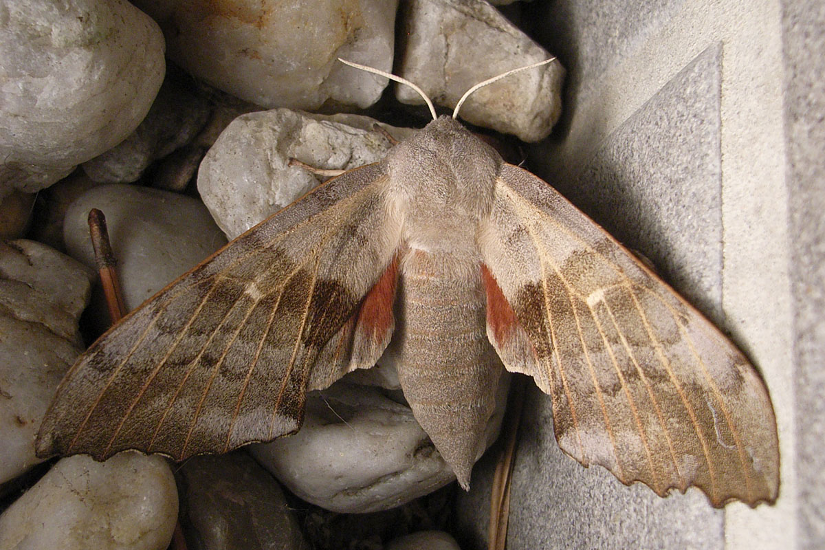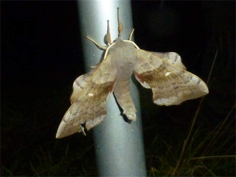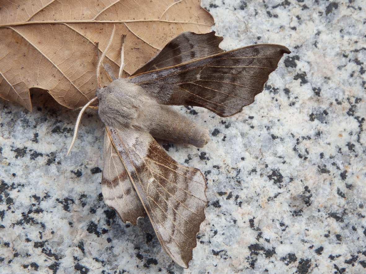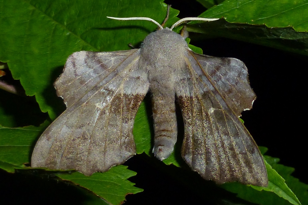 Laothoe populi (Linnaeus, 1758), Pappelschwärmer, Chemnitz-Zeisigwald//Planitzwiese, Anfang August 2014.