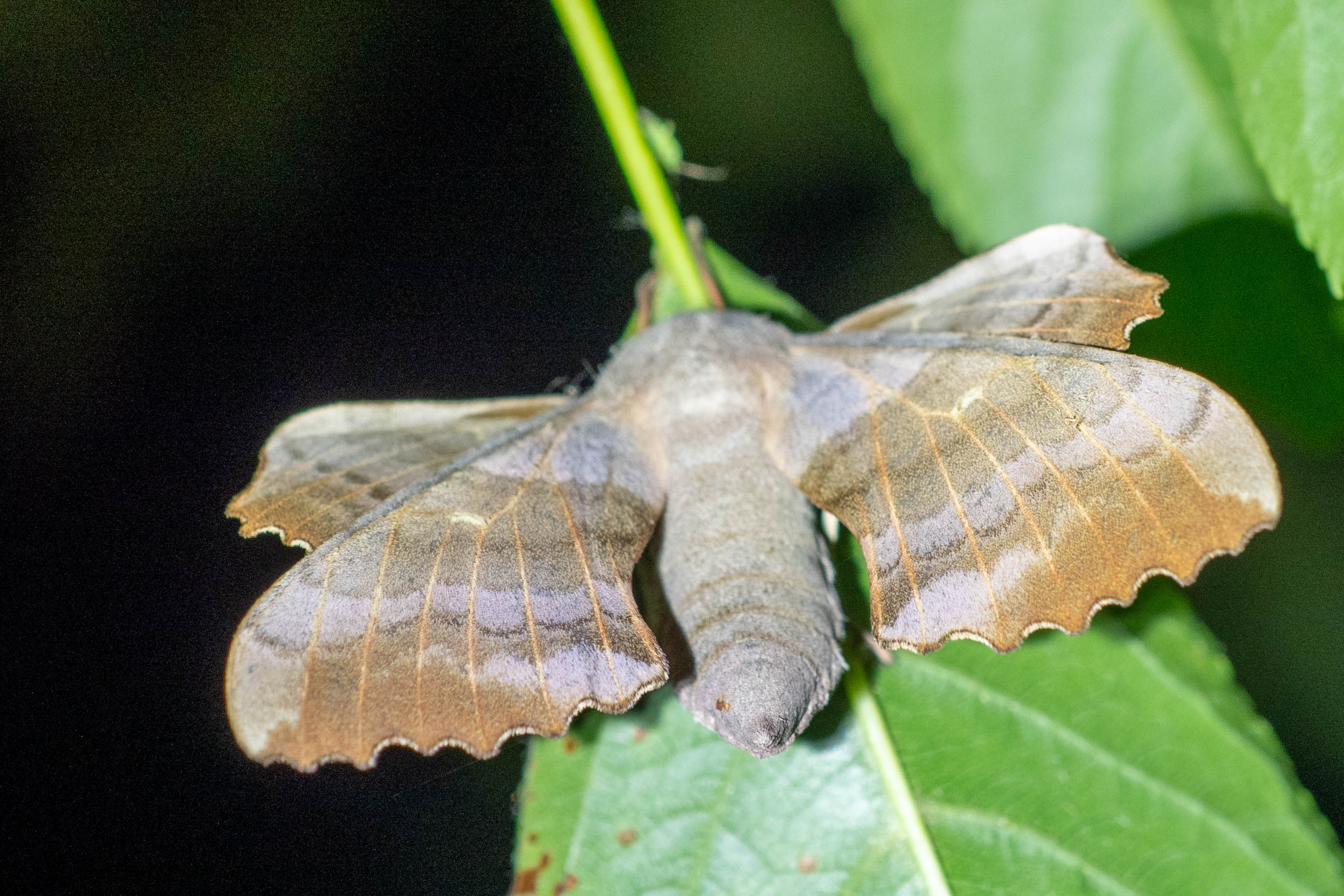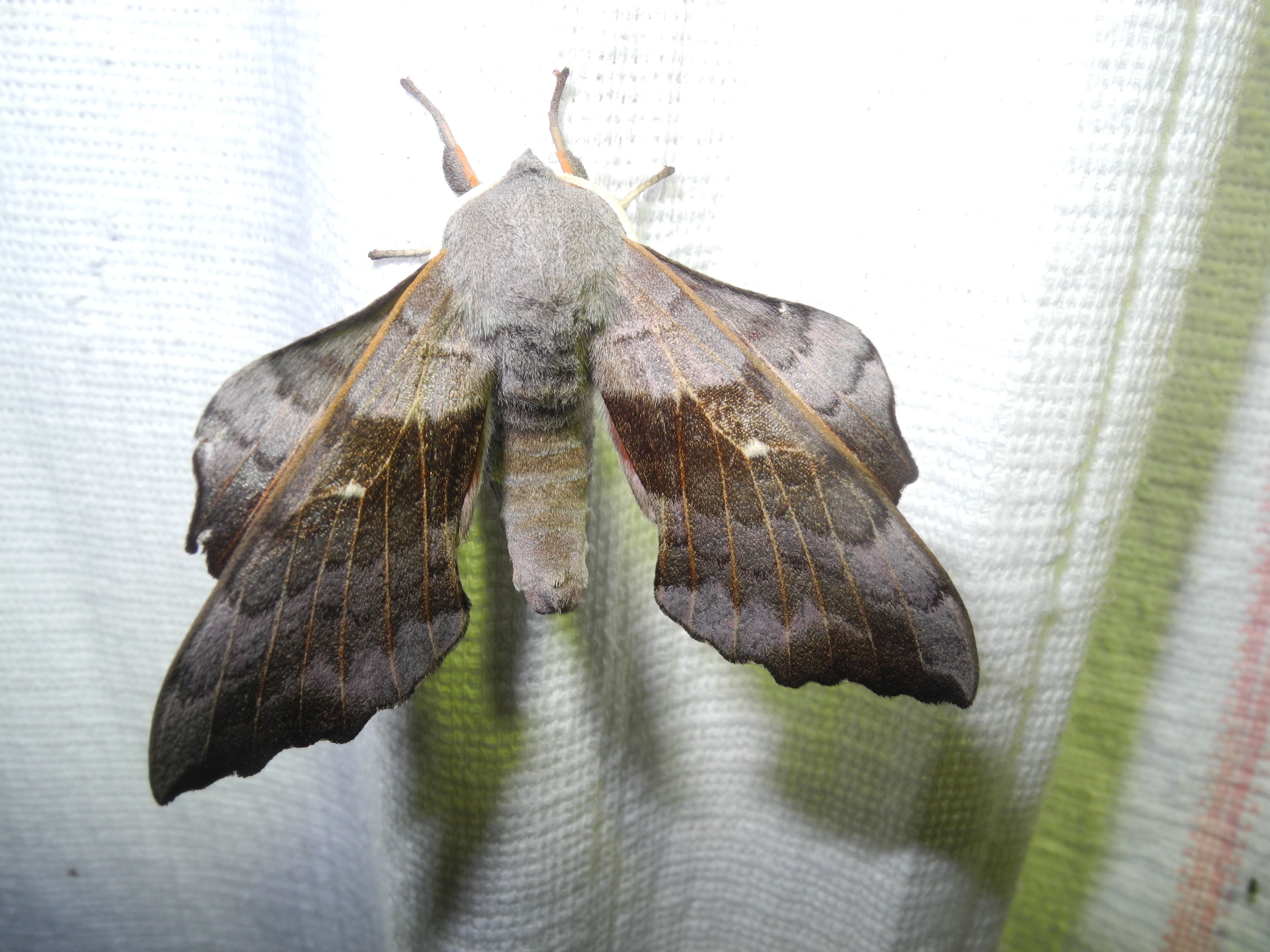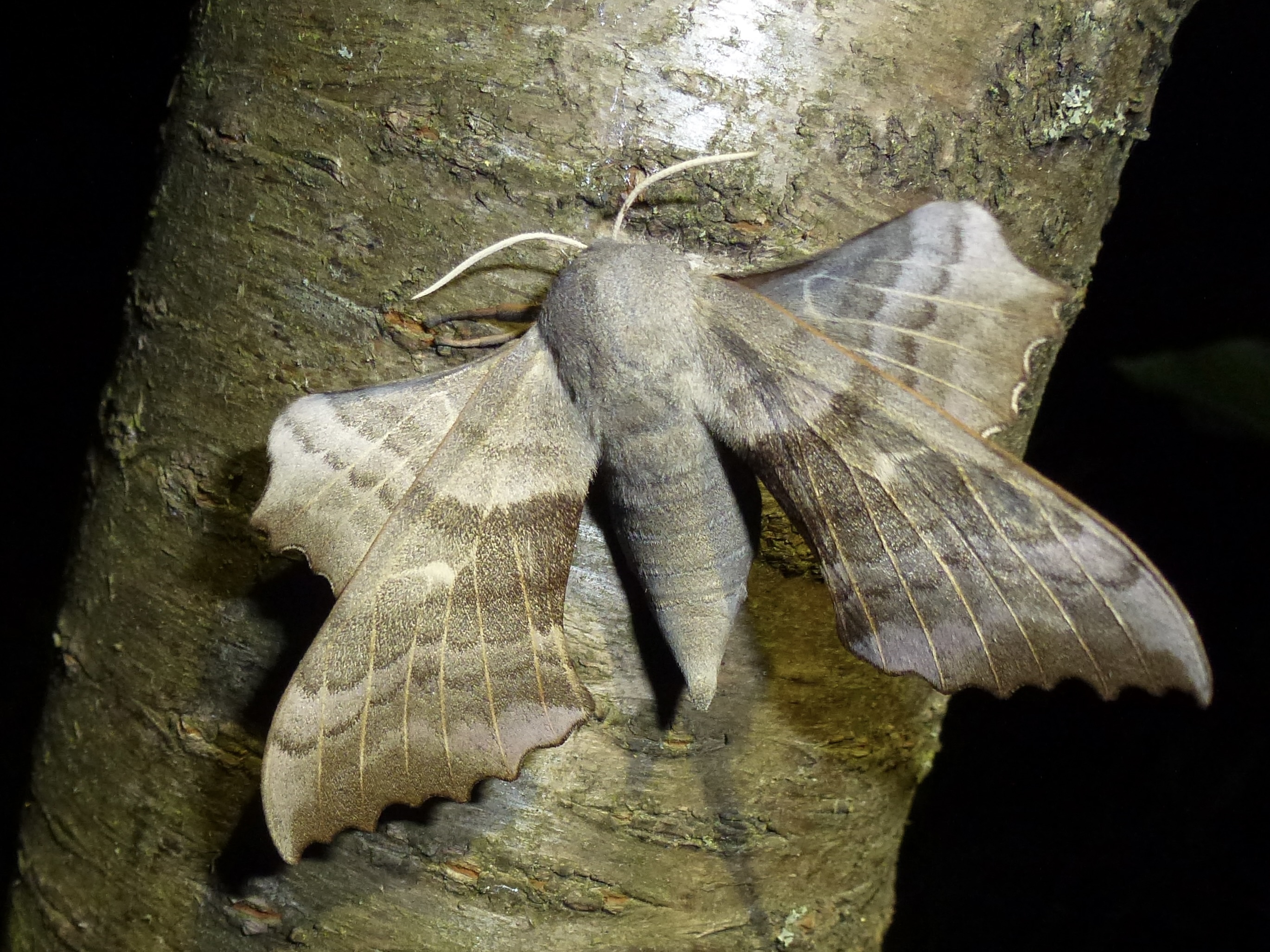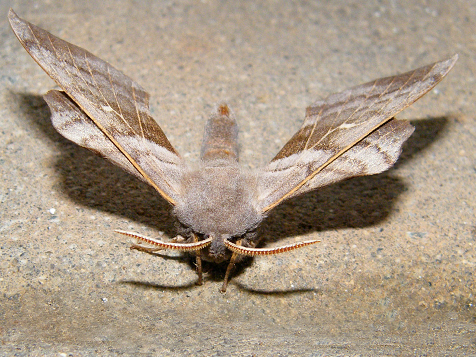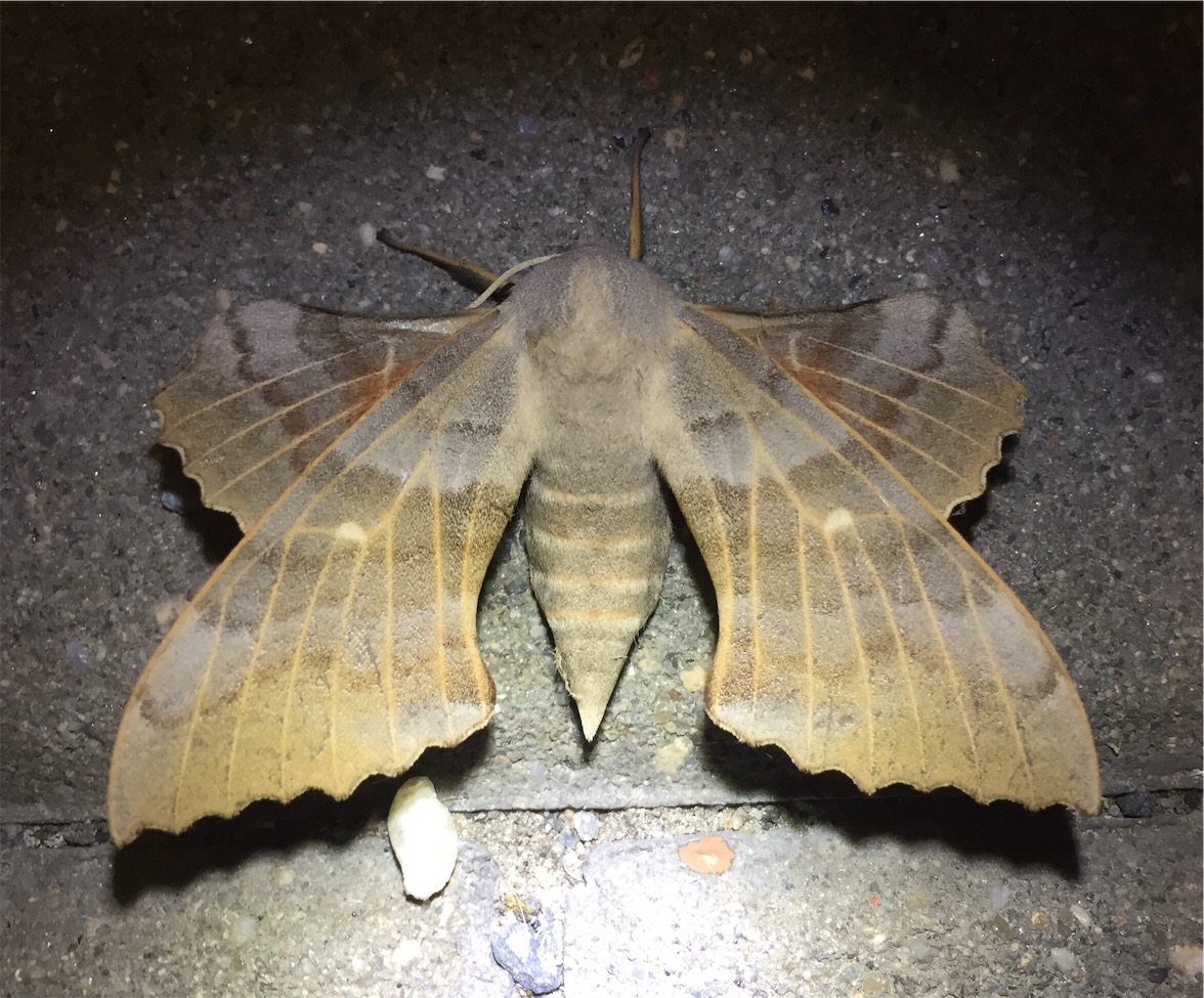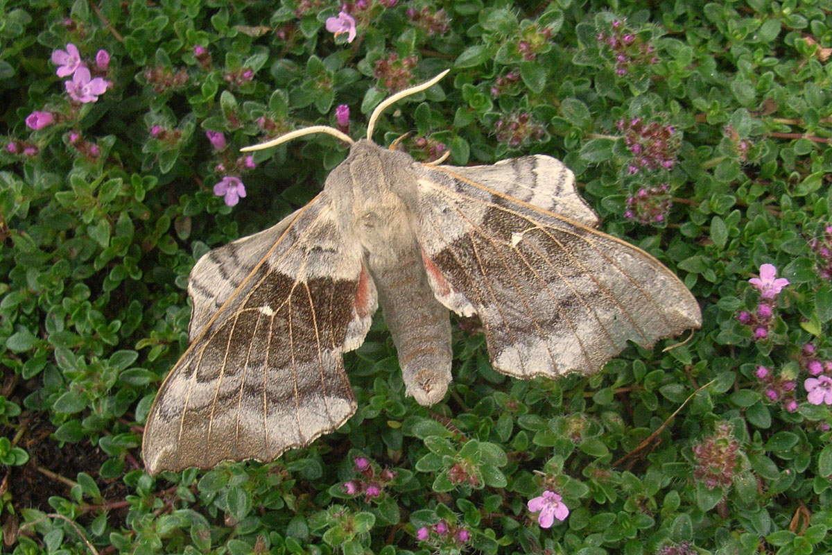 Laothoe populi (Linnaeus, 1758), Pappelschwärmer, Chemnitz-Zeisigwald//Planitzwiese, Anfang August 2014.