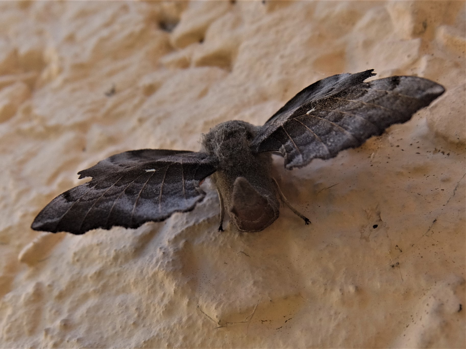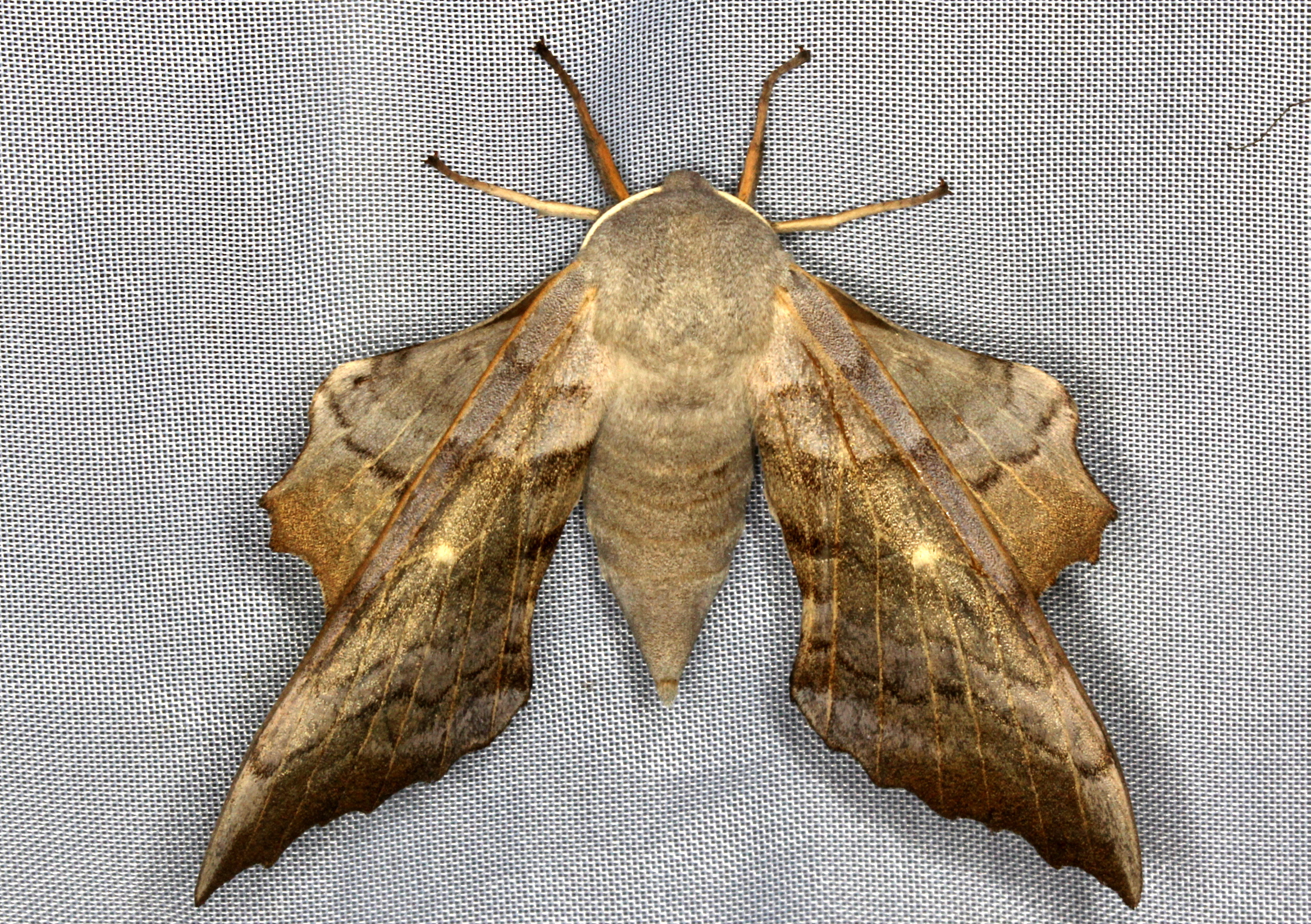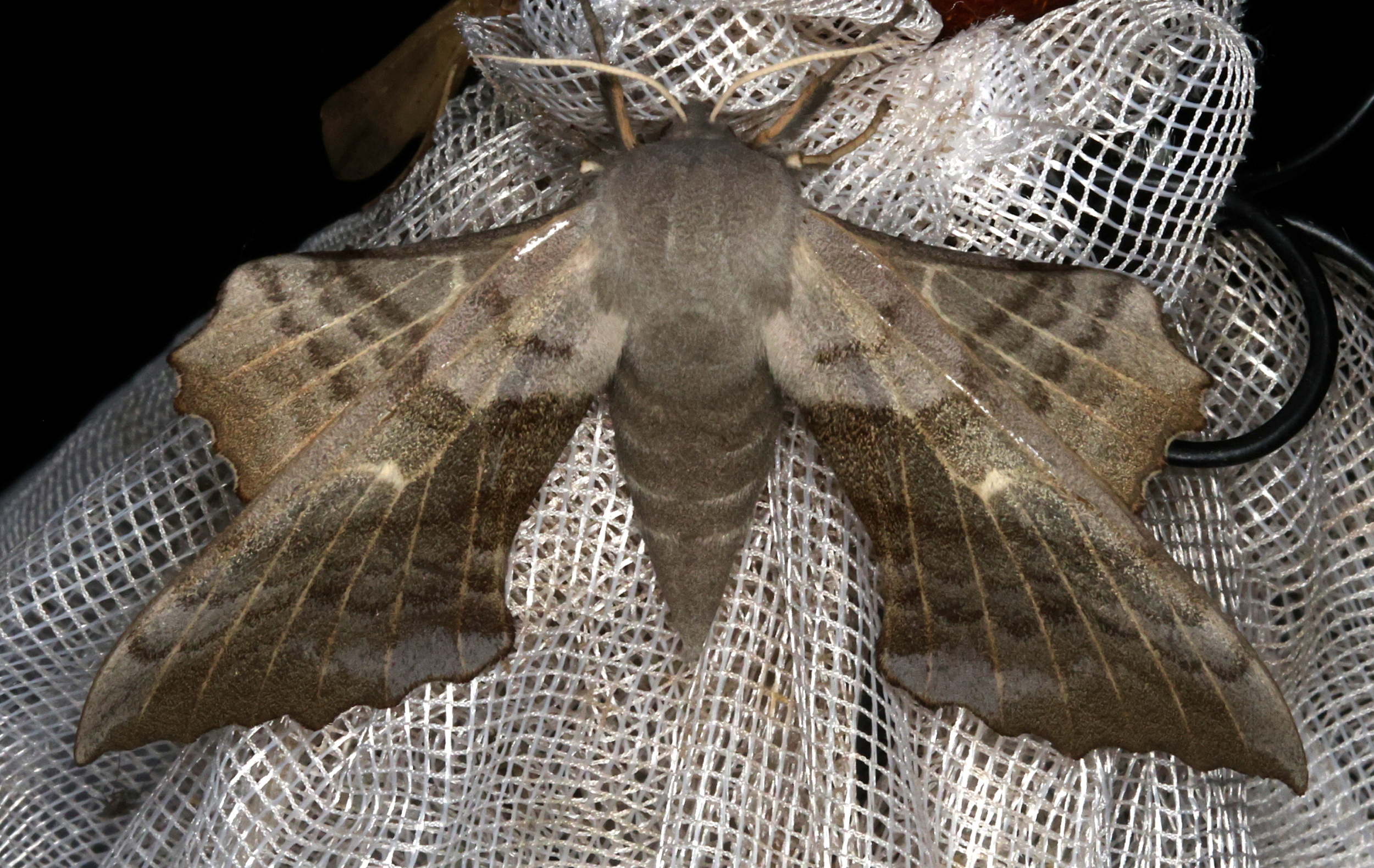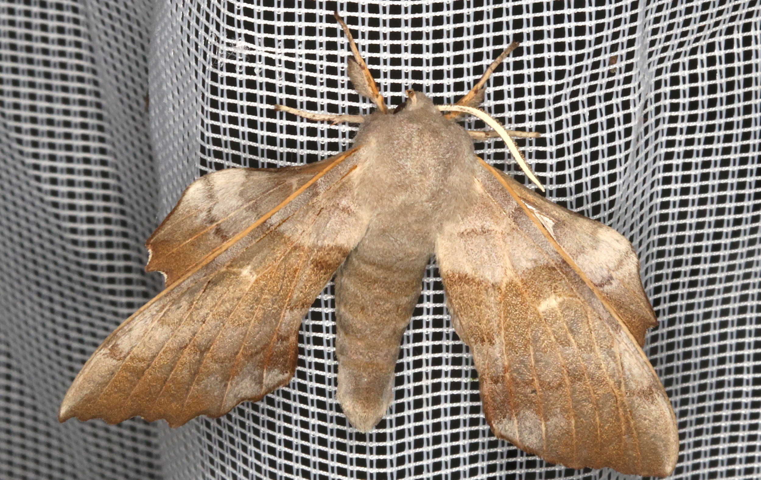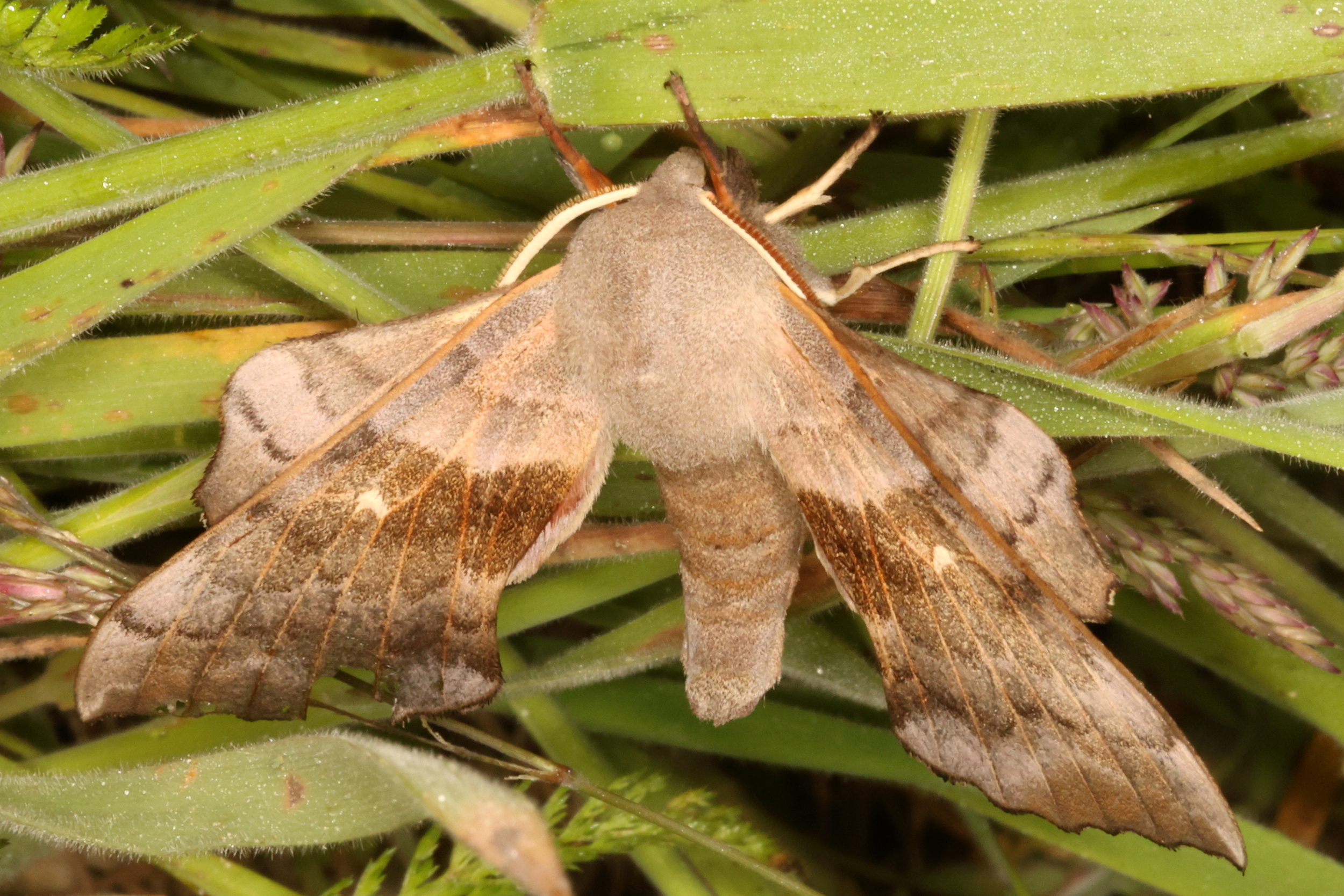 Laothoe populi (Linnaeus, 1758), Pappelschwärmer, Chemnitz-Zeisigwald//Planitzwiese, Anfang August 2014.