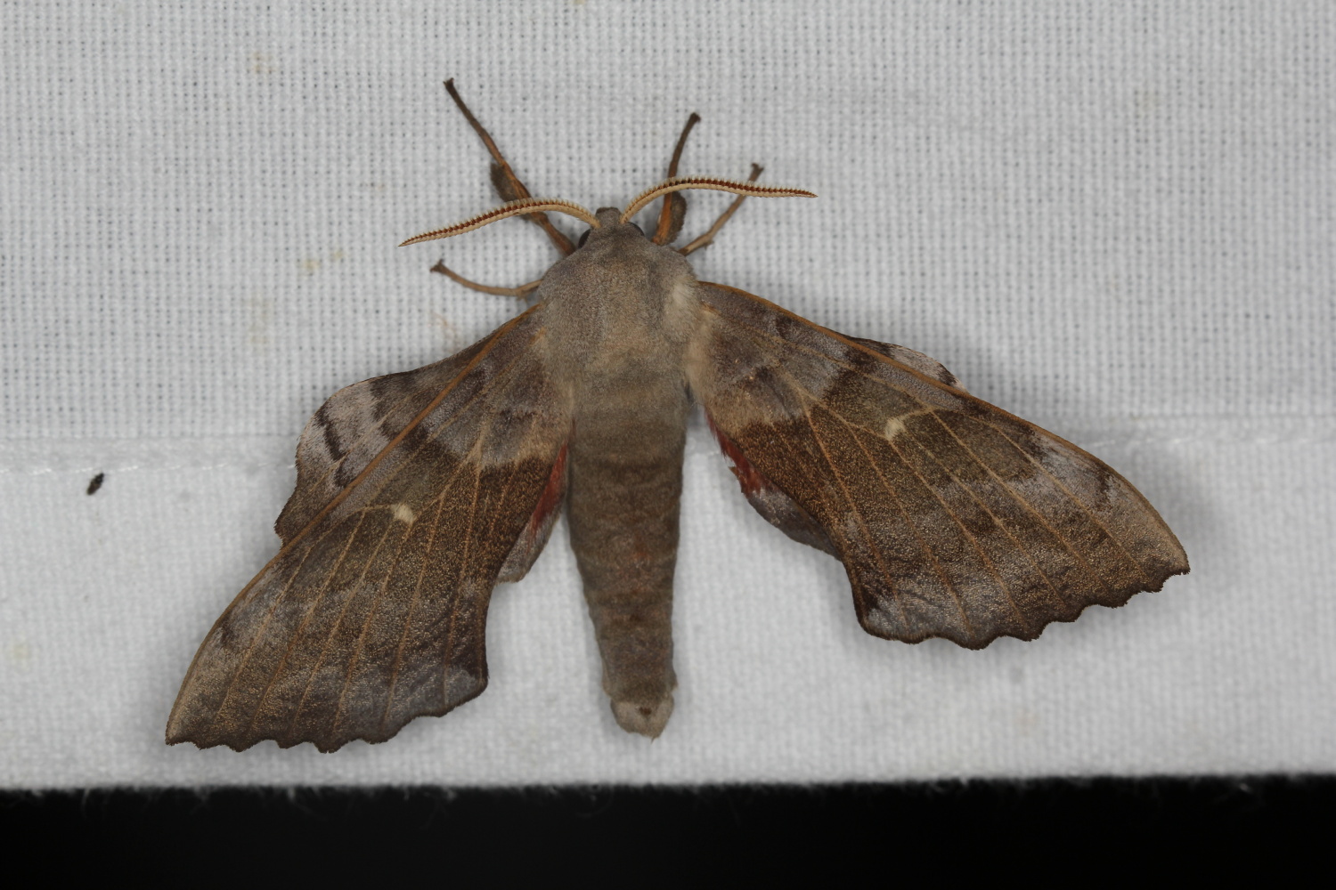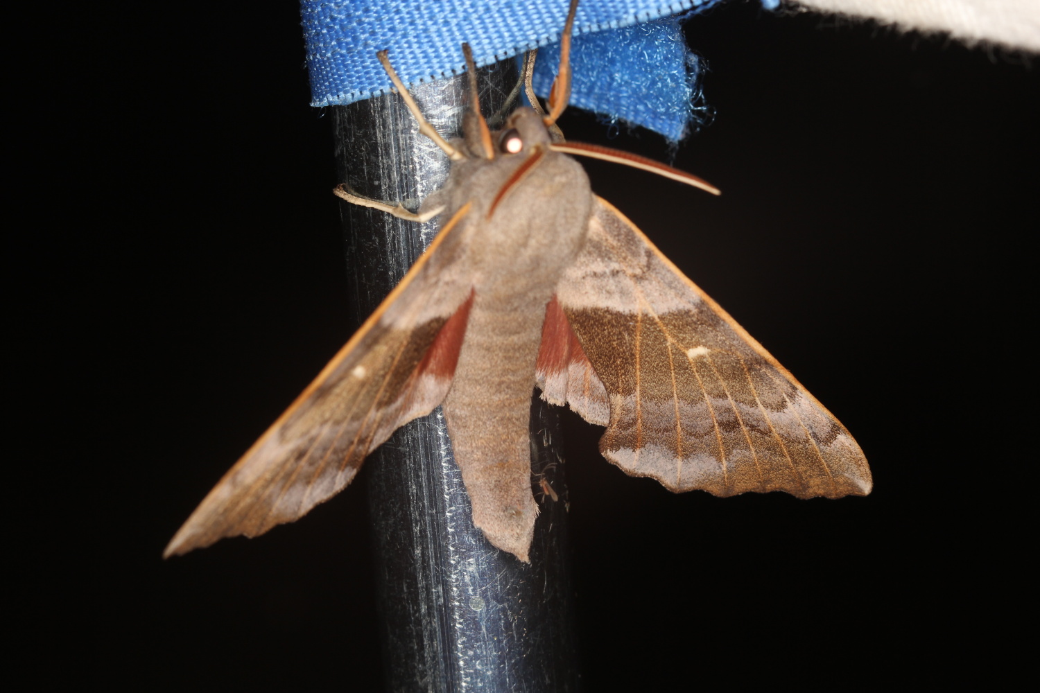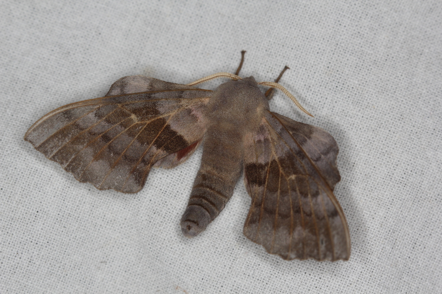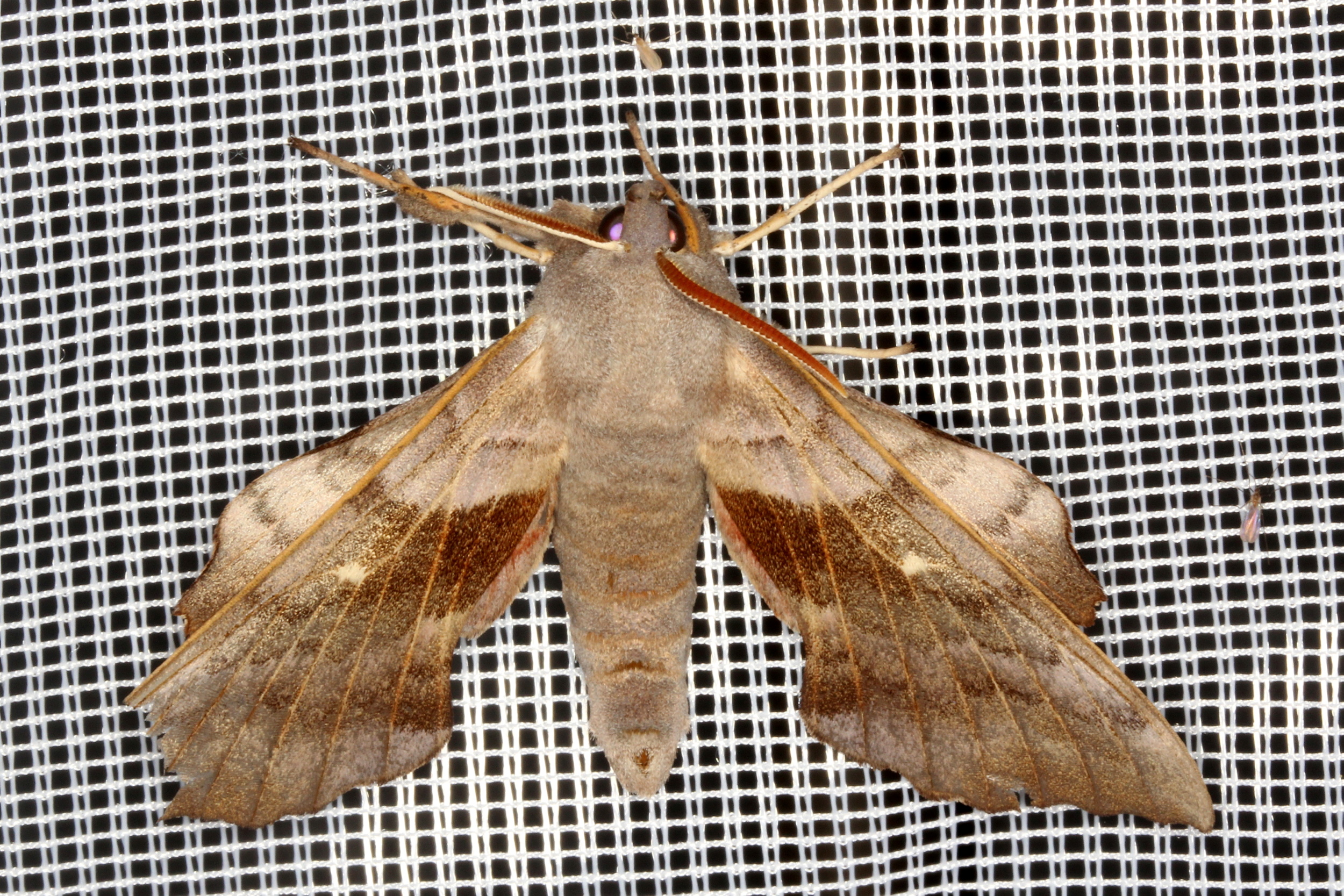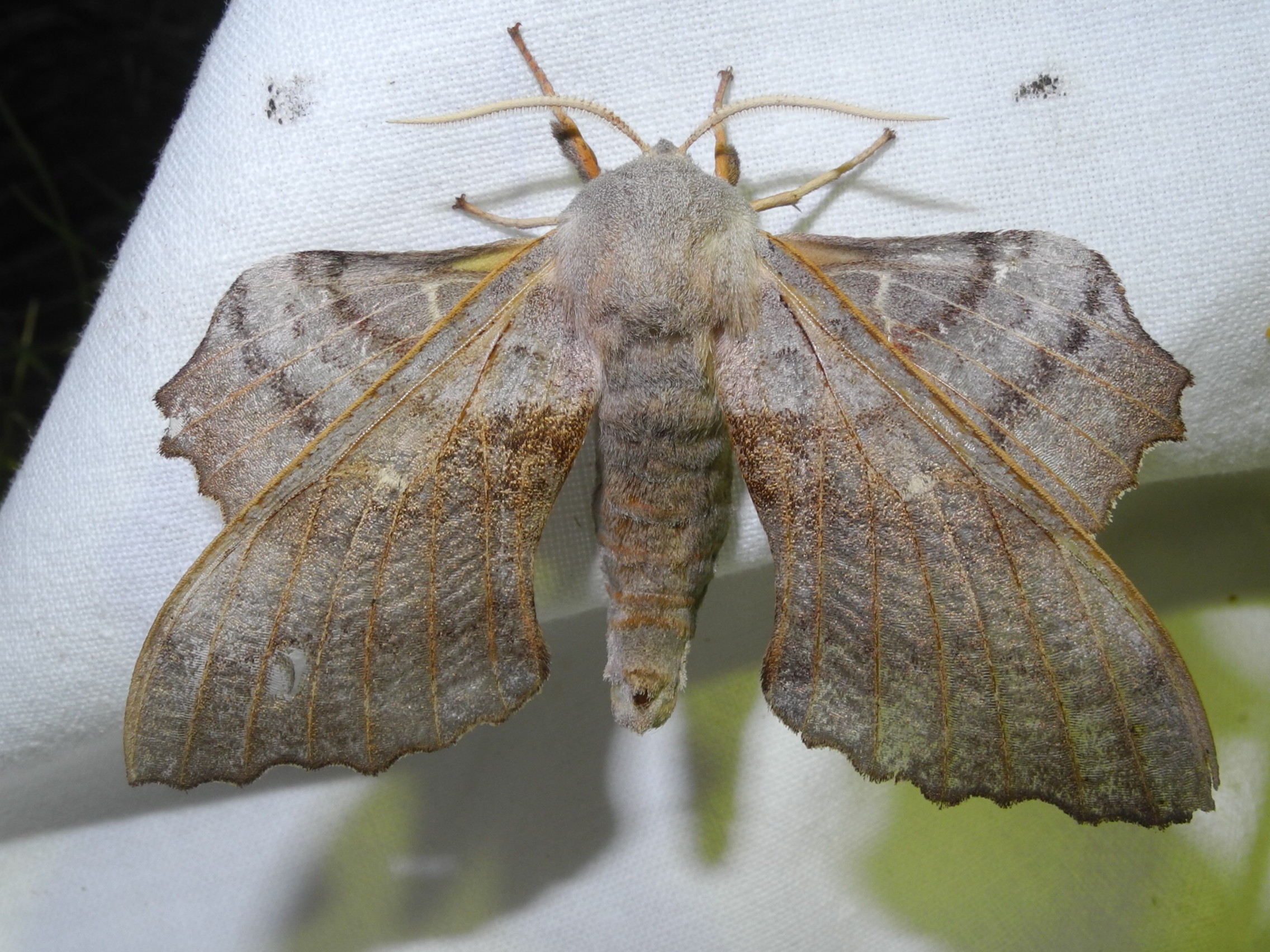 Laothoe populi (Linnaeus, 1758), Pappelschwärmer, Chemnitz-Zeisigwald//Planitzwiese, Anfang August 2014.