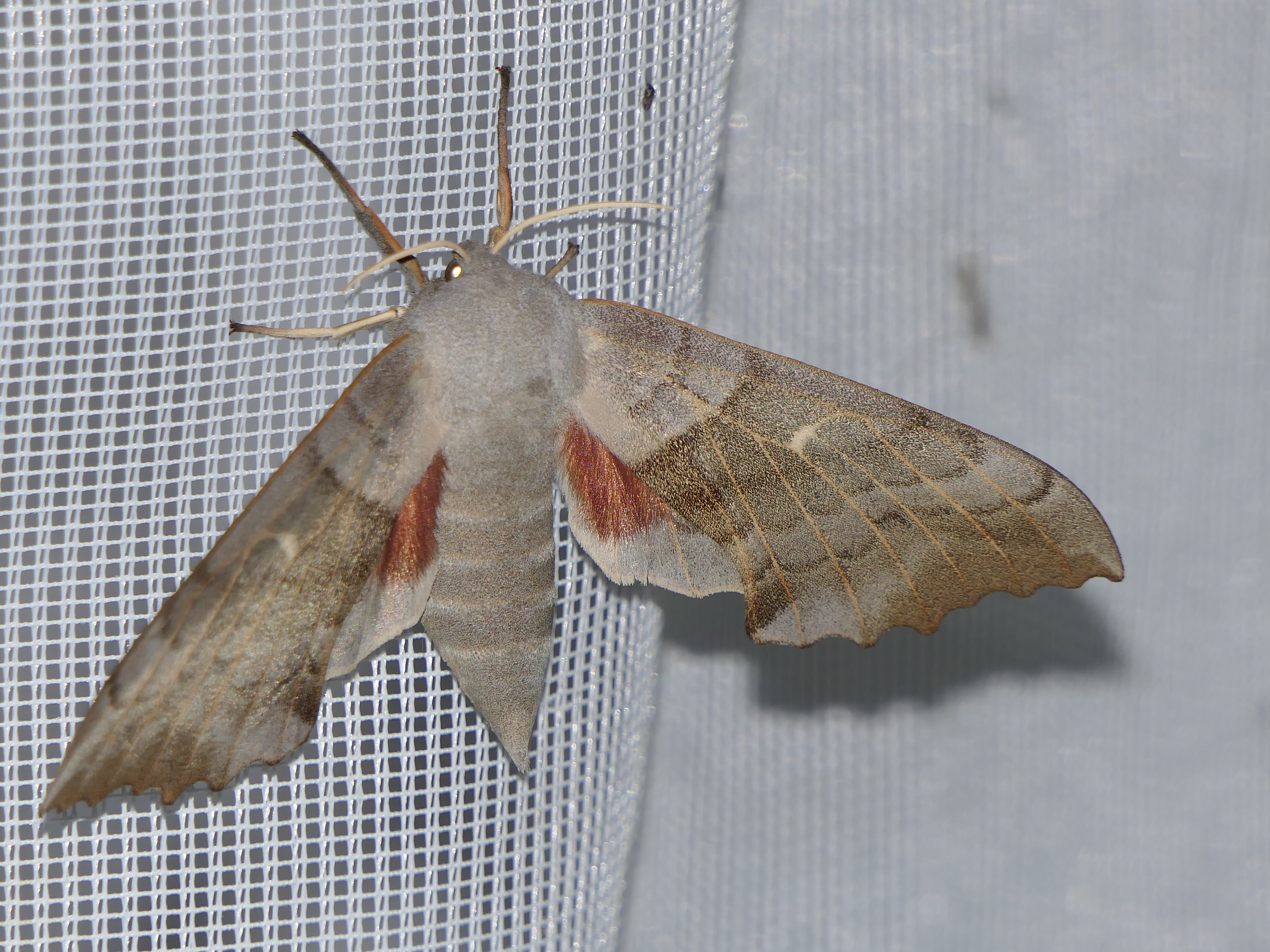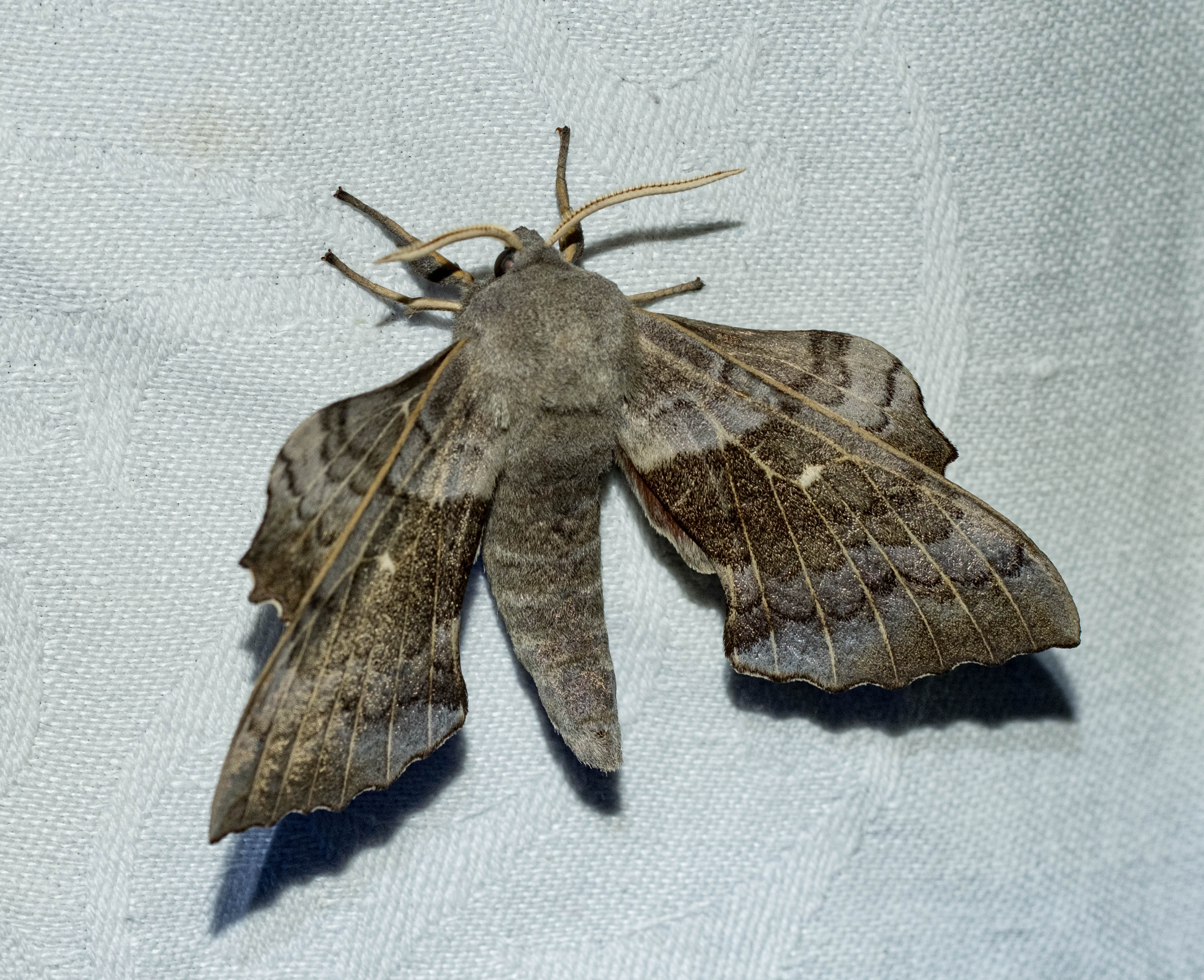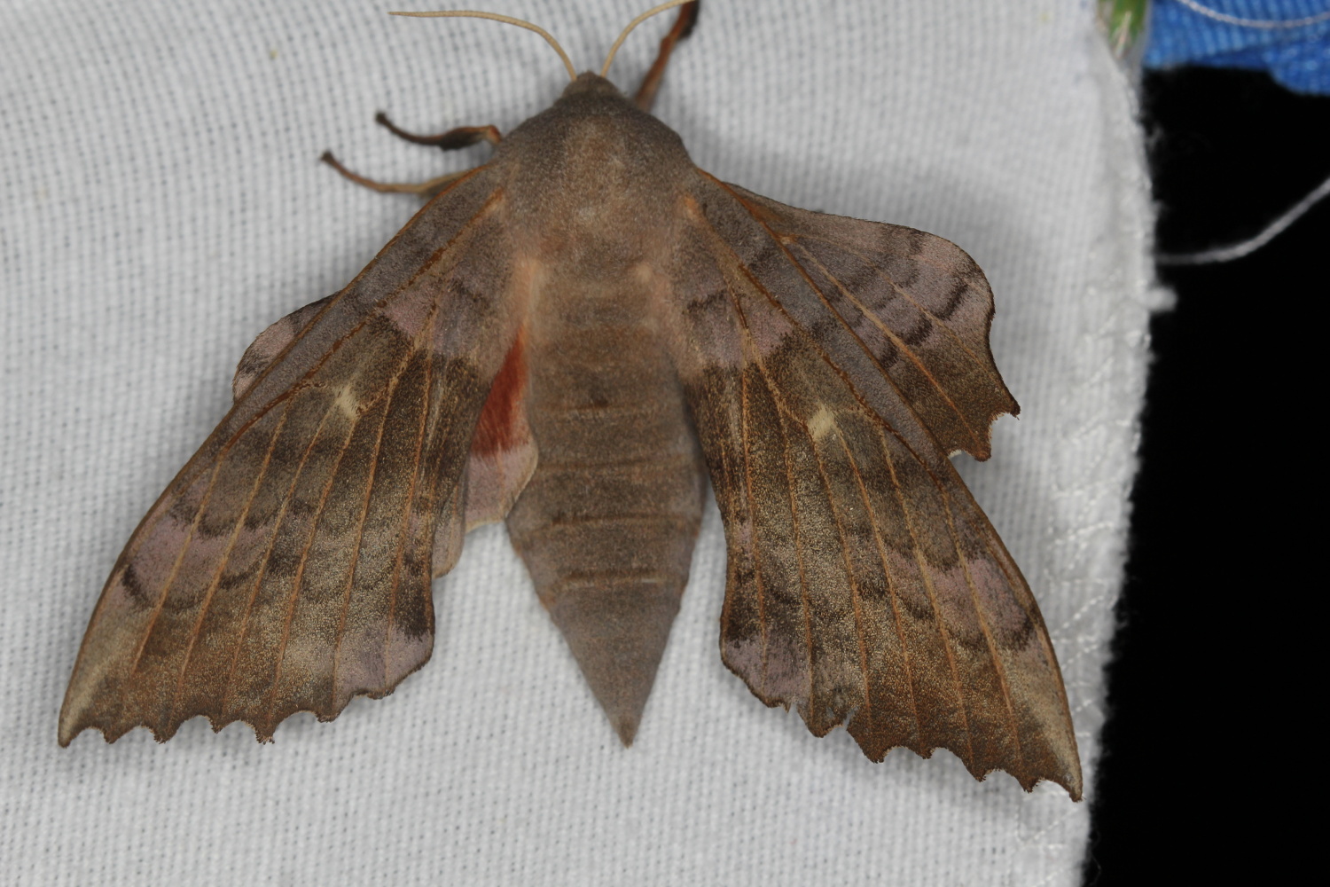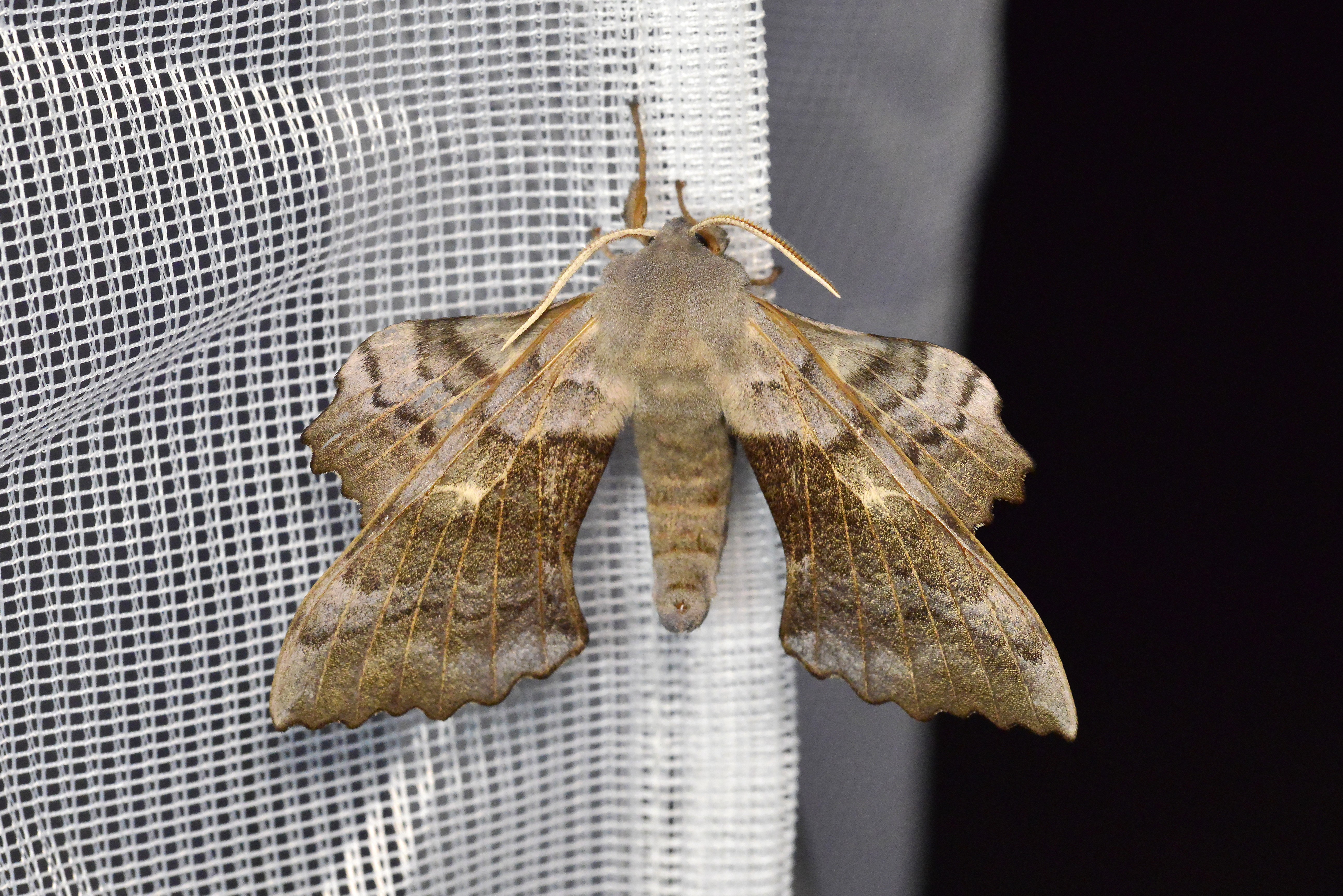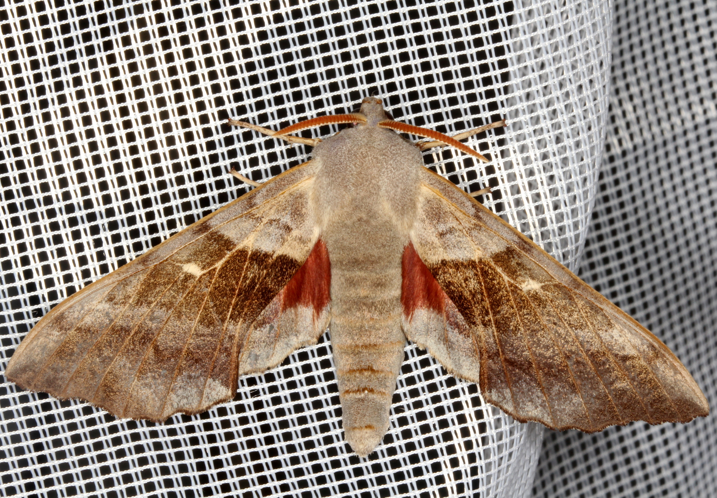 Laothoe populi (Linnaeus, 1758), Pappelschwärmer, Chemnitz-Zeisigwald//Planitzwiese, Anfang August 2014.