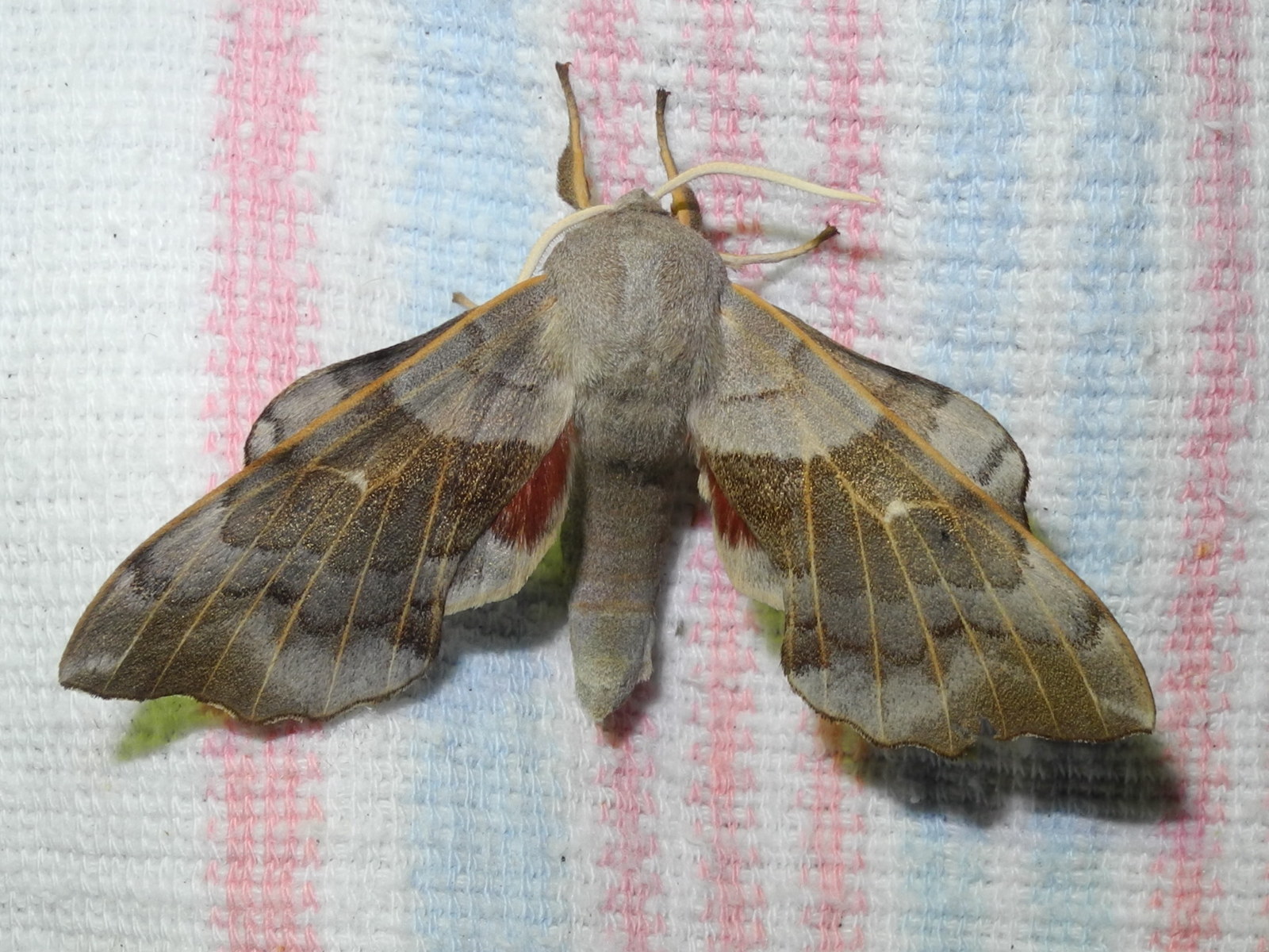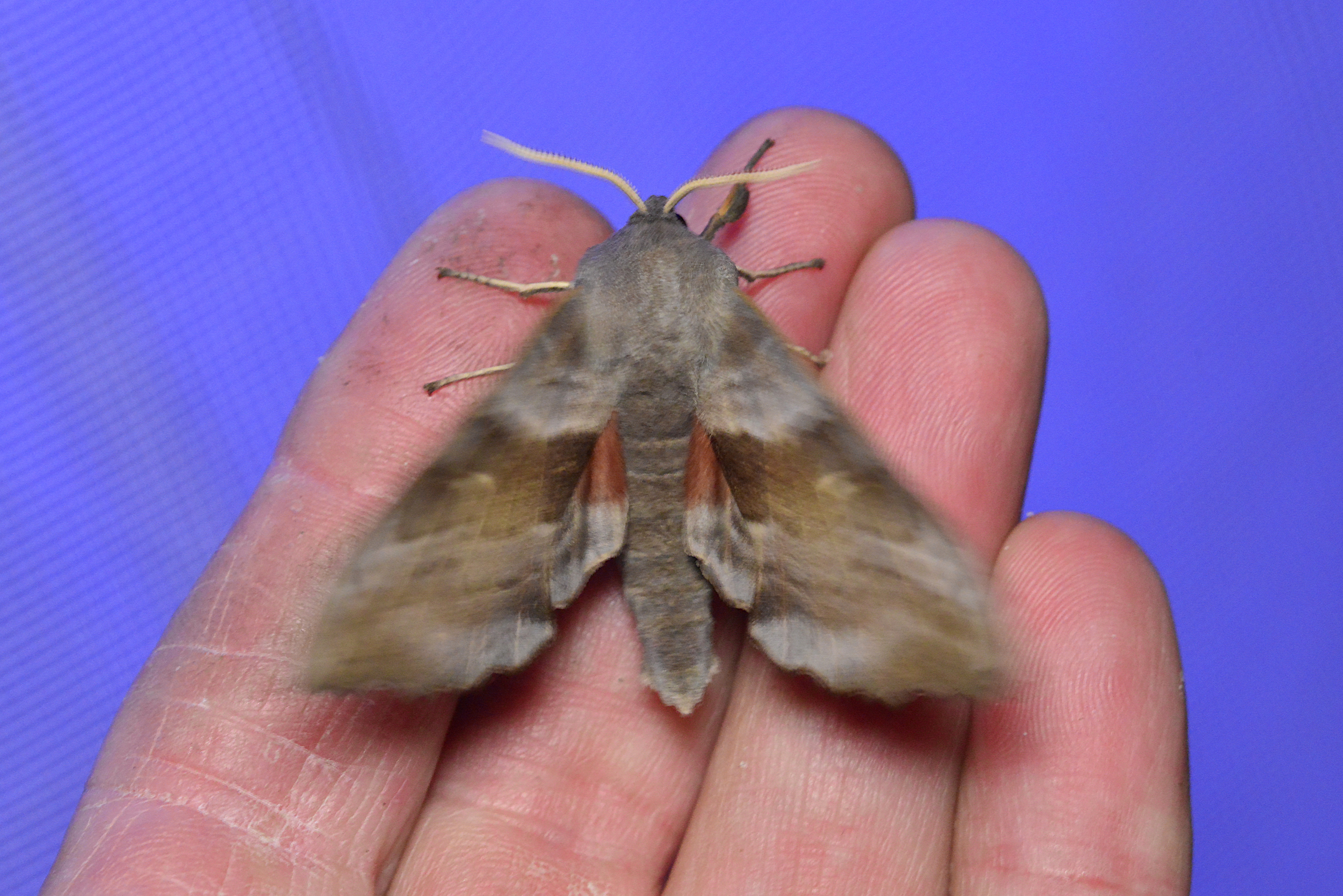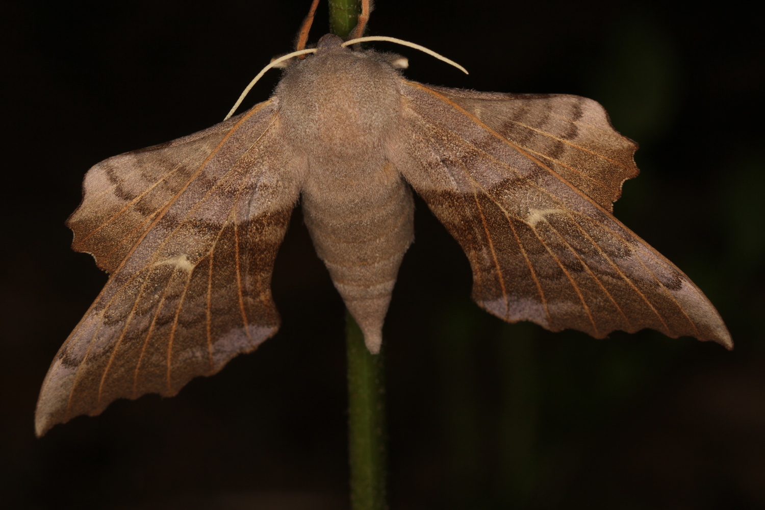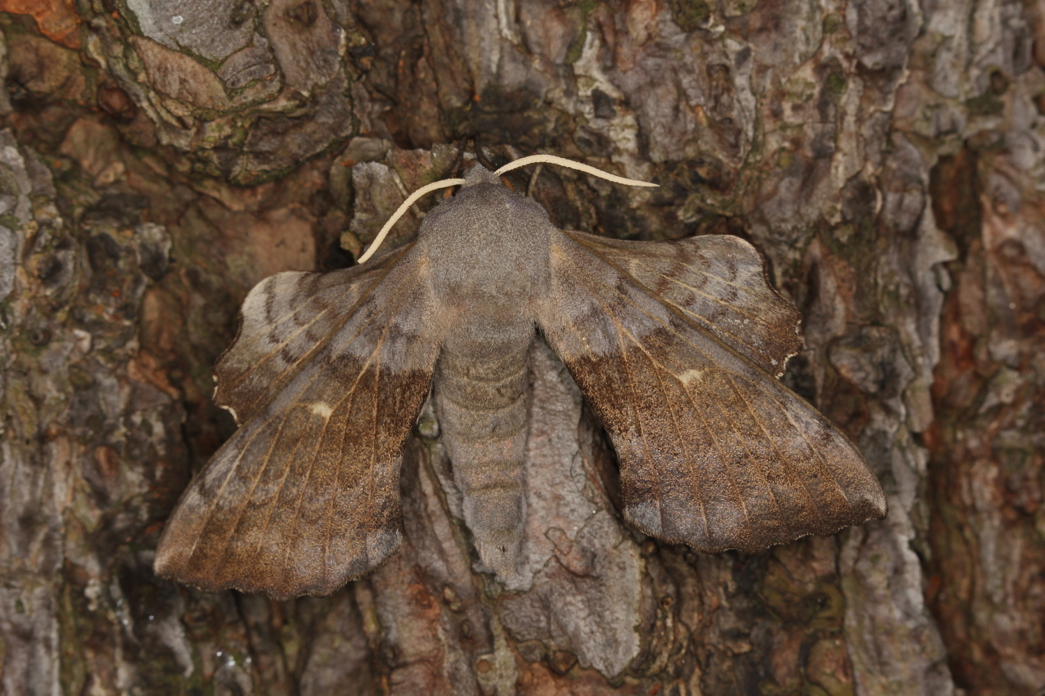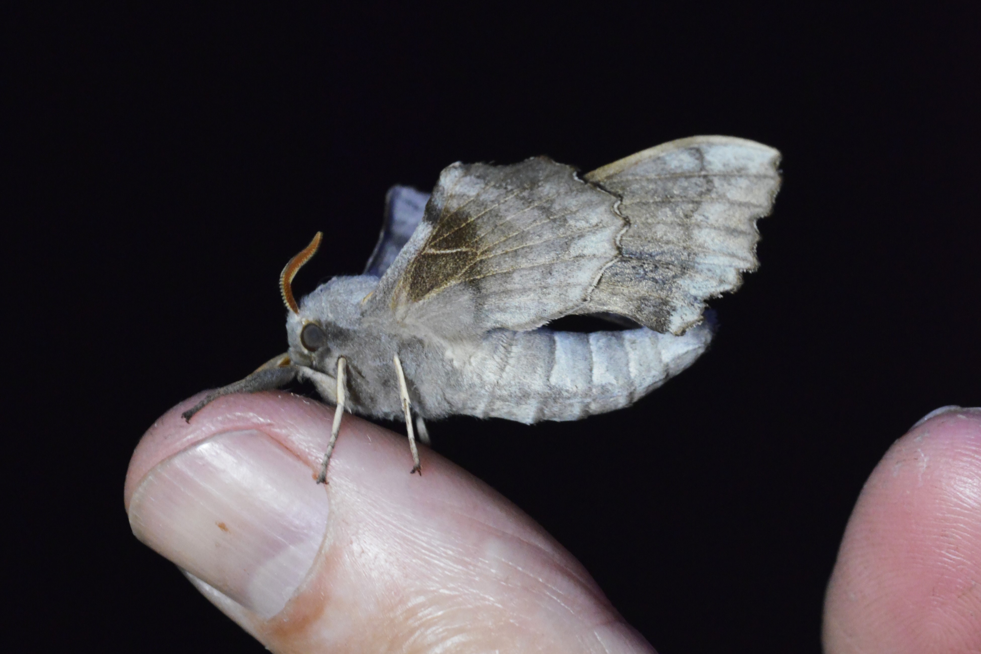 Laothoe populi (Linnaeus, 1758), Pappelschwärmer, Chemnitz-Zeisigwald//Planitzwiese, Anfang August 2014.
